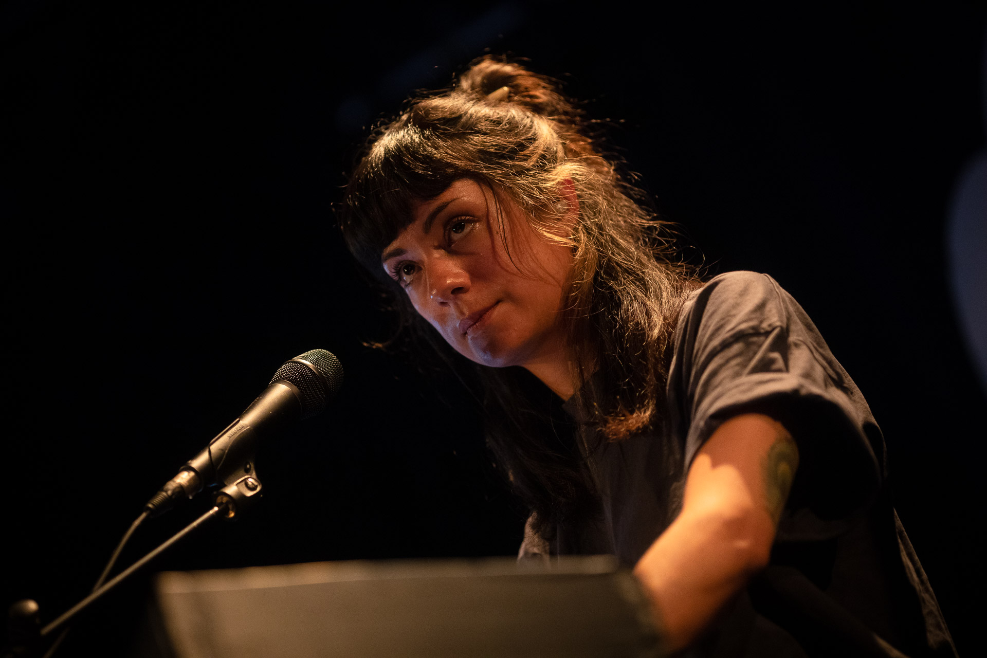 C’est la deuxième fois que l’on voit Antoine Wielemans (Girls In Hawaii) sur la tournée de son album Vattetot. Toujours dans une formule en trio avec deux claviéristes, David Picard et Leticia Collet, toujours placés en formation concave légèrement en retrait sur la scène. Le set intimiste, ses ambiances entre spleen et rêverie (avec à un moment un détour chez Ikéa) se prête finalement très bien à la configuration cosy et assise des trois baudets, si on ferme les yeux, on se croirait volontiers sur la falaise normande avec l’odeur et le son de la mer dans la lumière bleu pale d’une fin de journée hivernale. Enfin bref.. pour l’immersion pas de problème, pour l’émotion idem, il y a quelque chose de sobre voir même de pudique chez Antoine Wielemans, mais sa voix comme son visage s’animent avec les émotions qui défilent dans les chansons, souvent appuyés par des choeurs discrets mais précieux de Leticia.