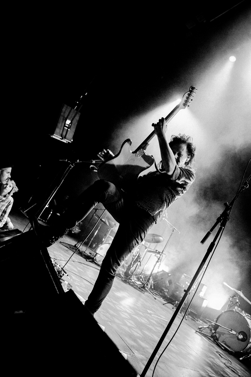Par contre plutôt qu’une éclipse, pour l’un des derniers concerts de la tournée de son album Vertigone, c’est plutôt un véritable feu d’artifice que nous offre Arman Méliès, l’osmose réussie entre cet univers poétique si particulier que sa voix et ses compositions explorent depuis ses débuts et le groupe qui lui donne vie sur scène, capable à la fois d’envoyer tout en puissance dans des explosions très postrockeuses comme de jouer de manière très atmosphérique, de parer la musique de touches expérimentales, de ramener des sonorités inattendus.