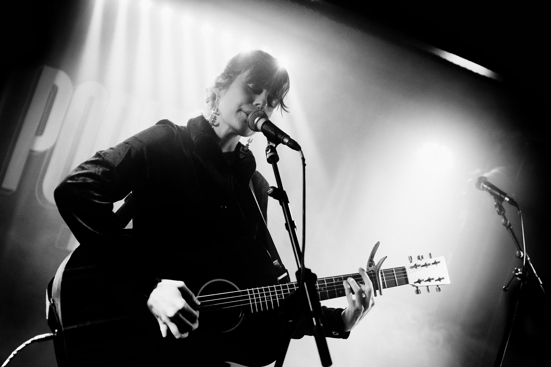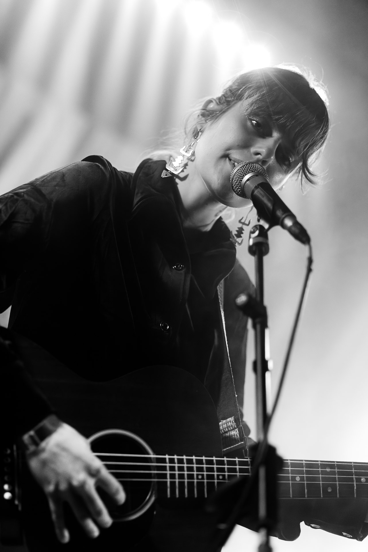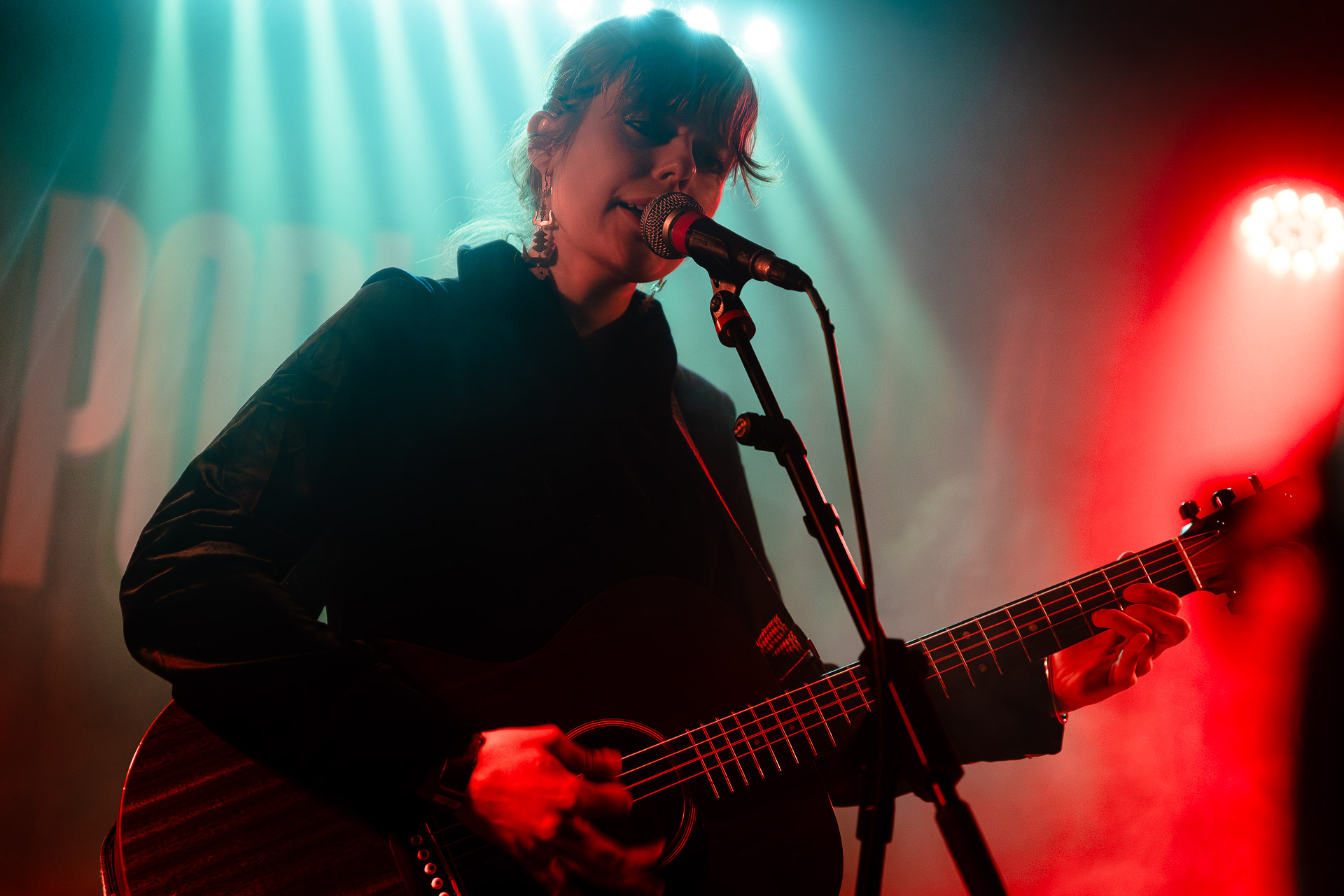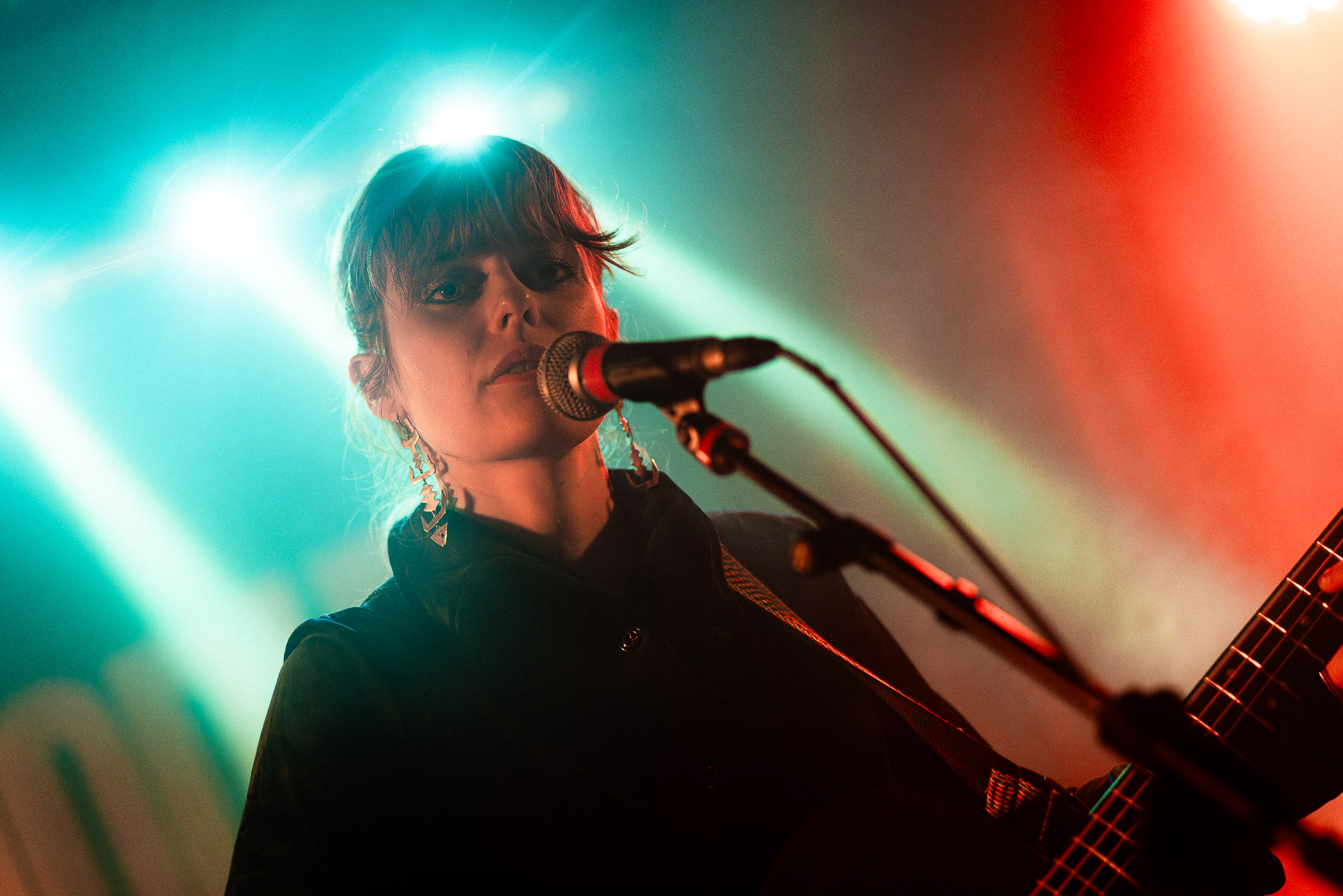 On était curieux de voir comment une telle proposition pouvait fonctionner sur la scène du PopUp, décor plutôt "industriel" que "terroir", ses éclairages intenses, son brouillard mais aucune inquiétude, déjà plutôt à l’aise avec la scène, Barbara déroule ses chansons dans cette même formule guitare-voix que sur disque et ça marche, on écoute religieusement, tout simplement parce que la voix est belle et les chansons bien écrites (avec la particularité de rarement dépasser les trois minutes, pas de refrains répétés maintes fois ici, peu de parties instrumentales, on a l’impression que c’est le fait de raconter l’histoire qui prime)