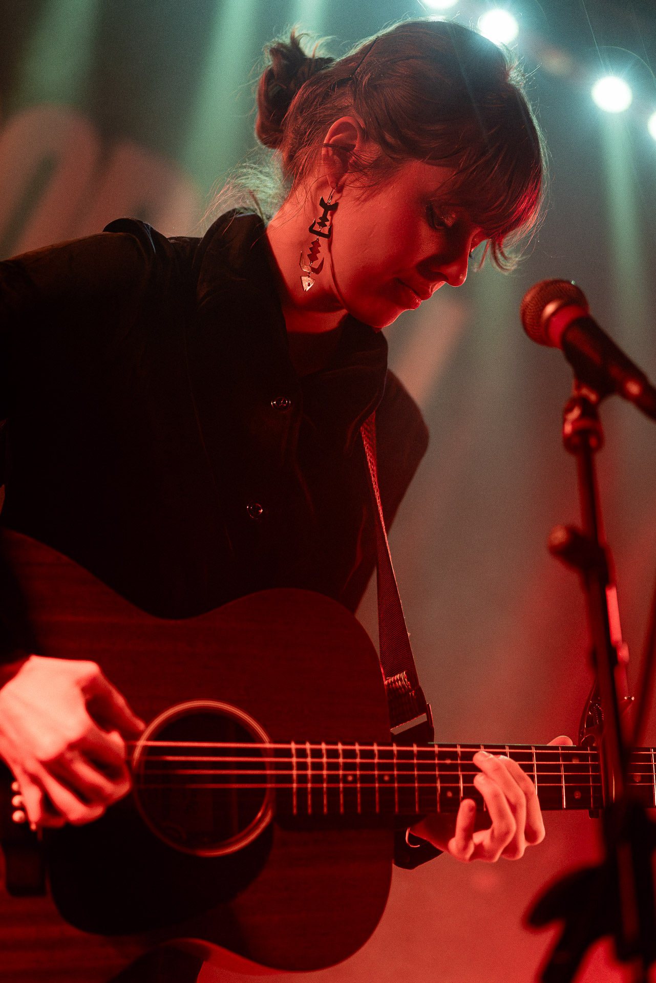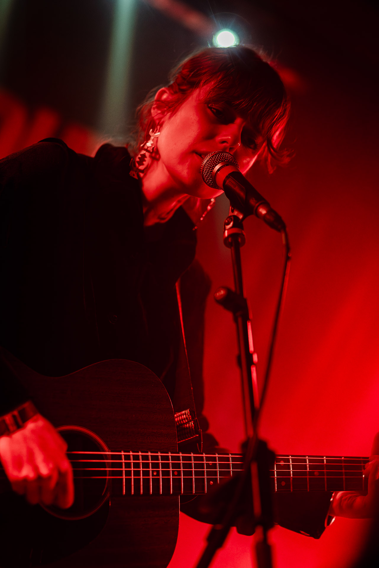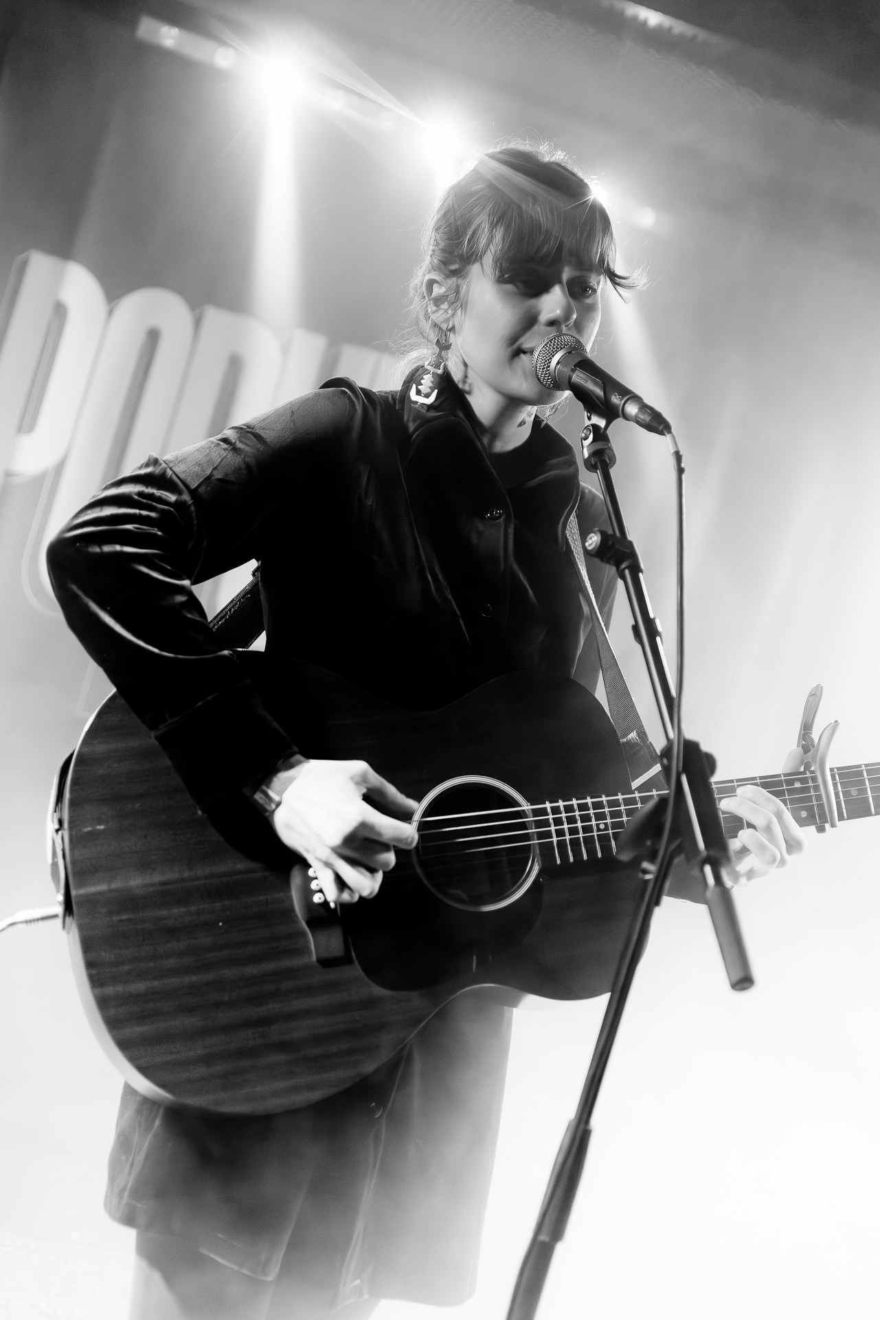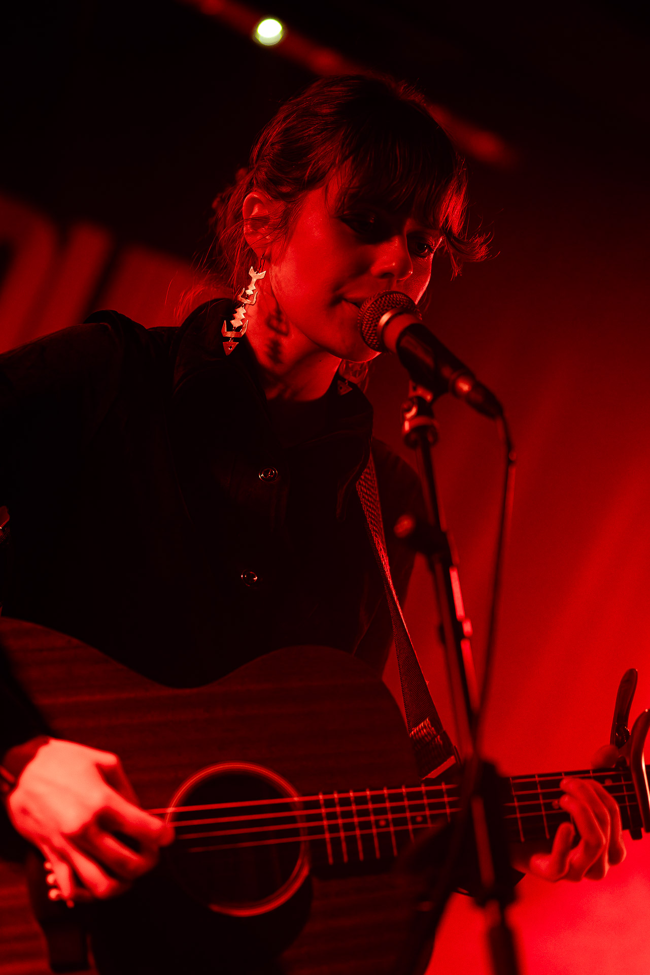 On était curieux de voir comment une telle proposition pouvait fonctionner sur la scène du PopUp, décor plutôt "industriel" que "terroir", ses éclairages intenses, son brouillard mais aucune inquiétude, déjà plutôt à l’aise avec la scène, Barbara déroule ses chansons dans cette même formule guitare-voix que sur disque et ça marche, on écoute religieusement, tout simplement parce que la voix est belle et les chansons bien écrites (avec la particularité de rarement dépasser les trois minutes, pas de refrains répétés maintes fois ici, peu de parties instrumentales, on a l’impression que c’est le fait de raconter l’histoire qui prime)