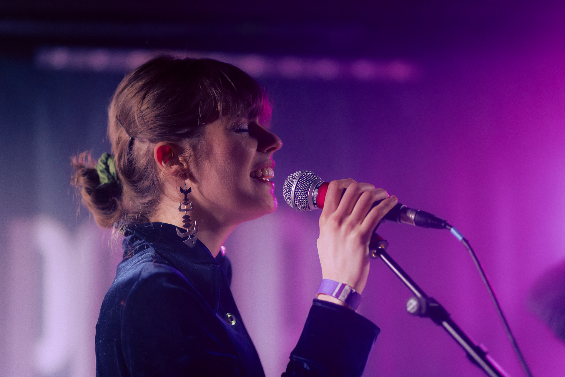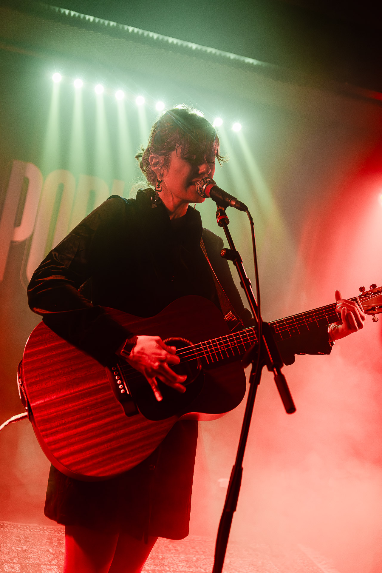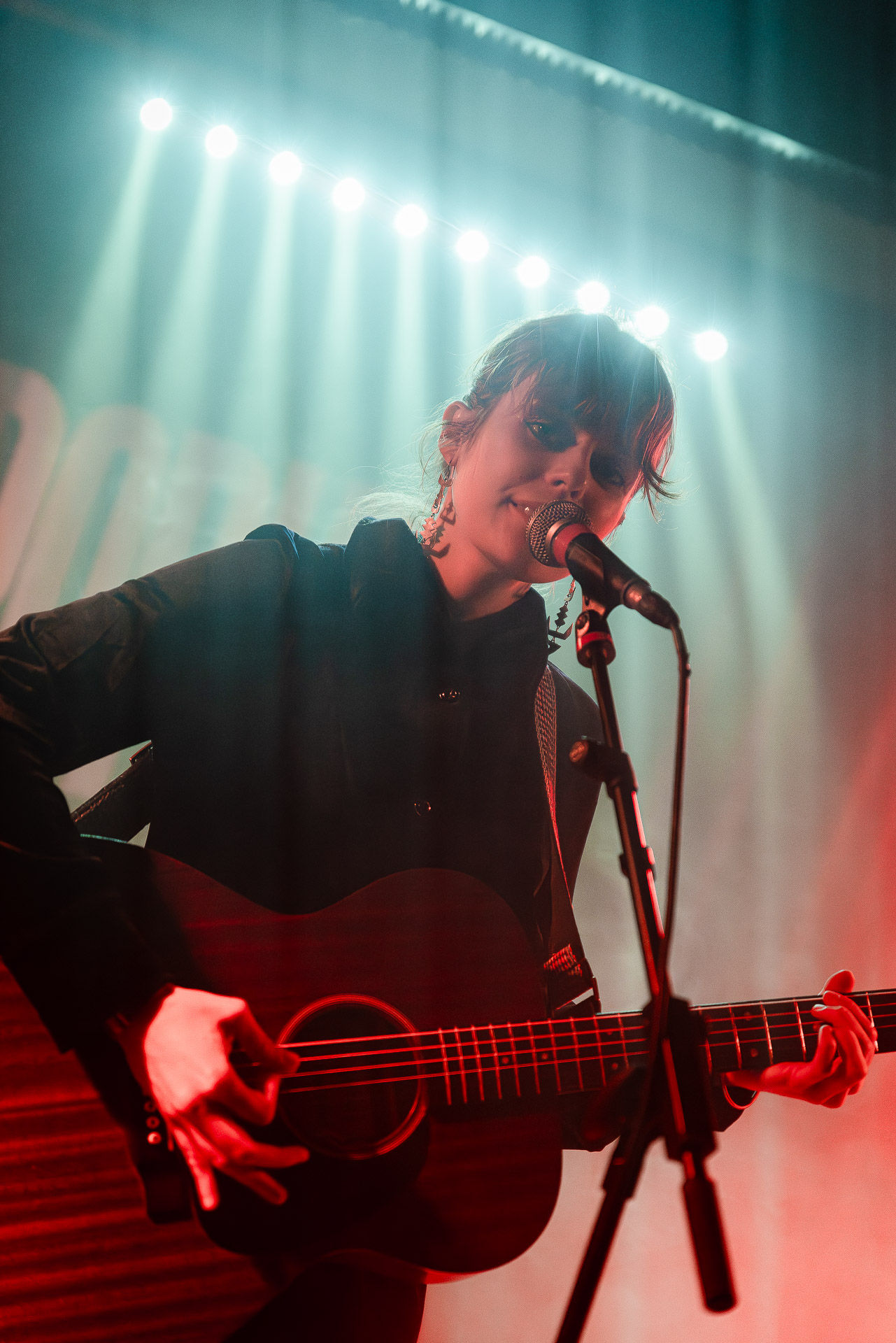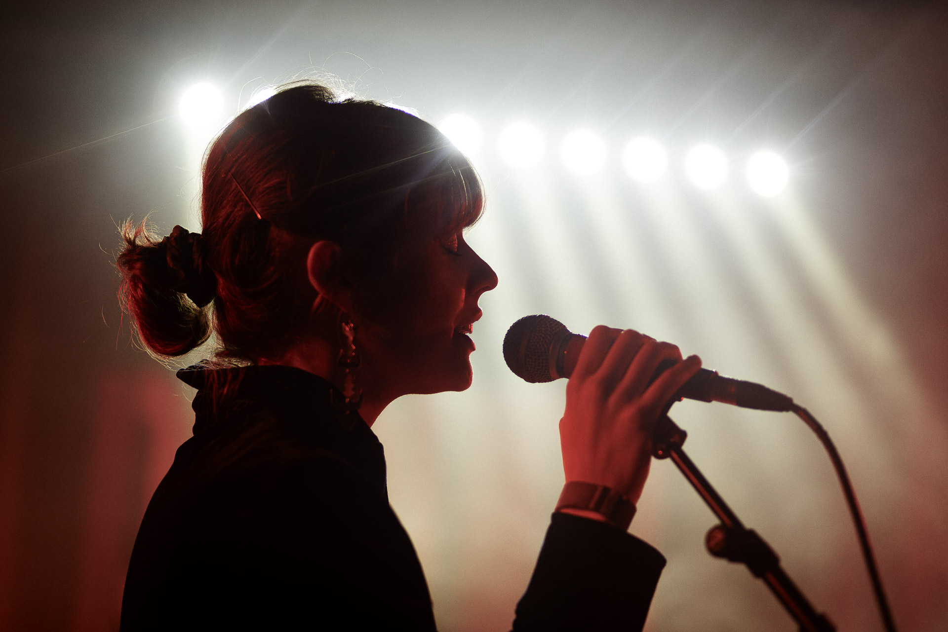 On était curieux de voir comment une telle proposition pouvait fonctionner sur la scène du PopUp, décor plutôt "industriel" que "terroir", ses éclairages intenses, son brouillard mais aucune inquiétude, déjà plutôt à l’aise avec la scène, Barbara déroule ses chansons dans cette même formule guitare-voix que sur disque et ça marche, on écoute religieusement, tout simplement parce que la voix est belle et les chansons bien écrites (avec la particularité de rarement dépasser les trois minutes, pas de refrains répétés maintes fois ici, peu de parties instrumentales, on a l’impression que c’est le fait de raconter l’histoire qui prime)