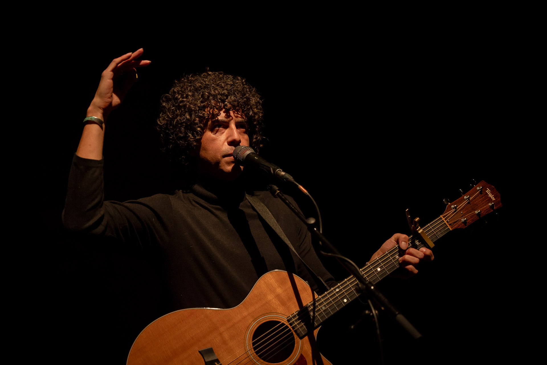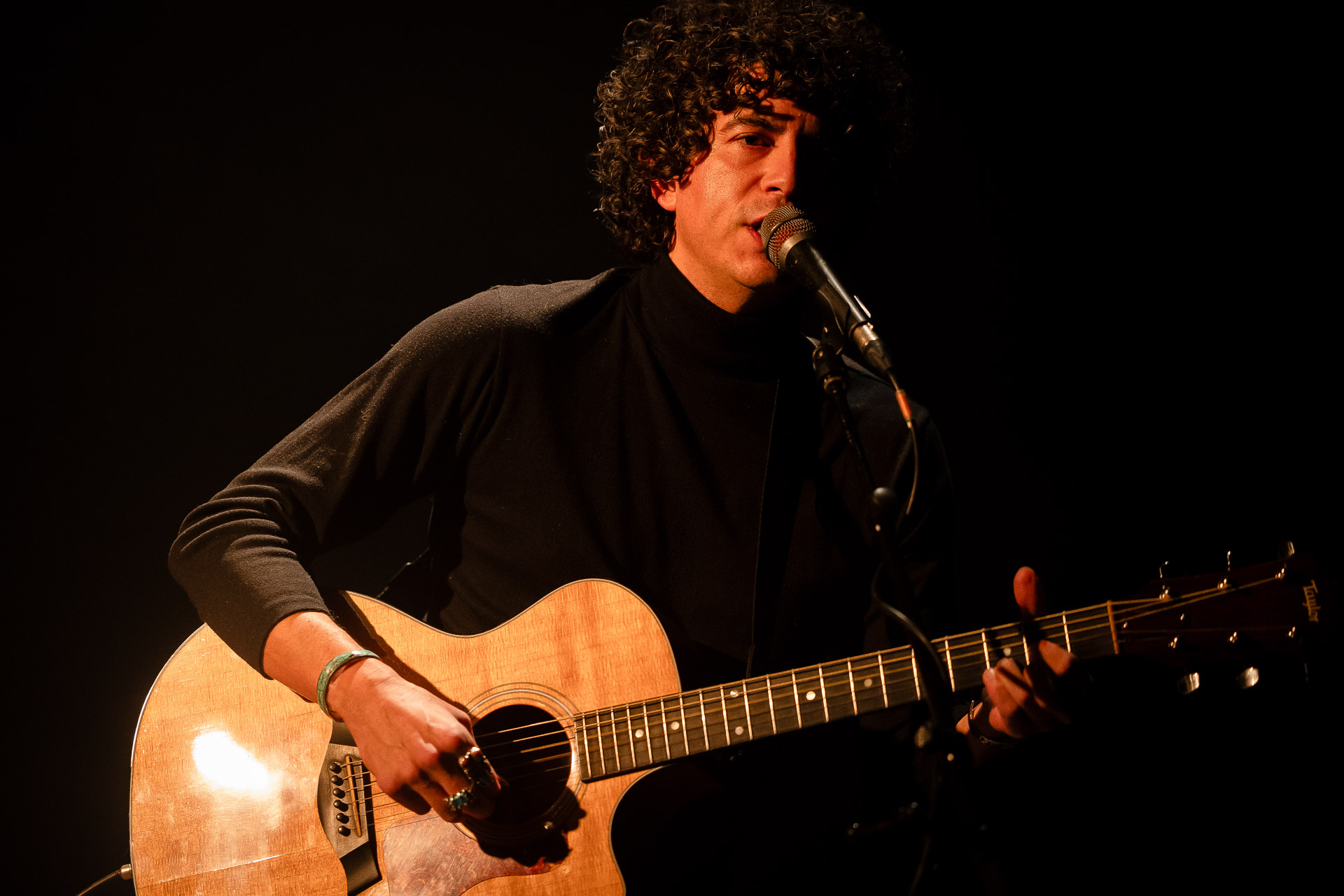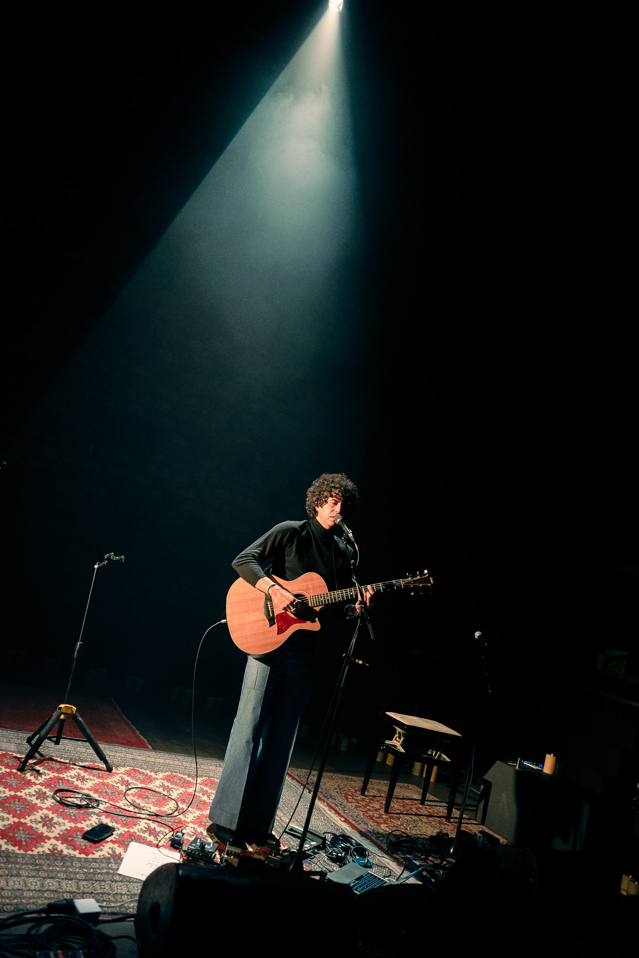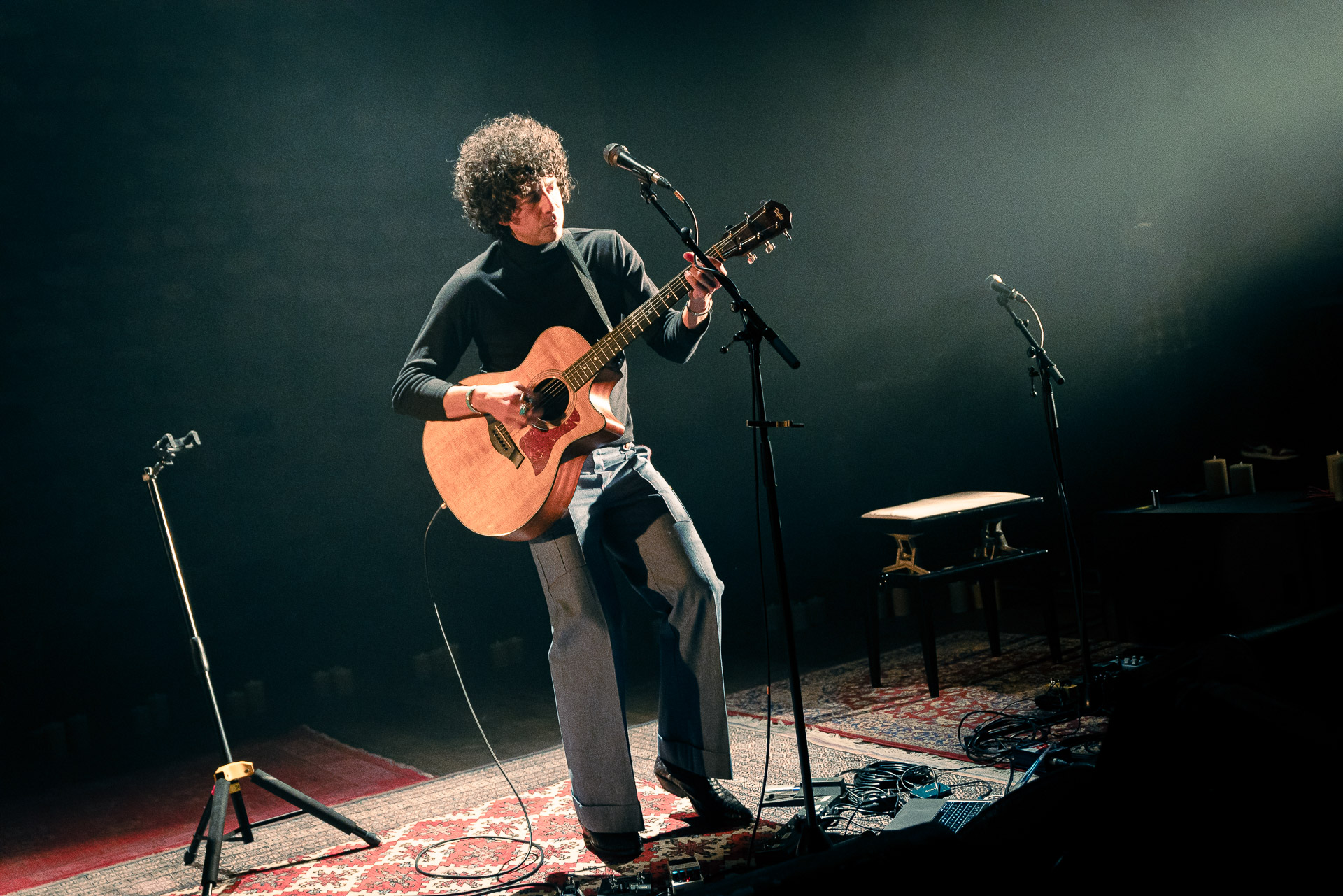 On l’avait vu avec tout son groupe et en électrique à Petit Bain, cette fois-ci Brian Lopez nous régale d’une première partie acoustique pour Mélanie Pain (avant de revenir sur scène au sein du groupe de celle-ci). Au programme des extraits de son deuxième album TIDAL , qui fonctionne très bien en acoustique (comme on a pu le constaté lors de notre session avec Brian) et une reprise très réussie du « Pink Moon » de Nick Drake