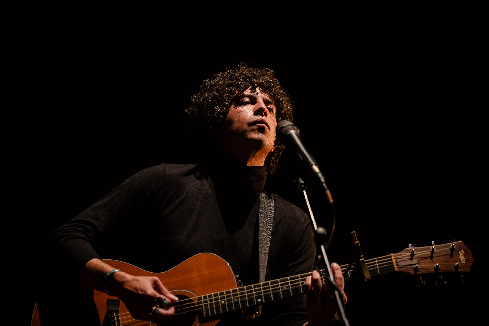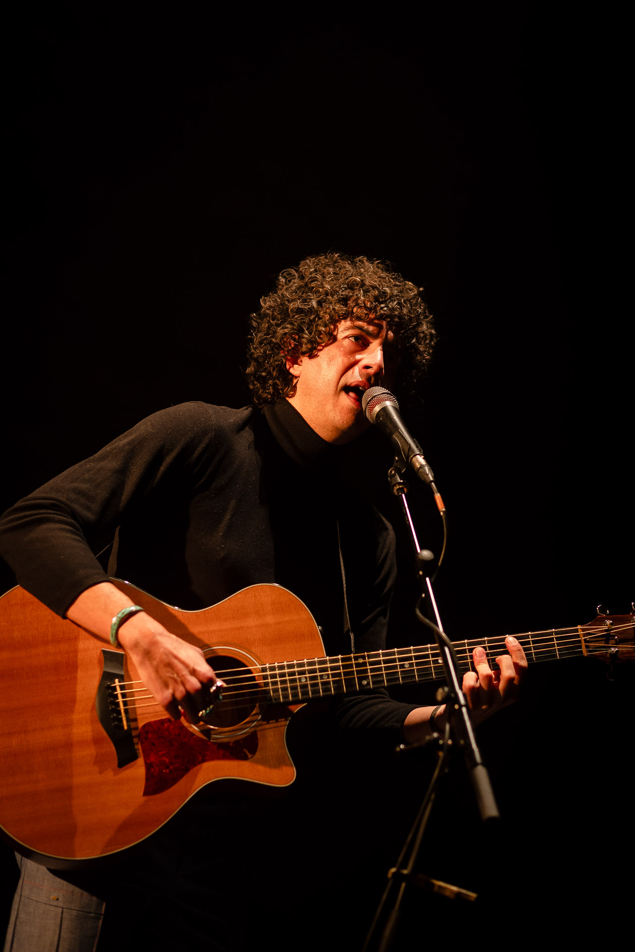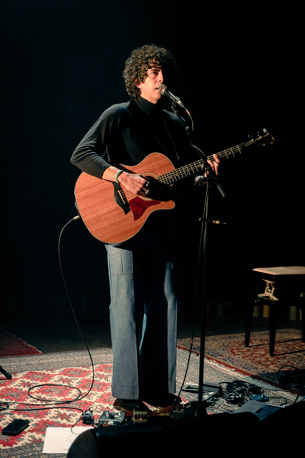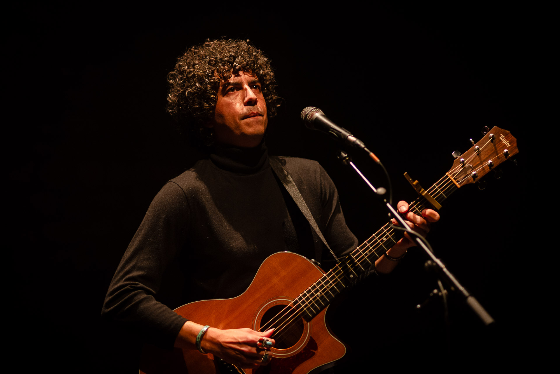 On l’avait vu avec tout son groupe et en électrique à Petit Bain, cette fois-ci Brian Lopez nous régale d’une première partie acoustique pour Mélanie Pain (avant de revenir sur scène au sein du groupe de celle-ci). Au programme des extraits de son deuxième album TIDAL , qui fonctionne très bien en acoustique (comme on a pu le constaté lors de notre session avec Brian) et une reprise très réussie du « Pink Moon » de Nick Drake