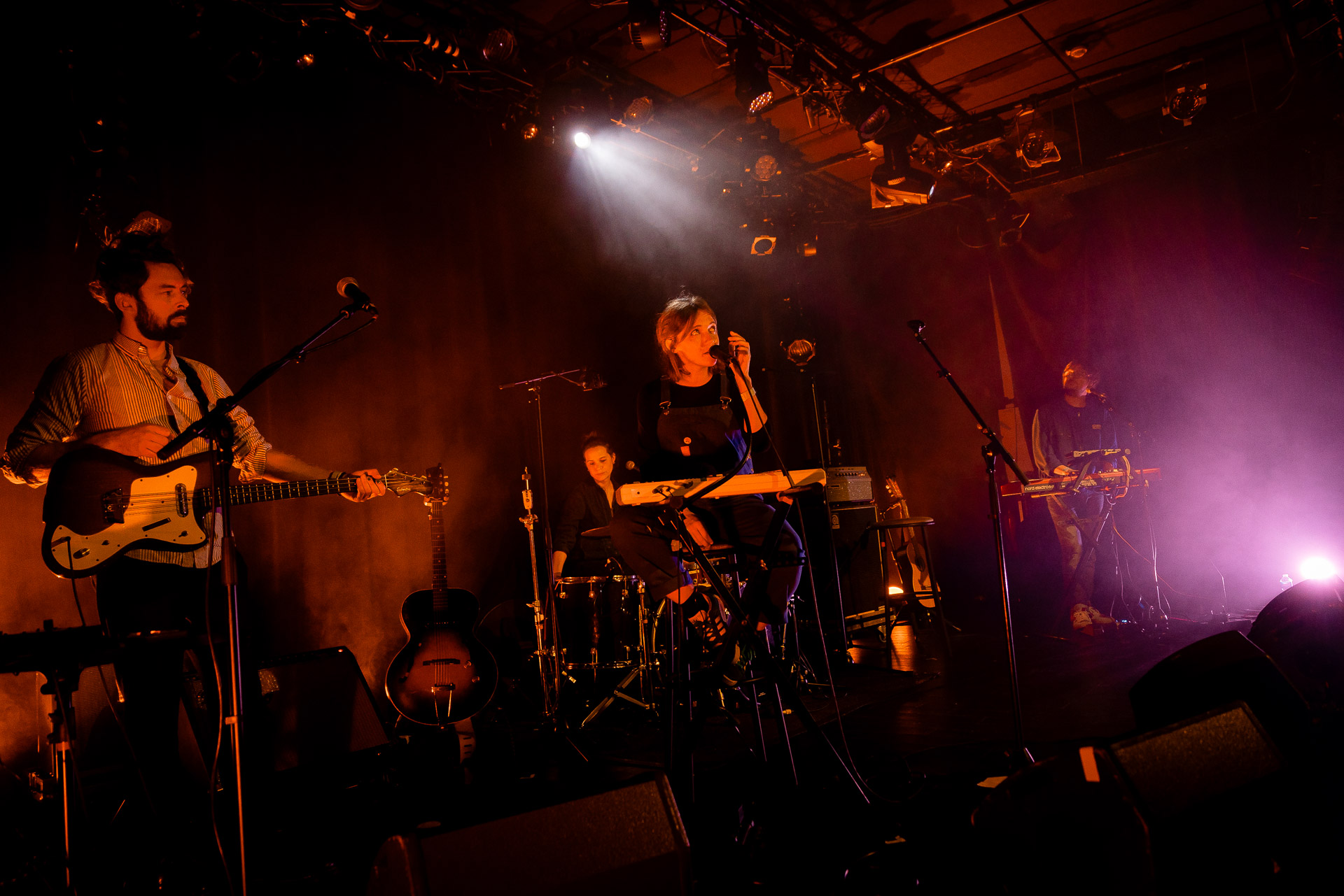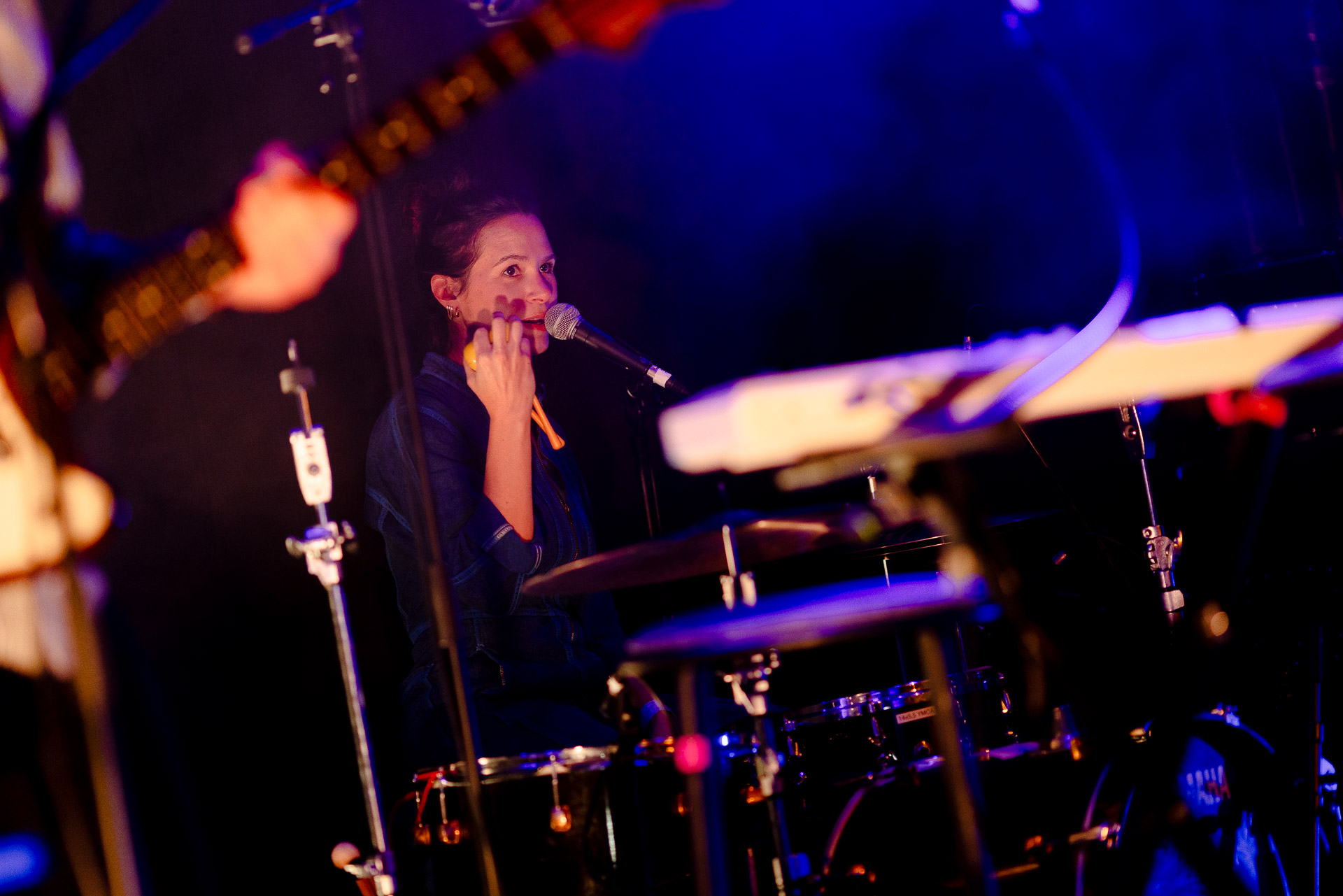 Clio est une de chanteuses pop françaises préférées mais bizarrement on ne l’avait jamais vue en concert pour l’instant, on était donc ravi de la voire programmée sur cette édition 2024 du festival Avec La Langue, organisé par la Fédéchanson. Trois jours de conférence pour les pros et trois soirs de concert pour tout le monde, avec une longue pause d’une heure au milieu de six concerts journaliers, tout cela dans le cadre douillet du Pan Piper, salle récente qu’on a peu l’occasion de pratiquer mais on commence à y avoir nos habitudes après trois éditions successives du festival. Vu le nombre d’artistes les sets sont un peu court, un demi-heure précisément pour chacun mais on est quand même ravi de découvrir une Clio très à l’aise sur scène et plutôt communicative, accompagnée d’un groupe complet , guitare-batterie-ckaviers, ce qui permet d’avoir à la fois l’émotion à fleur de peau, la fragilité et la mélancolie infusée dans la voix, les regards languissants mais aussi la dynamique, le côté pétillant, fantasque qu’on connaissait aux disques et leurs arrangements trèd pop, deux facettes qui semblent s’opposer mais se complètent pour rendre le personnage et la musique d’autant plus attachants