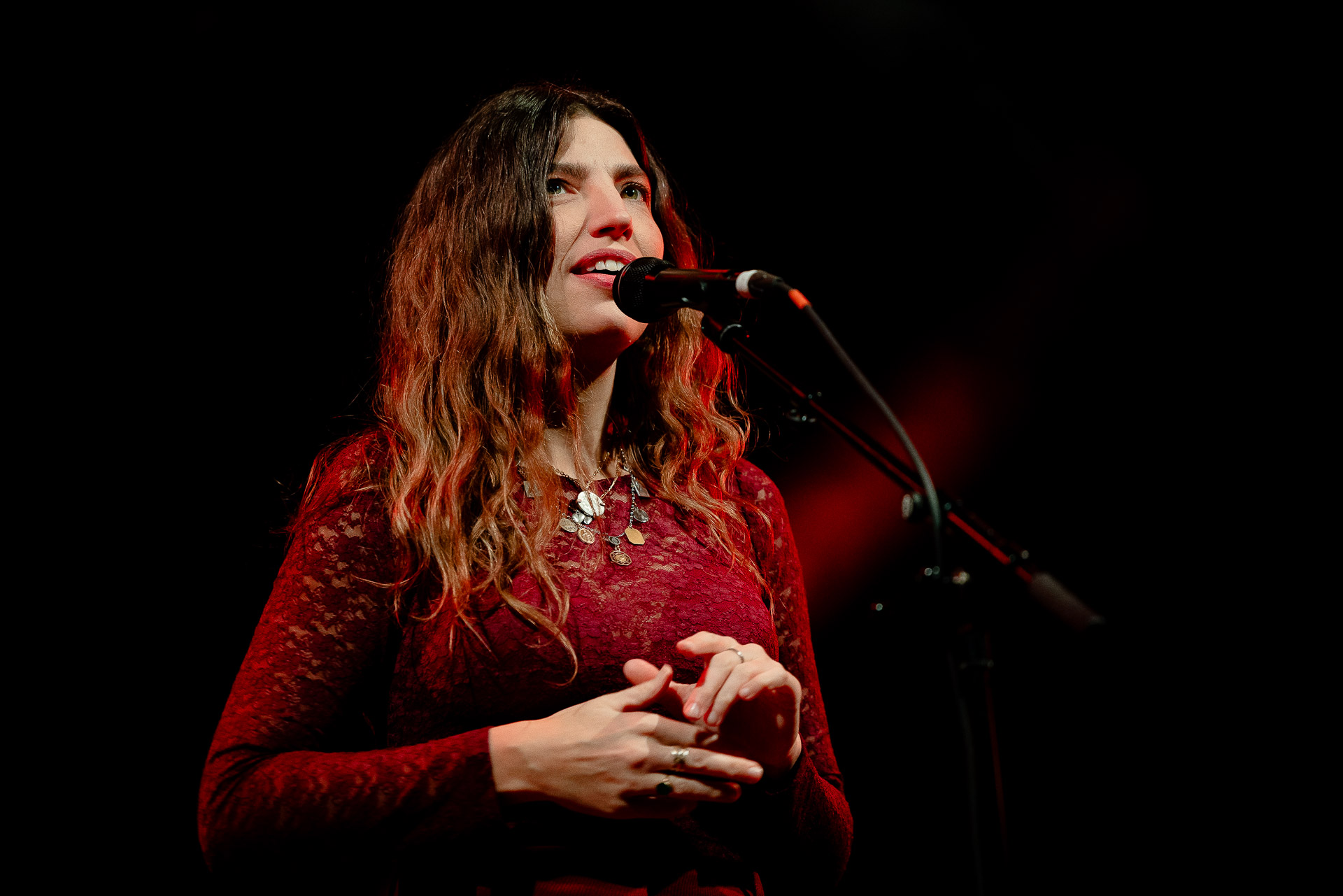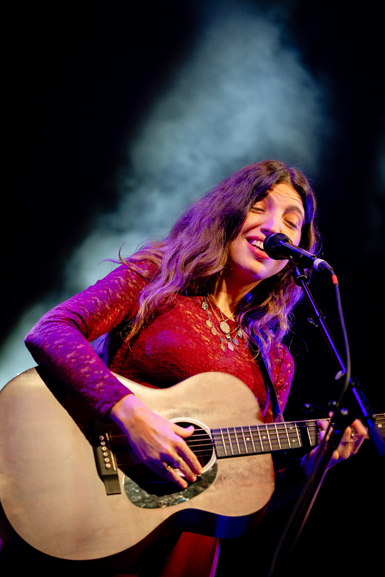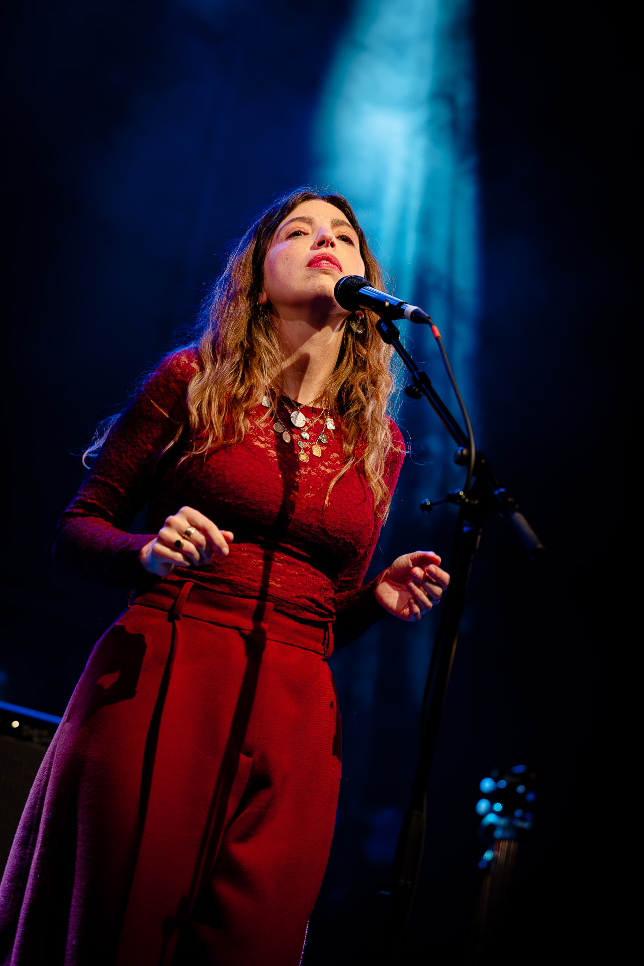Car comme sur nos autres fois, la chanteuse se garde toujours ses petits moments pour prendre des nouvelles du public, se livrer à une sorte de sondage récurrent pour savoir si les gens l’ont déjà vu, où, quand, en première partie de qui, s’ils sont du coin ou s’ils viennent de loin. Ce soir la plupart viennent des alentours, avec quelques pièces rapportées comme nous et si certains la connaissent depuis longtemps, d’autres découvrent Clou, à travers une setlist qui reprend une bonne partie du dernier album, dont le toujours très émouvant "A l’arrière de la voiture", la mélancolie rêveuse de "Gare de Lyon" ou la petite note positive, pétillante de "A l’évidence". "Bleus" elle est jouée juste avant "Rouge", tirée du première album, chanson-colère qui contraste avec les ambiances plus apaisées des titres du deuxième album, même si les deux évoquent les blessures familiales sur lesquelles Clou se confie dans le carnet de textes et dessins, "Doux Mots Dits". (Et on se demande si Clou prévoit de nommer une chanson "Blanc" pour le troisième album pour parfaire l’enchainement)