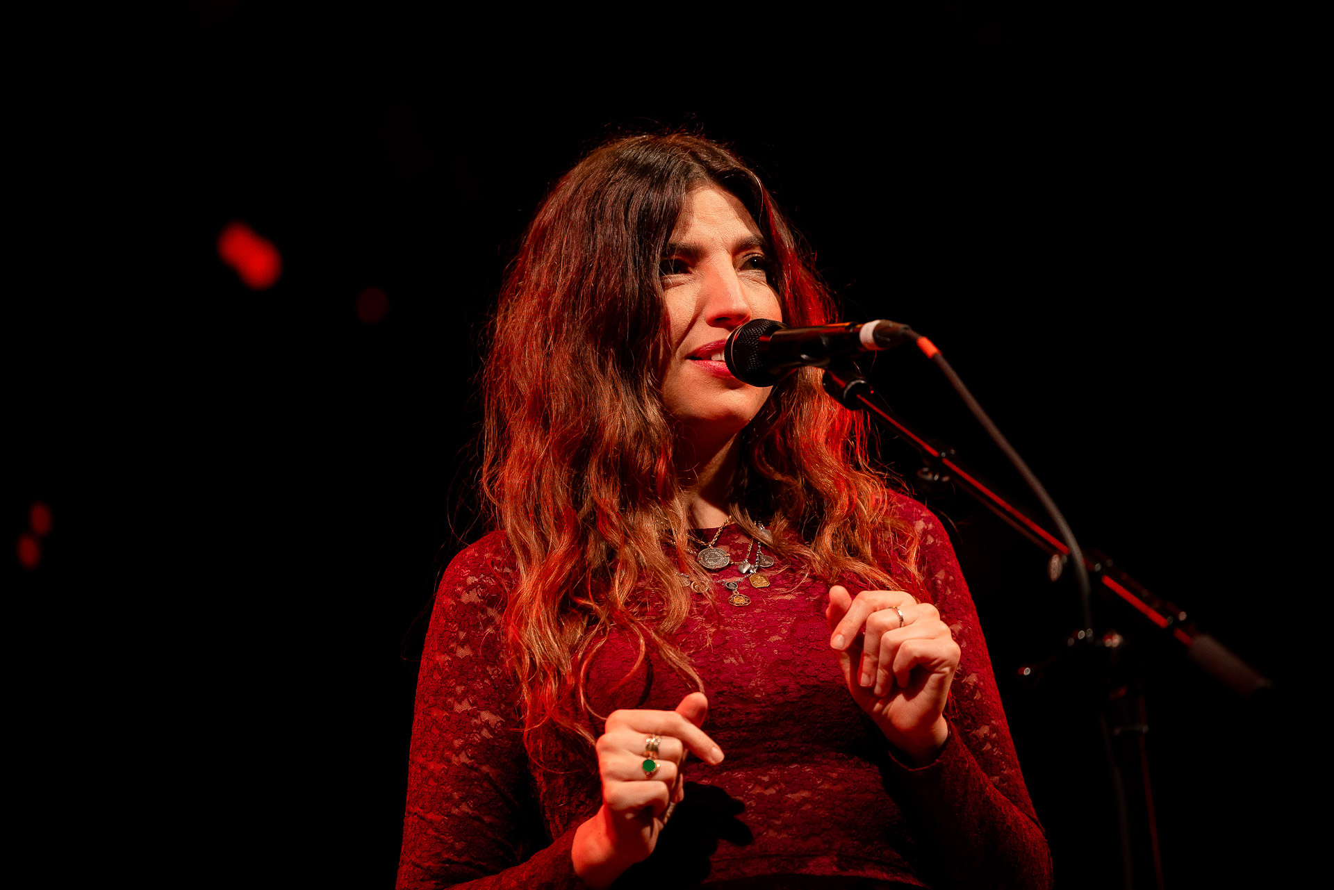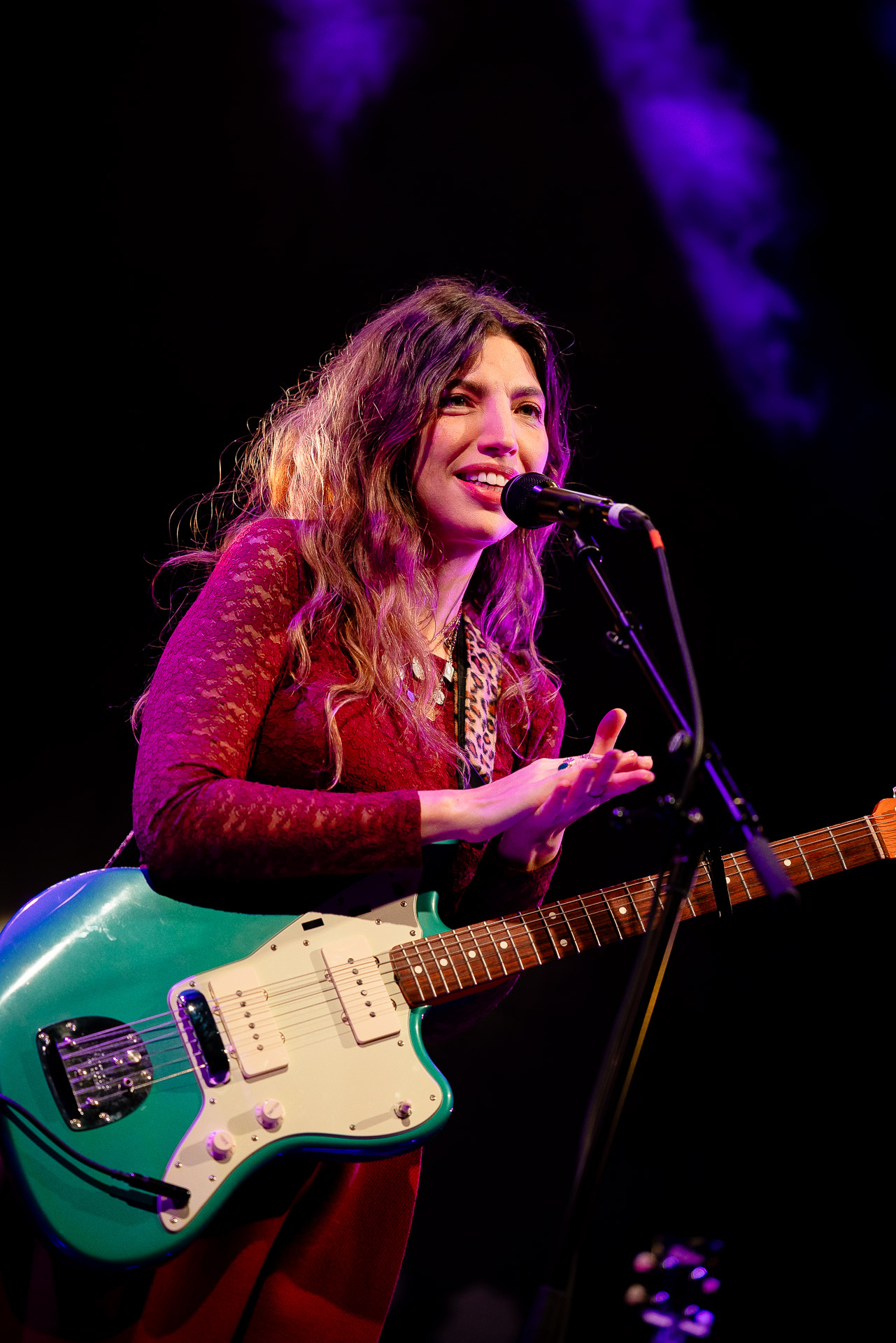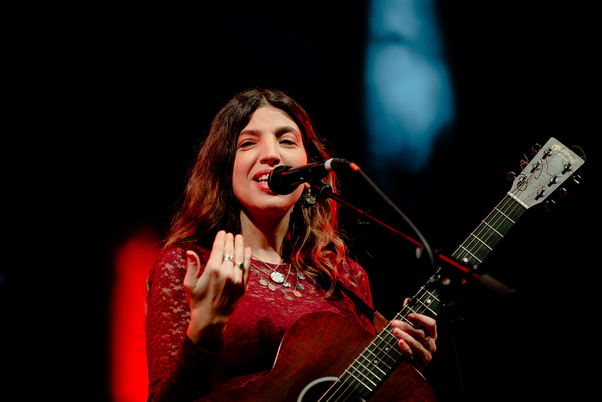 Car comme sur nos autres fois, la chanteuse se garde toujours ses petits moments pour prendre des nouvelles du public, se livrer à une sorte de sondage récurrent pour savoir si les gens l’ont déjà vu, où, quand, en première partie de qui, s’ils sont du coin ou s’ils viennent de loin. Ce soir la plupart viennent des alentours, avec quelques pièces rapportées comme nous et si certains la connaissent depuis longtemps, d’autres découvrent Clou, à travers une setlist qui reprend une bonne partie du dernier album, dont le toujours très émouvant "A l’arrière de la voiture", la mélancolie rêveuse de "Gare de Lyon" ou la petite note positive, pétillante de "A l’évidence". "Bleus" elle est jouée juste avant "Rouge", tirée du première album, chanson-colère qui contraste avec les ambiances plus apaisées des titres du deuxième album, même si les deux évoquent les blessures familiales sur lesquelles Clou se confie dans le carnet de textes et dessins, "Doux Mots Dits". (Et on se demande si Clou prévoit de nommer une chanson "Blanc" pour le troisième album pour parfaire l’enchainement)