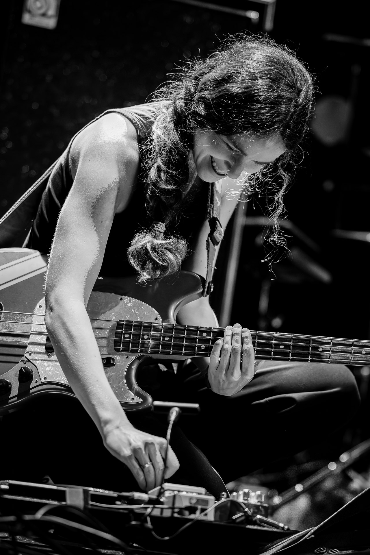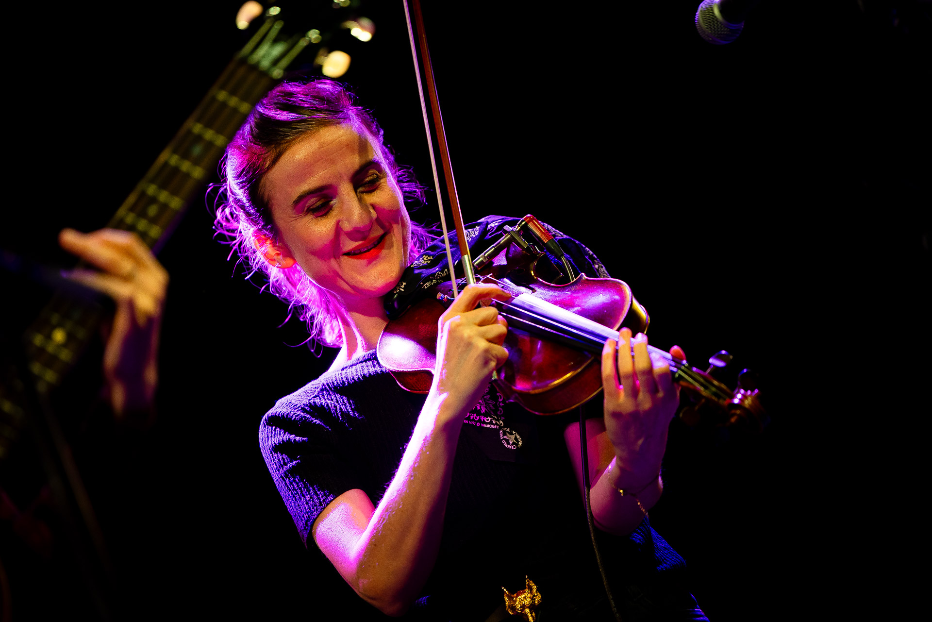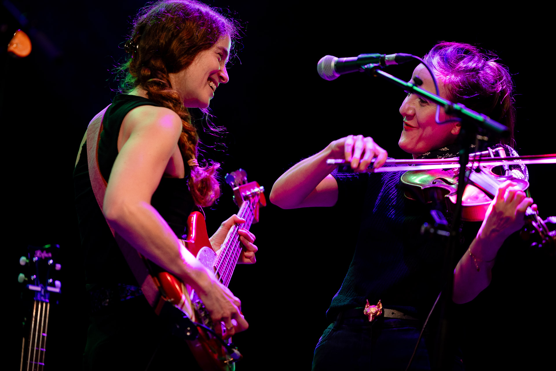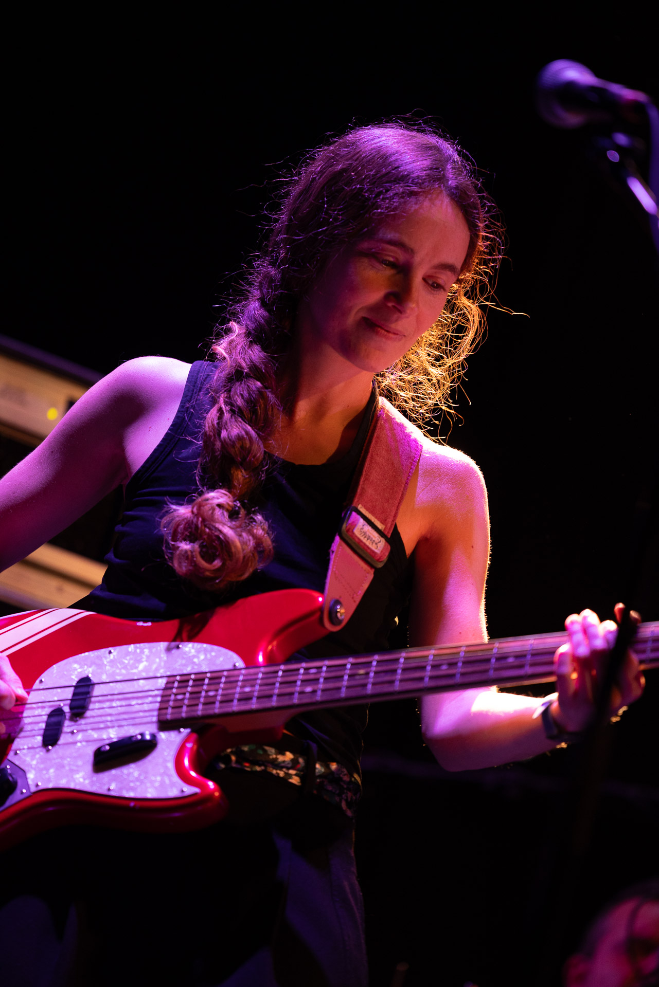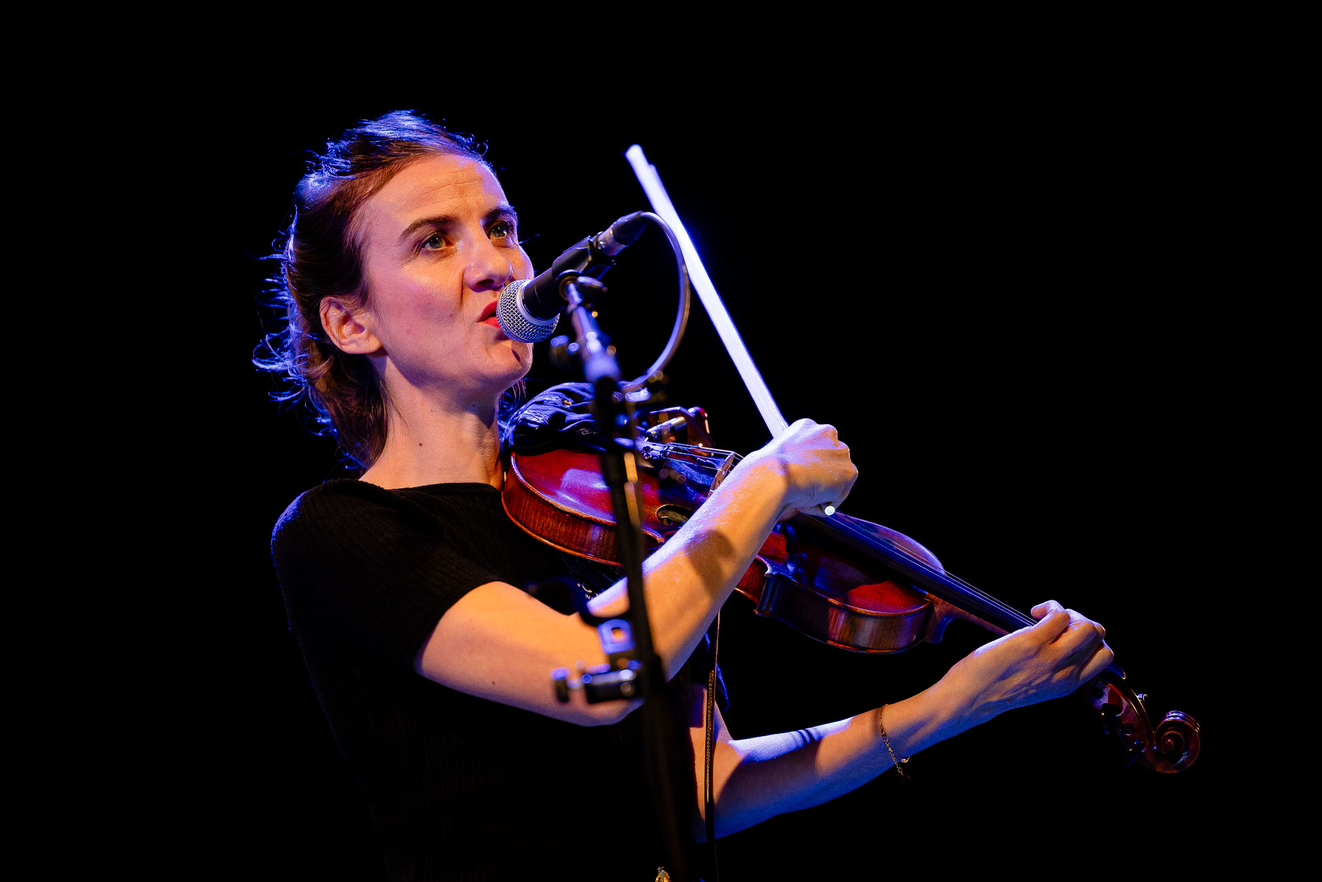 On ne l’a plus entendu après le début du concert : si la musique de Clou reste plutôt pop/folk, la talentueuse bande qui l’accompagne depuis le début de la tournée s’est depuis totalement approprié les morceaux des deux albums de Clou qu’ils interprètent, les approches sont variées, du "Chant de Noël", toute suave et gentil en apparence mais qui dresse un portait au vitriol les Noëls en famille de l’enfance de la chanteuse, à des parties instrumentales qui montent en puissance, en passant par un rythme presque zouk le temps d’un morceau. La basse de Marie Lalonde toujours souriante et décontractée, est souvent sur le devant, tandis que Christelle Lassort nous régale au violon d’arrangements qui n’appartiennent qu’à ces version live. Derrière les fûts, David Gerbi adapte parfaitement sa frappe aux titres le plus doux comme aux moments où il faut amener un peu plus de force et de présence rythmique. Il chante aussi la partie de PML sur le titre "Sans Avion" sorti récemment. Et Comme il donne des cours de batterie au Blanc-Mesnil et que certains de ces élèves présents ce soir, il se fera chambrer toute la soirée par Clou.
