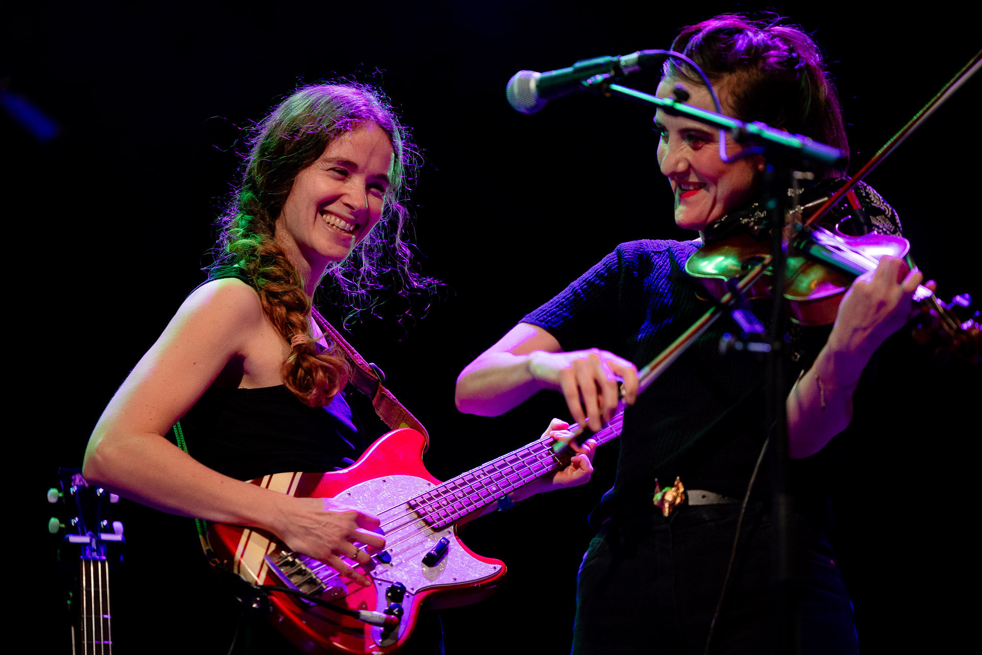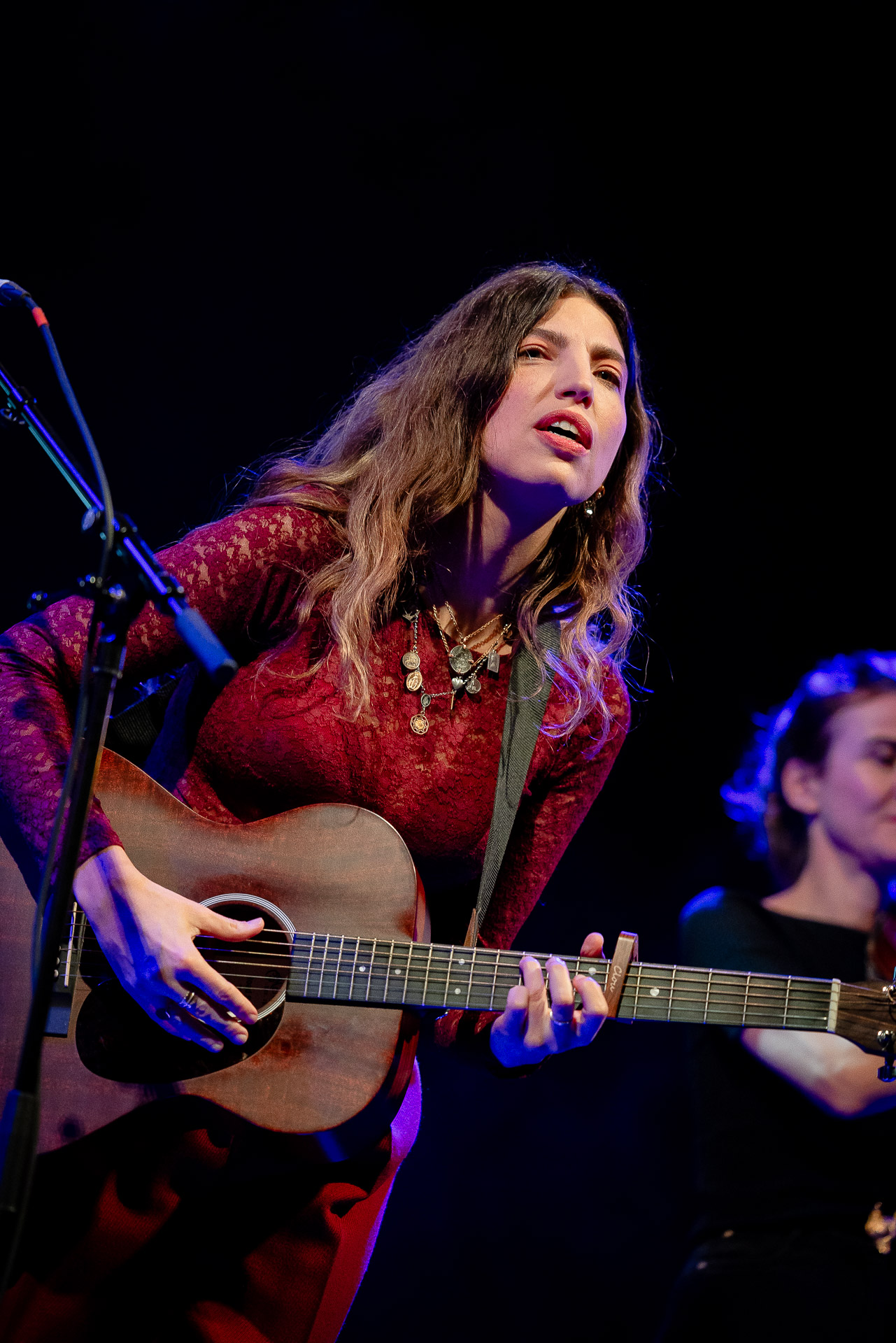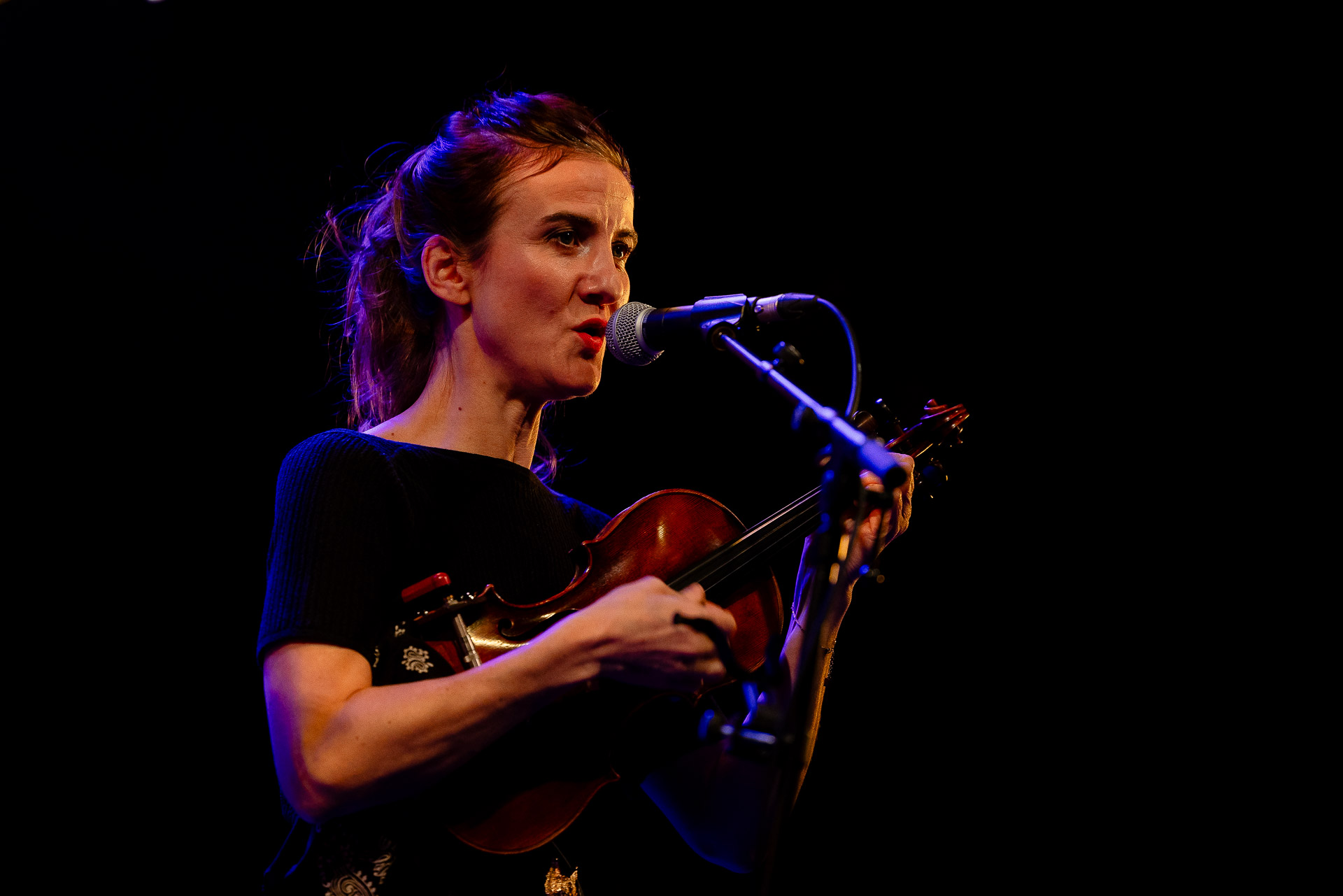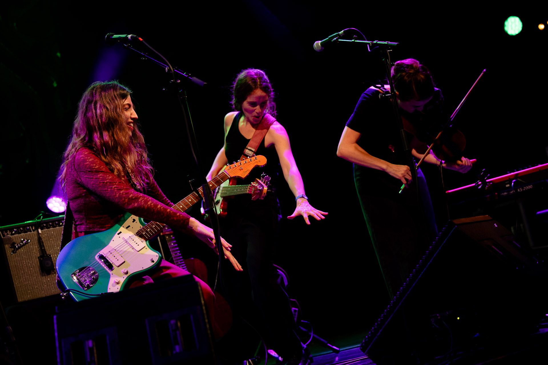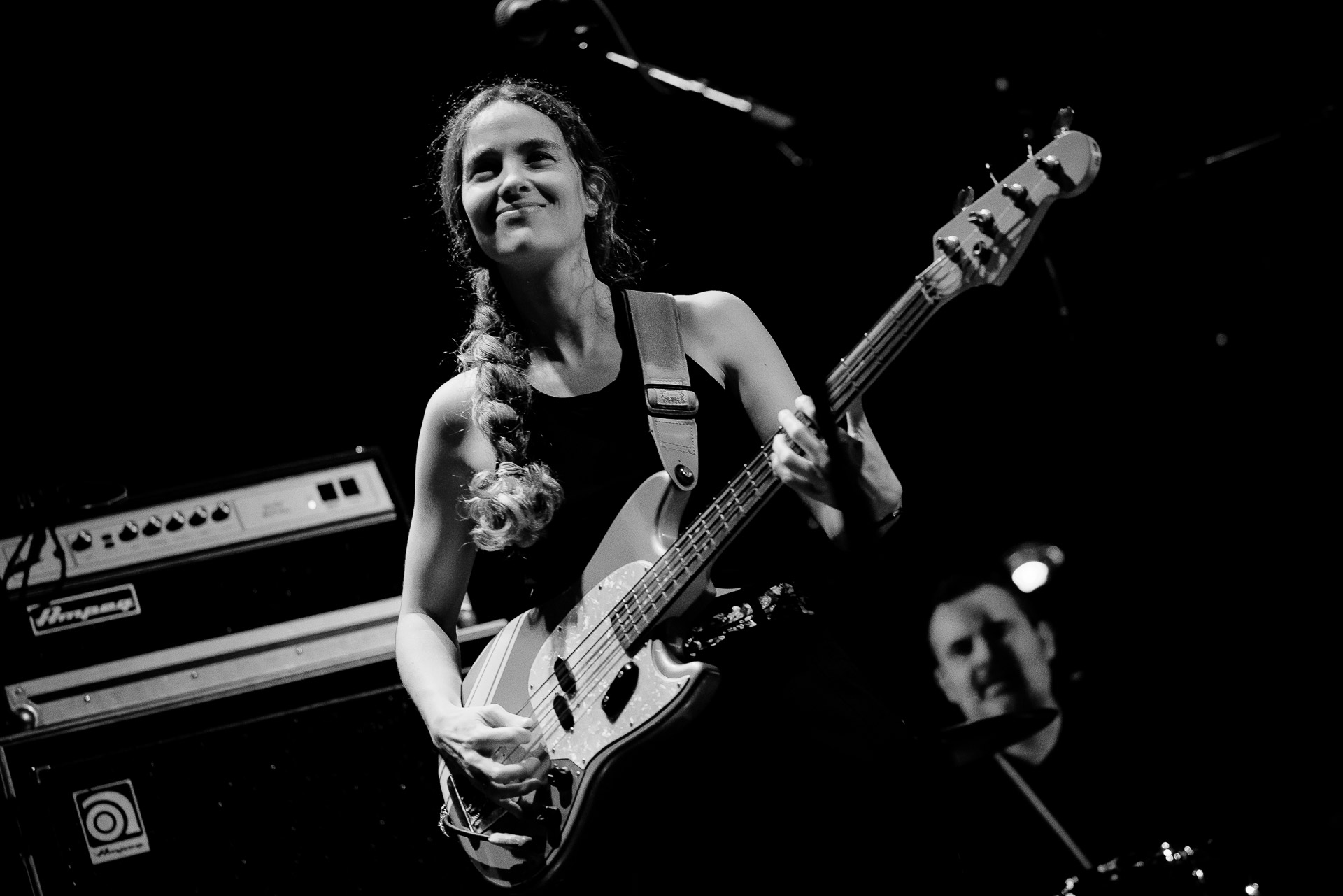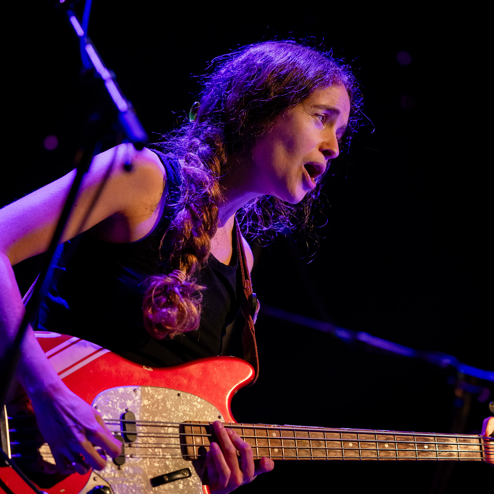 On ne l’a plus entendu après le début du concert : si la musique de Clou reste plutôt pop/folk, la talentueuse bande qui l’accompagne depuis le début de la tournée s’est depuis totalement approprié les morceaux des deux albums de Clou qu’ils interprètent, les approches sont variées, du "Chant de Noël", toute suave et gentil en apparence mais qui dresse un portait au vitriol les Noëls en famille de l’enfance de la chanteuse, à des parties instrumentales qui montent en puissance, en passant par un rythme presque zouk le temps d’un morceau. La basse de Marie Lalonde toujours souriante et décontractée, est souvent sur le devant, tandis que Christelle Lassort nous régale au violon d’arrangements qui n’appartiennent qu’à ces version live. Derrière les fûts, David Gerbi adapte parfaitement sa frappe aux titres le plus doux comme aux moments où il faut amener un peu plus de force et de présence rythmique. Il chante aussi la partie de PML sur le titre "Sans Avion" sorti récemment. Et Comme il donne des cours de batterie au Blanc-Mesnil et que certains de ces élèves présents ce soir, il se fera chambrer toute la soirée par Clou.