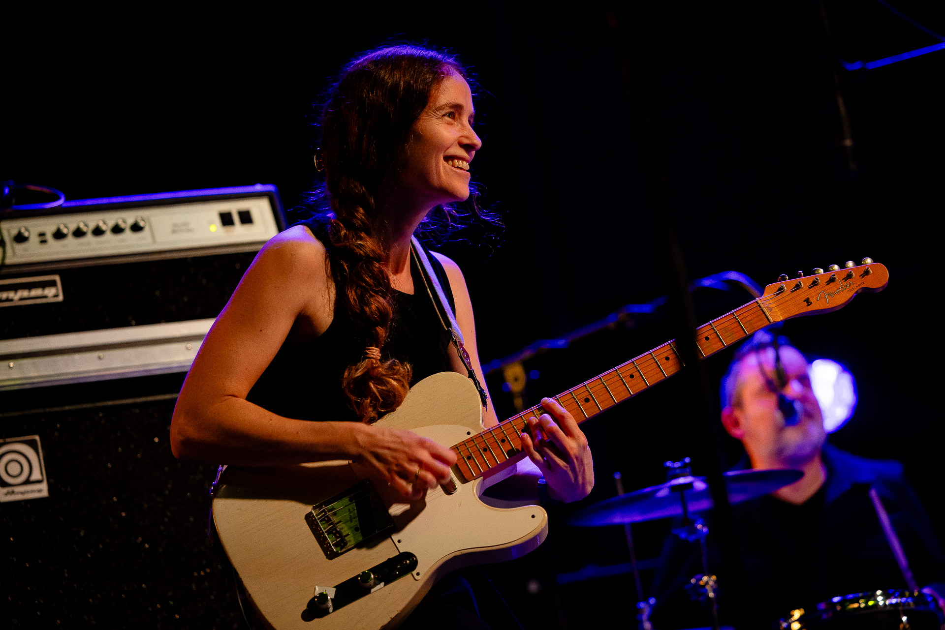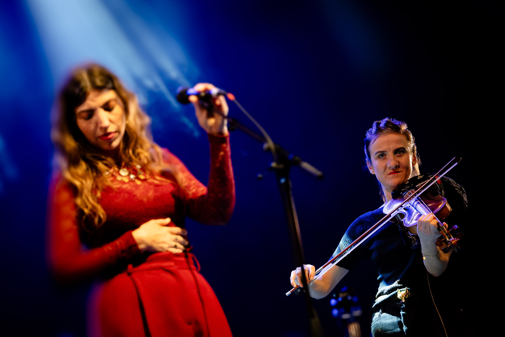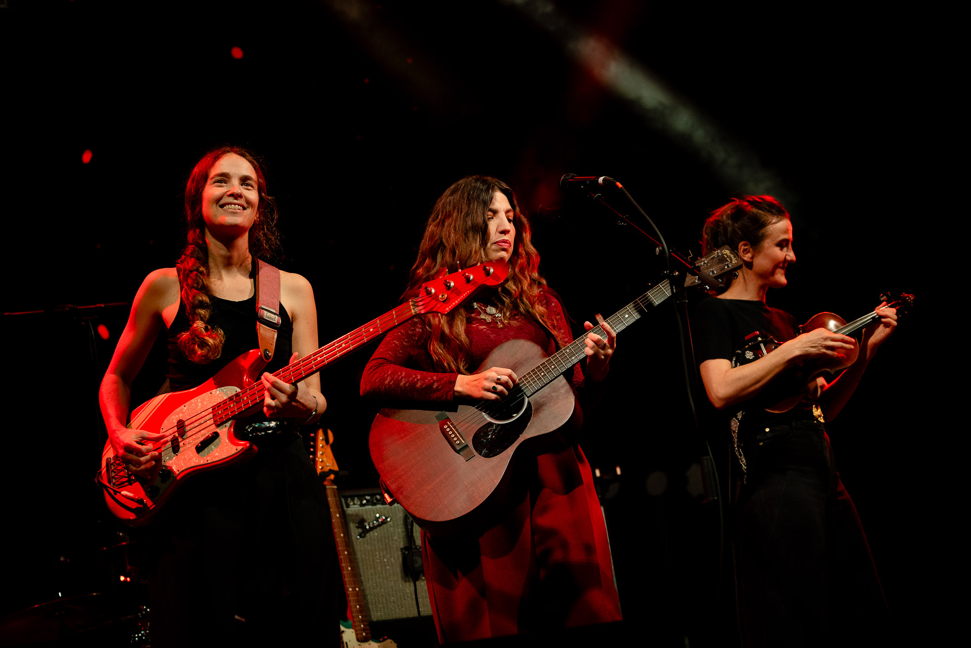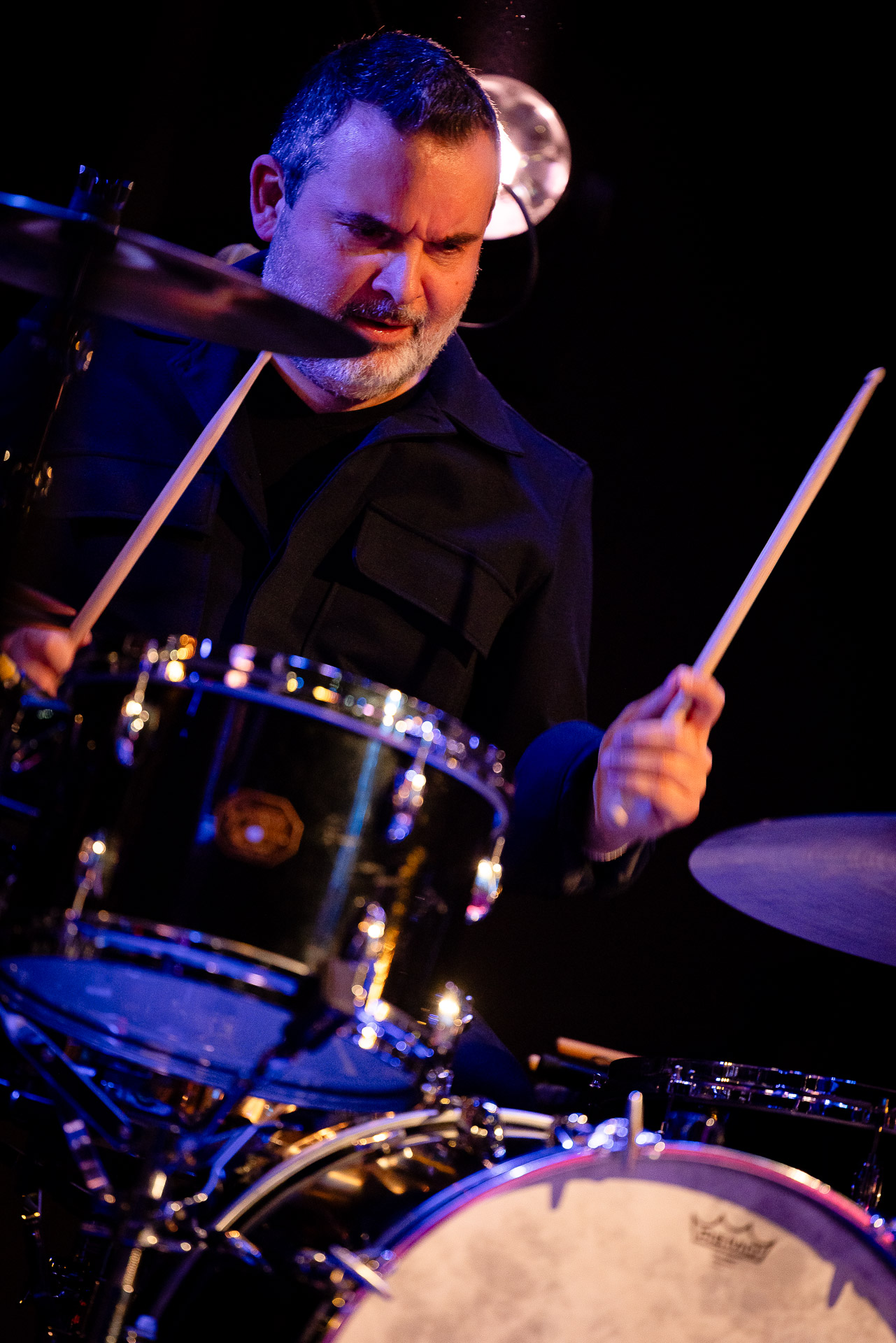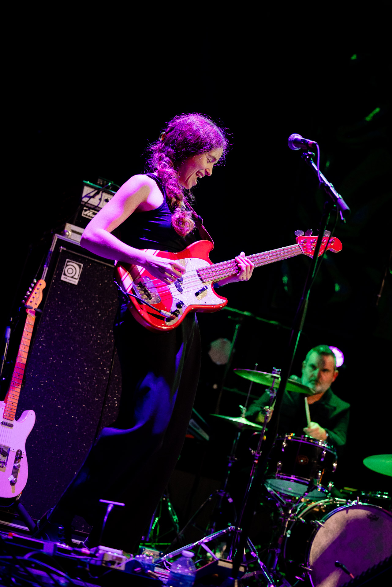 On ne l’a plus entendu après le début du concert : si la musique de Clou reste plutôt pop/folk, la talentueuse bande qui l’accompagne depuis le début de la tournée s’est depuis totalement approprié les morceaux des deux albums de Clou qu’ils interprètent, les approches sont variées, du "Chant de Noël", toute suave et gentil en apparence mais qui dresse un portait au vitriol les Noëls en famille de l’enfance de la chanteuse, à des parties instrumentales qui montent en puissance, en passant par un rythme presque zouk le temps d’un morceau. La basse de Marie Lalonde toujours souriante et décontractée, est souvent sur le devant, tandis que Christelle Lassort nous régale au violon d’arrangements qui n’appartiennent qu’à ces version live. Derrière les fûts, David Gerbi adapte parfaitement sa frappe aux titres le plus doux comme aux moments où il faut amener un peu plus de force et de présence rythmique. Il chante aussi la partie de PML sur le titre "Sans Avion" sorti récemment. Et Comme il donne des cours de batterie au Blanc-Mesnil et que certains de ces élèves présents ce soir, il se fera chambrer toute la soirée par Clou.