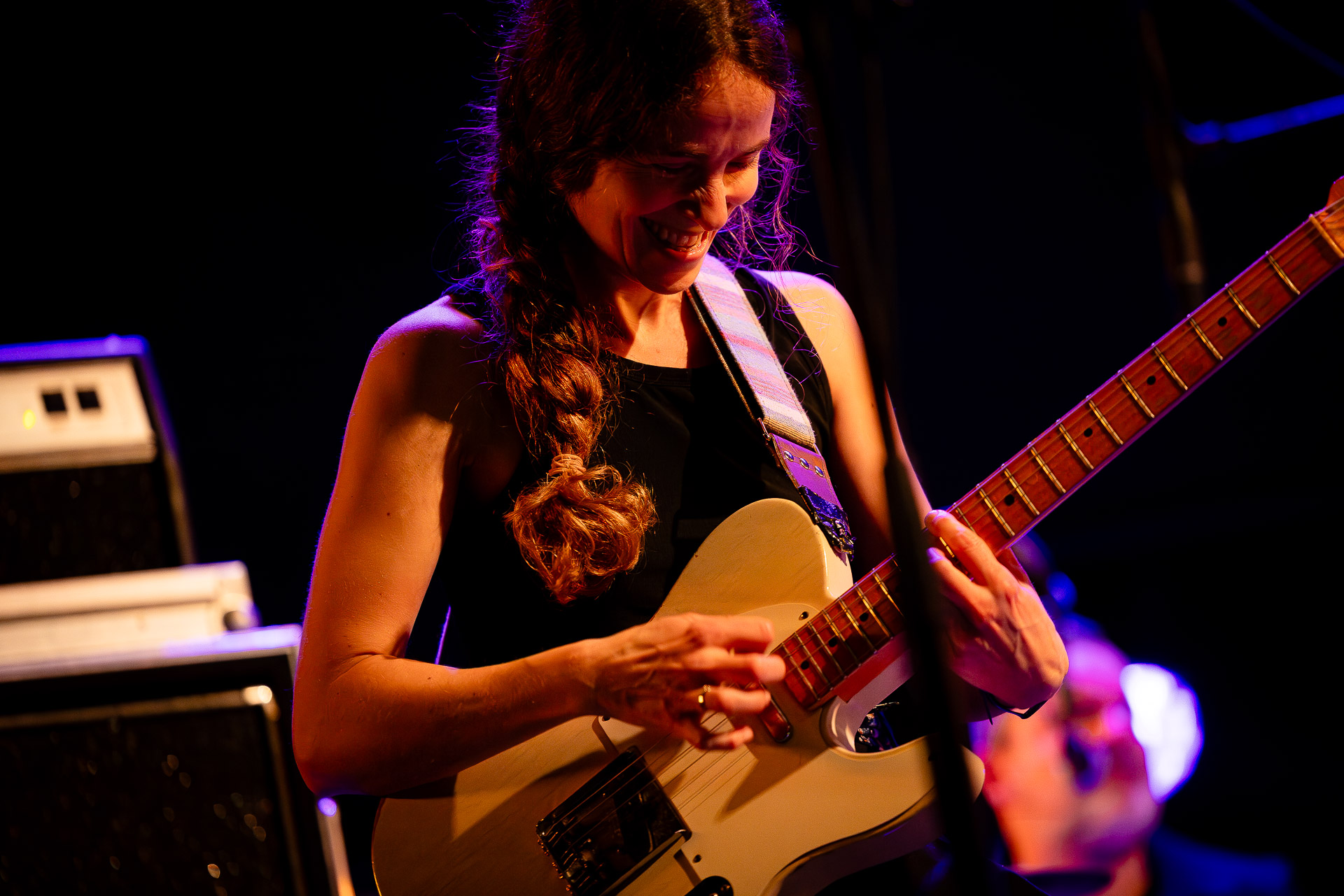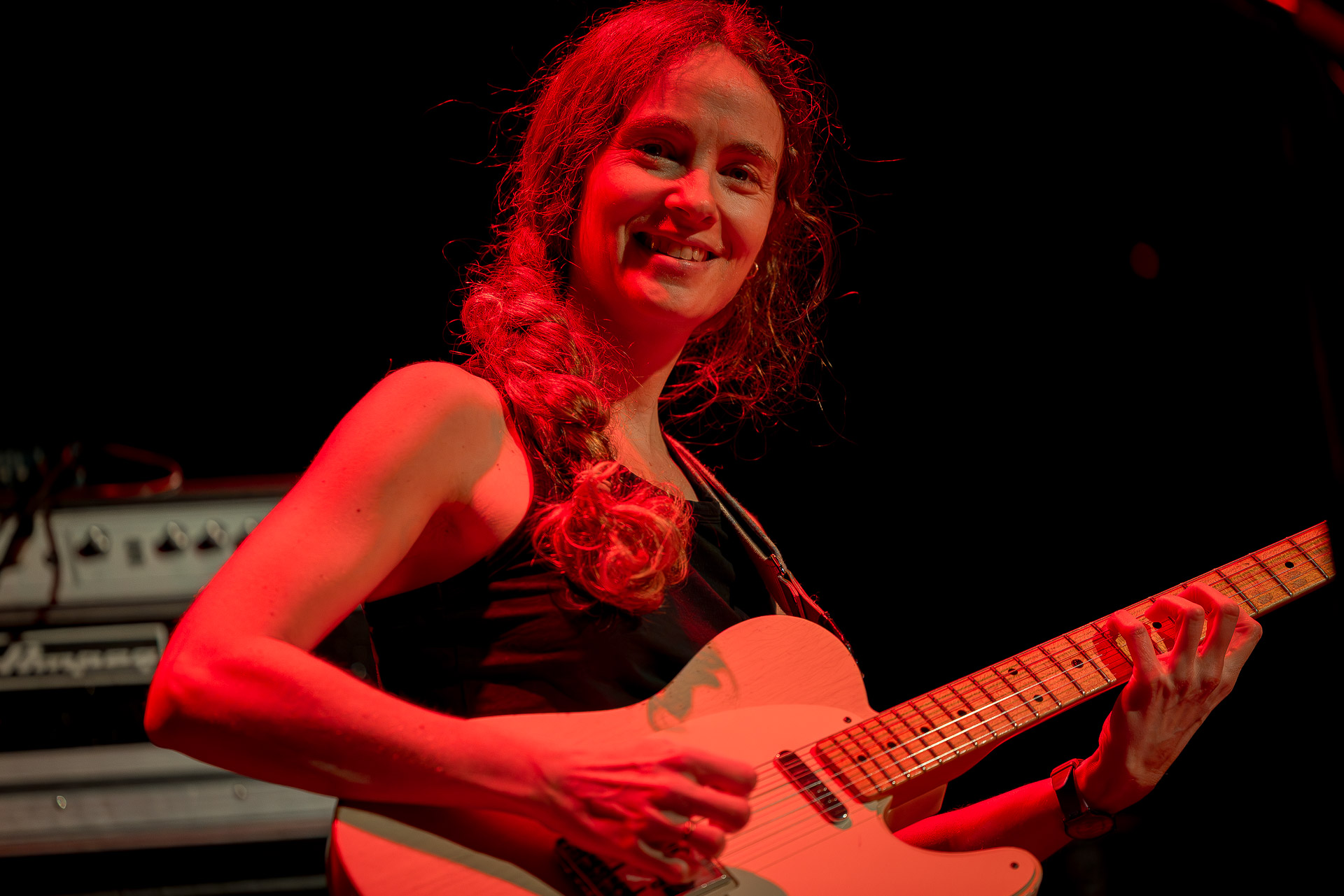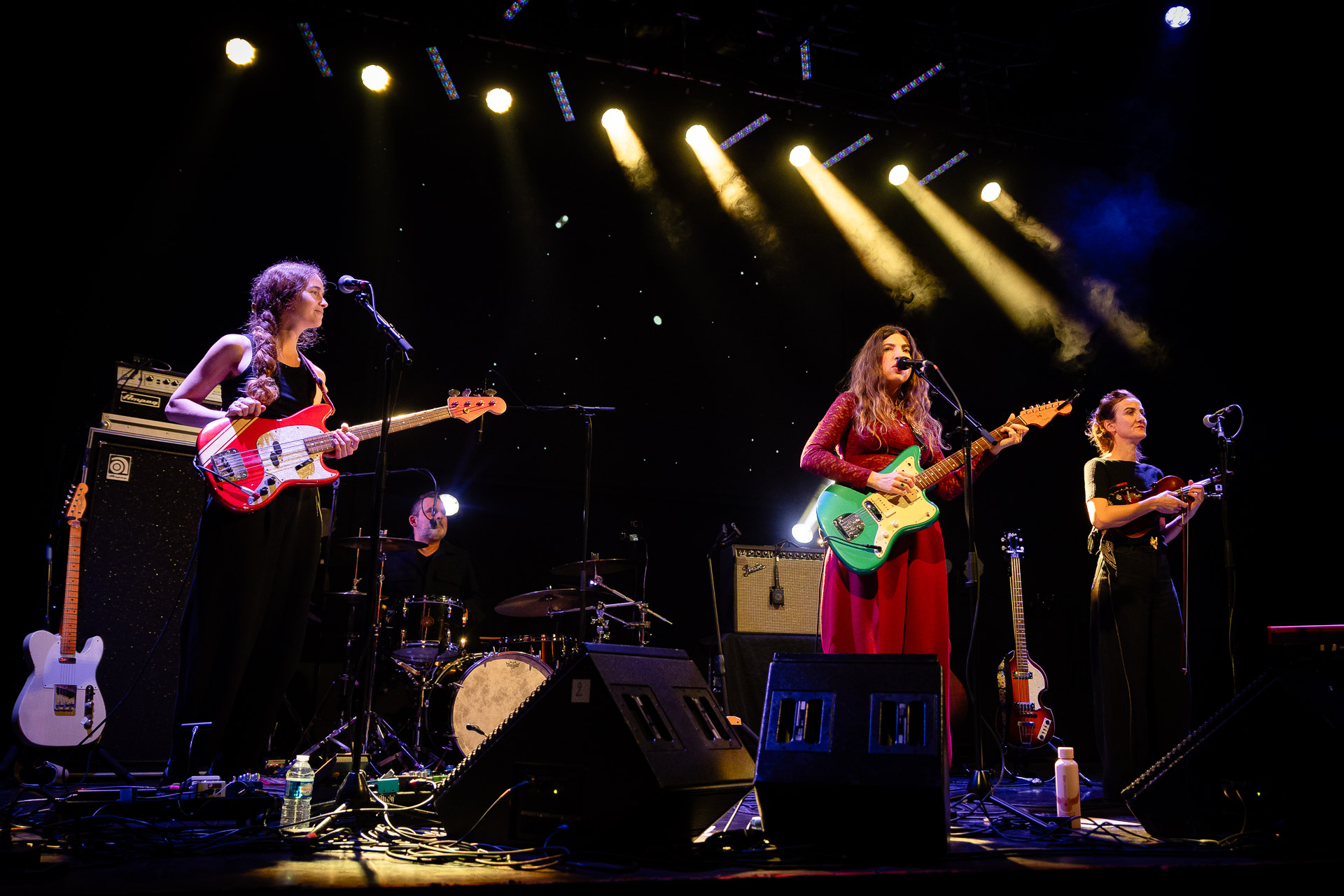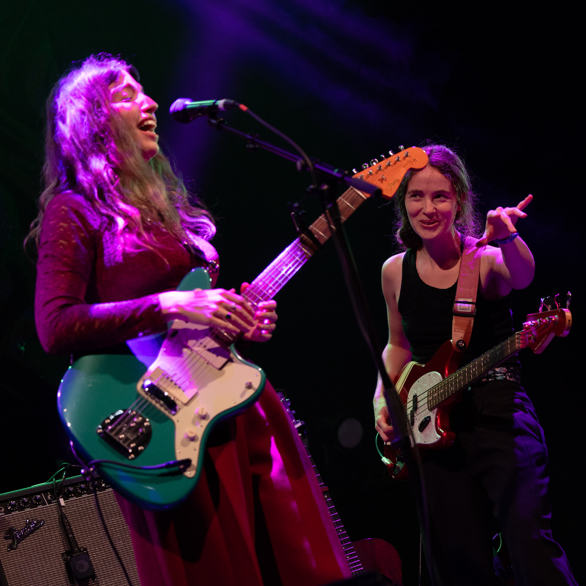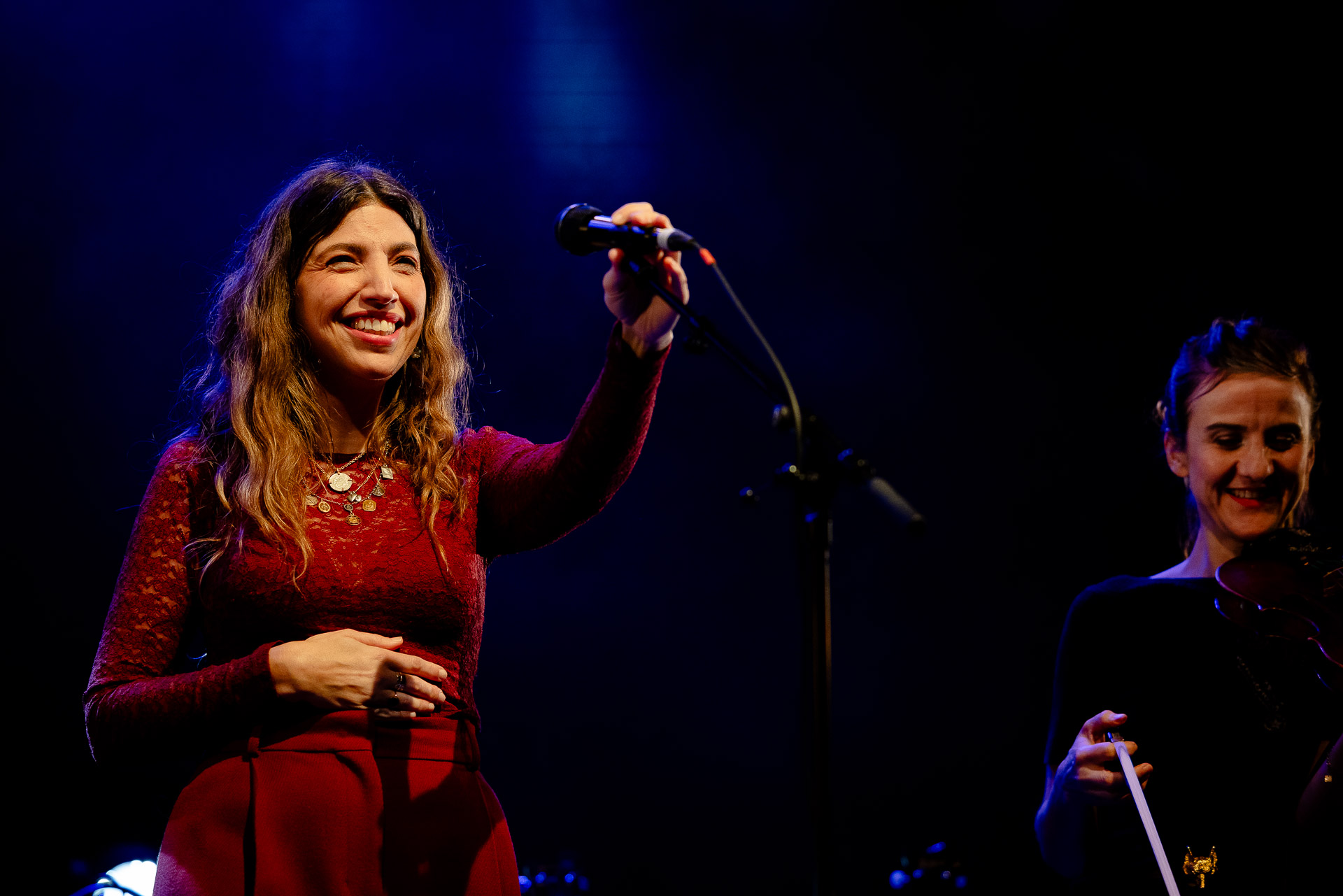 On ne l’a plus entendu après le début du concert : si la musique de Clou reste plutôt pop/folk, la talentueuse bande qui l’accompagne depuis le début de la tournée s’est depuis totalement approprié les morceaux des deux albums de Clou qu’ils interprètent, les approches sont variées, du "Chant de Noël", toute suave et gentil en apparence mais qui dresse un portait au vitriol les Noëls en famille de l’enfance de la chanteuse, à des parties instrumentales qui montent en puissance, en passant par un rythme presque zouk le temps d’un morceau. La basse de Marie Lalonde toujours souriante et décontractée, est souvent sur le devant, tandis que Christelle Lassort nous régale au violon d’arrangements qui n’appartiennent qu’à ces version live. Derrière les fûts, David Gerbi adapte parfaitement sa frappe aux titres le plus doux comme aux moments où il faut amener un peu plus de force et de présence rythmique. Il chante aussi la partie de PML sur le titre "Sans Avion" sorti récemment. Et Comme il donne des cours de batterie au Blanc-Mesnil et que certains de ces élèves présents ce soir, il se fera chambrer toute la soirée par Clou.