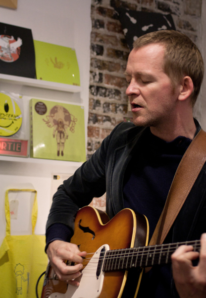 Nous décrivions récemment La chirurgie des sentiments comme un album dont l’écoute rend heureux. Que dire alors d’un showcase de Françoiz Breut et de ses musiciens dans l’espace intimiste et cosy de la Fabrique Balades Sonores ? Un instant magique pour la poignée de chanceux rassemblés là. Retrouvailles chaleureuses avec d’anciennes chansons (« La femme sans histoire » ou « La vie devant soi » en duo avec le guitariste Stéphane Daubersy), belles versions parfois surprenantes des titres du dernier album, dont un enchaînement parfait de « Michka Soka » et de « La chirurgie des sentiments » aux accents quasi psychédéliques, qui conclut le showcase sur des chœurs envoûtants.