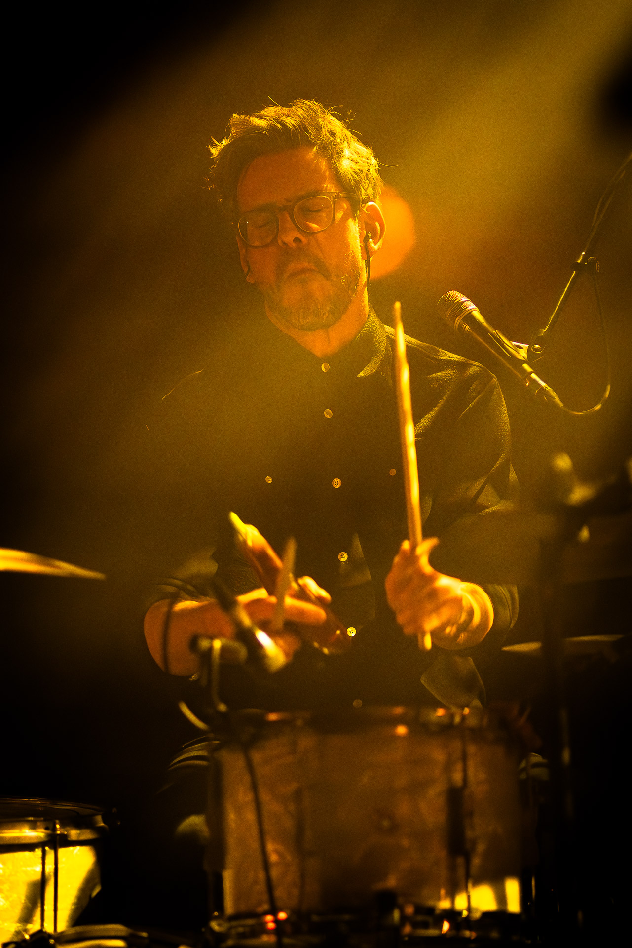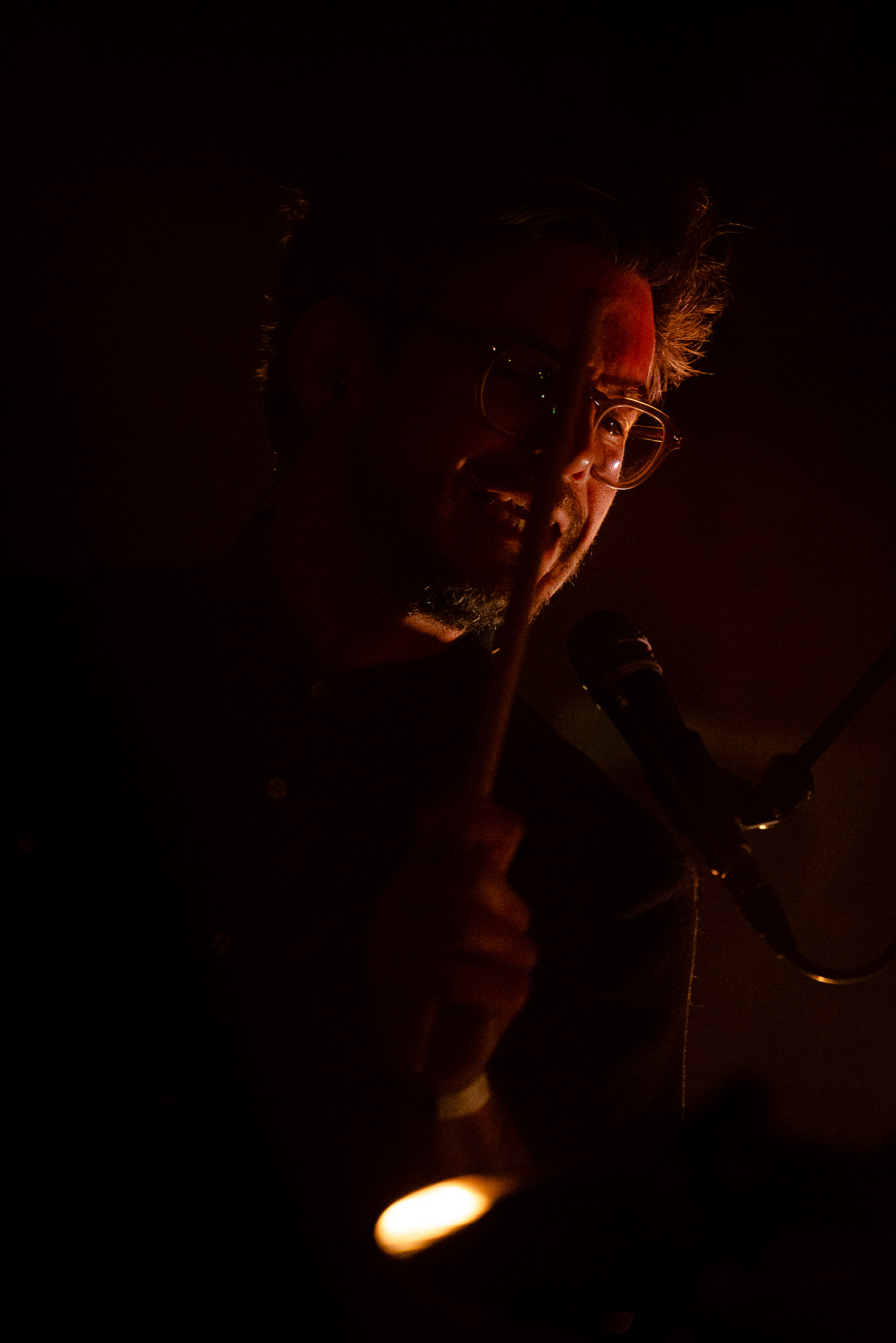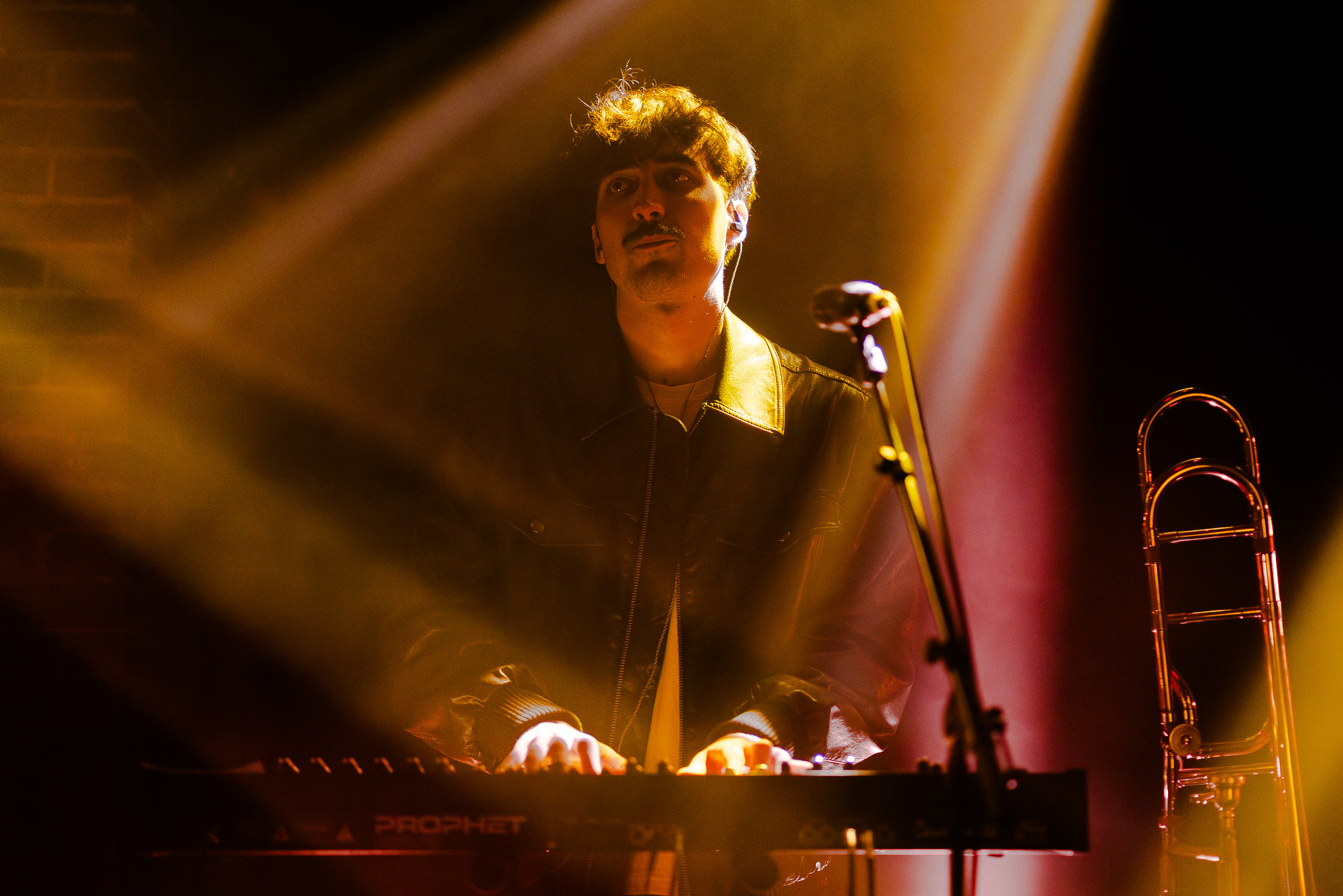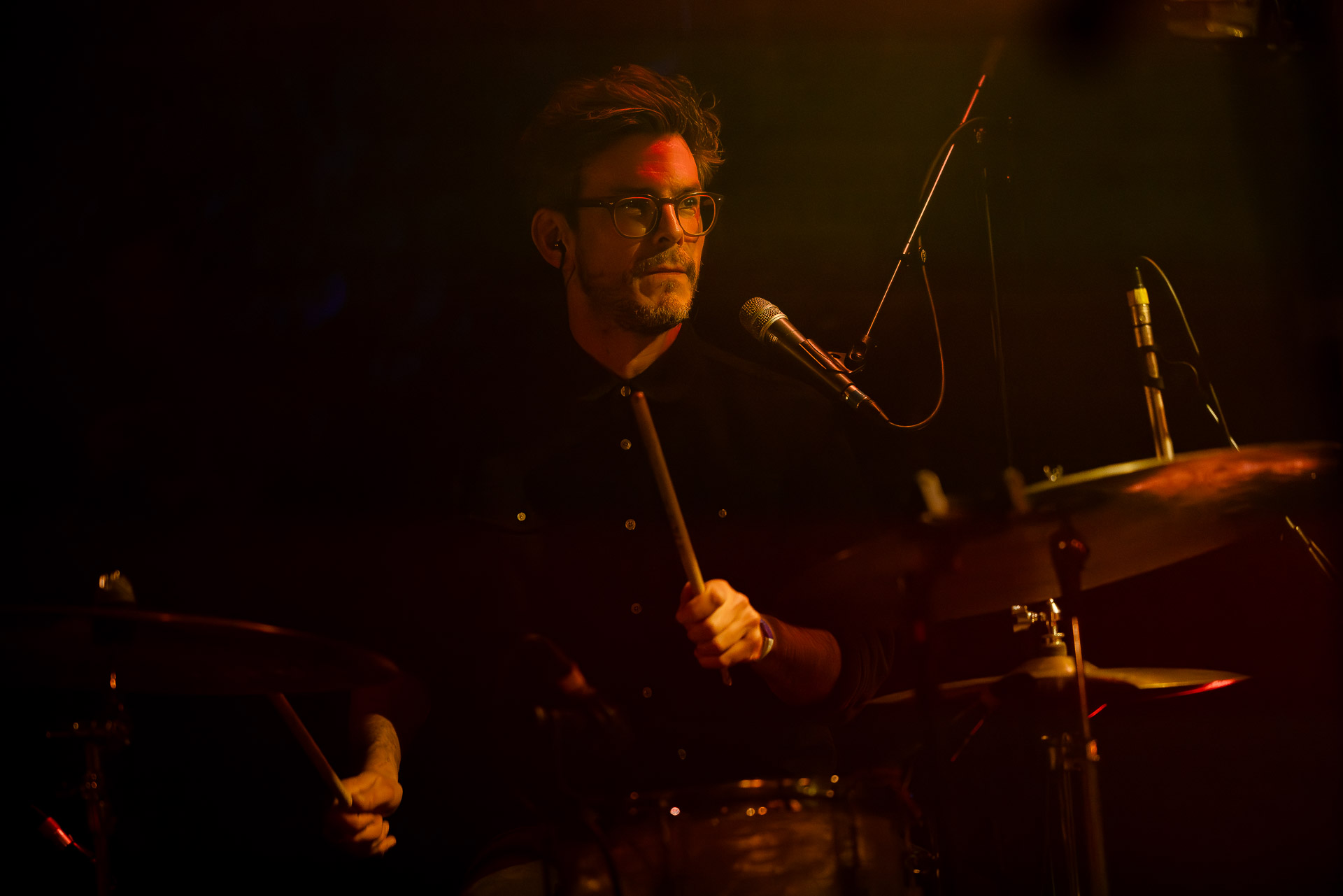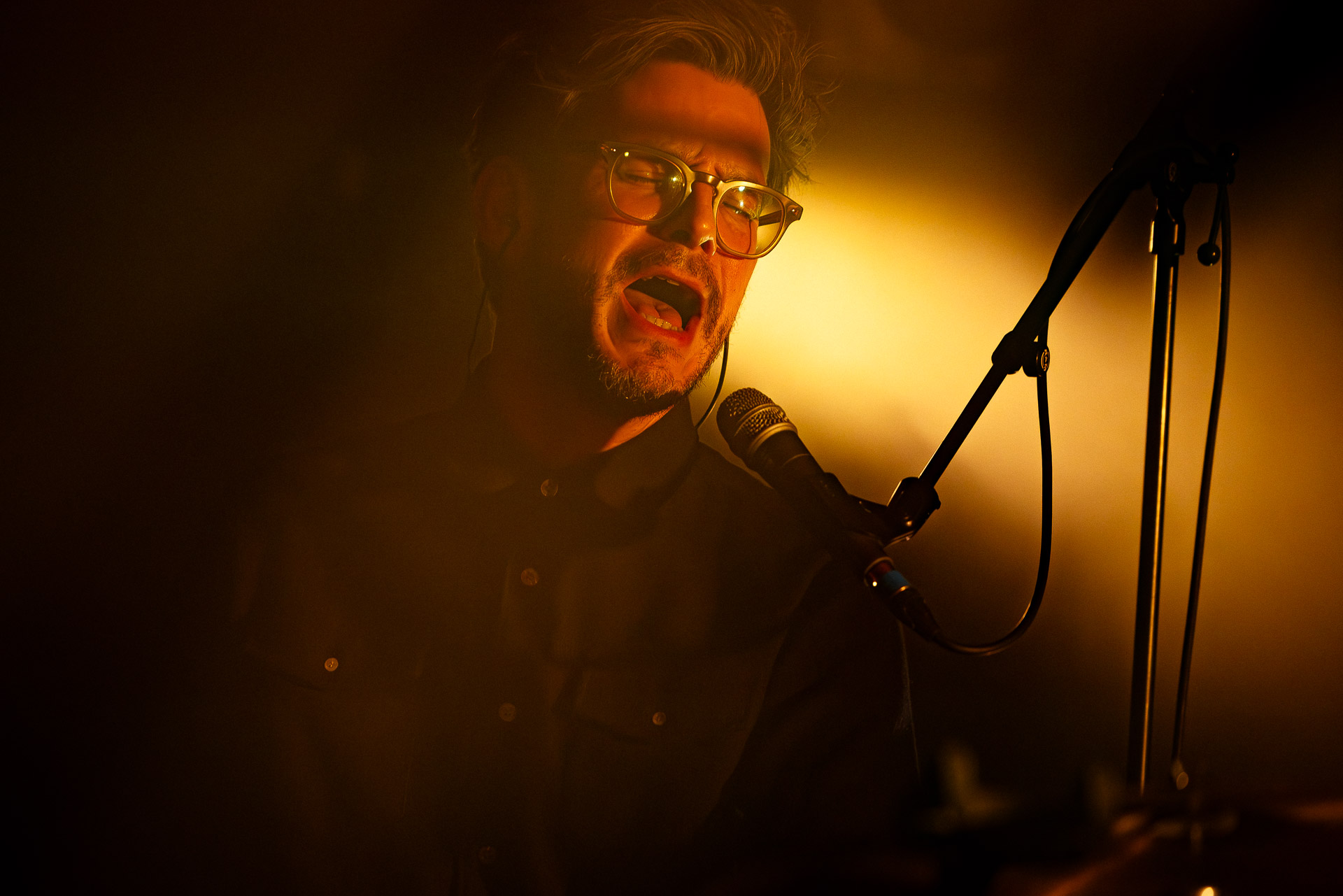 Avec bientôt une décennie de disques (deux albums, trois EPs et pas mal de titres en "single"), Hugo a largement de quoi construire une setlist qui revisite un peu tout son parcours depuis Yelllow sorti en 2019 avec les tubesques "Oh My", "Forgiveness", en passant par Everywhere/Anywhere avec "High Hopes", "Long way from Home" ou encore "Je Pars avec toi", jusqu’à l’EP "As it is" sorti cette année. une bonne partie du show est jouée "full band", avec la batterie et la guitare électrique mais Hugo a aussi prévu un petit clin d’œil à ses débuts en solo avec une pause "unplugged", où les musiciens sont réunis autour de la guitare de Hugo et d’un unique micro, à peine éclairés par les quelques ampoules autour de la scène. Ils jouent "Always", autre titre marquant du premier album dont on se rappelle qu’ils étaient descendu le jouer dansla fosse du café de la Danse il y a quelques années