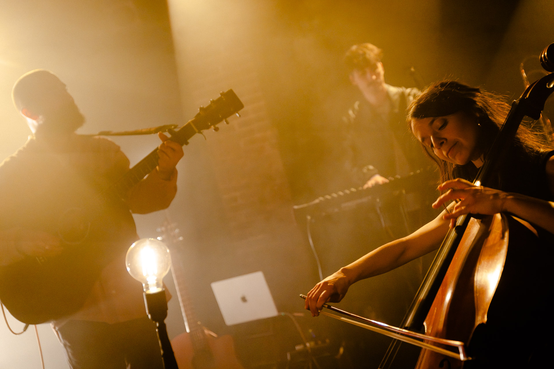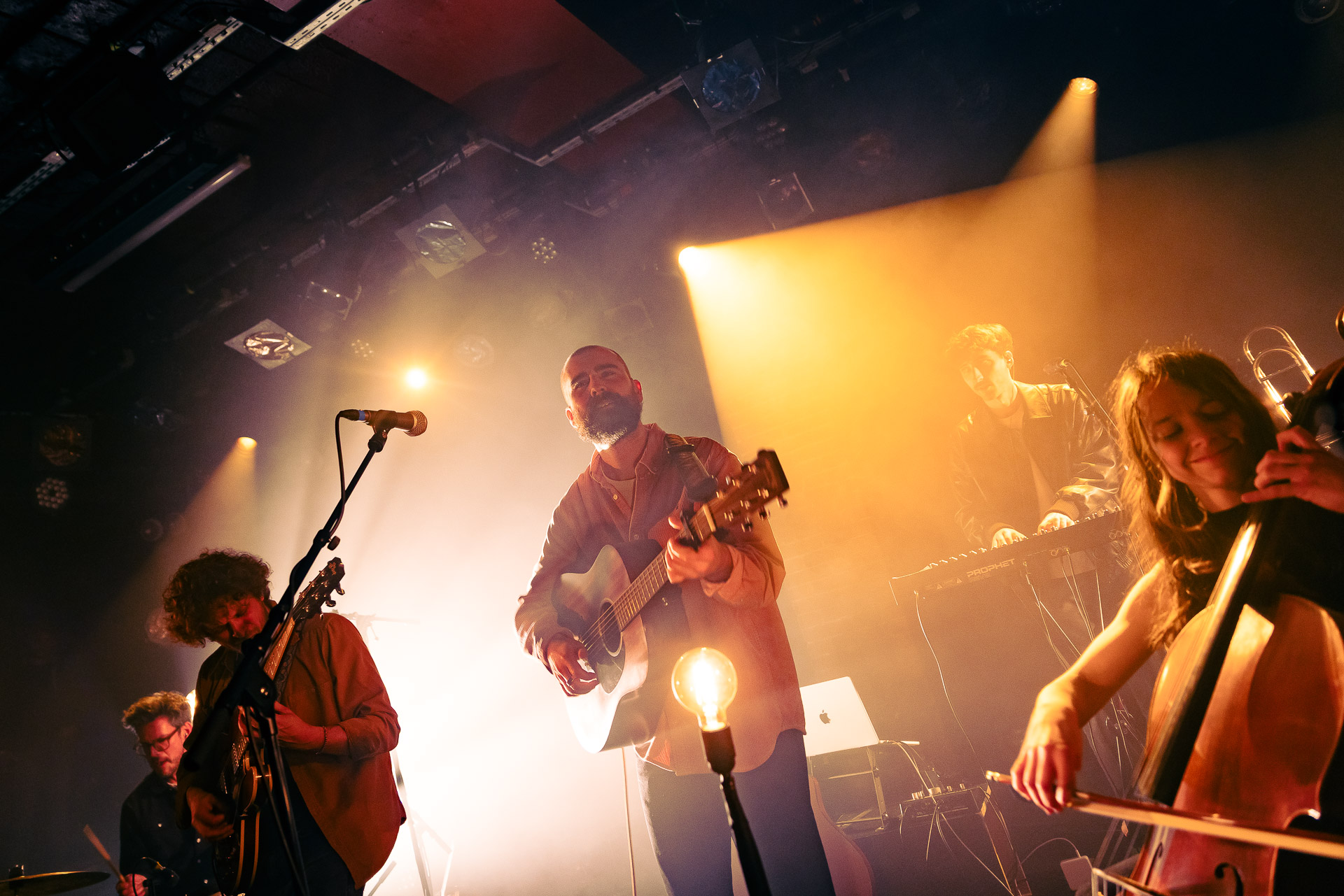 En fin de concert, Cécile Lacharme qui assurait la première partie et que Hugo a rencontré sur une tournée commune en Australie, vient rejoindre le groupe avec son violoncelle, un instrument déjà présent sur les disques d’Hugo et qui s’intègre à merveille à sa folk, y injecte une dose supplémentaire d’émotions autour du chant mais vient aussi appuyer un gros crescendo instrumental où Diego quitte son côté gauche de la scène pour passer sur le devant au moment où la guitare tout comme la batterie musclent le jeu, tout comme l’archet de Cécile. On aurait presque pu s’arrêter là, mais on sent qu’Hugo a envie de faire durer le plaisir et on aura droit à un long rappel avant de se quitter.