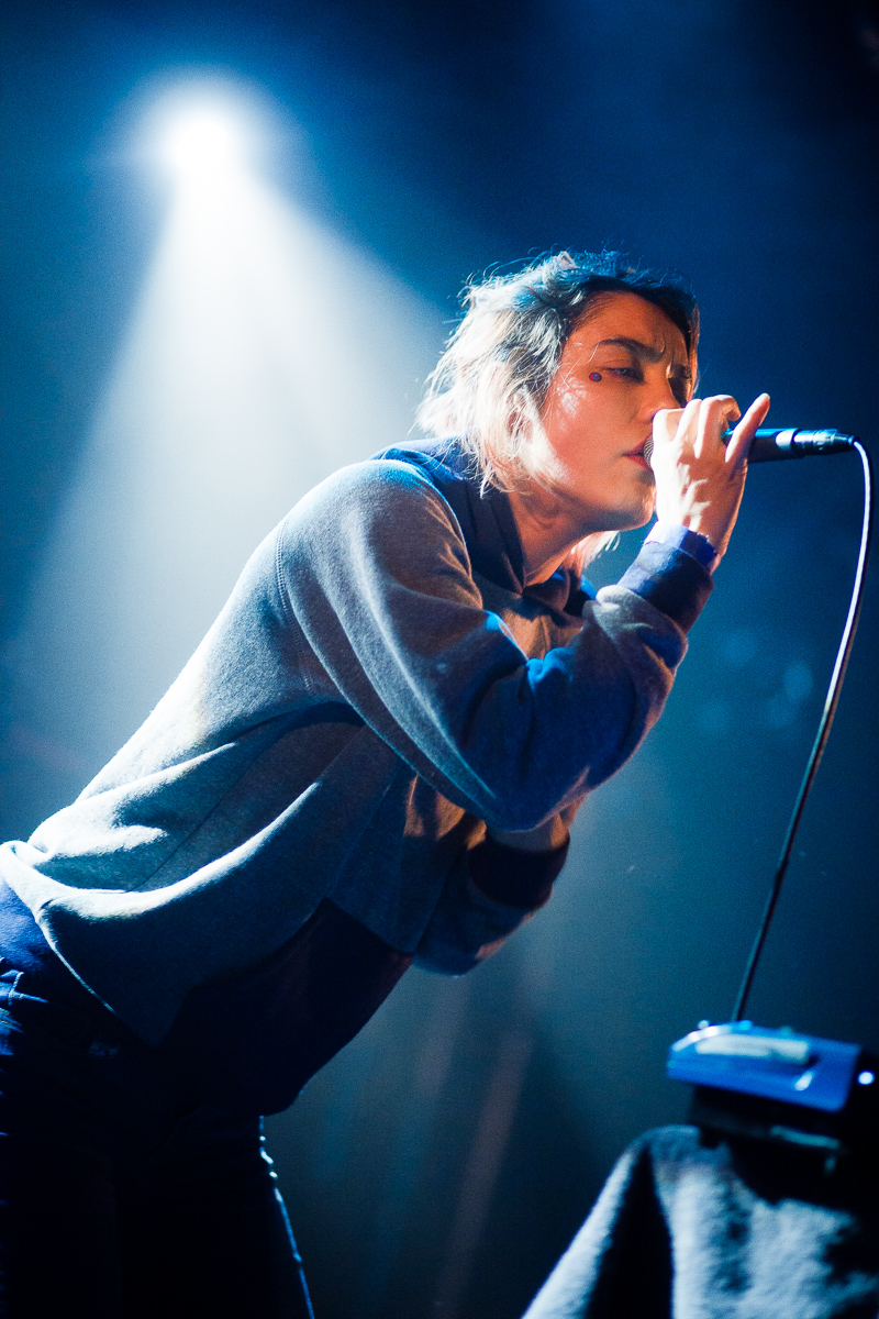 Sur scène, Jenny Lee est accompagnée d’une choriste, d’un batteur (dont les plans ressemblent parfois étonnamment à ceux de Stella Mogzawa, la batteuse de Warpaint, mais comme elle a joué sur l’album ça se comprend), d’un bassiste et d’un guitariste. Elle s’occupe essentiellement du chant et de tripoter quelques machines. L’interprétation des morceaux est plus rock que sur disque, on sent un peu moins les subtilités mais on ne s’en plaint pas, pour du live et sur un répertoire qu’on ne connait pas bien, ça permet de rentrer assez facilement dans le set dont on avait un peu peur qu’il ne soit trop electro.