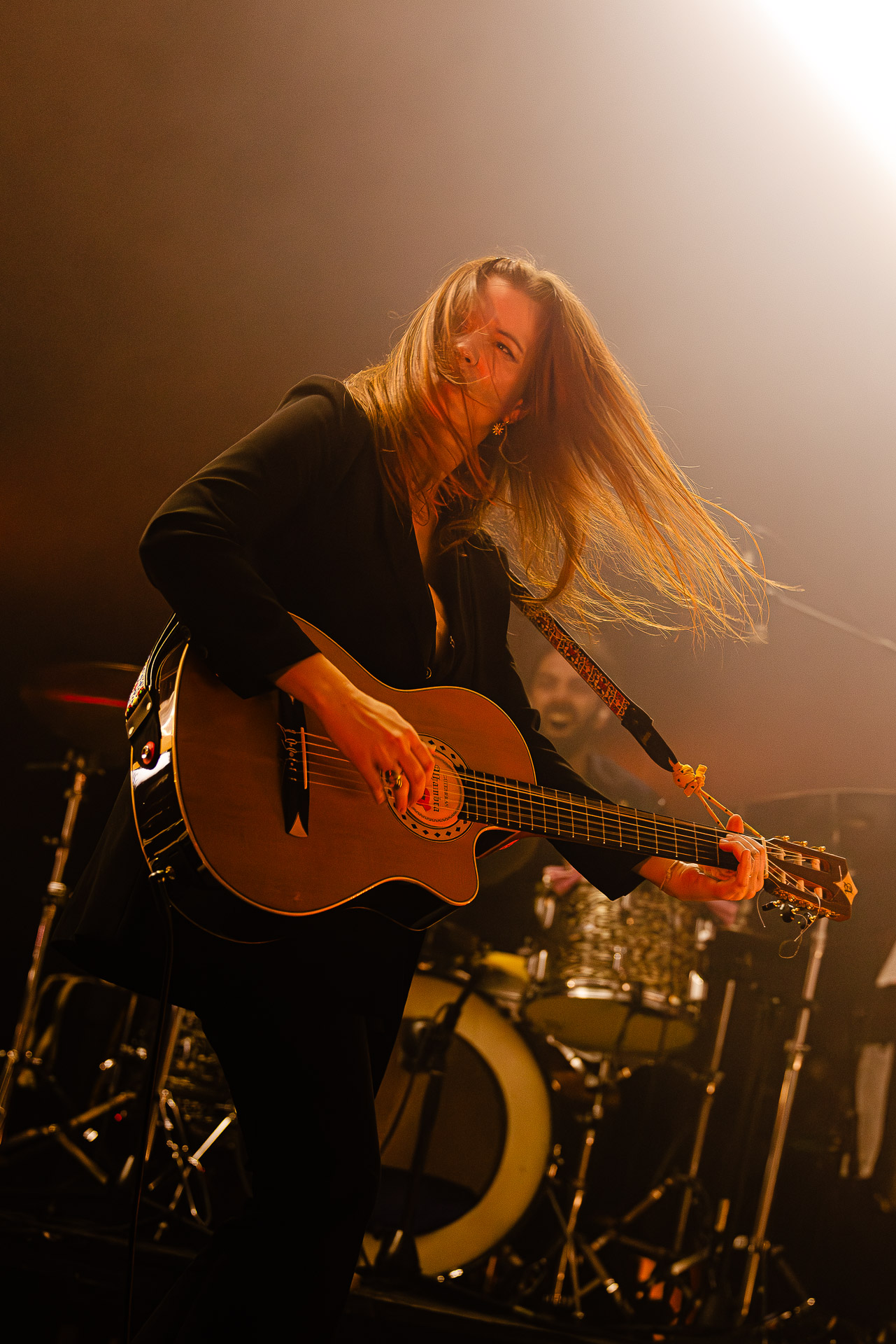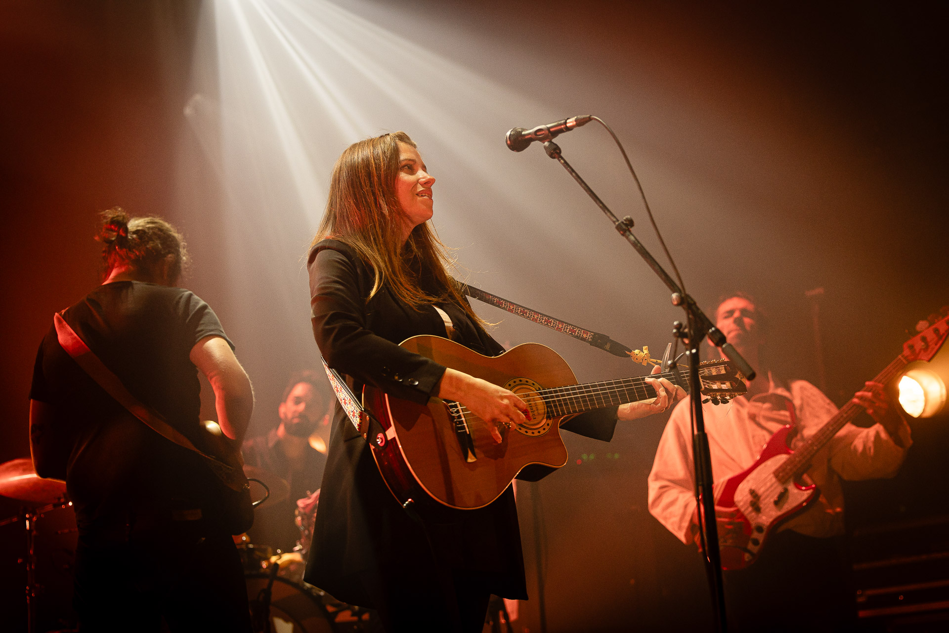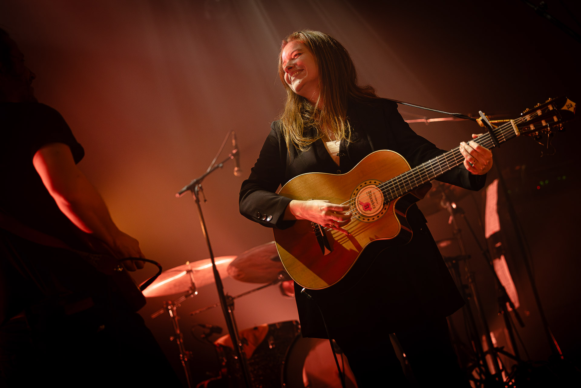 Tout juste revenu dans l’hiver parisien, légèrement mouillé d’avoir fait la queue sous la pluie devant la Cigale (merci au généreux couple qui nous a prêté un peu de parapluie ), nous commençons de bien belle manière notre année de concerts avec Joe Bel, que Renaud avaitfilmée en session en 2015 avec son "Hit The Road", titre éponyme de son premier EP, qui reste un titre emblématique de la chanteuse et la fait découvrir à un public, qui on l’entend autour de nous à la Cigale, la suit depuis fidèlement, même si on repère aussi des gens plus jeunes qui l’ont connue plus récemment avec son premier album, Dreams ou le dernier en date, Family Tree sortir en 2024 et pour lequel Joe avait déjà fait une Maroquinerie qu’on avait malheureusement loupée mais la séance de rattrapage a de la gueule : une Cigale bien remplie c’est cosy comme il faut pour la voix de Joe, son timbre clair, chaleureux, tout en douceur et en groove aux réminiscences folk et soul/bluesy. Mais c’est aussi assez grand pour caser une large formation sur scène avec en plus de la guitare et du basse-batterie, une claviériste et deux choristes. De quoi alterner entre morceaux folk/pop et de beaux moments de rock/blues et, ce à quoi on s’attendait moins découvrant Joe en concert, de belles plages instrumentales que les musiciens prennent un plaisir évident à faire durer et monter en puissance, passant d’une instrumentation feutrée, au service de la voix à des crescendos laissant la part belle à la guitare saturée, avec une section rythmique qui appuie comme il faut cette énergie très rock. Des ponctuations bien venues dans un set qui joue sur toutes les facettes de la musique de Joe et bénéficie du talent et de la complicité d’un groupe qu’on sent bien rodé.