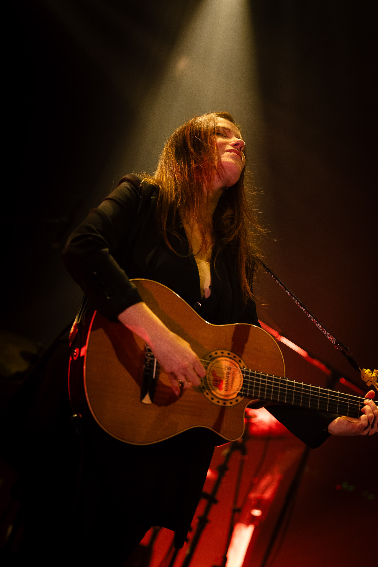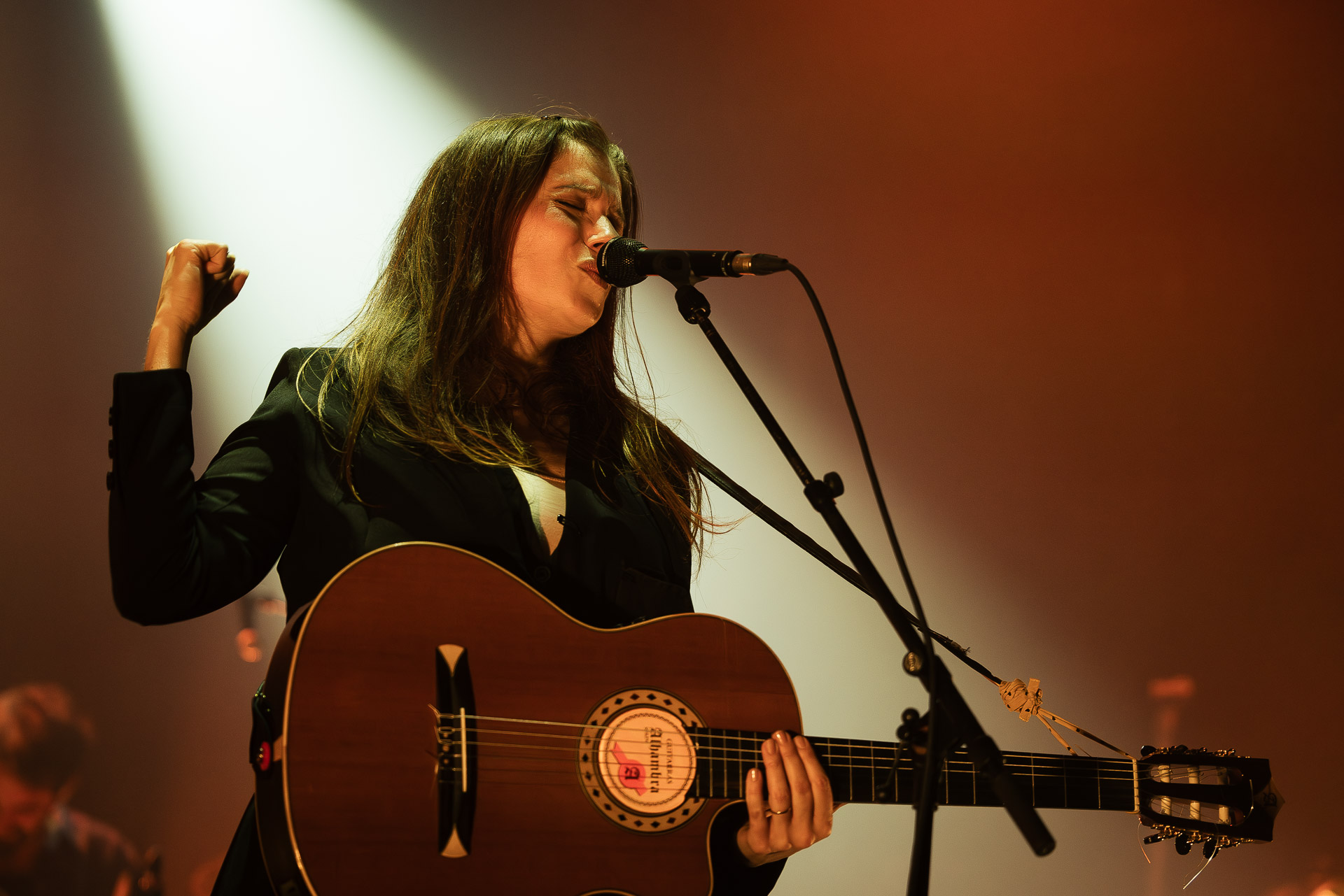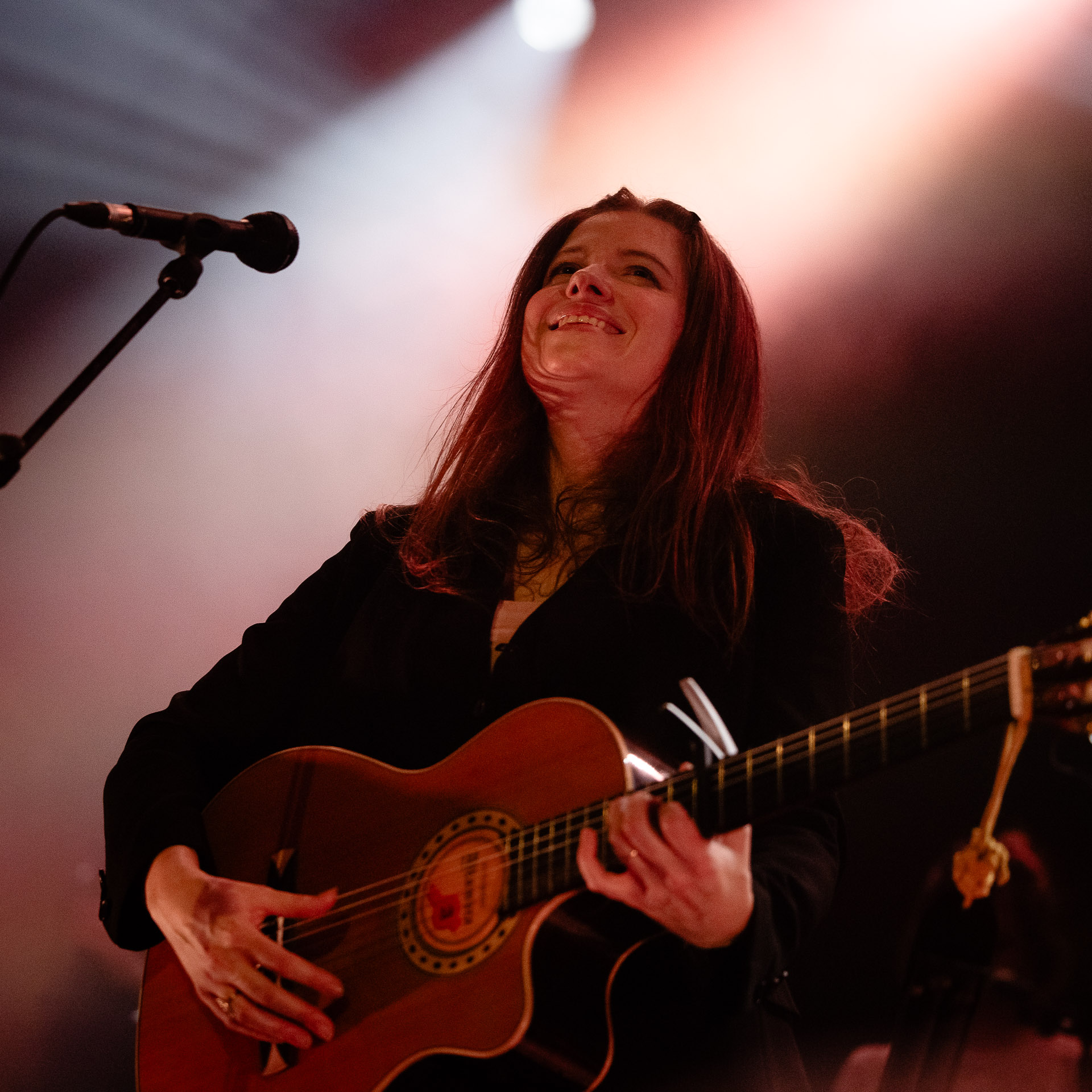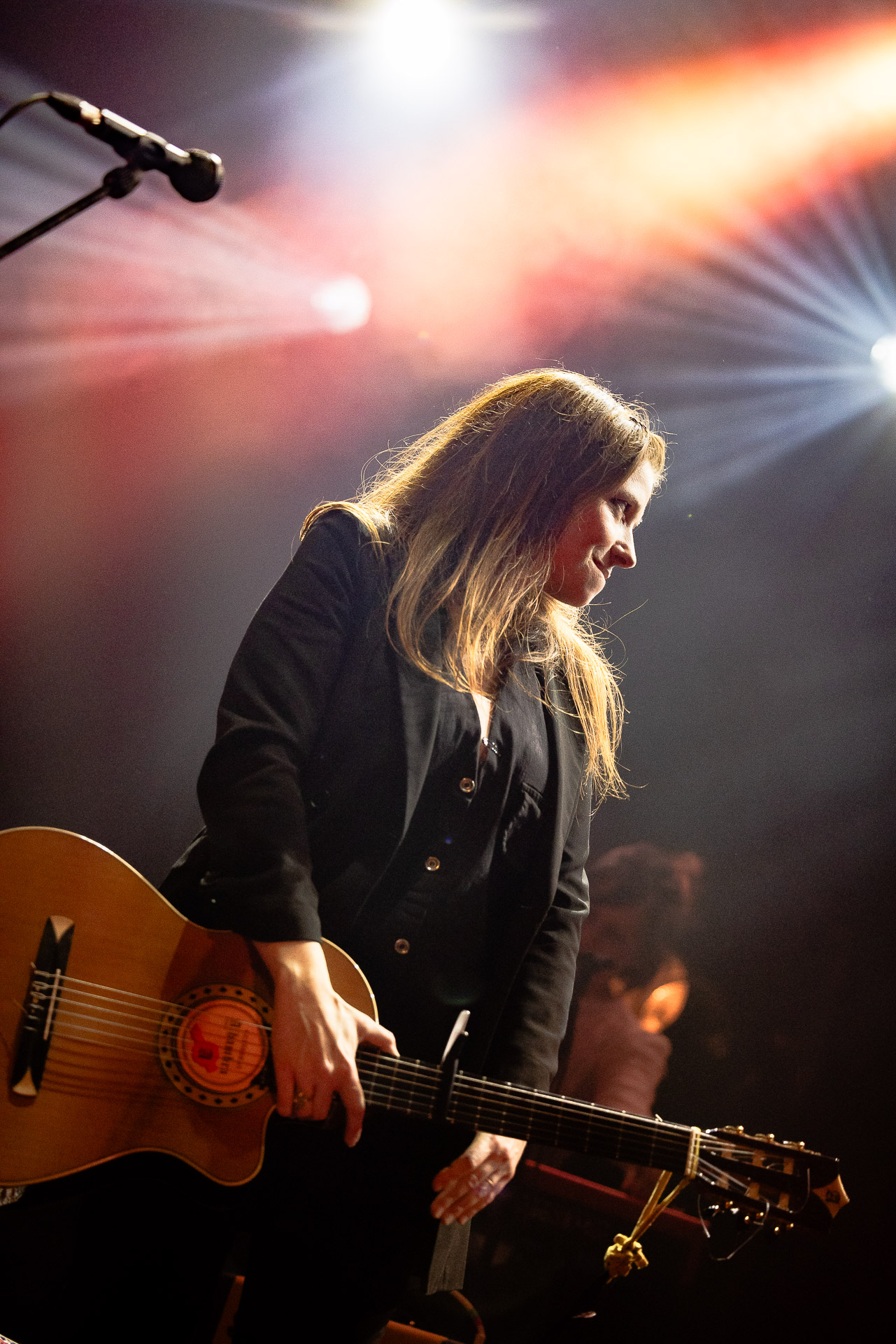 Tout juste revenu dans l’hiver parisien, légèrement mouillé d’avoir fait la queue sous la pluie devant la Cigale (merci au généreux couple qui nous a prêté un peu de parapluie ), nous commençons de bien belle manière notre année de concerts avec Joe Bel, que Renaud avaitfilmée en session en 2015 avec son "Hit The Road", titre éponyme de son premier EP, qui reste un titre emblématique de la chanteuse et la fait découvrir à un public, qui on l’entend autour de nous à la Cigale, la suit depuis fidèlement, même si on repère aussi des gens plus jeunes qui l’ont connue plus récemment avec son premier album, Dreams ou le dernier en date, Family Tree sortir en 2024 et pour lequel Joe avait déjà fait une Maroquinerie qu’on avait malheureusement loupée mais la séance de rattrapage a de la gueule : une Cigale bien remplie c’est cosy comme il faut pour la voix de Joe, son timbre clair, chaleureux, tout en douceur et en groove aux réminiscences folk et soul/bluesy. Mais c’est aussi assez grand pour caser une large formation sur scène avec en plus de la guitare et du basse-batterie, une claviériste et deux choristes. De quoi alterner entre morceaux folk/pop et de beaux moments de rock/blues et, ce à quoi on s’attendait moins découvrant Joe en concert, de belles plages instrumentales que les musiciens prennent un plaisir évident à faire durer et monter en puissance, passant d’une instrumentation feutrée, au service de la voix à des crescendos laissant la part belle à la guitare saturée, avec une section rythmique qui appuie comme il faut cette énergie très rock. Des ponctuations bien venues dans un set qui joue sur toutes les facettes de la musique de Joe et bénéficie du talent et de la complicité d’un groupe qu’on sent bien rodé.