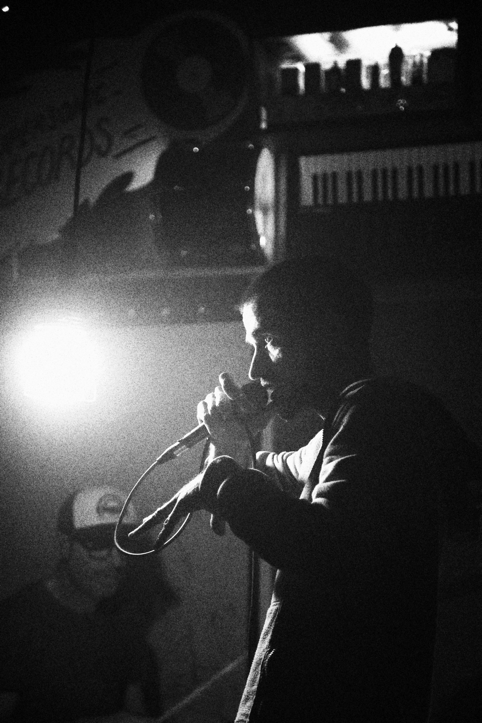Il y a hélas bien trop peu de monde au Supersonic Records, on retrouve quelques amis mais si nous ne sommes pas nombreux le public est là pour le duo. Et personne ne sera déçu, sauf peut être de trouver le concert un peu trop court. L’Envoûtante n’a rien perdu de sa force, de sa présence sur scène, de cette rencontre incroyable des mots et de la musique en une parfaite alchimie.