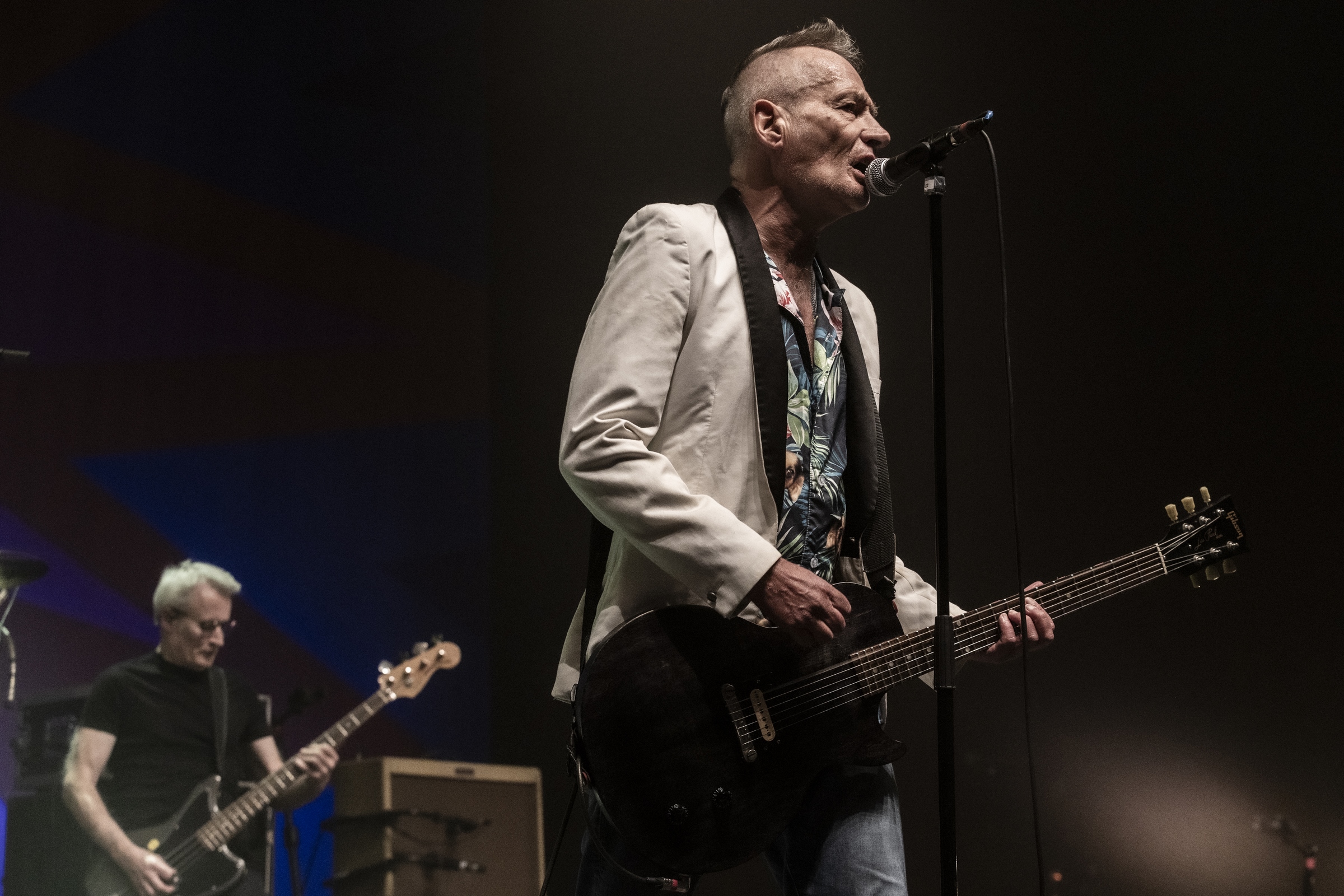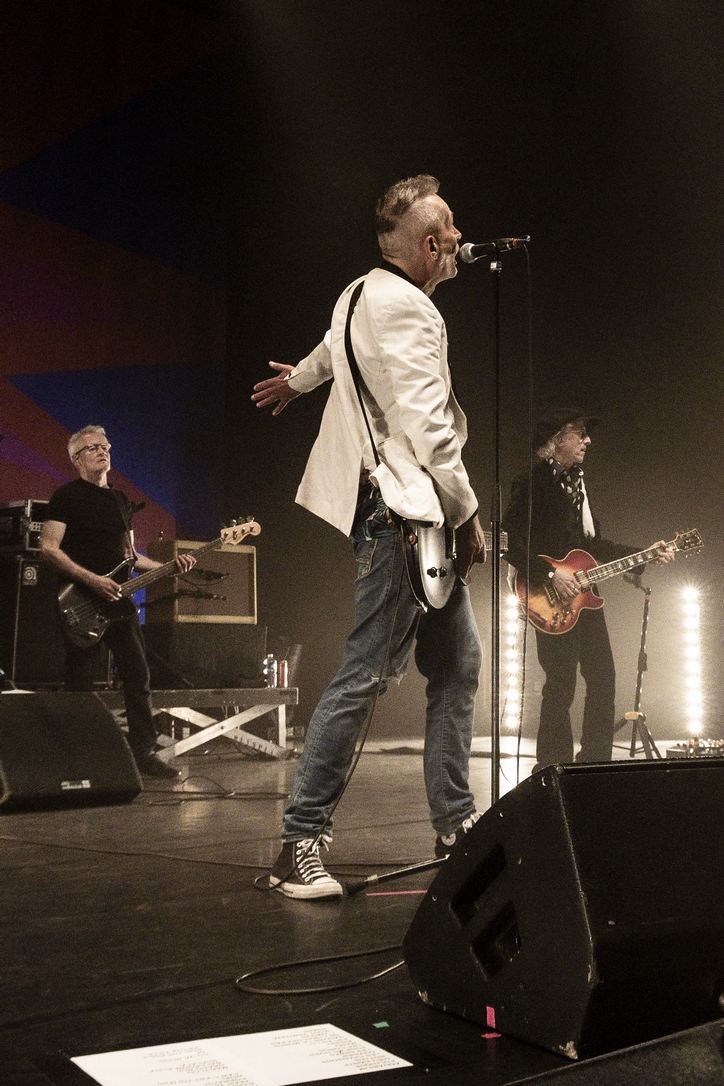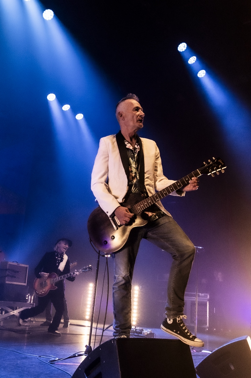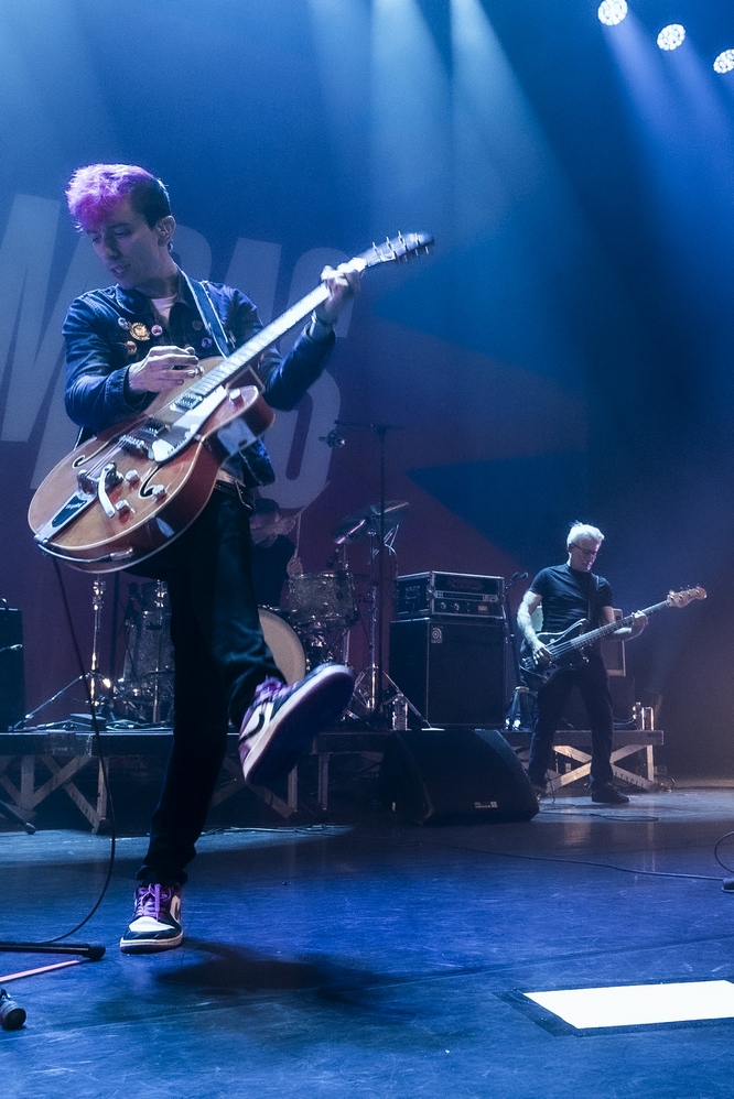Allez voilà c’est dit. Car pour le reste on venait avec l’idée de se faire un shoot de bonheur nostalgique et régressif et nous avons eu cela fois mille et bien plus encore. Le son est énorme, parfait, le groupe est au taquet dans un mélange subtil d’un son punk rock d’éternels gamins qui continuent à prendre plaisir à être toujours là après plusieurs décennies et en même temps les Wampas sont devenus impressionnant de cohésion, de son, de justesse. Un mélange assez unique qui retourne l’Olympia pendant plus d’une heure trente. La set list alterne intelligemment les morceaux du dernier album , les incontournables du groupe et quelques chansons piochées dans l’impressionnante discographie des Wampas. On serait déjà heureux de cette soirée qui dépasse le nostalgique pour un plaisir de l’instant, mais quand au premier rappel on voit l’équipe installer un ampli, on se dit que l’on va avoir le droit à une petite surprise. Quand seuls montent sur scène Niko, Didier et Effello notre curiosité et total. Alors Didier raconte, avec un air de gamin que l’on à lâcher dans un magasin de bonbons que cela fait 40 ans qu’une contre basse ne les avait pas accompagner sur scène, on a le frisson ! Didier nous explique qu’avec leur invité, Thomas Lorioux, et sa contrebasse ils vont jouer pour la première fois depuis des décennies non seulement des morceaux du premier album mais carrément des morceaux du mythique premier 45t du groupe Marilou & Dracu Bop en tête ! On ne pouvait rêver de cadeau plus fou et de plus bel hommage à Francis, le premier batteur du groupe disparu il y a quelques mois !