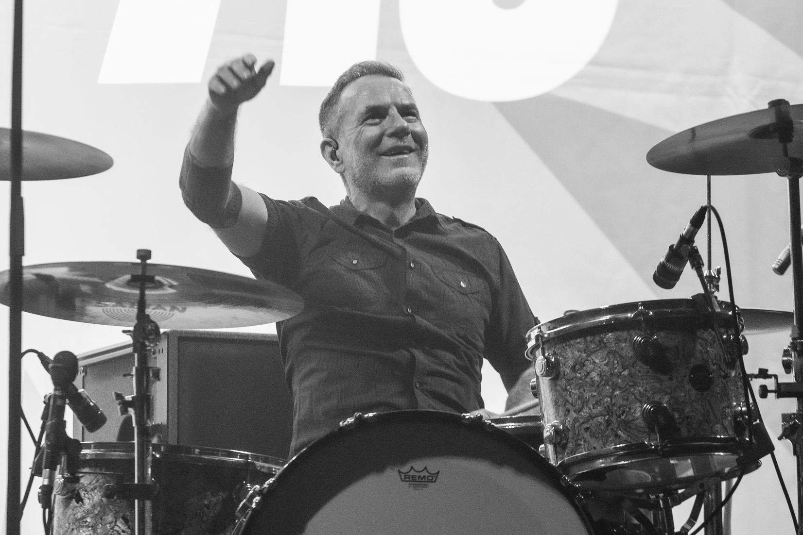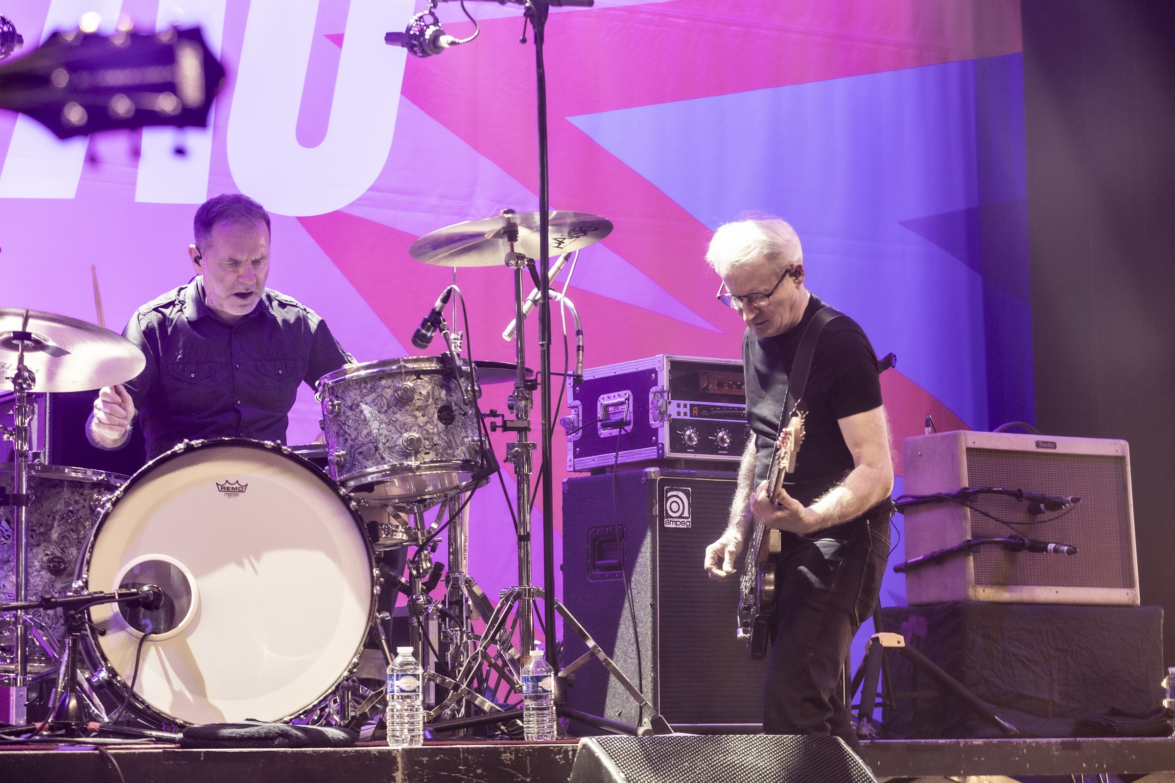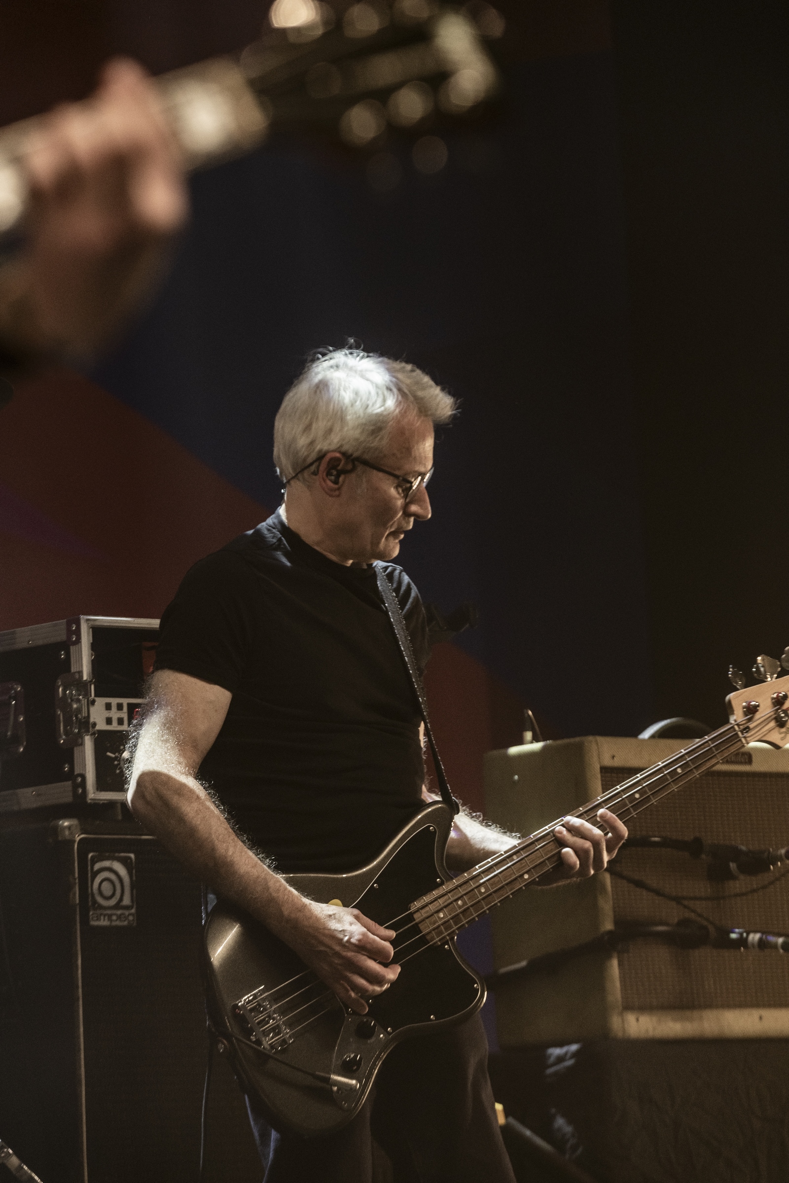 Allez voilà c’est dit. Car pour le reste on venait avec l’idée de se faire un shoot de bonheur nostalgique et régressif et nous avons eu cela fois mille et bien plus encore. Le son est énorme, parfait, le groupe est au taquet dans un mélange subtil d’un son punk rock d’éternels gamins qui continuent à prendre plaisir à être toujours là après plusieurs décennies et en même temps les Wampas sont devenus impressionnant de cohésion, de son, de justesse. Un mélange assez unique qui retourne l’Olympia pendant plus d’une heure trente. La set list alterne intelligemment les morceaux du dernier album , les incontournables du groupe et quelques chansons piochées dans l’impressionnante discographie des Wampas. On serait déjà heureux de cette soirée qui dépasse le nostalgique pour un plaisir de l’instant, mais quand au premier rappel on voit l’équipe installer un ampli, on se dit que l’on va avoir le droit à une petite surprise. Quand seuls montent sur scène Niko, Didier et Effello notre curiosité et total. Alors Didier raconte, avec un air de gamin que l’on à lâcher dans un magasin de bonbons que cela fait 40 ans qu’une contre basse ne les avait pas accompagner sur scène, on a le frisson ! Didier nous explique qu’avec leur invité, Thomas Lorioux, et sa contrebasse ils vont jouer pour la première fois depuis des décennies non seulement des morceaux du premier album mais carrément des morceaux du mythique premier 45t du groupe Marilou & Dracu Bop en tête ! On ne pouvait rêver de cadeau plus fou et de plus bel hommage à Francis, le premier batteur du groupe disparu il y a quelques mois !