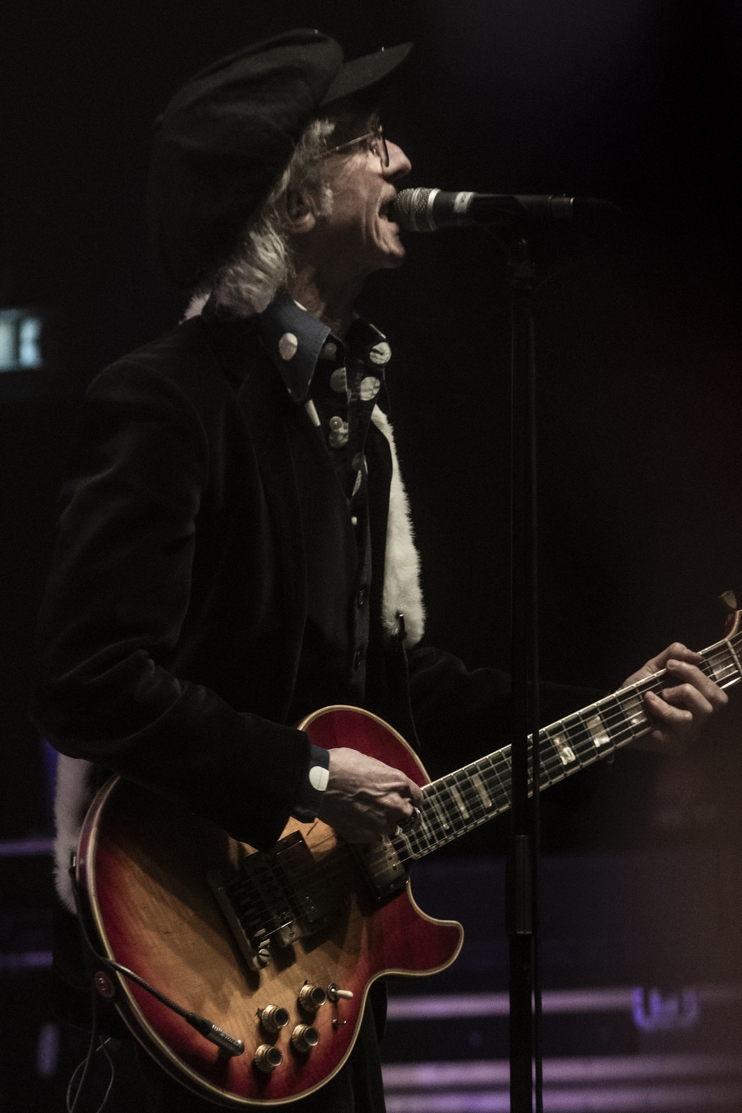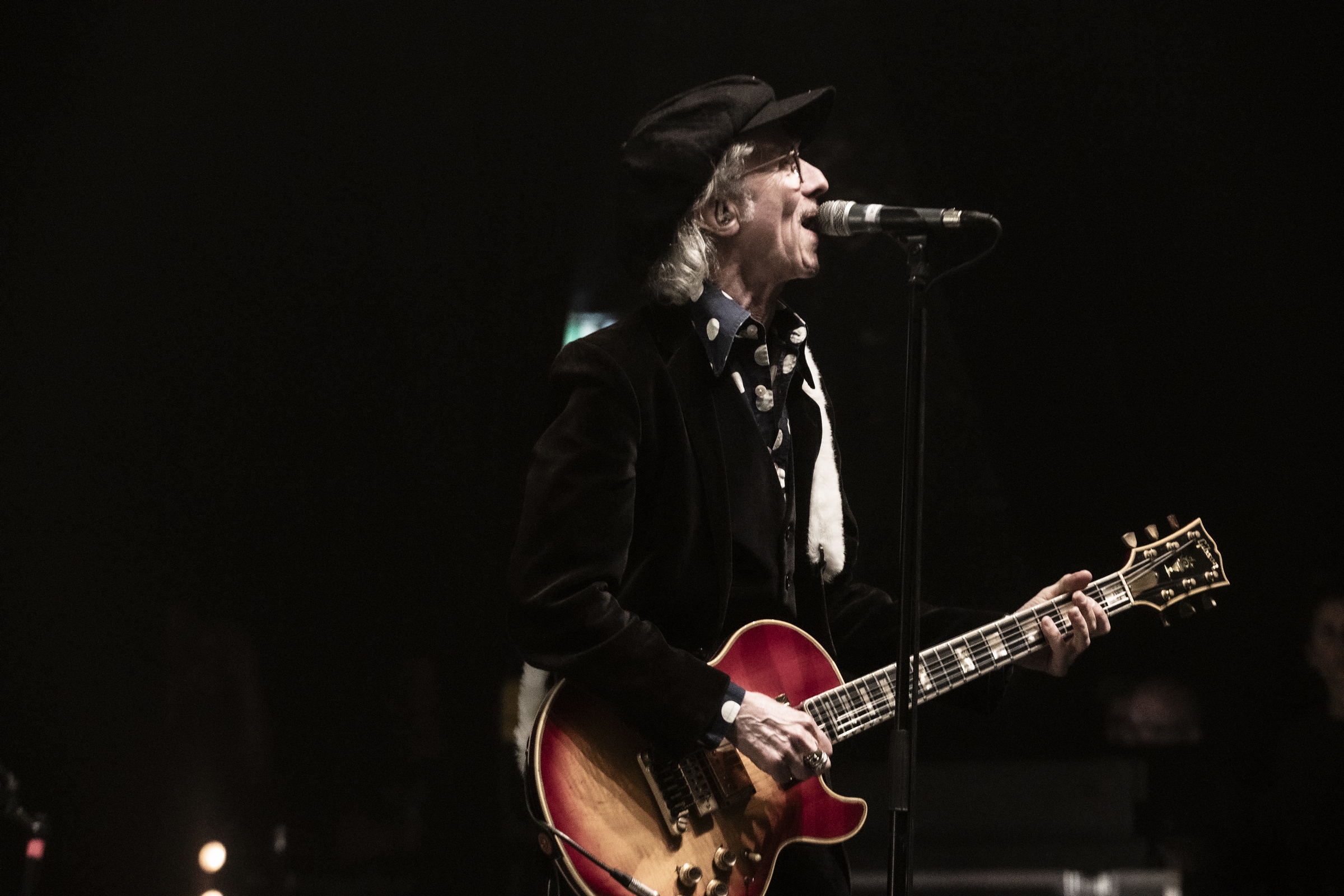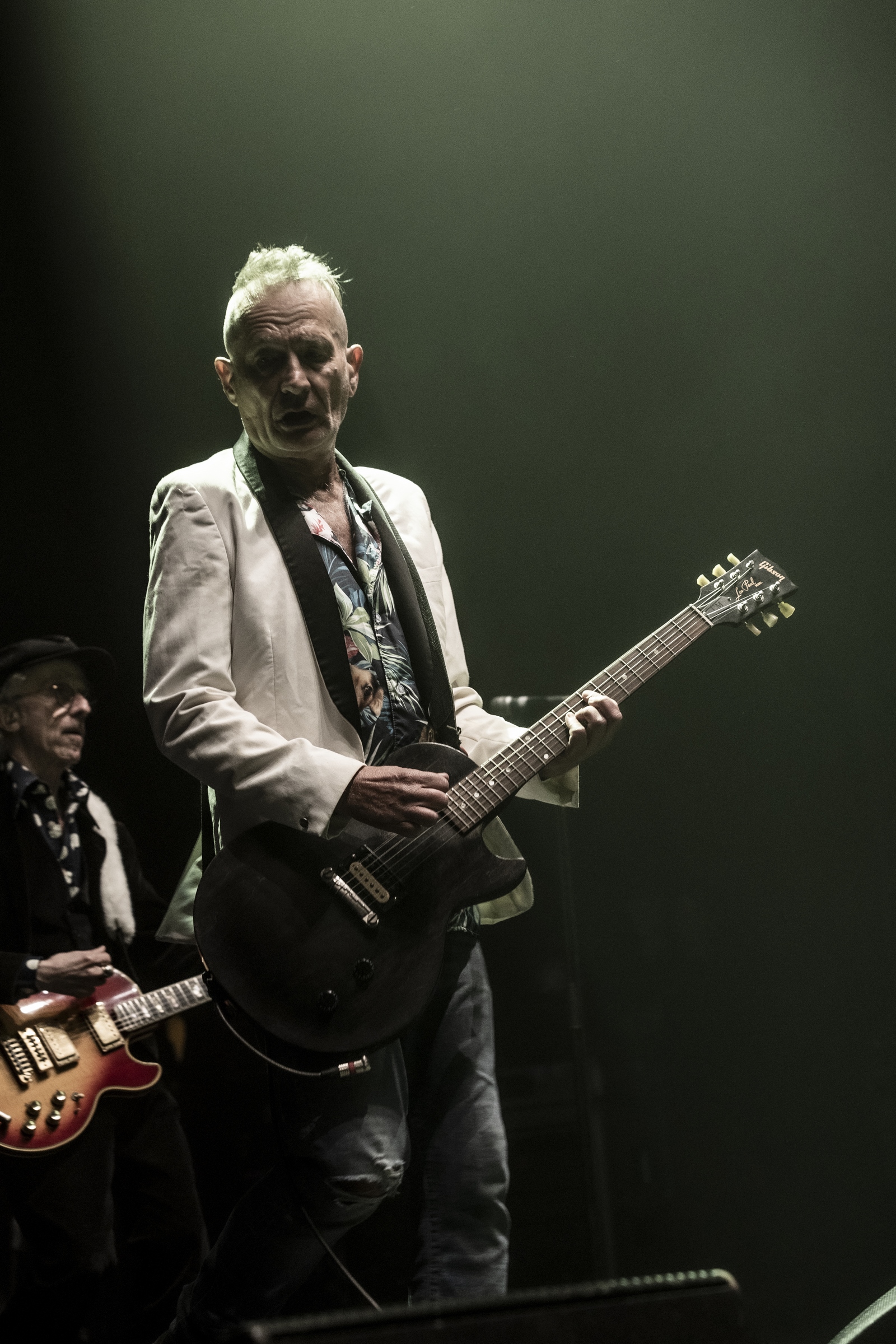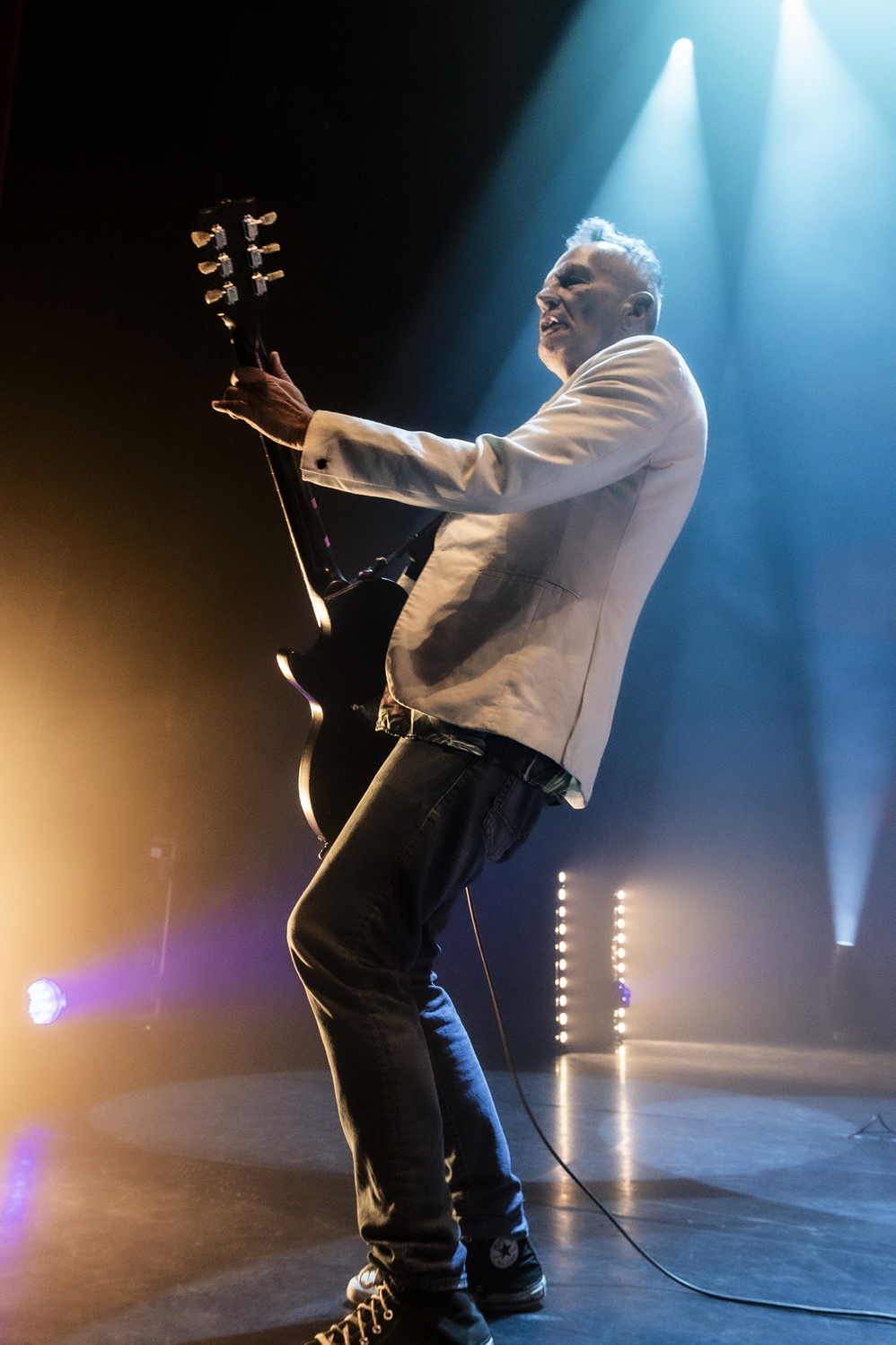 Evacuons tout de suite les sujets qui fâchent. Oui ok, nous sommes à l’Olympia, mais avant tout nous sommes à un concert des Wampas. Alors déjà quand en se rapprochant de la scène, pour aller prendre des photos on entend les réflexions de quelques personnes outrées qu’on puisse les doubler, dont une personne qui me dit "vous croyez allez où là ?", cela donne envie de leur dire mais bordel on est à un concert des Wampas, dans cinq minutes c’est le bordel intégral !! Mais surtout le truc qui pique un peu c’est quand ayant eu le droit à trois morceaux devant les barrières pour prendre des photos (normal faut que la sécu puissent bosser tranquille avec les nombreux et incessants slameurs) on vient nous demander de ressortir en passant par les loges, des couloirs, des pièces en enfilades (c’est grand l’Olympia), pour ensuite déposer nos sacs à la consigne et retourner dans la salle. Déjà ce petit manège prend une petite quinzaine de minutes et nous fait rater entre autres "Les bottes rouges" mais là aussi on se dit qu’il y a un truc qui cloche pour un concert des Wampas. Les ayant vu de très nombreuses fois dans toutes les salles possibles, on se souvient qu’il y a encore peu on pouvait rentrer appareil photo, caméra ou autre et se faire plaisir comme on voulait. Et là il faut bien dire que l’on pensait pouvoir se mettre dans un coin de la salle et continuer de mitrailler le concert, sachant qu’avec Didier et sa bande cela allait monter crescendo dans l’énergie et la folie ! Donc on ne sait pas qui a eu cette idée d’organisation comme si c’était U2 au Stade de France, mais l’idée est pourrie ! Il faut le dire.