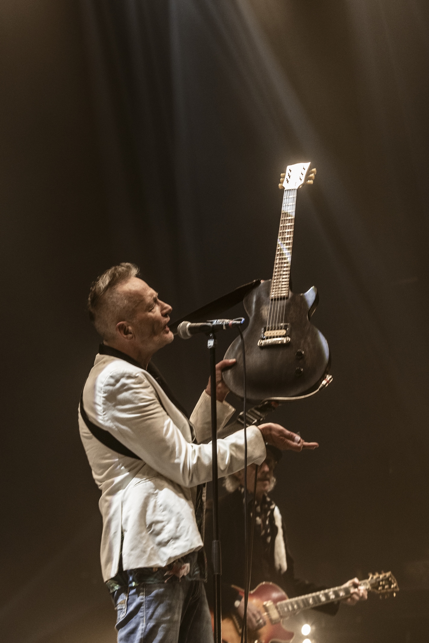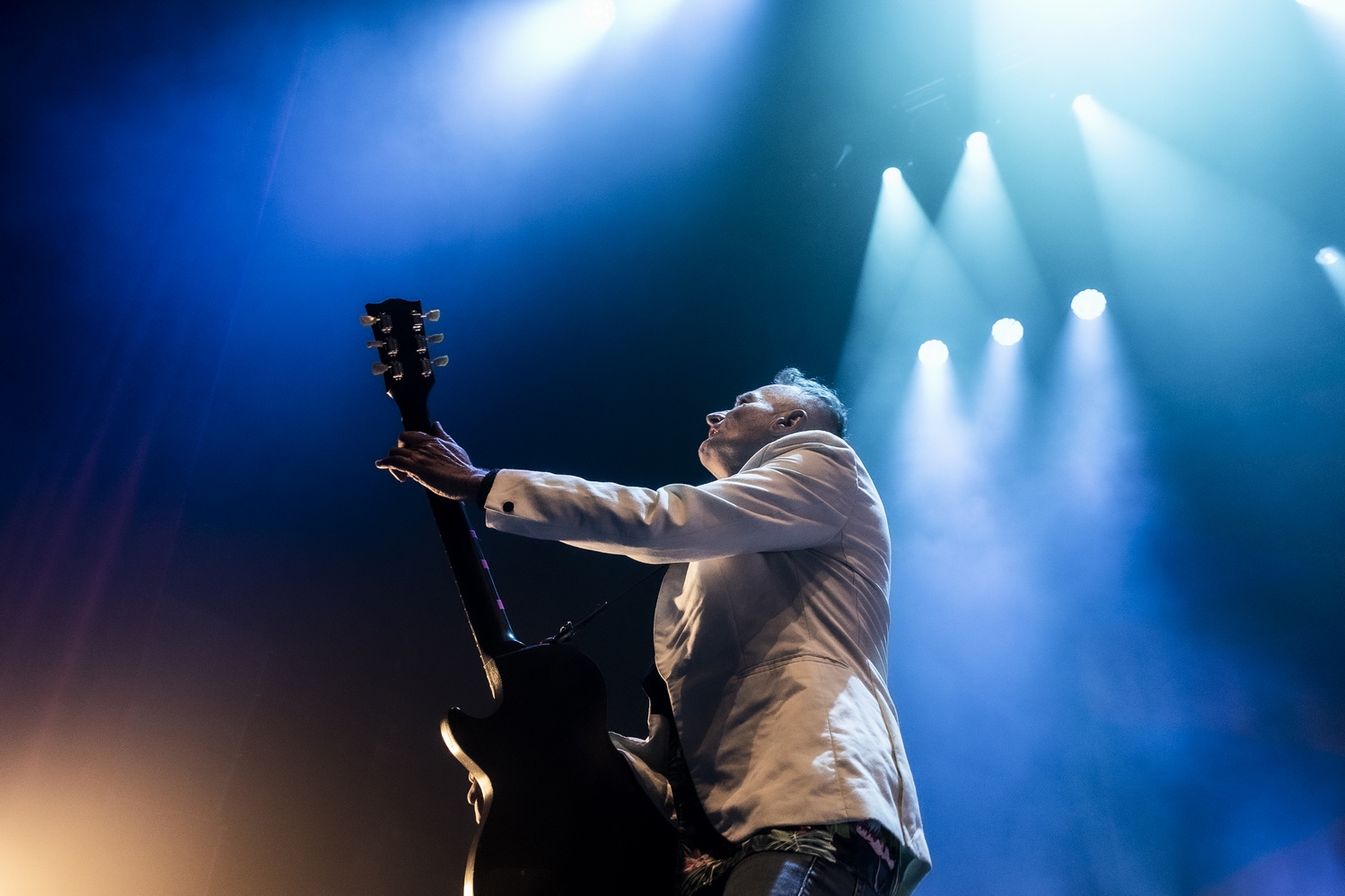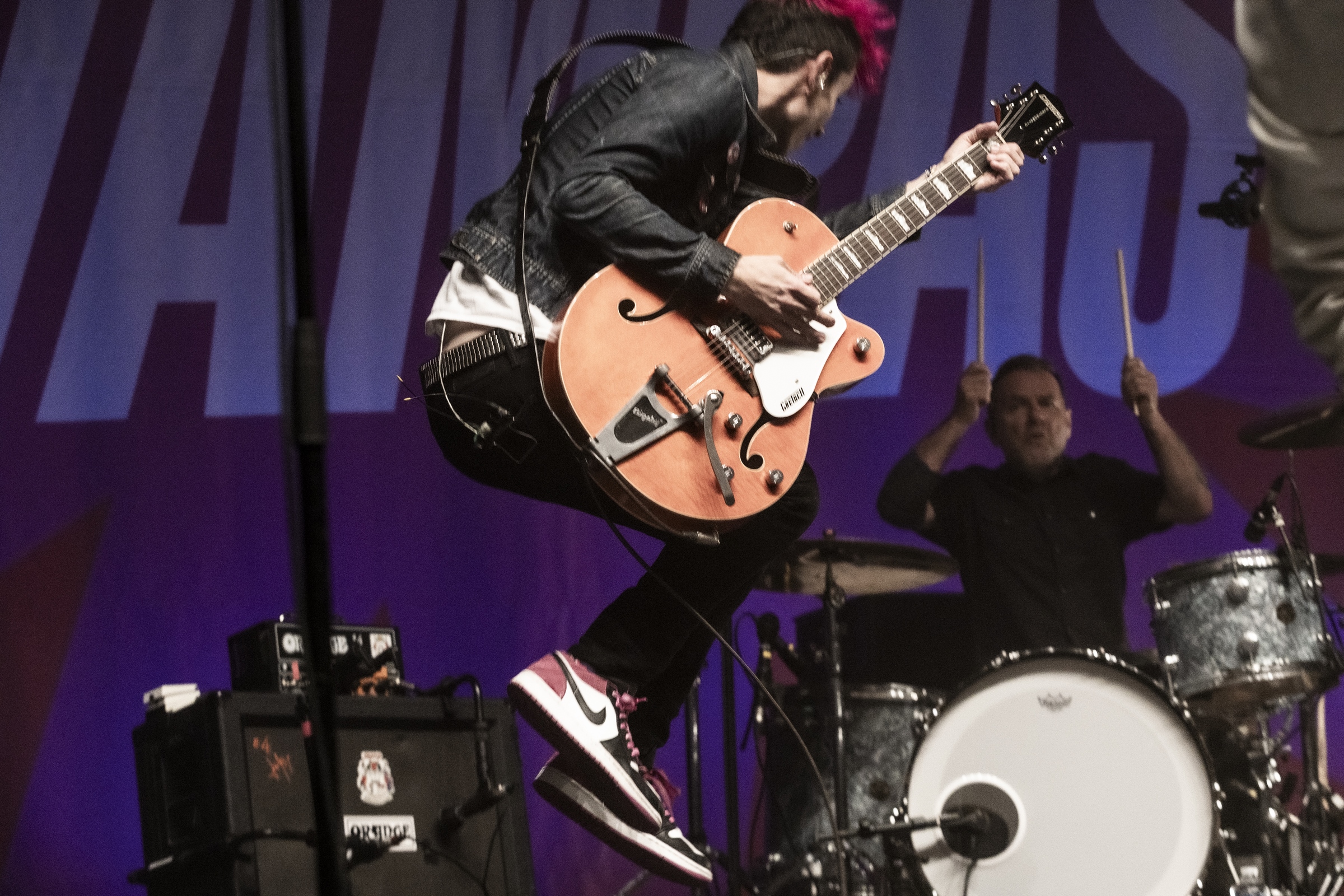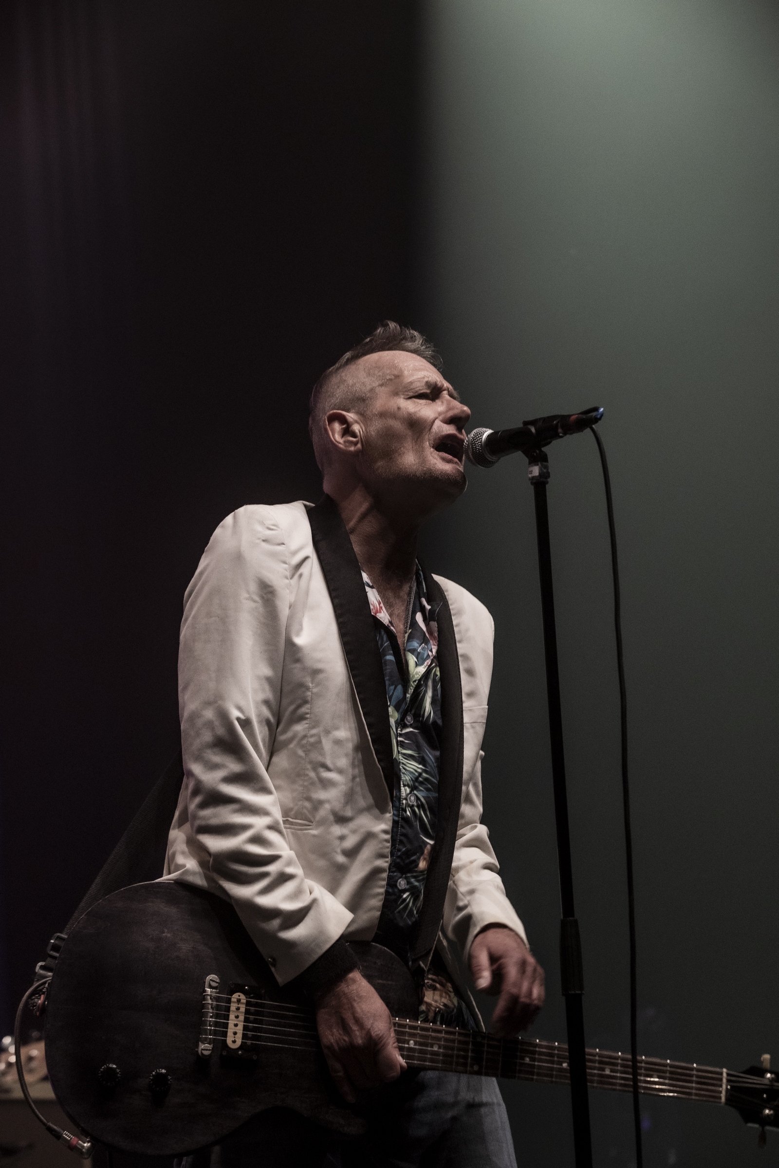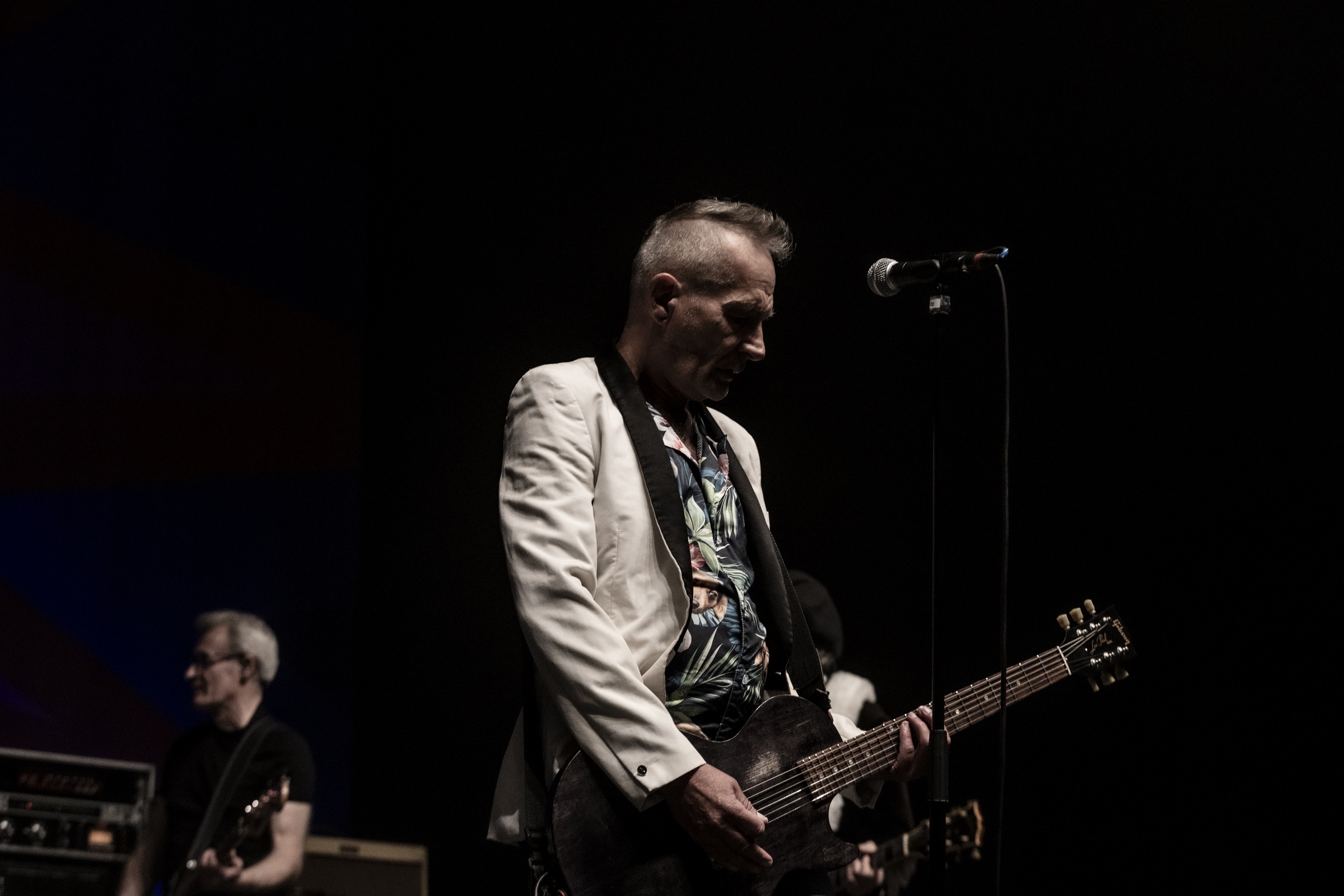 Evacuons tout de suite les sujets qui fâchent. Oui ok, nous sommes à l’Olympia, mais avant tout nous sommes à un concert des Wampas. Alors déjà quand en se rapprochant de la scène, pour aller prendre des photos on entend les réflexions de quelques personnes outrées qu’on puisse les doubler, dont une personne qui me dit "vous croyez allez où là ?", cela donne envie de leur dire mais bordel on est à un concert des Wampas, dans cinq minutes c’est le bordel intégral !! Mais surtout le truc qui pique un peu c’est quand ayant eu le droit à trois morceaux devant les barrières pour prendre des photos (normal faut que la sécu puissent bosser tranquille avec les nombreux et incessants slameurs) on vient nous demander de ressortir en passant par les loges, des couloirs, des pièces en enfilades (c’est grand l’Olympia), pour ensuite déposer nos sacs à la consigne et retourner dans la salle. Déjà ce petit manège prend une petite quinzaine de minutes et nous fait rater entre autres "Les bottes rouges" mais là aussi on se dit qu’il y a un truc qui cloche pour un concert des Wampas. Les ayant vu de très nombreuses fois dans toutes les salles possibles, on se souvient qu’il y a encore peu on pouvait rentrer appareil photo, caméra ou autre et se faire plaisir comme on voulait. Et là il faut bien dire que l’on pensait pouvoir se mettre dans un coin de la salle et continuer de mitrailler le concert, sachant qu’avec Didier et sa bande cela allait monter crescendo dans l’énergie et la folie ! Donc on ne sait pas qui a eu cette idée d’organisation comme si c’était U2 au Stade de France, mais l’idée est pourrie ! Il faut le dire.