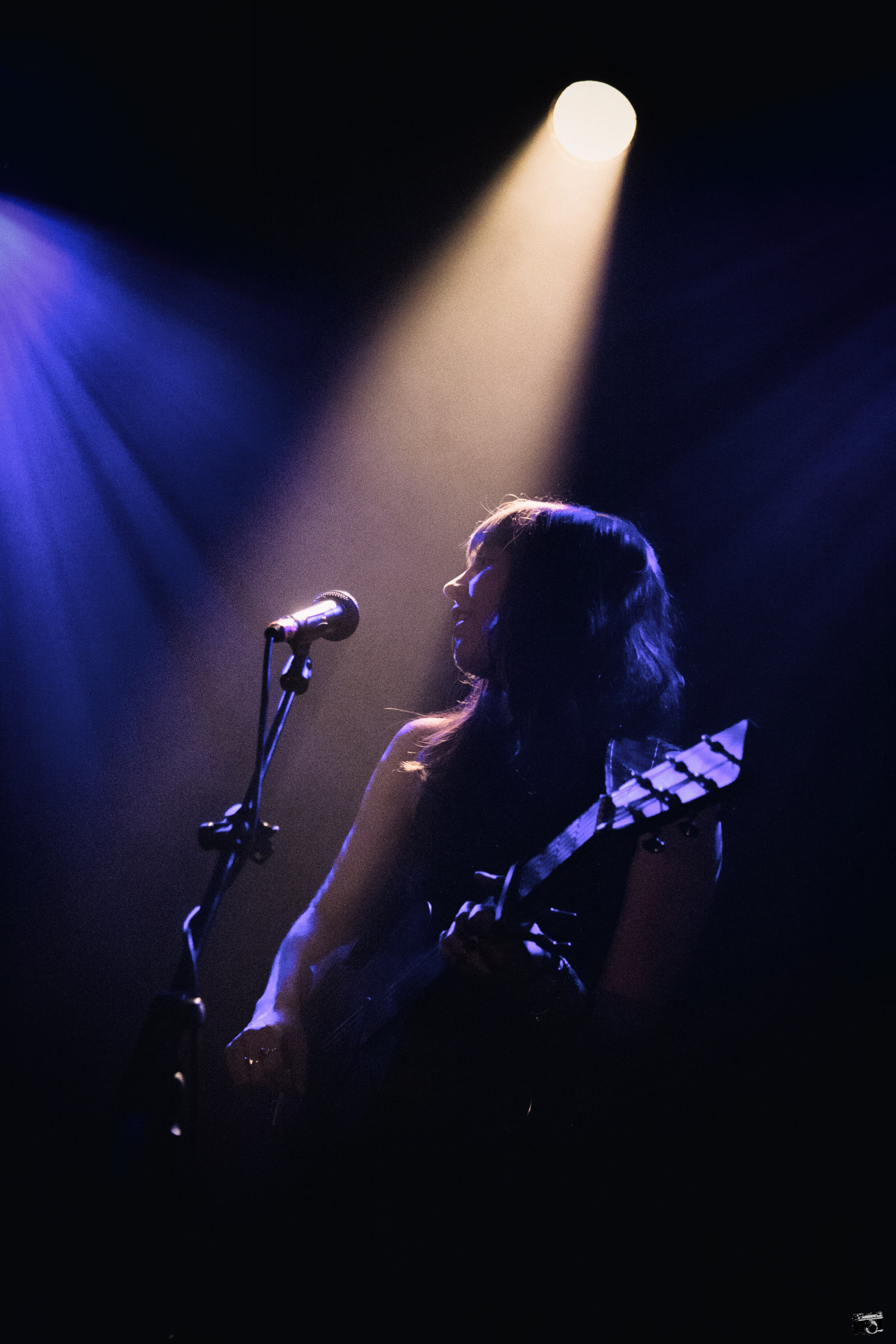 C’est Lonny qui ouvre le bal pour nous présenter pour la première fois de nouveaux morceaux. Mais bien plus que de nouveaux sons, c’est à une véritable transformation à laquelle nous assistons. Est-ce son passage au Quebec cet été qui l’a inspirée ? Nous avions quitté Lonny Montem, souvent en solo ou duo acoustique et son folk chaud et maitrisé, elle nous revient en Lonny, et si elle a perdu un patronyme, elle a gagné une formation électrique avec Antonin Lesp aux guitares et Colin Russeil à la batterie. Dès les deux premiers morceaux de ce court set, on est de suite conquis et emportés par le coté rock de ces nouvelles compos, la voix de Lonny est bien présente, comme une évidence. On sera un poil moins convaincu par la suite mais on applaudit des deux mains ce changement de direction et on ne doute pas que cela va donner de grandes choses à écouter dans les mois à venir.