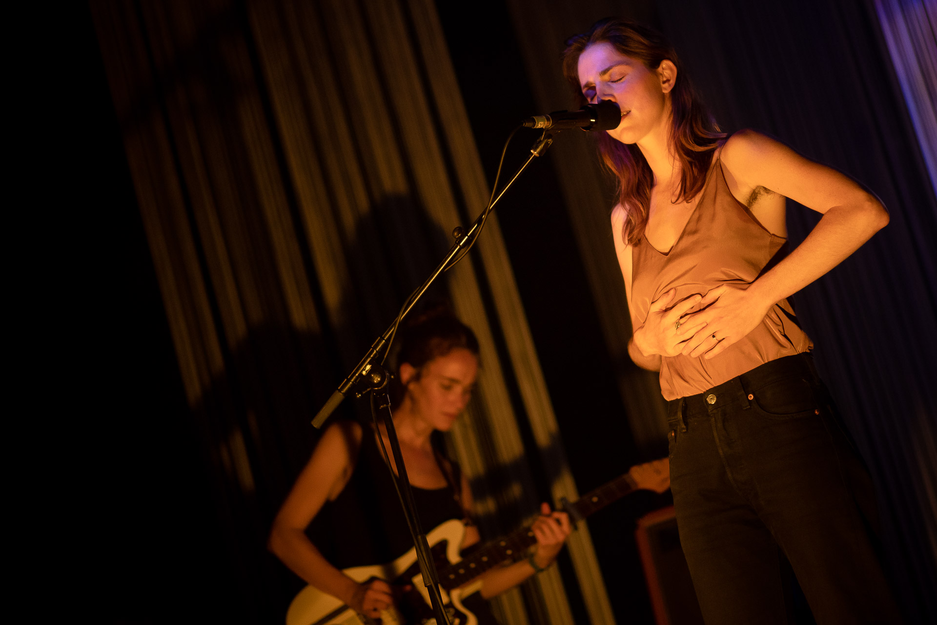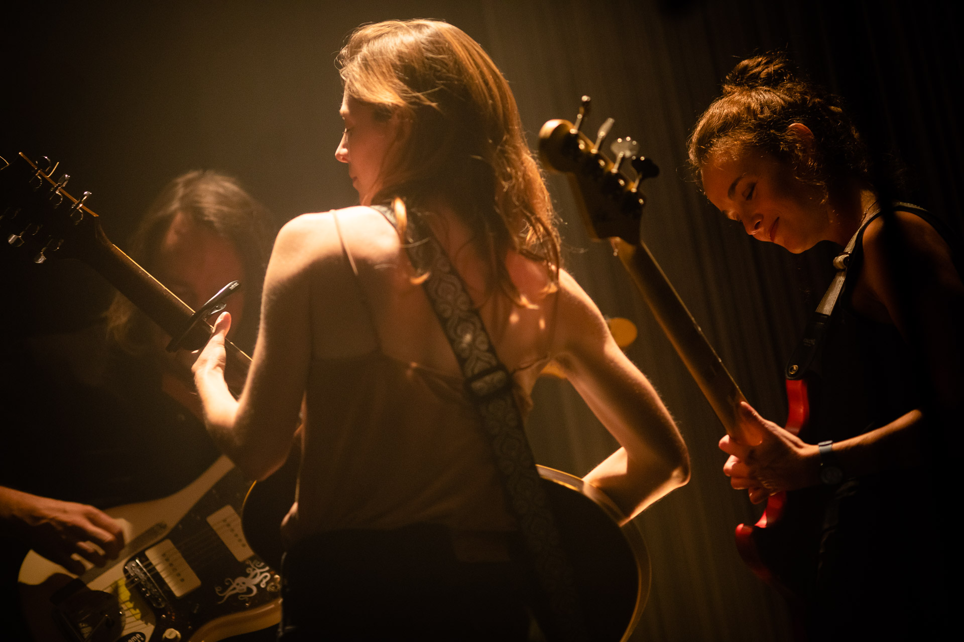 Une semaine après Marie-Flore, nous revoilà à la Cigale, pour une autre artiste qu’on suit fidèlement depuis quelques années. C’était donc notre cinquième concert de Lonny depuis la Boule Noire en septembre 2021 où elle présentait en avant-première son premier album "Ex-Voto", produit par Jesse Mac Cormack. Un travail d’orfèvre qui sait quand laisser toute la place à la voix de Louise et à ses arpèges de guitare mais aussi quand déployer autour, discrètement, élégamment, des strates d’arrangements variés, des contrepoints, qui servent la trame mais peuvent être autant de réalités alternatives esquissées, de lectures différentes de la même chanson. Pour le live, plutôt qu’une formation "standard" avec une batterie qui essaierait d’adapter le mieux possible le disque, d’en garder le maximum, Louise a choisi le trio, avec une guitare électrique et une basse, et parfois une boite à rythme. Si pour certains titres, le guitare-voix donne une ossature, un fil rouge attendu, sur d’autres c’est tout un travail de déconstruction puis de reconstruction, accompli en live au et à mesure que les concerts s’enchainent. La formation qu’on voit ce soir est donc bien rodé à l’exercice, la complicité entre les musiciens est évidentes, dans les sourires, le contact physique même et musicalement cette prise de risque est un pari réussi car même si on connait la chanson, elle se réinvente sur scène sous nos yeux, avec l’impression que c’est un exercice sur le fil et sans filet, il y a l’urgence, le drame qui se tisse. Et en même temps où retrouve toujours la même simplicité et la même chaleur chez Louise, la même façon touchante de s’adresser au public où on sent que ce n’est jamais vraiment préparé, répété alors qu’elle enchaine les dates depuis un an. Alors pour toutes ses raisons, pour "La fin du Monde", "Le sel Normand", "Incandescente" et toutes les autres ,on reviendra encore une sixième puis une sixième fois dans la maison des filles (et du mec à la jazzmaster et au pedalstteel[une très bonne idée d’ailleurs])