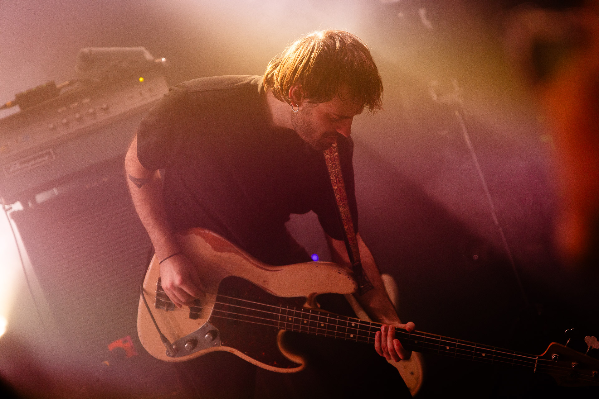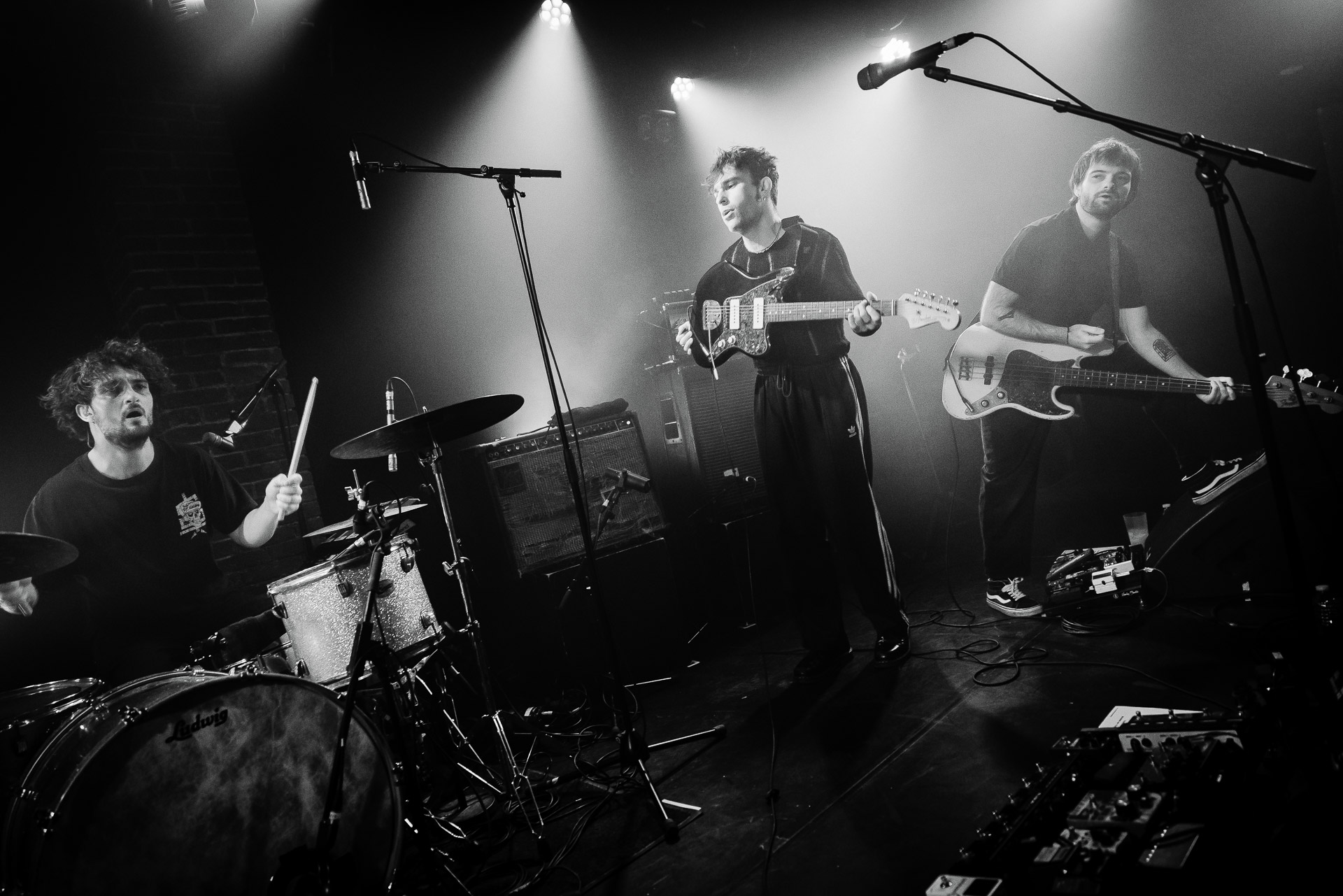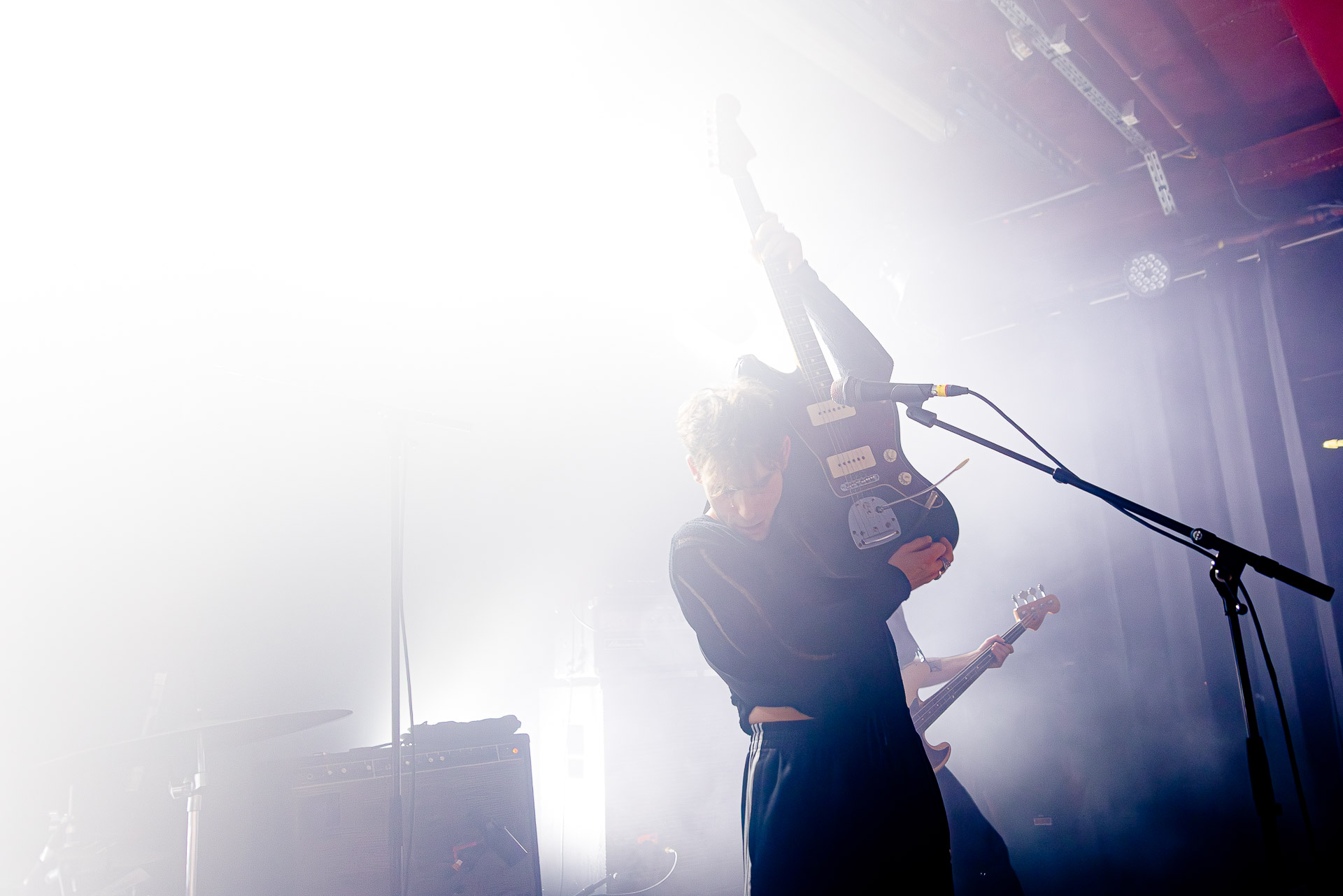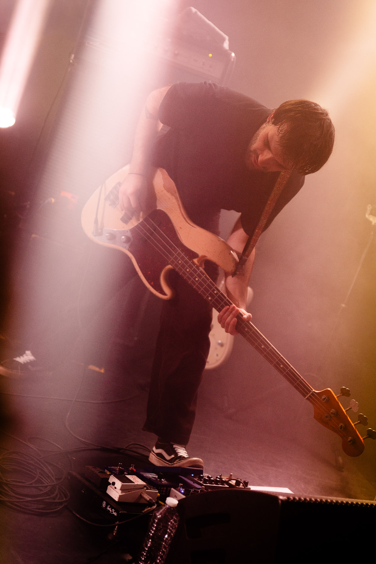 A la Maroquinerie pour son premier album "The House", le groupe bordelais est face à une salle bien remplie, avec déjà pas mal de fans qui animent une fosse qui bouge bien et applaudissent chaleureusement le groupe qui entame le concert à fond les ballons avec les deux parties de “Things Unsaid”. Le son est impeccable, la voix grave passe sans problème par dessus des aigus des Fender et un batteur qui tappe fort comme il faut tout. Comme sur disque c’est une machine implacable qui se met en route, assène riffs sur riffs, construit des crescendos massifs, et induit très vite headbanging et air drumming. Les titres s’enchainent vite, sans que le groupe laisse jamais l’énergie redescendre totalement. Le disque qui sera joué en entier mais dans un ordre assez différent. Si les version enregistrées de l’album tiennent dans une grosse demi-heure, les versions live, augmentés de quelques titres tirées de leurs deux EPS comme "Fentanyl" et "Cigarettes", offrent une bonne heure et quart de concert intense, captivante, avec un son énorme, mais un sens de la mélodie et du groove qui l’est tout autant, délivrés par un groupe souriant et détendu et un frontman déjà totalement à l’aise dans ce rôle.