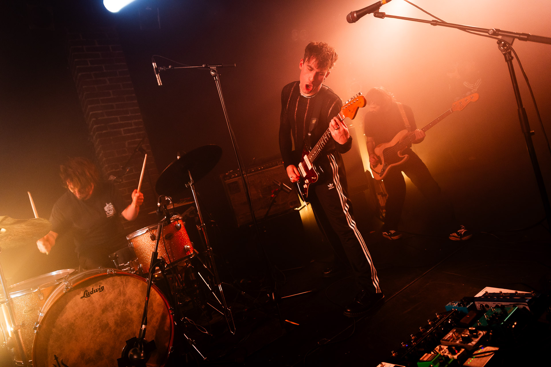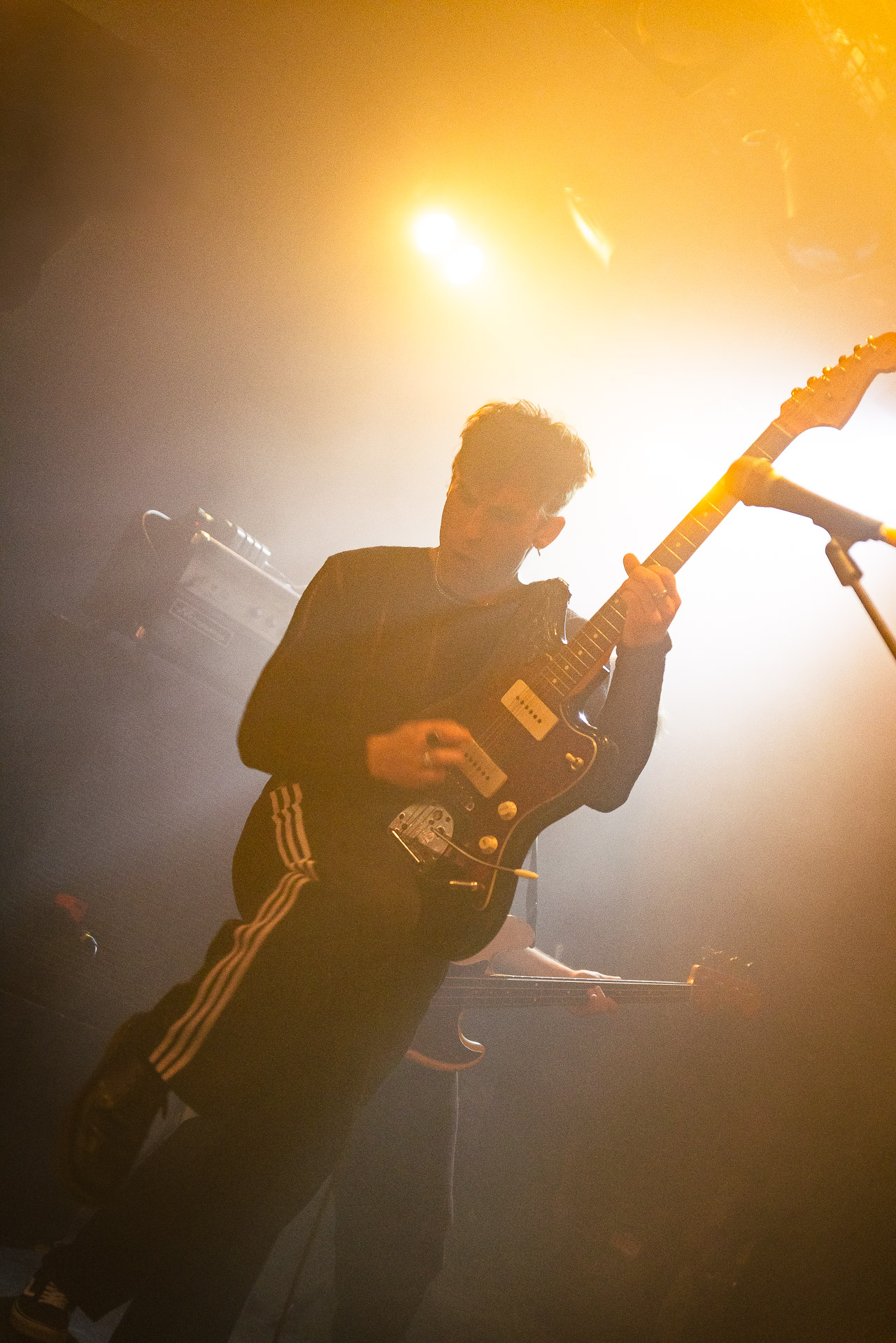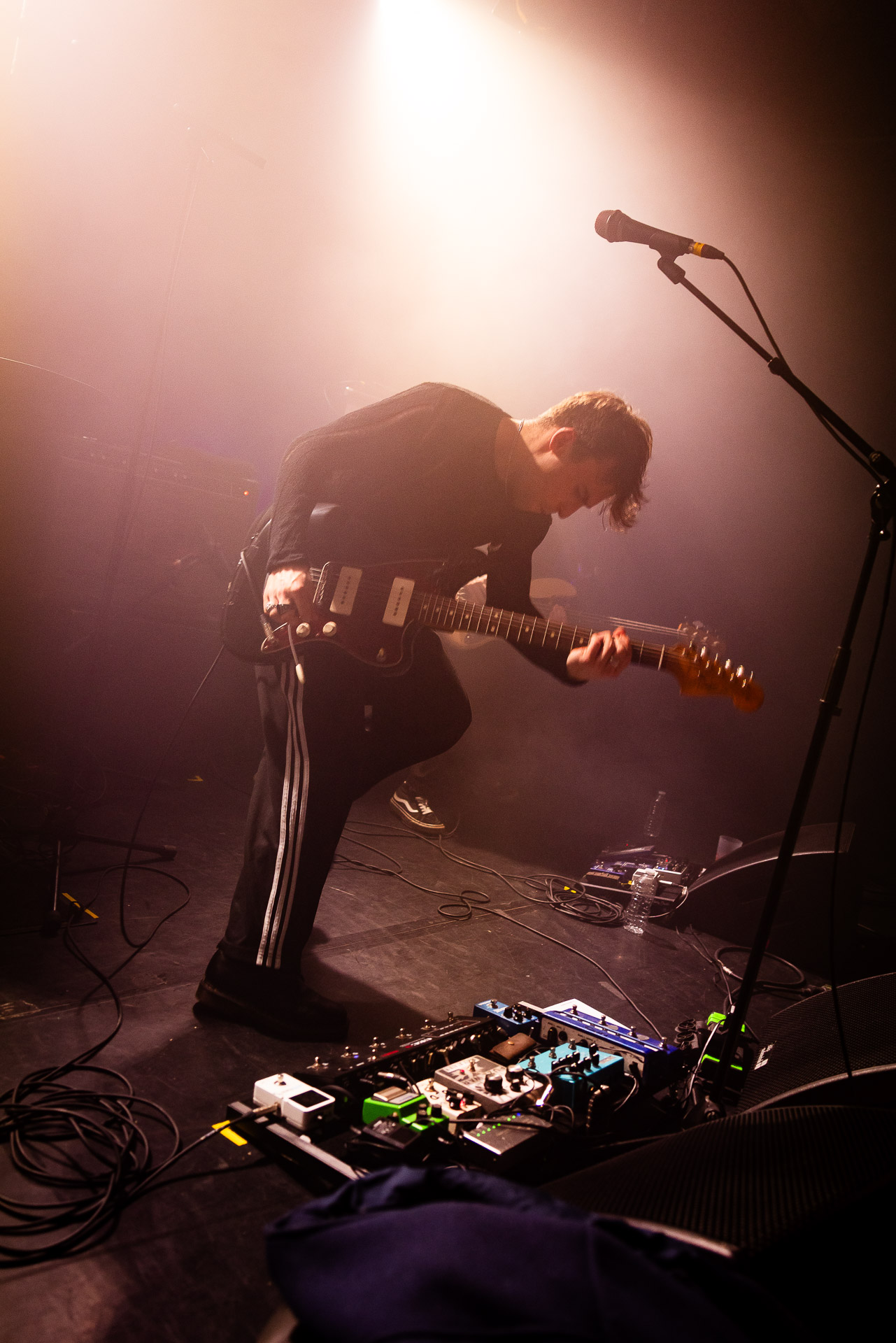 A la Maroquinerie pour son premier album "The House", le groupe bordelais est face à une salle bien remplie, avec déjà pas mal de fans qui animent une fosse qui bouge bien et applaudissent chaleureusement le groupe qui entame le concert à fond les ballons avec les deux parties de “Things Unsaid”. Le son est impeccable, la voix grave passe sans problème par dessus des aigus des Fender et un batteur qui tappe fort comme il faut tout. Comme sur disque c’est une machine implacable qui se met en route, assène riffs sur riffs, construit des crescendos massifs, et induit très vite headbanging et air drumming. Les titres s’enchainent vite, sans que le groupe laisse jamais l’énergie redescendre totalement. Le disque qui sera joué en entier mais dans un ordre assez différent. Si les version enregistrées de l’album tiennent dans une grosse demi-heure, les versions live, augmentés de quelques titres tirées de leurs deux EPS comme "Fentanyl" et "Cigarettes", offrent une bonne heure et quart de concert intense, captivante, avec un son énorme, mais un sens de la mélodie et du groove qui l’est tout autant, délivrés par un groupe souriant et détendu et un frontman déjà totalement à l’aise dans ce rôle.