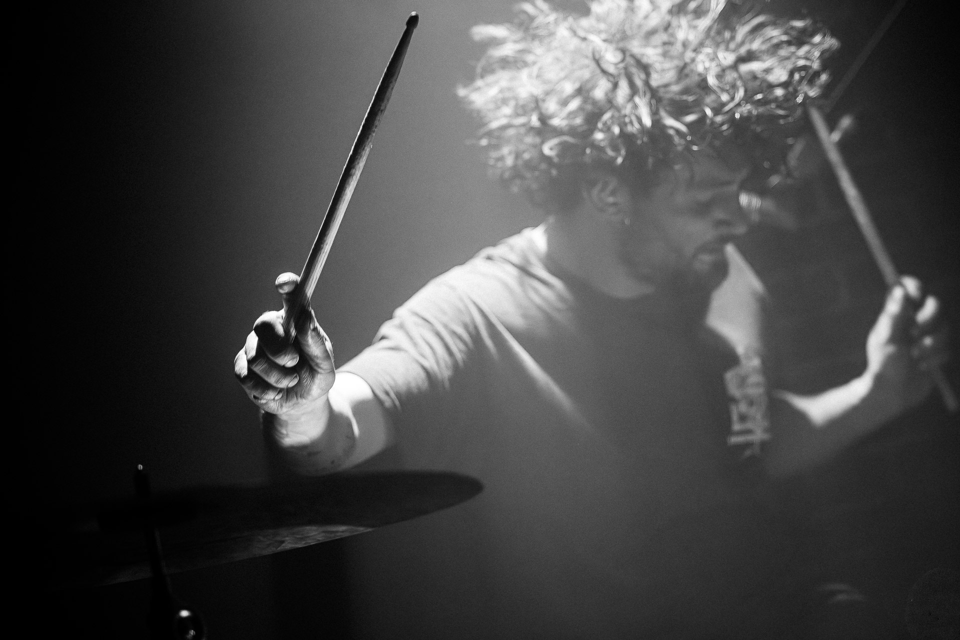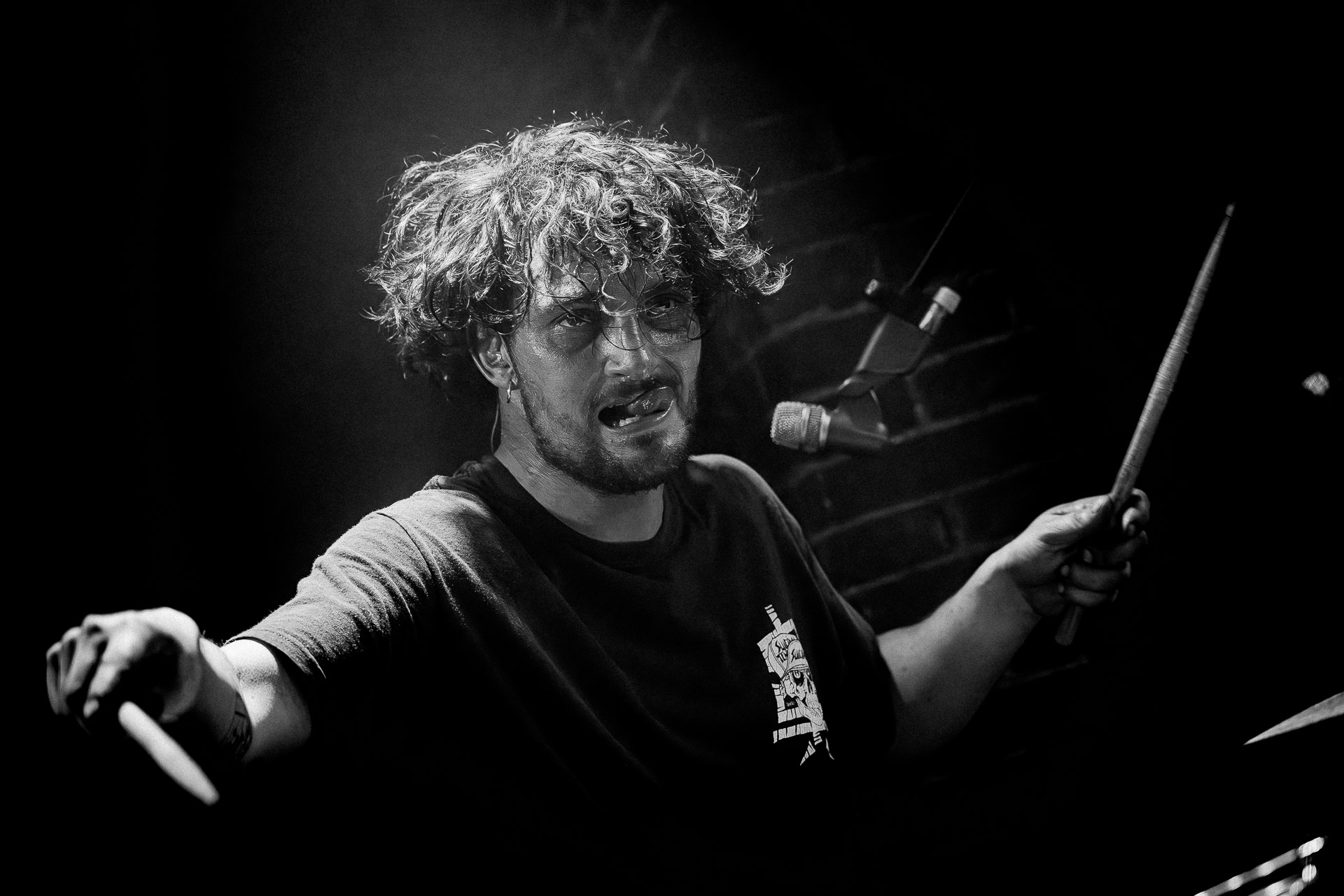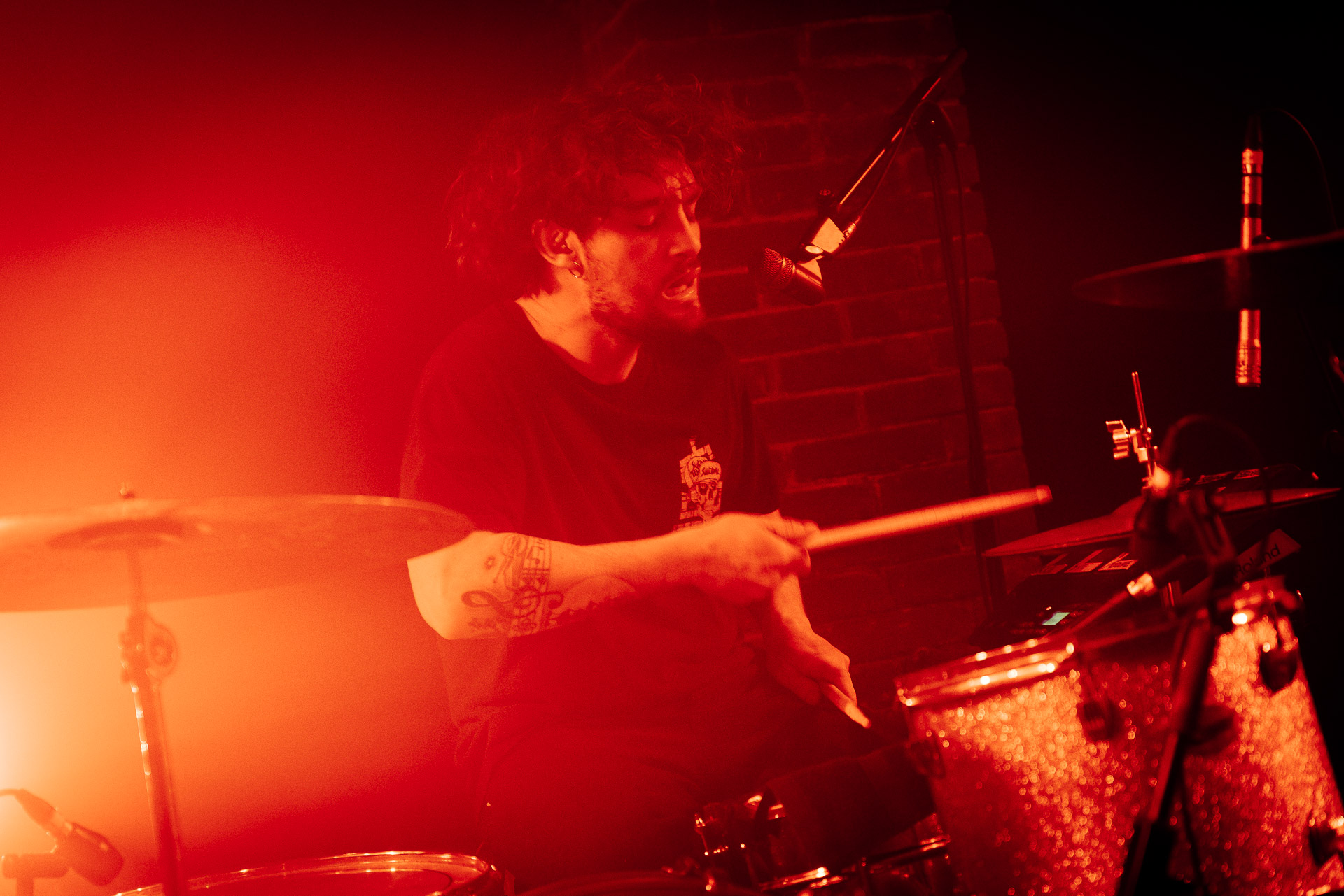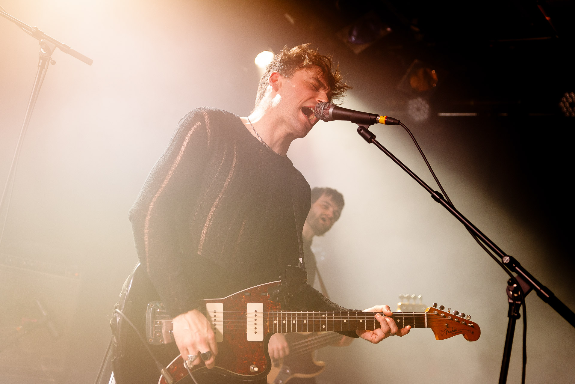 A la Maroquinerie pour son premier album "The House", le groupe bordelais est face à une salle bien remplie, avec déjà pas mal de fans qui animent une fosse qui bouge bien et applaudissent chaleureusement le groupe qui entame le concert à fond les ballons avec les deux parties de “Things Unsaid”. Le son est impeccable, la voix grave passe sans problème par dessus des aigus des Fender et un batteur qui tappe fort comme il faut tout. Comme sur disque c’est une machine implacable qui se met en route, assène riffs sur riffs, construit des crescendos massifs, et induit très vite headbanging et air drumming. Les titres s’enchainent vite, sans que le groupe laisse jamais l’énergie redescendre totalement. Le disque qui sera joué en entier mais dans un ordre assez différent. Si les version enregistrées de l’album tiennent dans une grosse demi-heure, les versions live, augmentés de quelques titres tirées de leurs deux EPS comme "Fentanyl" et "Cigarettes", offrent une bonne heure et quart de concert intense, captivante, avec un son énorme, mais un sens de la mélodie et du groove qui l’est tout autant, délivrés par un groupe souriant et détendu et un frontman déjà totalement à l’aise dans ce rôle.