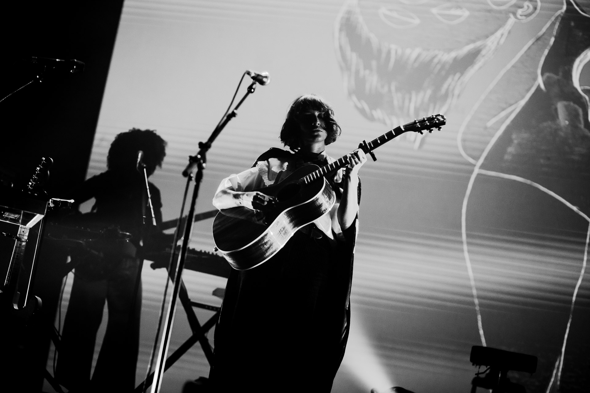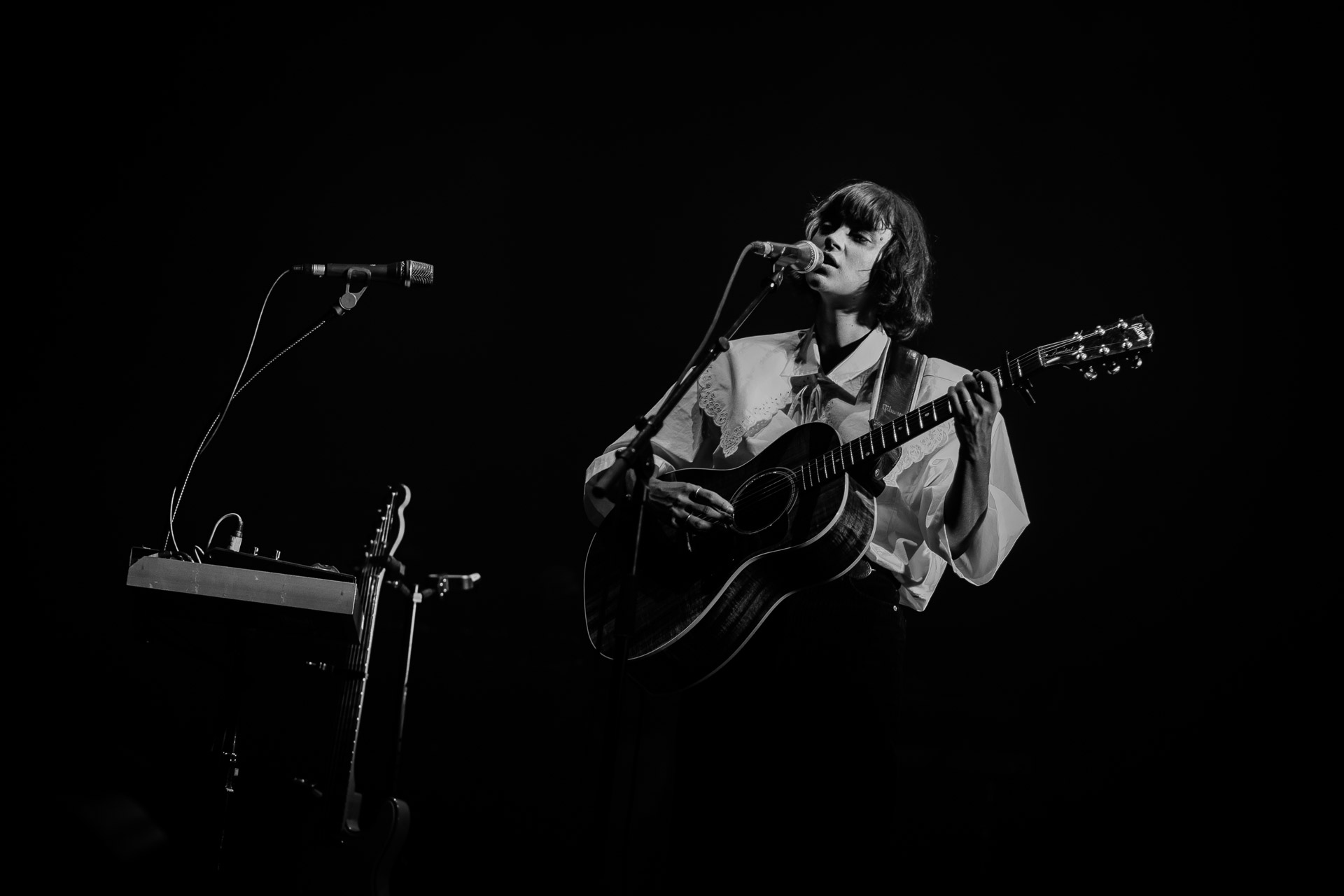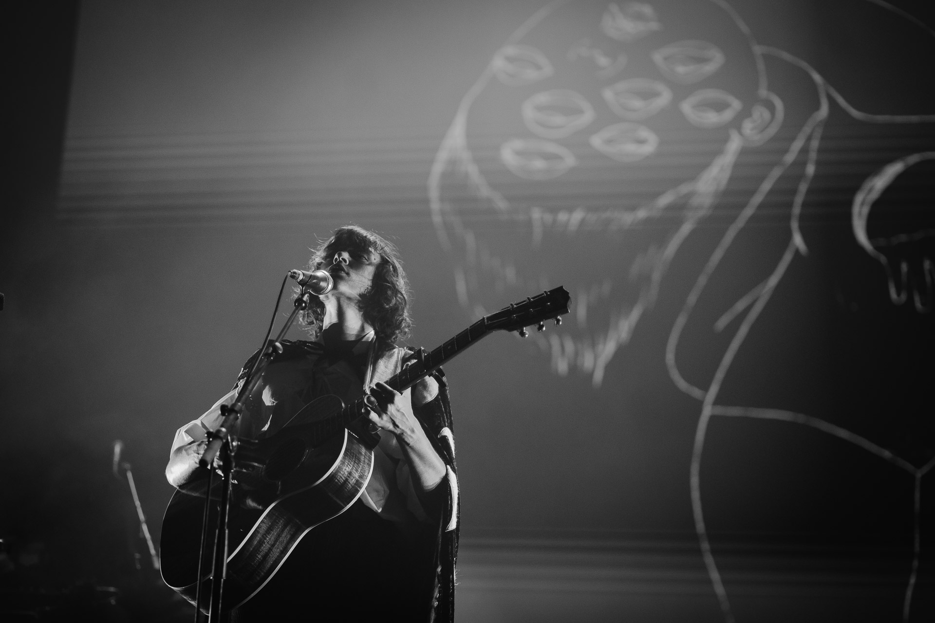 On évoquait au début de l’article qu’on avait fait deux Olympias de suite et que l’expérience avait été assez différente entre les deux. Pas dans la prestation de Pomme elle chante toujours aussi bien et on est presque aussi ému qu’elle parfois quand tout l’Olympia chante avec elle, parce que c’est l’Olympia (trois fois !). On connait désormais très bien les morceaux des failles, on regrette un peu l’impasse presque totale faite sur le premier disque et ses titres un peu plus enjoués. Mais en même temps le deuxième album est un pari artistique audacieux, réussi sur disque et maintenant sur scène (et encore, la basse et la batterie pourraient s’intégrer encore bien plus au cœur des chansons). On découvre aussi une nouvelle (six) corde(s) à l’arc de Pomme, en plus de l’auto-harpe et de l’organelle : une Telecaster qui remplace parfois sa Gibson acoustique avec un très beau son clair de guitare électrique.