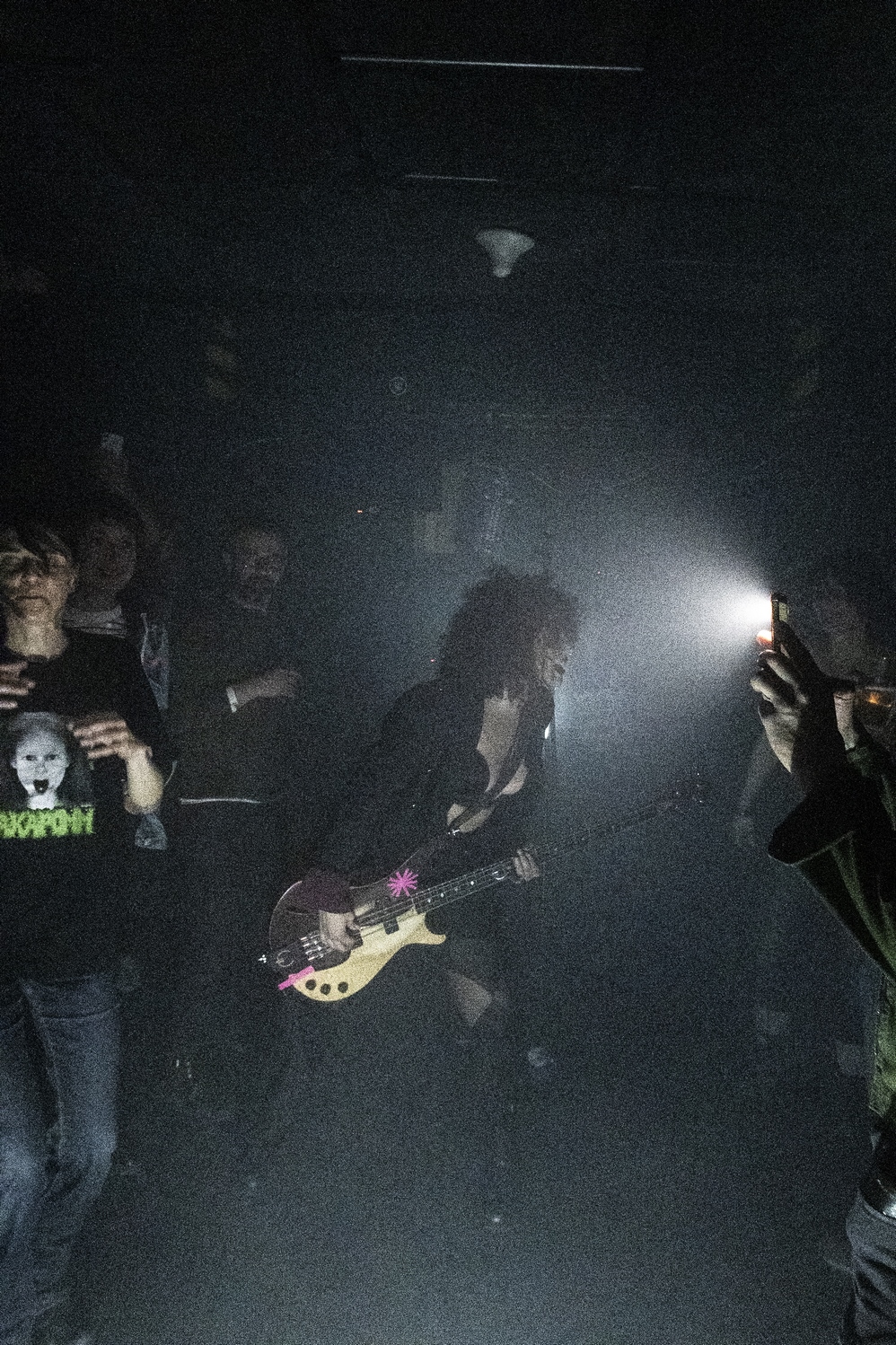 Nous étions tous à l’abri Atomic Cat en ce début avril pour un concert en forme de fin du monde, d’apocalypse. Des lumières au ras du sol, stroboscopiques, un écran qui diffuse des images de manifestations, d’émeutes, d’affrontements, de cérémonies de transe tournées en Tunisie. Un son pas assez fort au gout de certain cause de voisinage, une banalité à Paris mais qui vous prend aux tripes. François et Gianna arpente la salle en hurlant, criant. Il fait chaud, il fait moite. Cette soirée en forme de fin du monde est pleine de passions, de rage, de fureur, d’amour. Beaucoup de tête connues dans la salle, des sourires, des rires, des regards qui percent à travers la pénombre. En cette journée d’avril, le Putan Club était à Paris et c’était beau !