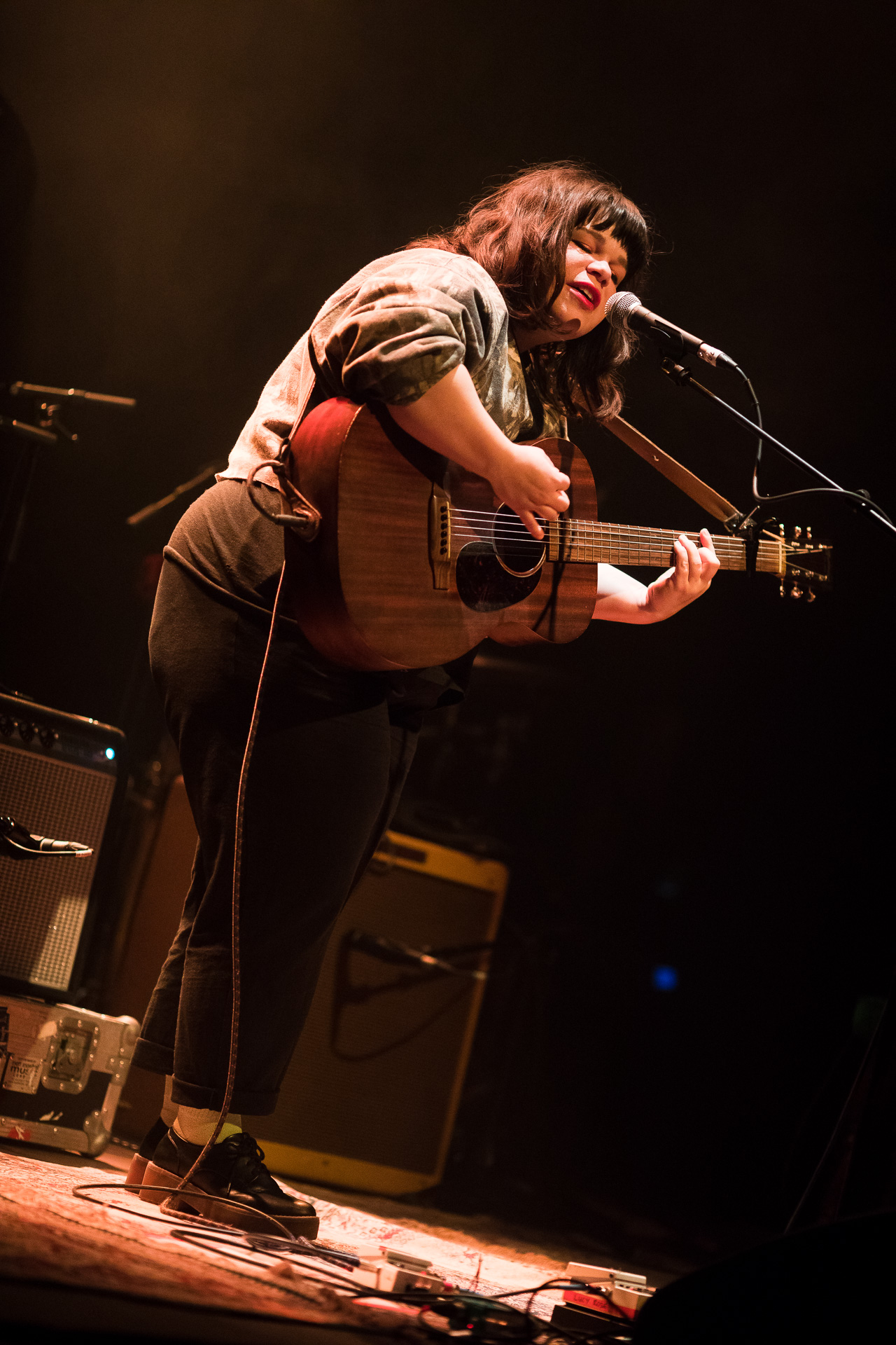 On ne saurait dire si c’est nous qui n’étions pas encore "chaud" pour un set folk, si c’est le calme assis d’un café de la danse sage comme une image ou si c’est parce qu’elle souhaitait que son set soit cohérent avec la musique feutrée et délicate de Lucy Rose, pour qui elle ouvrait ce soir mais on est donc resté légèrement sur notre faim avec le set de Samantha Crain. Qui nous a proposé une demi-heure de folk douce, mettant surtout en relief une jolie voix et de temps en temps une partie de guitare acoustique qui ressort du simple accompagnement gratté. C’était joli donc et le public de Lucy Rose a écouté très poliment (peut être trop d’ailleurs, les tentatives de communication de Samantha ne trouvent que des réponses bien timides en dehors des applaudissements) mais voilà c’est très classique et il manquait de l’énergie. Pas de quoi vous inciter à écouter plus en théorie mais voilà on a tenté et on a été très agréablement surpris de trouver sur disque ce qui pouvait en live de cette amérindienne qui a gagné deux fois les NAMMYs (l’équivalent des grammys pour la communauté amérindienne) : du rythme, des arrangements variés qui vont de l’indie rock à une sorte de folk-rock cuivrée comme a pu le tenter Iron & Wine (et Lucy Rose justement), il y a de l’irrévérence, du piquant et on ne s’est pas ennuyé une seconde en écoutant les albums Kinda et You Had me at Goodbye.