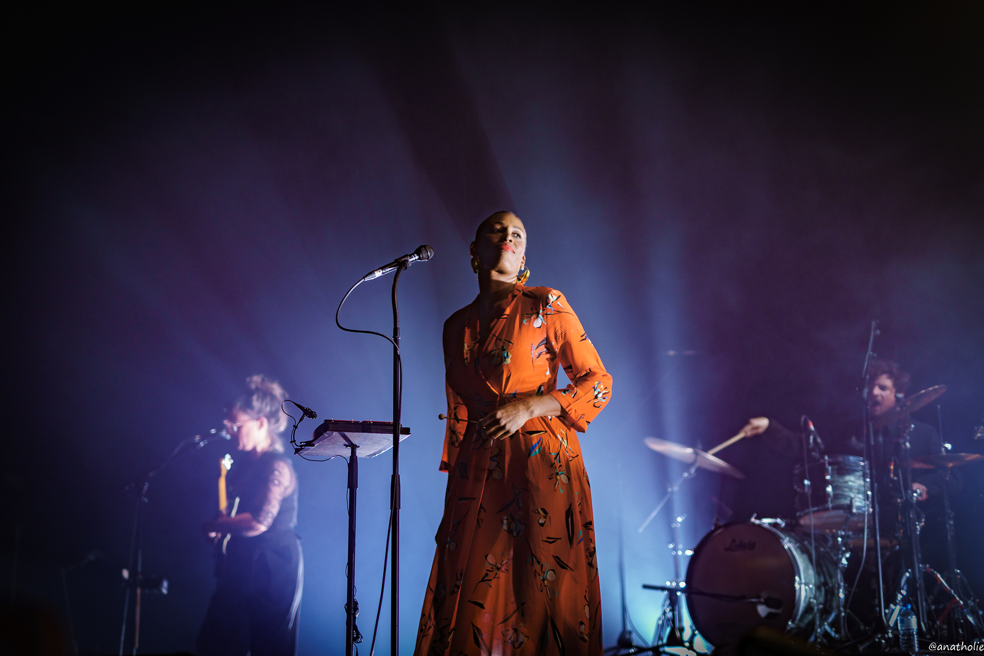 Victoire de la musique "Révélation Jazz" en 2012, Sandra Nkaké est en tournée depuis la sortie de son troisième album, Tangerine Moon Wishes, fin 2017, et après son concert ensoleillé de fin d’après-midi l’été dernier au CosmoJazz Festival de Chamonix, on la retrouve cette fois sur une scène classique où les jeux de lumière et fumigènes contribuent à créer une atmosphère intimiste, propice au voyage introspectif proposé par l’album.