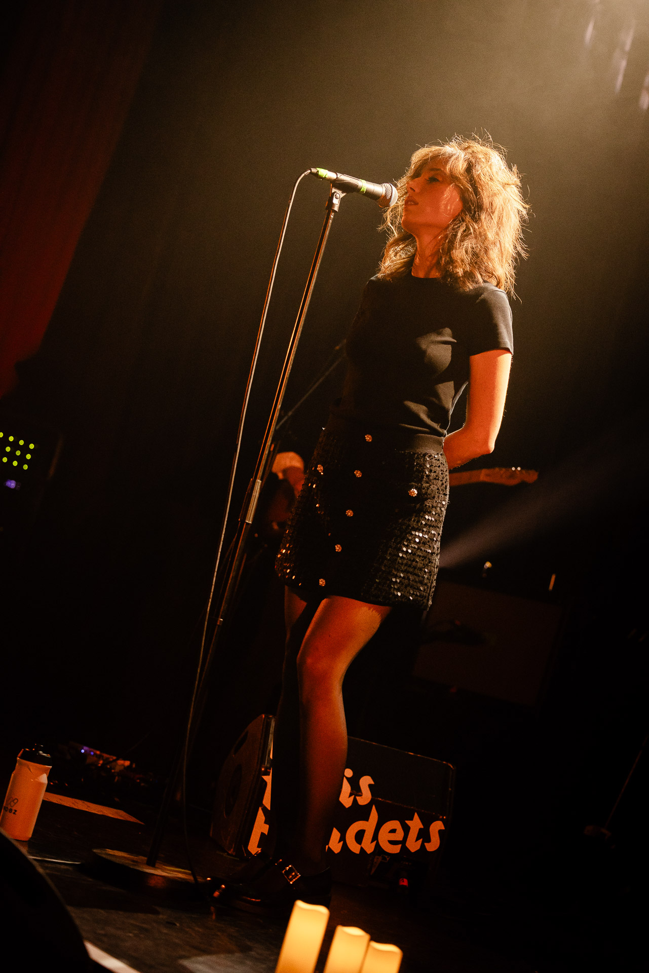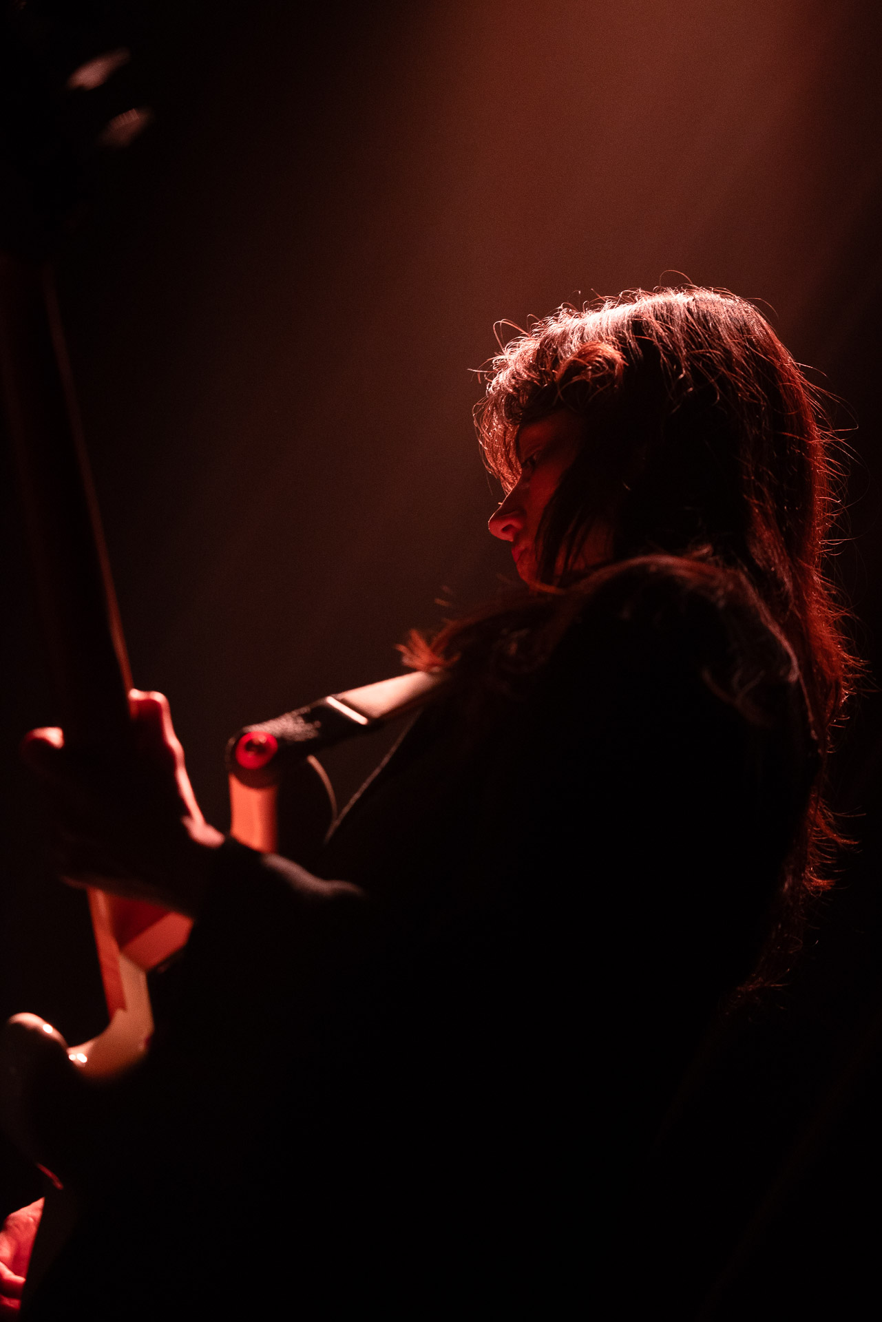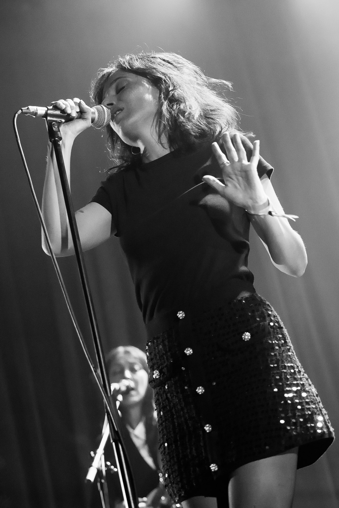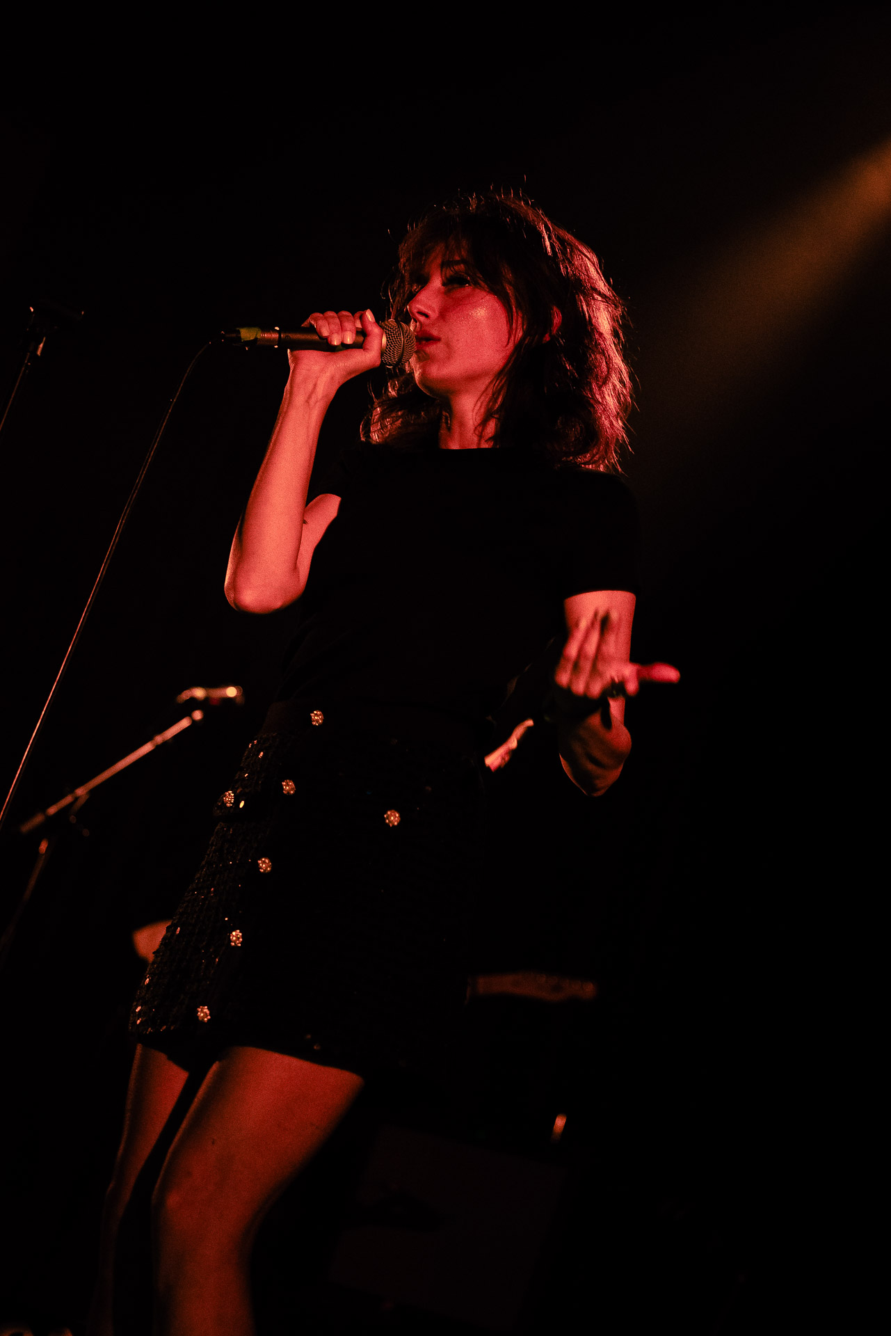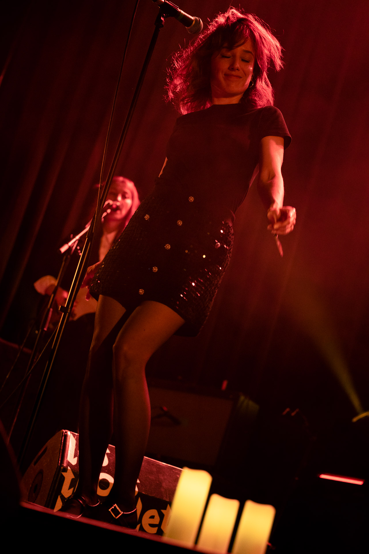 Tout comme Benni programmée juste avant, Savanah nous avait tapé dans l’œil avec un superbe EP, Céleste sorti cette année et on attendait donc avec impatience de confirmer tout le bien qu’on en pense en concert. Pour cette date au Mama, dans le cadre douillet des Trois Baudets, la chanteuse est accompagnée de deux musiciennes, Adeline Jasso à la guitariste et Camille aka Roma Luca à la basse tandis que la rythmique et les claviers sont des backing tracks, ce qui ne se remarque vraiment pas dans cette formule hybride surtout avec la présence scénique d’une Savanah sans contexte sur le devant de la scène, qui danse, sourit mais sait aussi garder ce côté langoureux, mystérieux voir "Lynchien" qu’on ressentait sur disque, les yeux souvent mi-clos, le visage encadré d’un casque de cheveux qui reflètent les éclairages focalisés sur elle. La prestation des trois musiciennes tout comme le son des trois baudets est impeccable, on retrouve sur scène les atmosphères vaporeuses, langoureuses de l’EP, à travers bien sûr la très jolie voix de Savannah qui a a vraiment quelque chose dans sa douceur, ses intonations qui la rendent irrésistibles mais aussi des arrangements guitare/basse qui se marient bien aux textures électro-pop de titres très atmosphériques comme "Villes Noires" ou "Fantôme" avec son superbe refrain qu’on pourrait écouter des dizaines de fois.