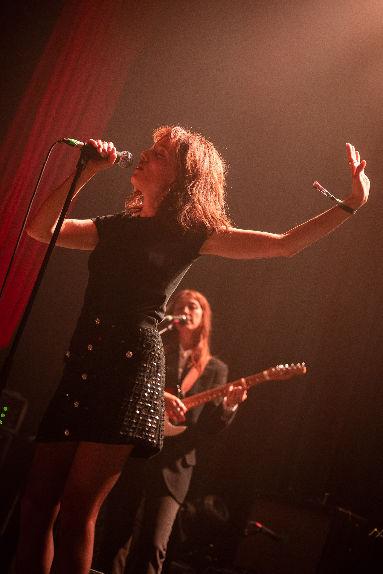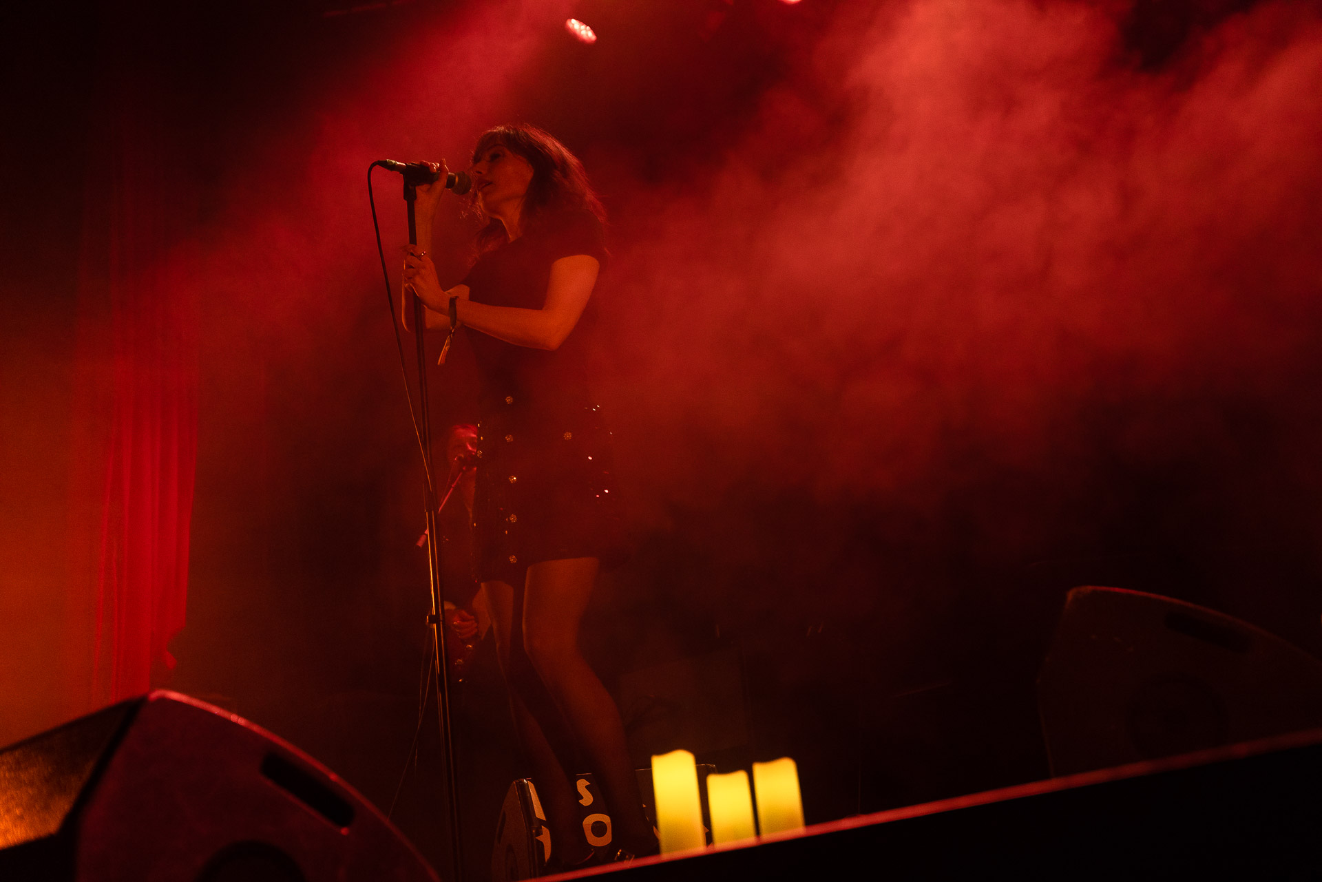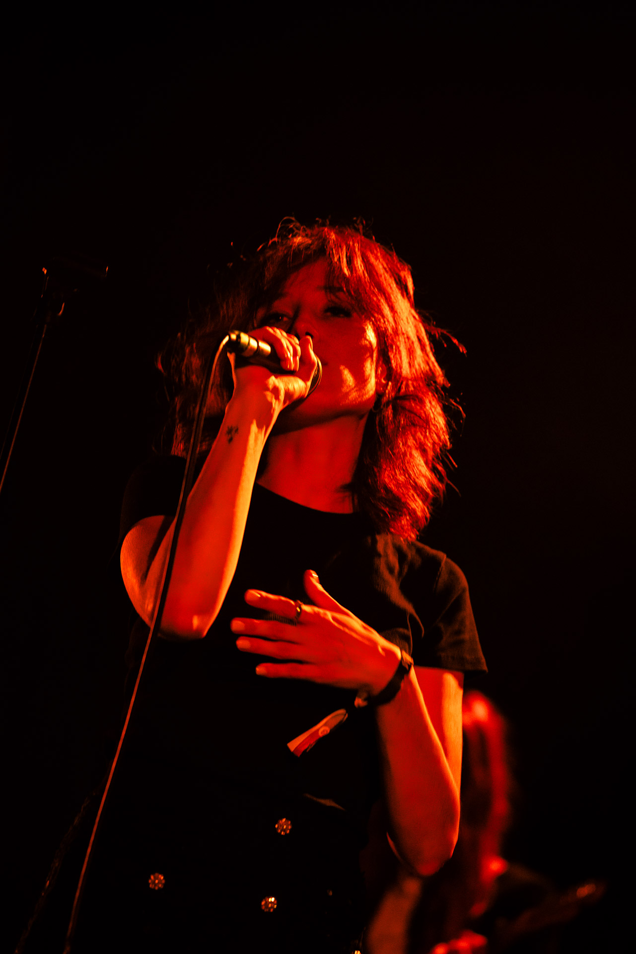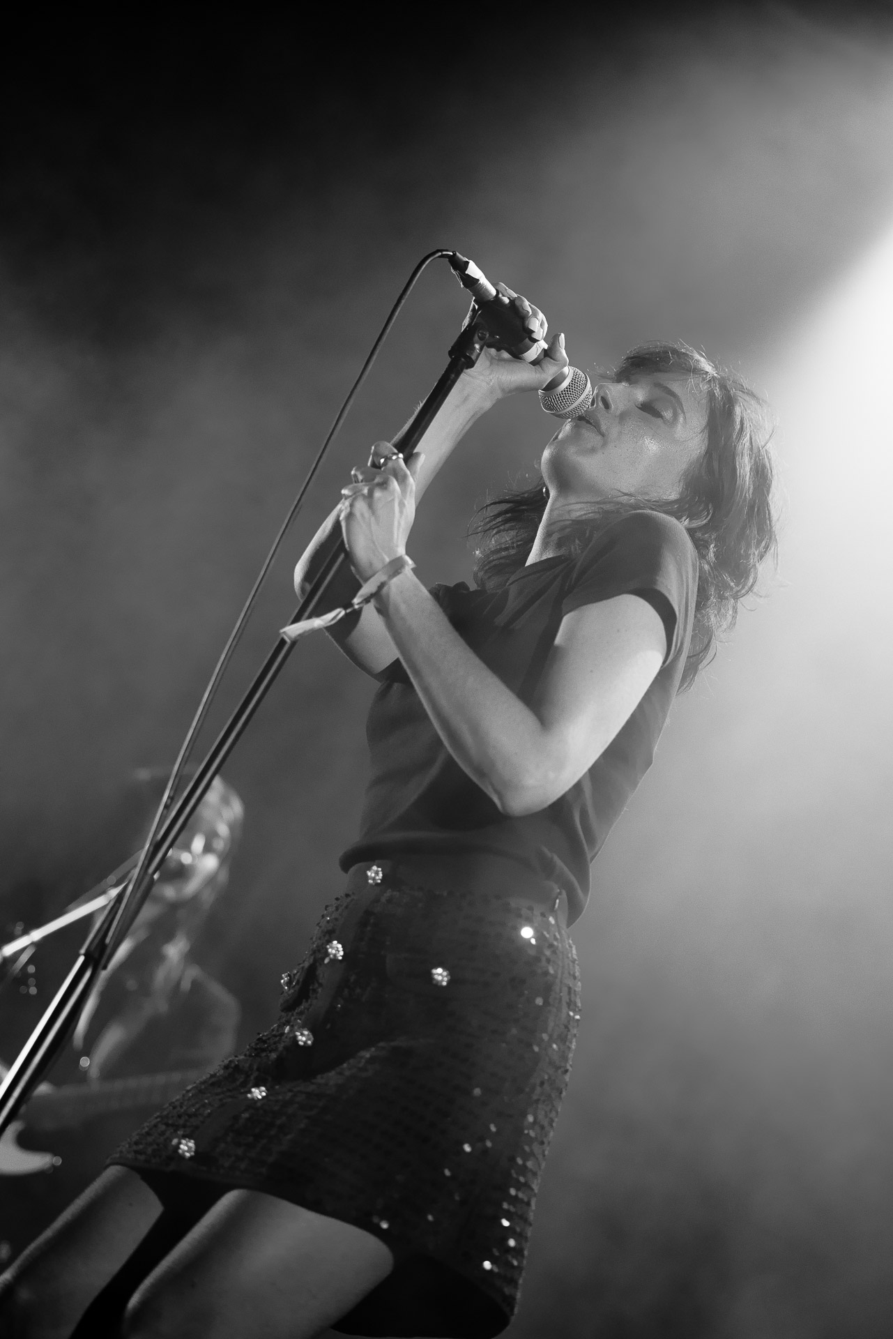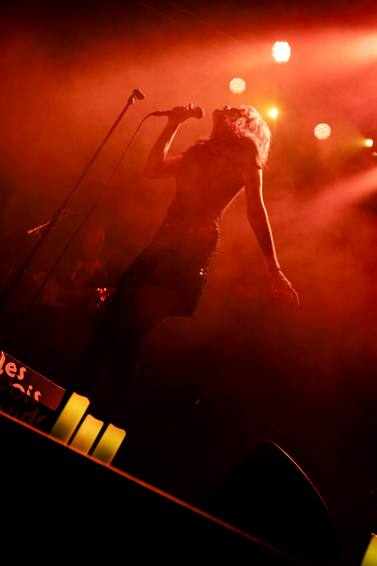 Tout comme Benni programmée juste avant, Savanah nous avait tapé dans l’œil avec un superbe EP, Céleste sorti cette année et on attendait donc avec impatience de confirmer tout le bien qu’on en pense en concert. Pour cette date au Mama, dans le cadre douillet des Trois Baudets, la chanteuse est accompagnée de deux musiciennes, Adeline Jasso à la guitariste et Camille aka Roma Luca à la basse tandis que la rythmique et les claviers sont des backing tracks, ce qui ne se remarque vraiment pas dans cette formule hybride surtout avec la présence scénique d’une Savanah sans contexte sur le devant de la scène, qui danse, sourit mais sait aussi garder ce côté langoureux, mystérieux voir "Lynchien" qu’on ressentait sur disque, les yeux souvent mi-clos, le visage encadré d’un casque de cheveux qui reflètent les éclairages focalisés sur elle. La prestation des trois musiciennes tout comme le son des trois baudets est impeccable, on retrouve sur scène les atmosphères vaporeuses, langoureuses de l’EP, à travers bien sûr la très jolie voix de Savannah qui a a vraiment quelque chose dans sa douceur, ses intonations qui la rendent irrésistibles mais aussi des arrangements guitare/basse qui se marient bien aux textures électro-pop de titres très atmosphériques comme "Villes Noires" ou "Fantôme" avec son superbe refrain qu’on pourrait écouter des dizaines de fois.
