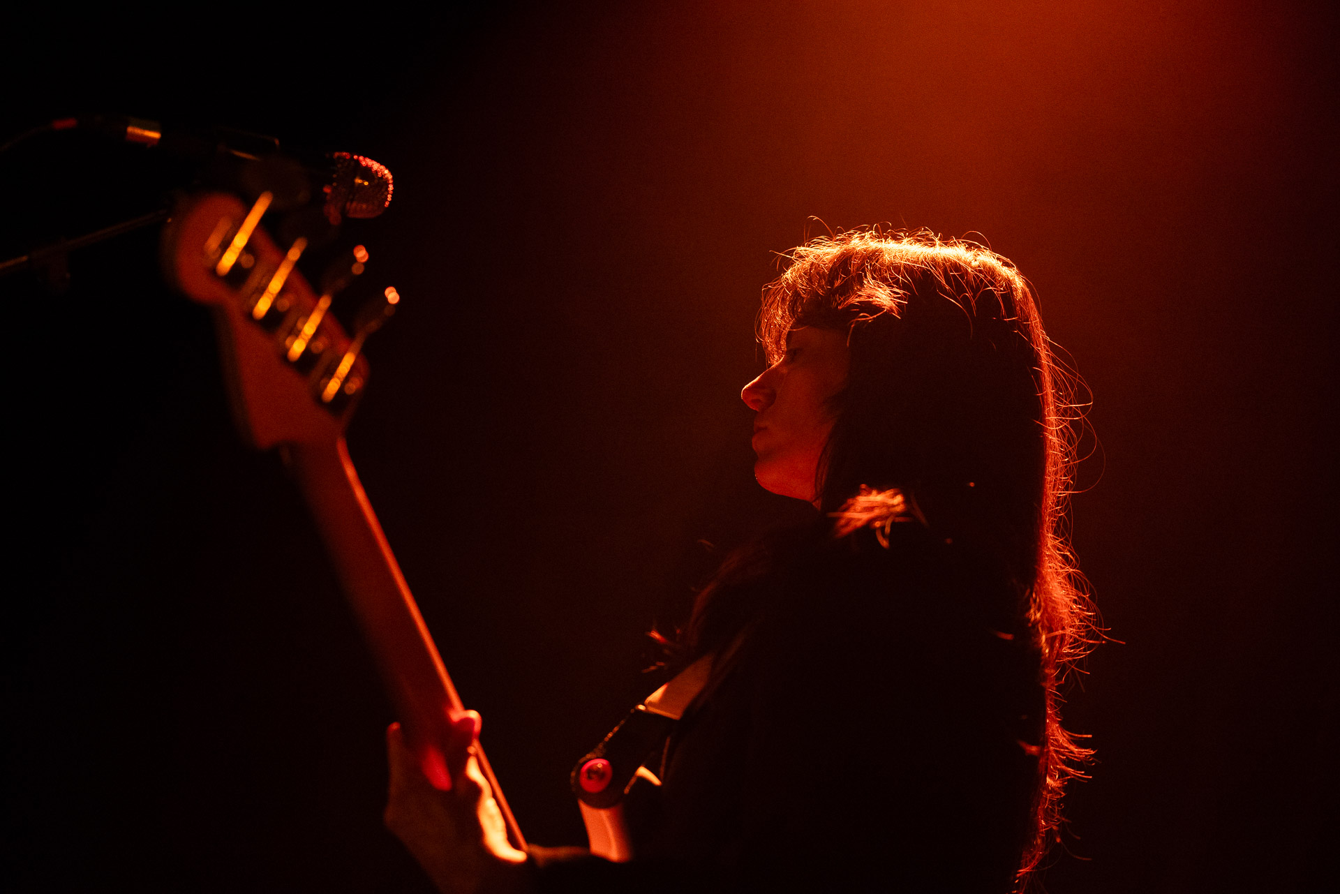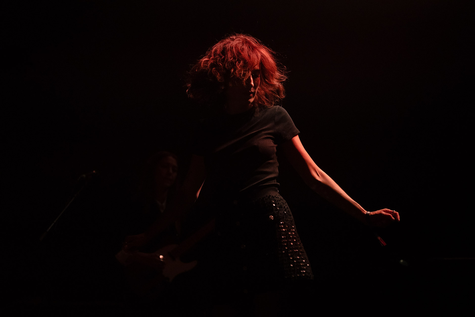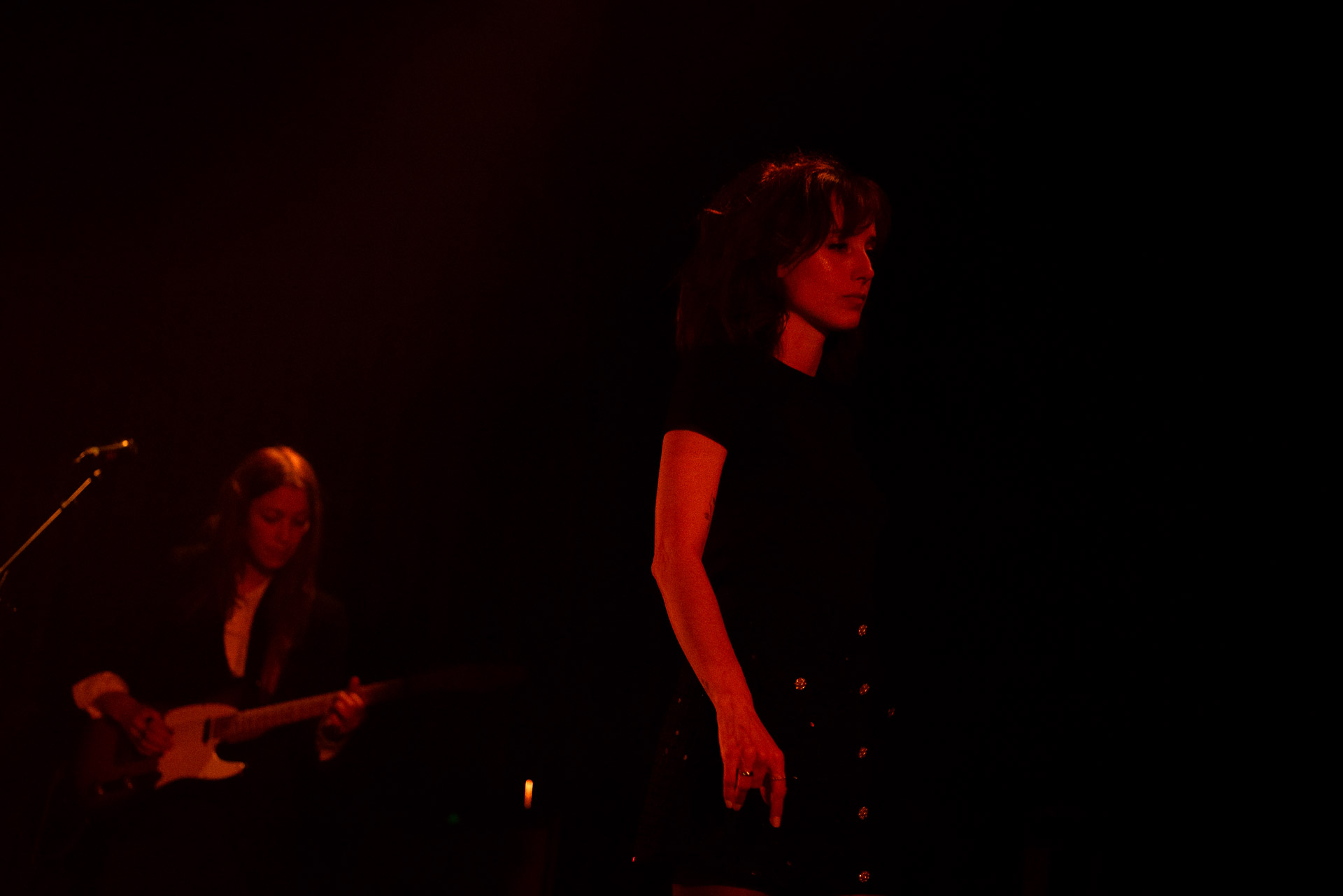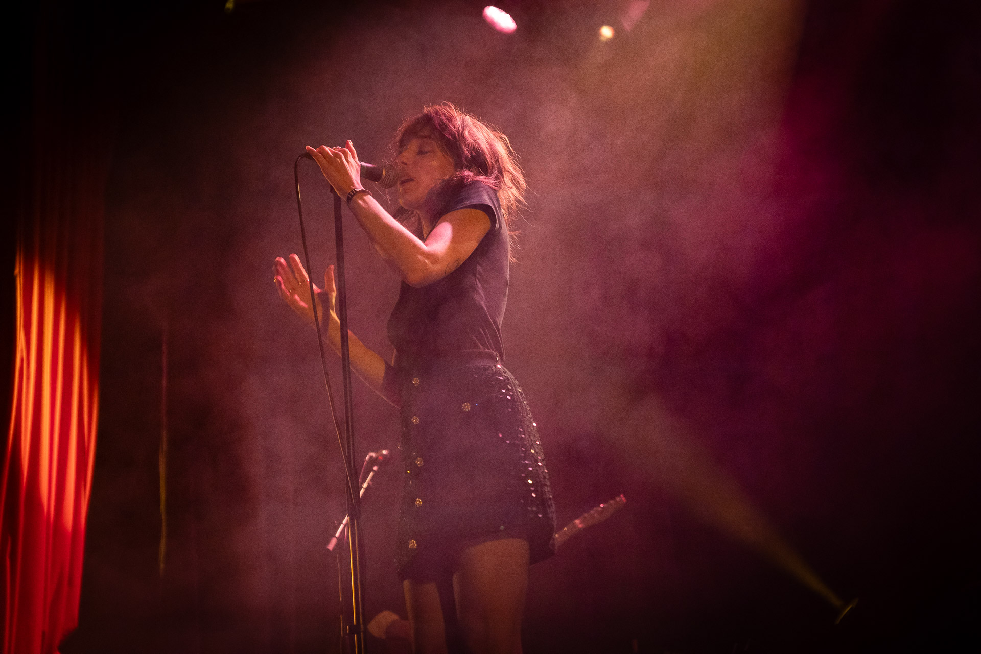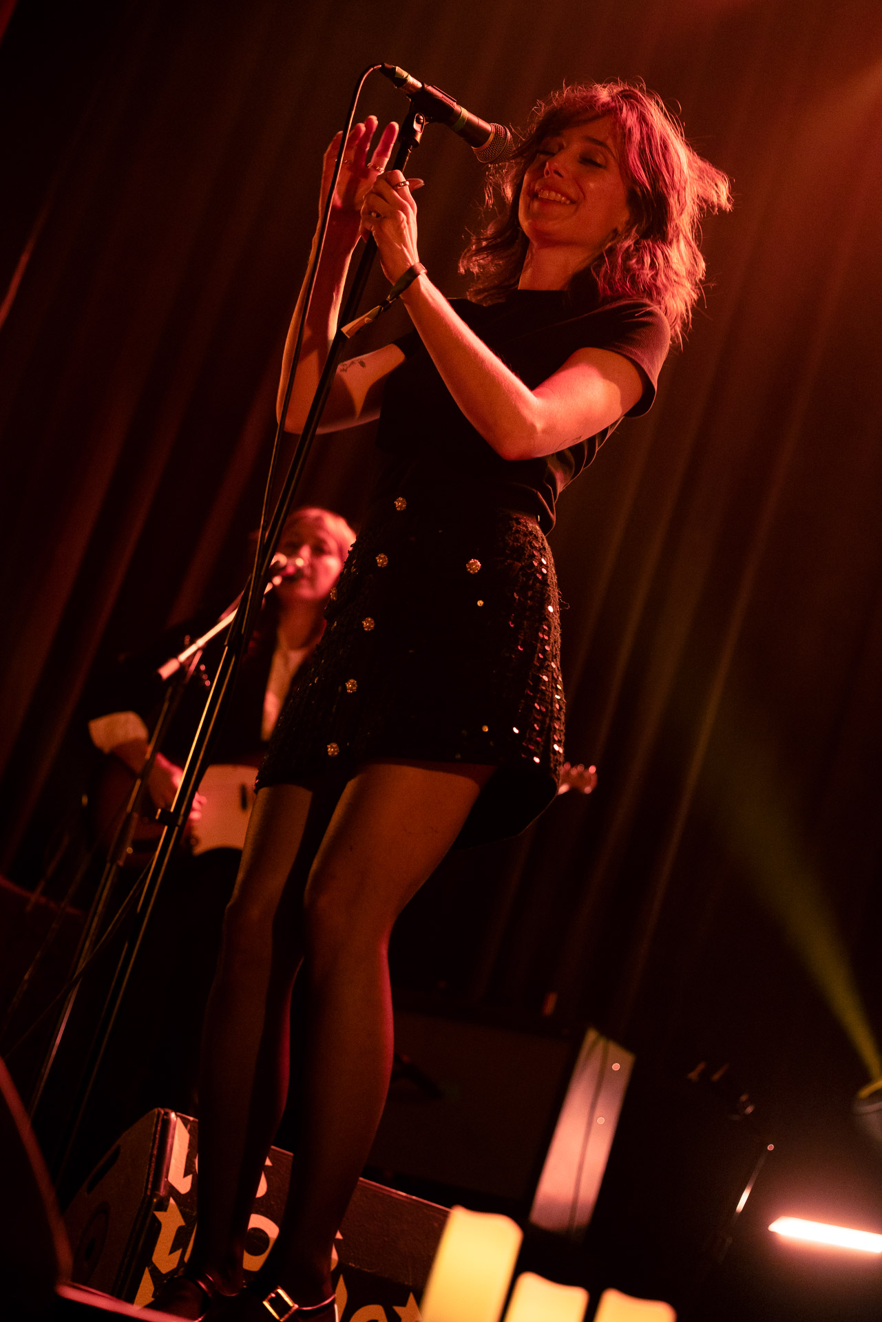 Tout comme Benni programmée juste avant, Savanah nous avait tapé dans l’œil avec un superbe EP, Céleste sorti cette année et on attendait donc avec impatience de confirmer tout le bien qu’on en pense en concert. Pour cette date au Mama, dans le cadre douillet des Trois Baudets, la chanteuse est accompagnée de deux musiciennes, Adeline Jasso à la guitariste et Camille aka Roma Luca à la basse tandis que la rythmique et les claviers sont des backing tracks, ce qui ne se remarque vraiment pas dans cette formule hybride surtout avec la présence scénique d’une Savanah sans contexte sur le devant de la scène, qui danse, sourit mais sait aussi garder ce côté langoureux, mystérieux voir "Lynchien" qu’on ressentait sur disque, les yeux souvent mi-clos, le visage encadré d’un casque de cheveux qui reflètent les éclairages focalisés sur elle. La prestation des trois musiciennes tout comme le son des trois baudets est impeccable, on retrouve sur scène les atmosphères vaporeuses, langoureuses de l’EP, à travers bien sûr la très jolie voix de Savannah qui a a vraiment quelque chose dans sa douceur, ses intonations qui la rendent irrésistibles mais aussi des arrangements guitare/basse qui se marient bien aux textures électro-pop de titres très atmosphériques comme "Villes Noires" ou "Fantôme" avec son superbe refrain qu’on pourrait écouter des dizaines de fois.