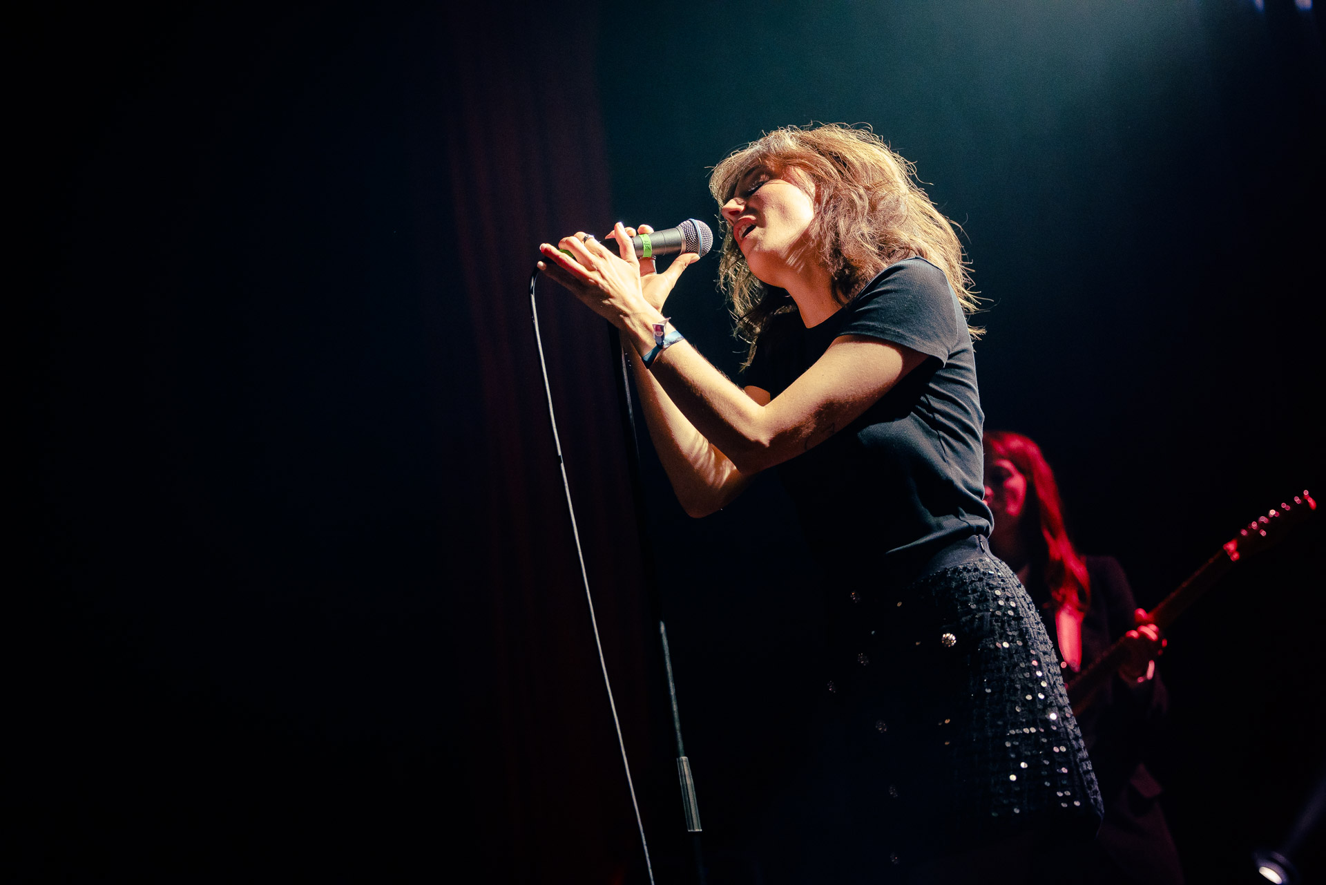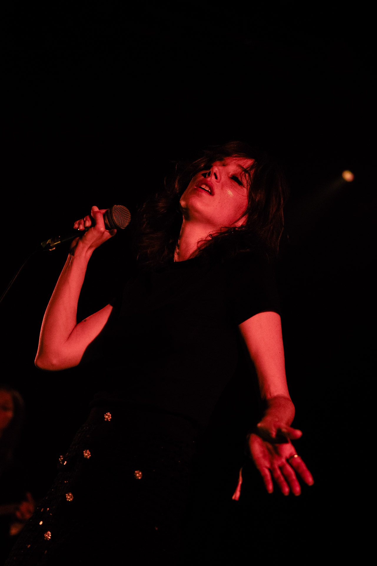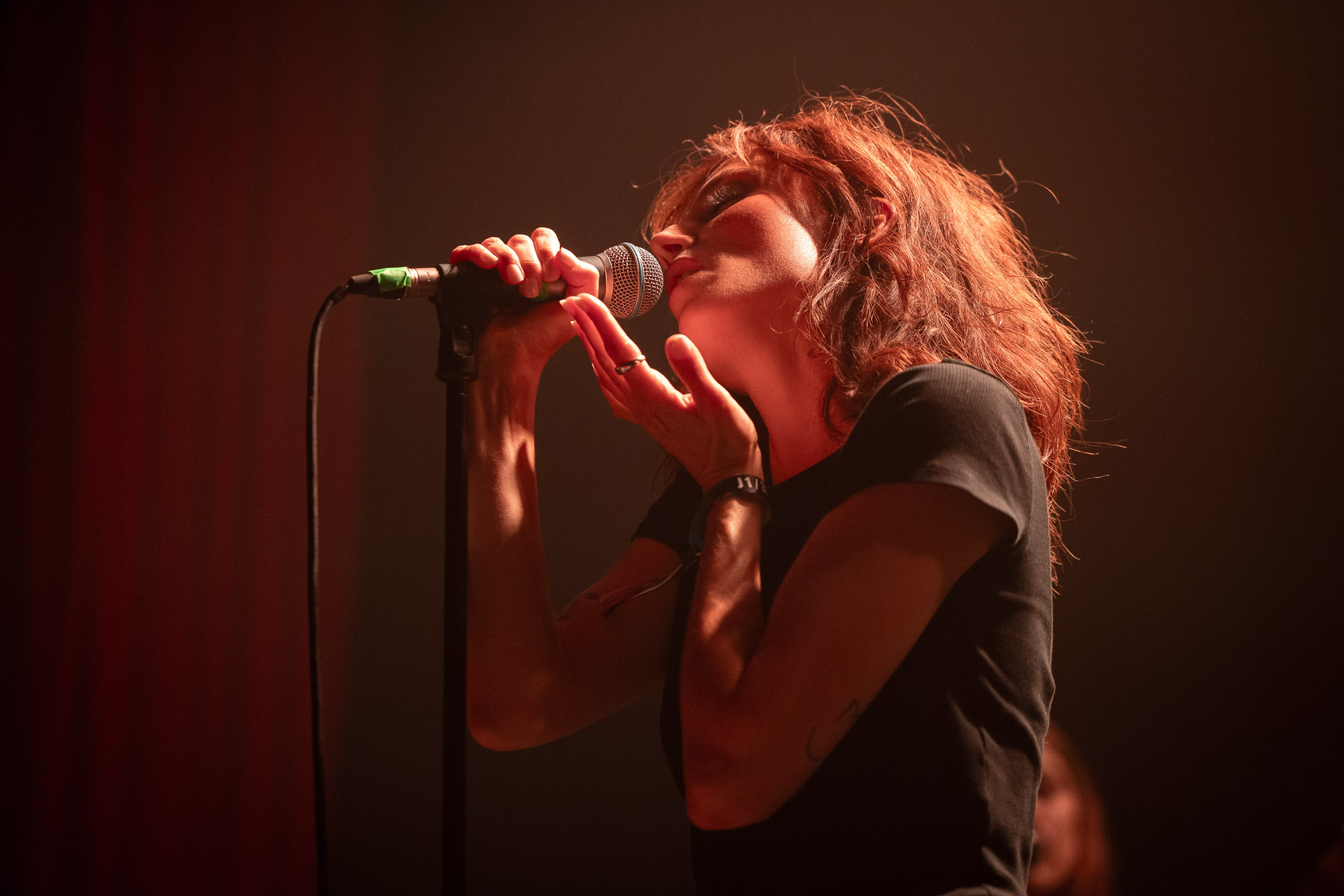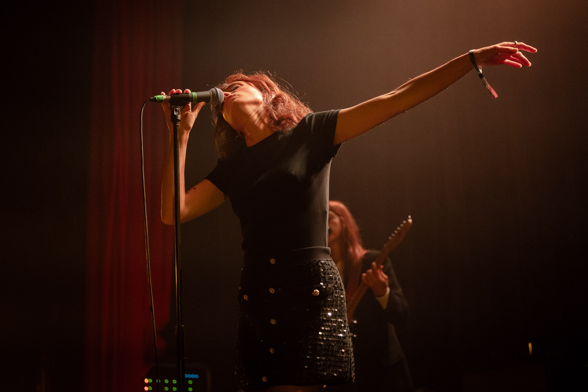 Tout comme Benni programmée juste avant, Savanah nous avait tapé dans l’œil avec un superbe EP, Céleste sorti cette année et on attendait donc avec impatience de confirmer tout le bien qu’on en pense en concert. Pour cette date au Mama, dans le cadre douillet des Trois Baudets, la chanteuse est accompagnée de deux musiciennes, Adeline Jasso à la guitariste et Camille aka Roma Luca à la basse tandis que la rythmique et les claviers sont des backing tracks, ce qui ne se remarque vraiment pas dans cette formule hybride surtout avec la présence scénique d’une Savanah sans contexte sur le devant de la scène, qui danse, sourit mais sait aussi garder ce côté langoureux, mystérieux voir "Lynchien" qu’on ressentait sur disque, les yeux souvent mi-clos, le visage encadré d’un casque de cheveux qui reflètent les éclairages focalisés sur elle. La prestation des trois musiciennes tout comme le son des trois baudets est impeccable, on retrouve sur scène les atmosphères vaporeuses, langoureuses de l’EP, à travers bien sûr la très jolie voix de Savannah qui a a vraiment quelque chose dans sa douceur, ses intonations qui la rendent irrésistibles mais aussi des arrangements guitare/basse qui se marient bien aux textures électro-pop de titres très atmosphériques comme "Villes Noires" ou "Fantôme" avec son superbe refrain qu’on pourrait écouter des dizaines de fois.