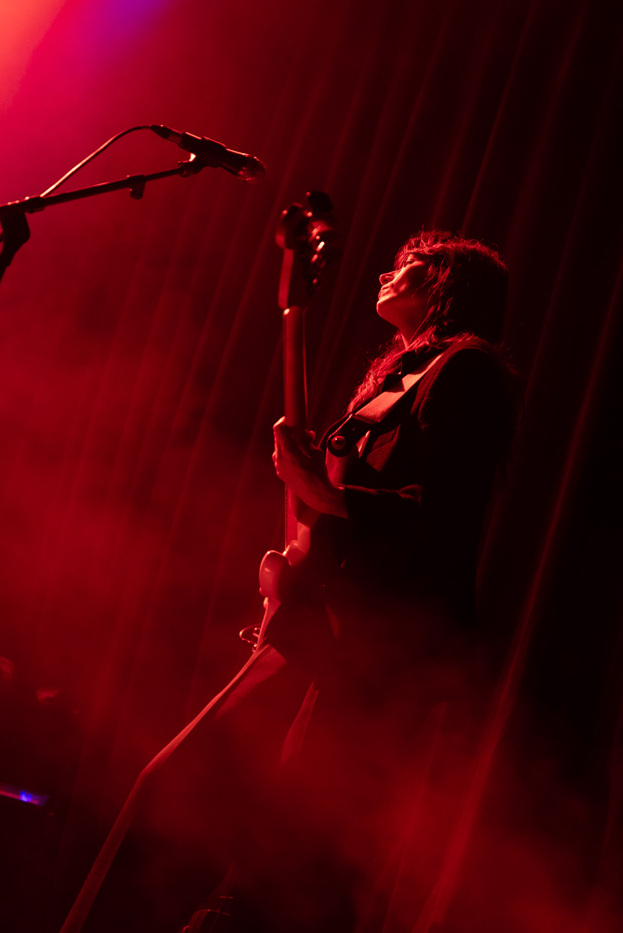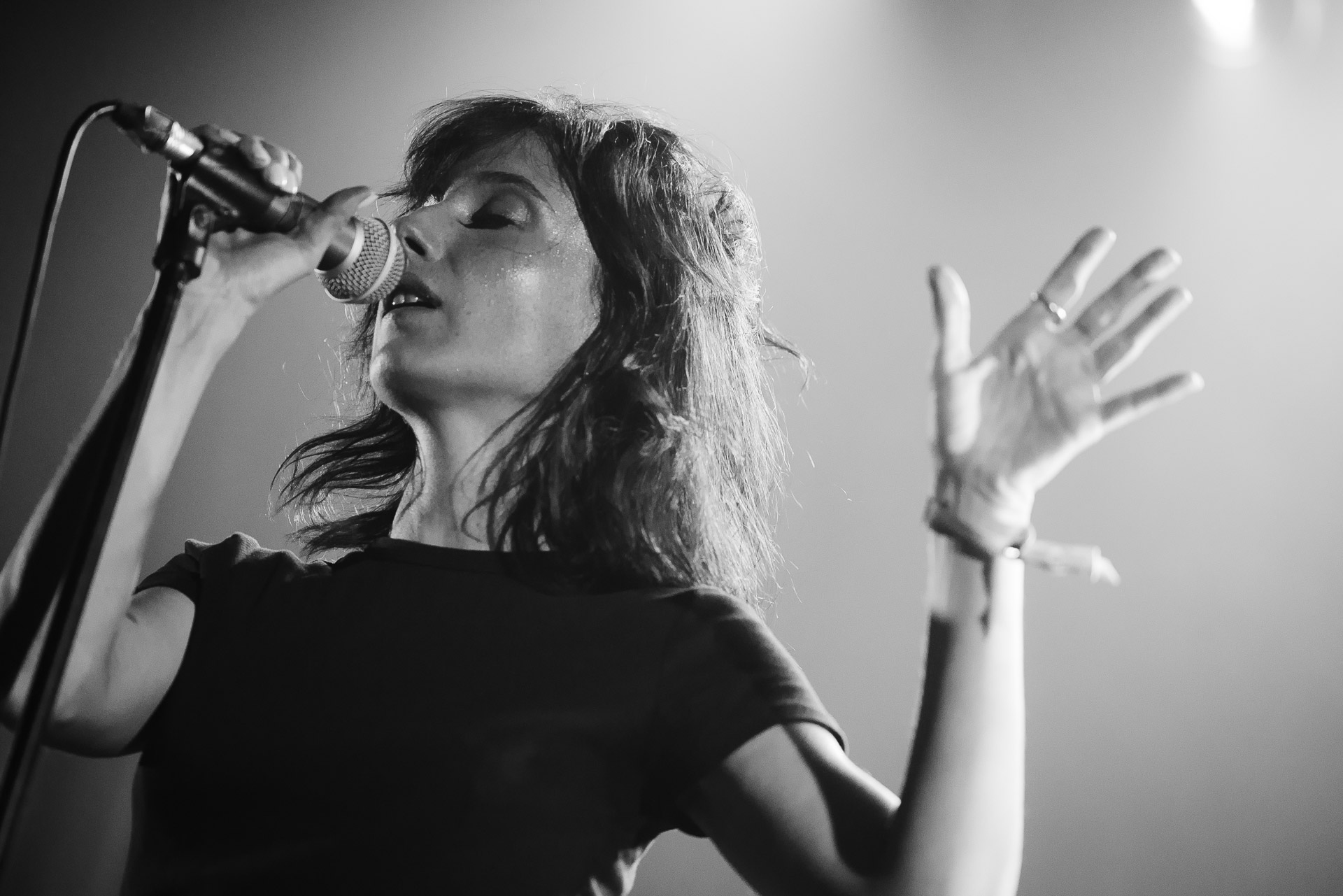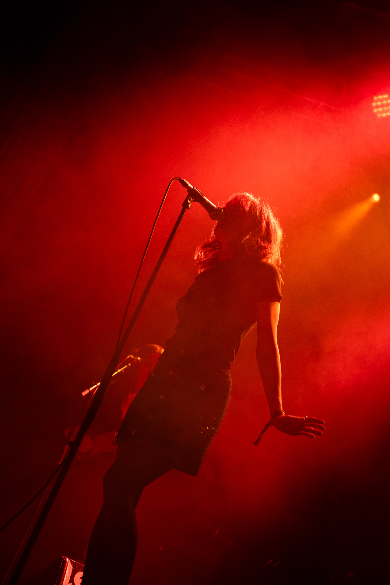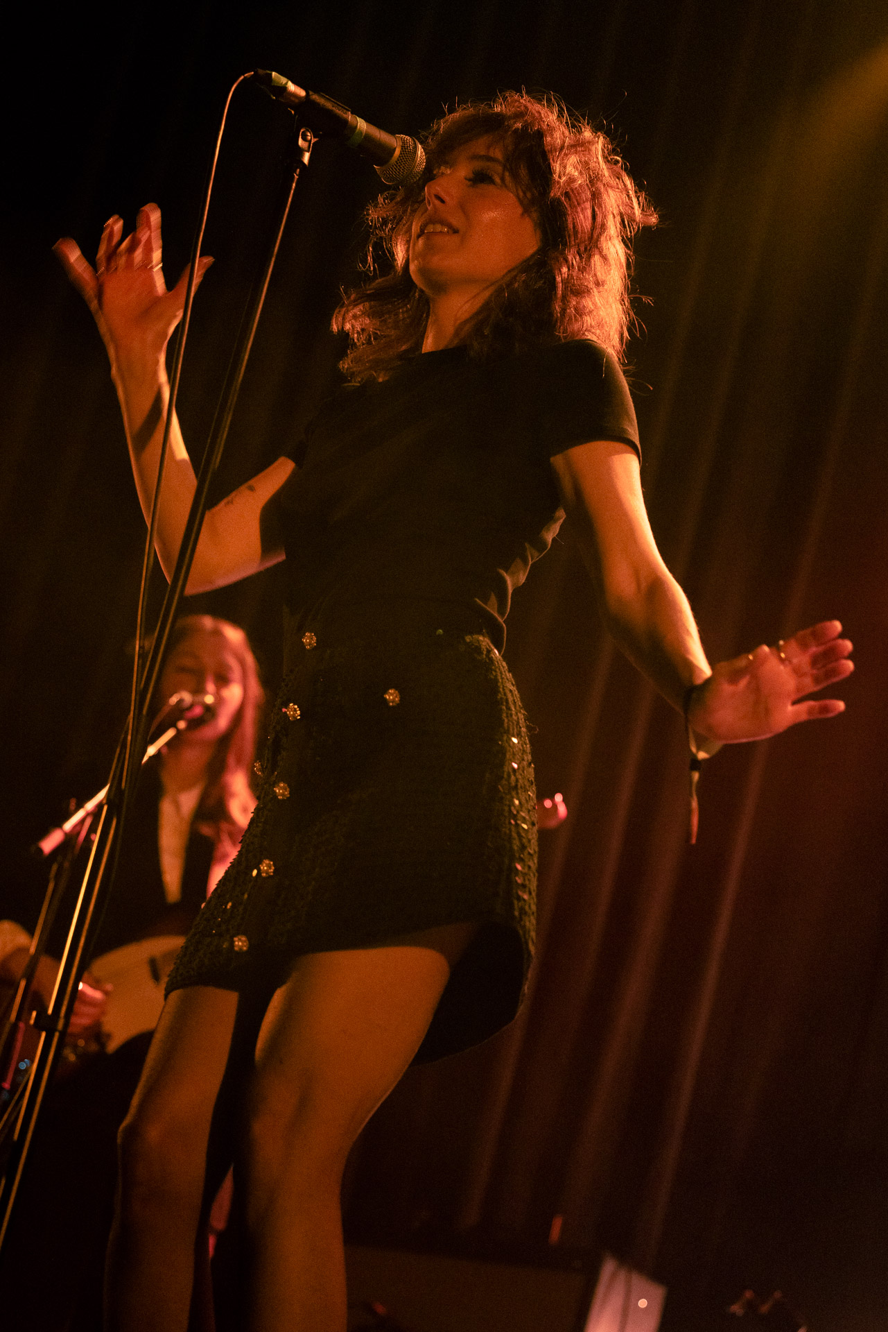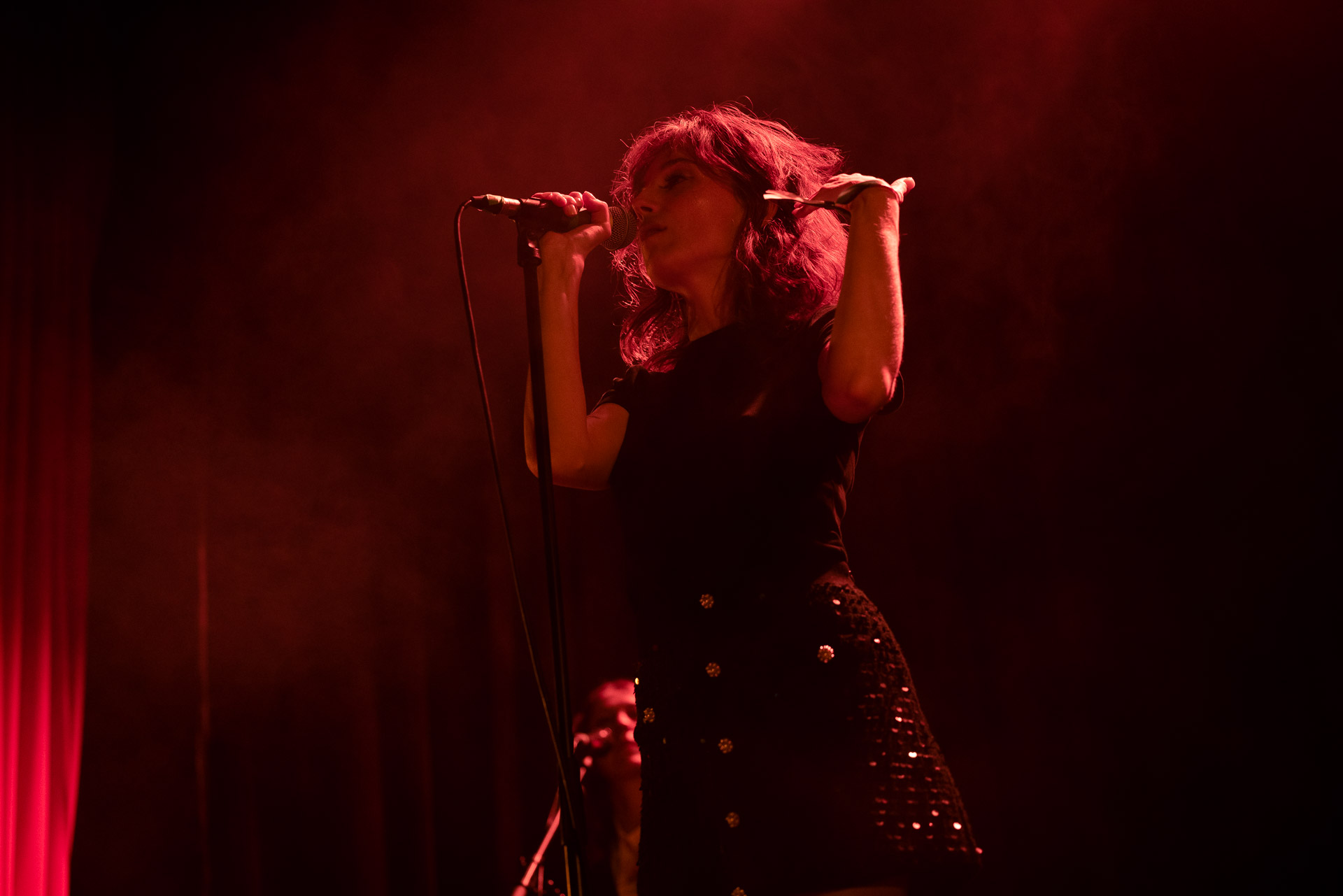 Tout comme Benni programmée juste avant, Savanah nous avait tapé dans l’œil avec un superbe EP, Céleste sorti cette année et on attendait donc avec impatience de confirmer tout le bien qu’on en pense en concert. Pour cette date au Mama, dans le cadre douillet des Trois Baudets, la chanteuse est accompagnée de deux musiciennes, Adeline Jasso à la guitariste et Camille aka Roma Luca à la basse tandis que la rythmique et les claviers sont des backing tracks, ce qui ne se remarque vraiment pas dans cette formule hybride surtout avec la présence scénique d’une Savanah sans contexte sur le devant de la scène, qui danse, sourit mais sait aussi garder ce côté langoureux, mystérieux voir "Lynchien" qu’on ressentait sur disque, les yeux souvent mi-clos, le visage encadré d’un casque de cheveux qui reflètent les éclairages focalisés sur elle. La prestation des trois musiciennes tout comme le son des trois baudets est impeccable, on retrouve sur scène les atmosphères vaporeuses, langoureuses de l’EP, à travers bien sûr la très jolie voix de Savannah qui a a vraiment quelque chose dans sa douceur, ses intonations qui la rendent irrésistibles mais aussi des arrangements guitare/basse qui se marient bien aux textures électro-pop de titres très atmosphériques comme "Villes Noires" ou "Fantôme" avec son superbe refrain qu’on pourrait écouter des dizaines de fois.