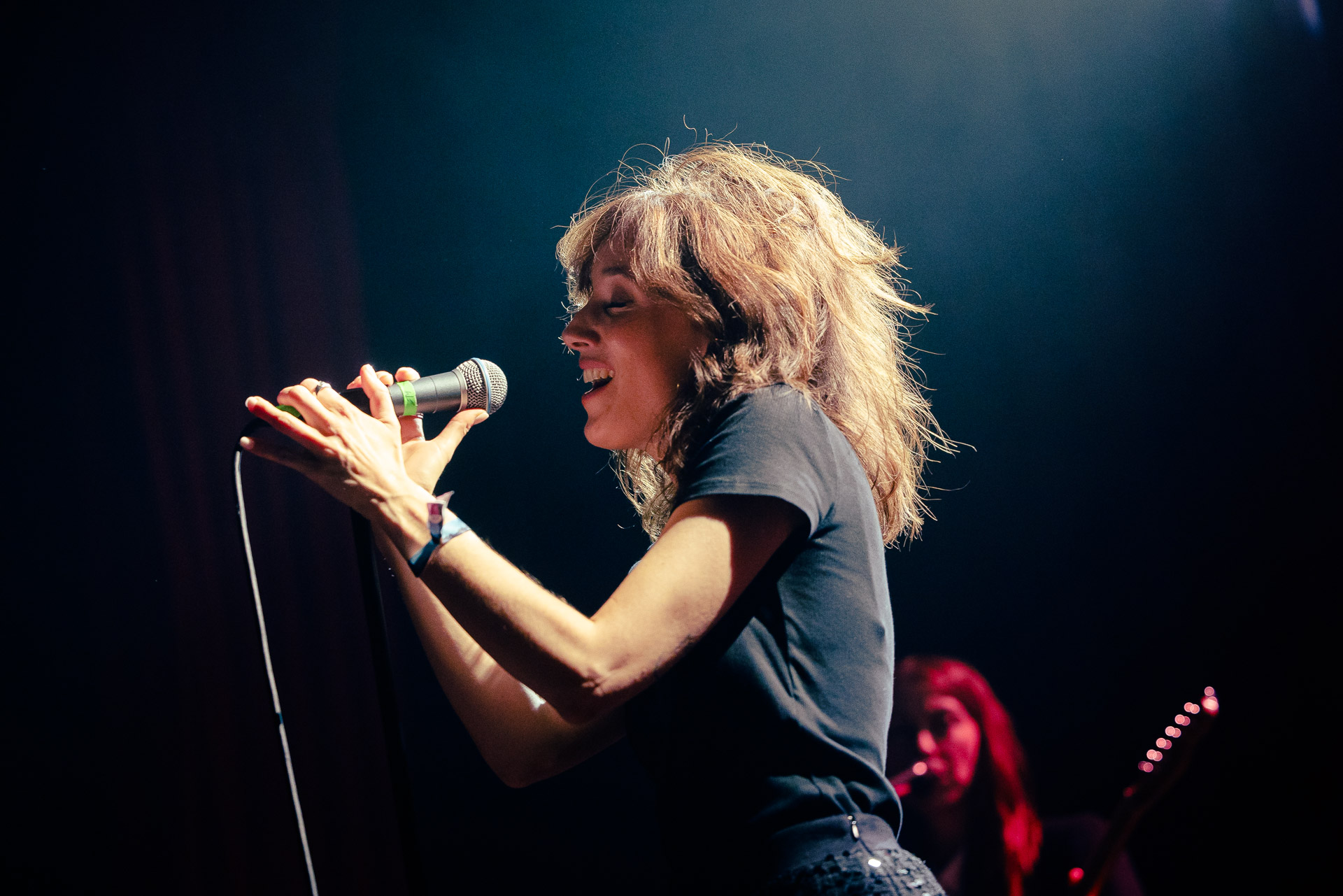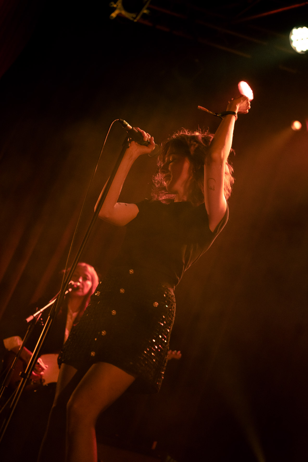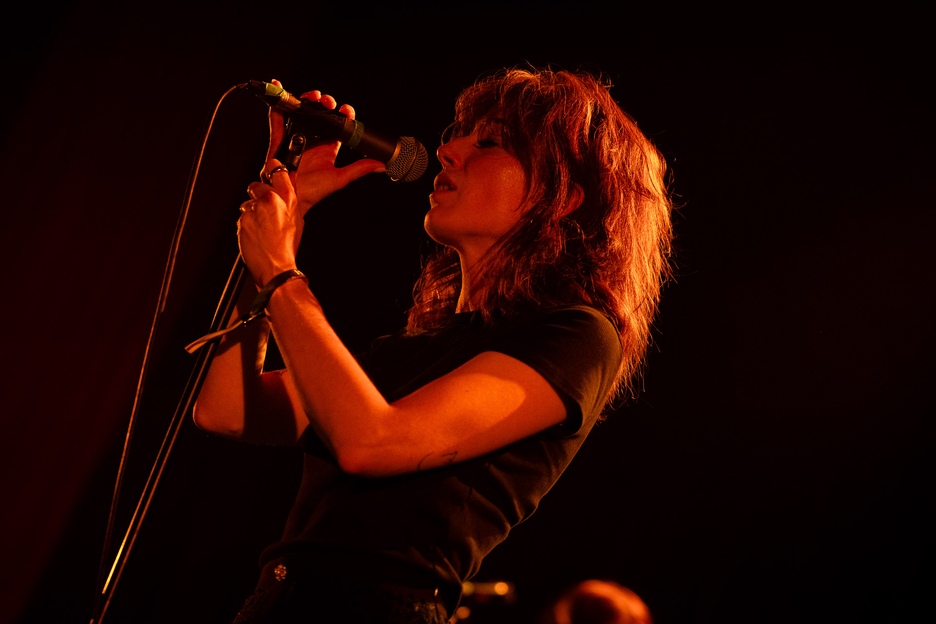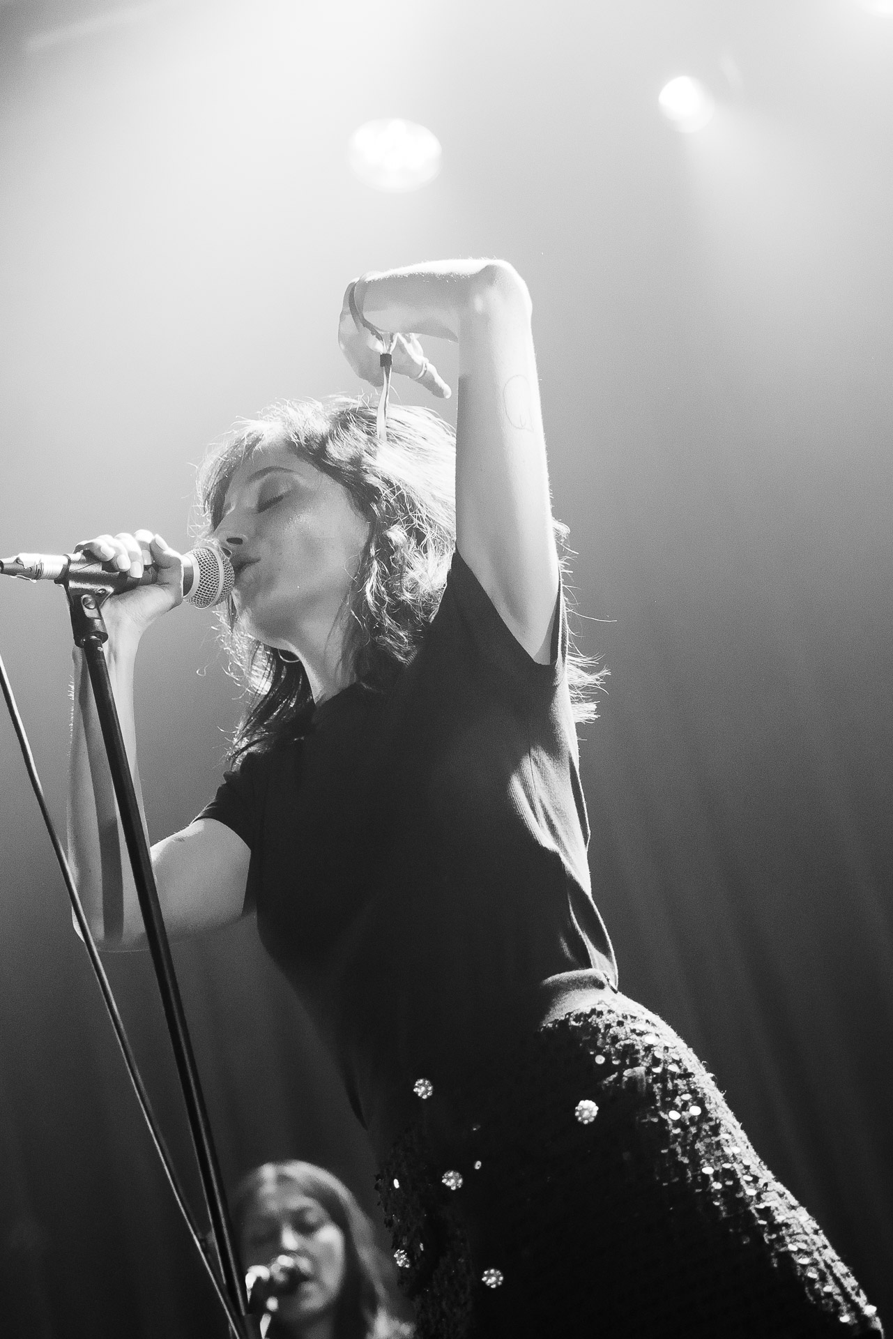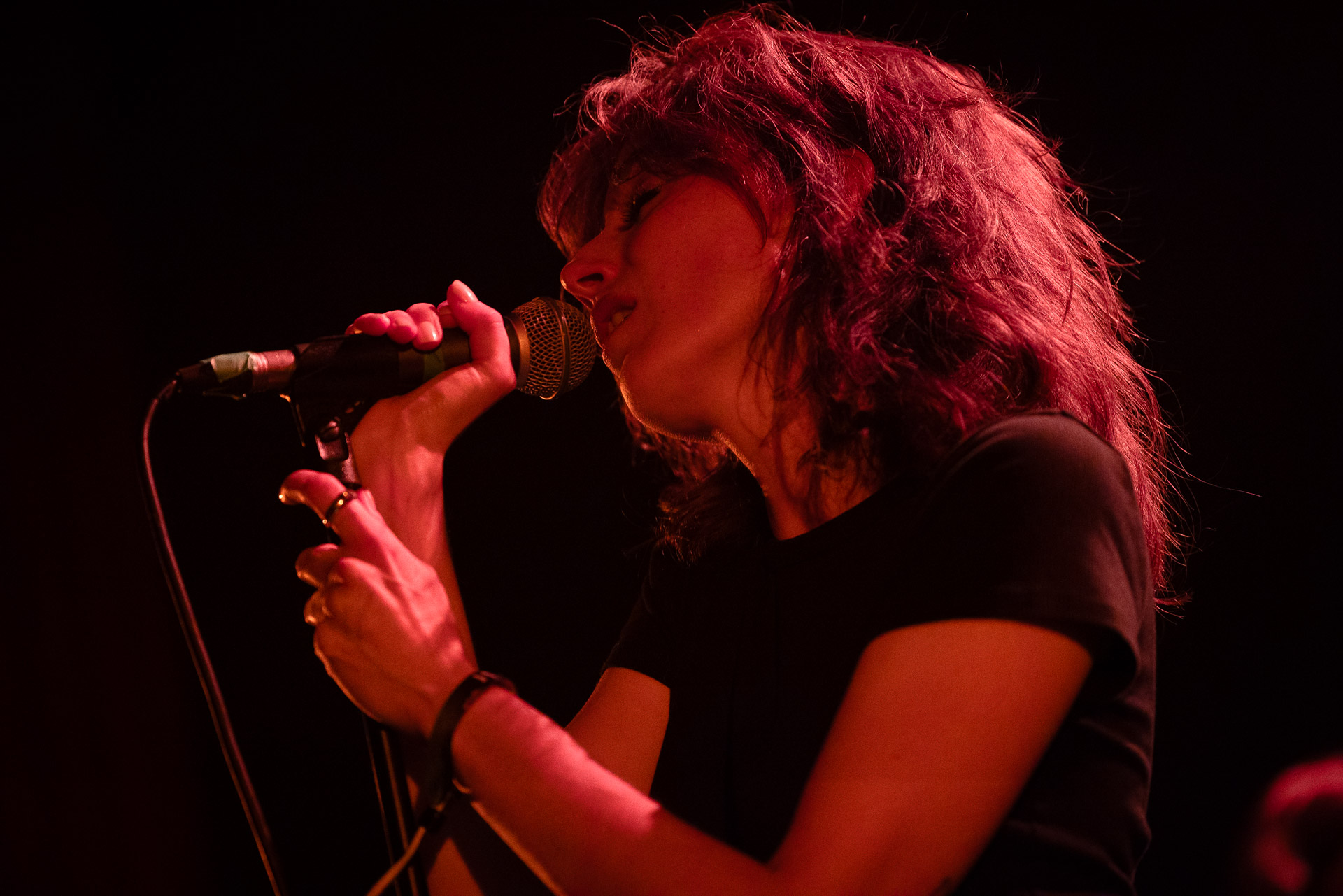 Tout comme Benni programmée juste avant, Savanah nous avait tapé dans l’œil avec un superbe EP, Céleste sorti cette année et on attendait donc avec impatience de confirmer tout le bien qu’on en pense en concert. Pour cette date au Mama, dans le cadre douillet des Trois Baudets, la chanteuse est accompagnée de deux musiciennes, Adeline Jasso à la guitariste et Camille aka Roma Luca à la basse tandis que la rythmique et les claviers sont des backing tracks, ce qui ne se remarque vraiment pas dans cette formule hybride surtout avec la présence scénique d’une Savanah sans contexte sur le devant de la scène, qui danse, sourit mais sait aussi garder ce côté langoureux, mystérieux voir "Lynchien" qu’on ressentait sur disque, les yeux souvent mi-clos, le visage encadré d’un casque de cheveux qui reflètent les éclairages focalisés sur elle. La prestation des trois musiciennes tout comme le son des trois baudets est impeccable, on retrouve sur scène les atmosphères vaporeuses, langoureuses de l’EP, à travers bien sûr la très jolie voix de Savannah qui a a vraiment quelque chose dans sa douceur, ses intonations qui la rendent irrésistibles mais aussi des arrangements guitare/basse qui se marient bien aux textures électro-pop de titres très atmosphériques comme "Villes Noires" ou "Fantôme" avec son superbe refrain qu’on pourrait écouter des dizaines de fois.