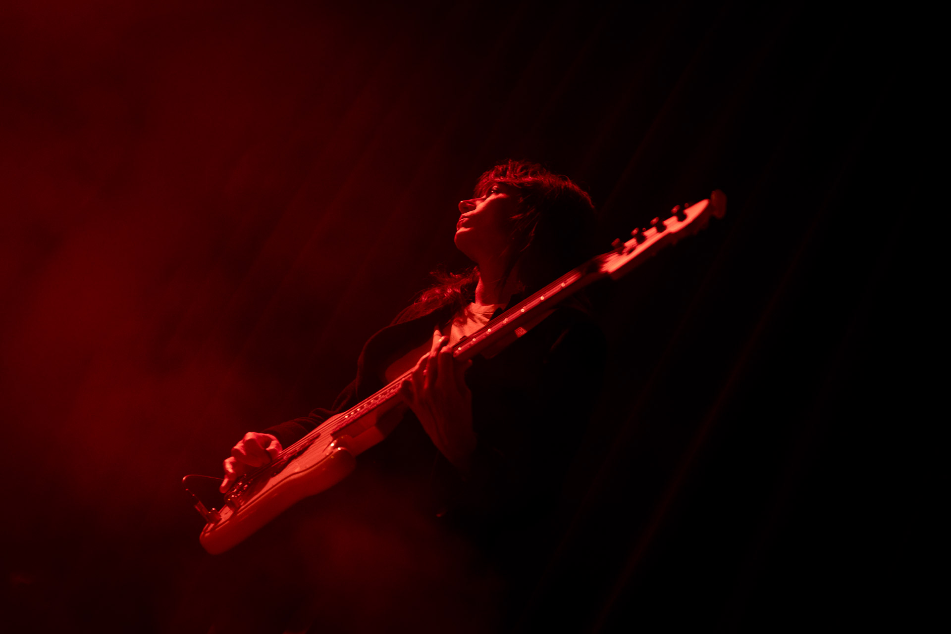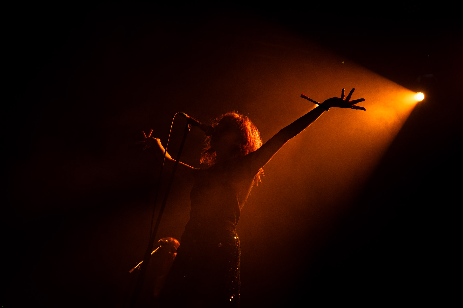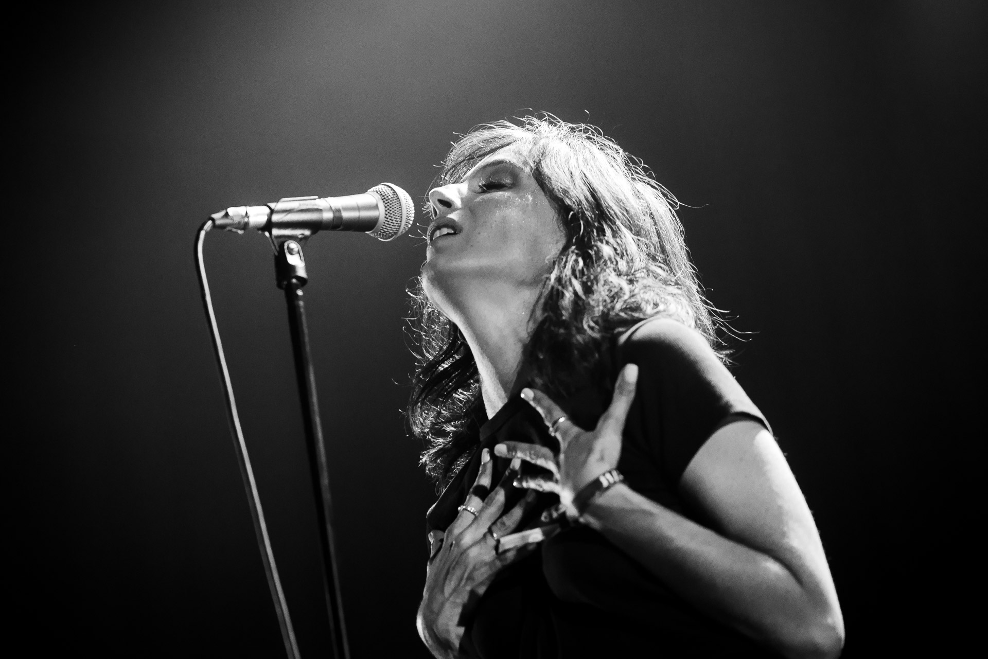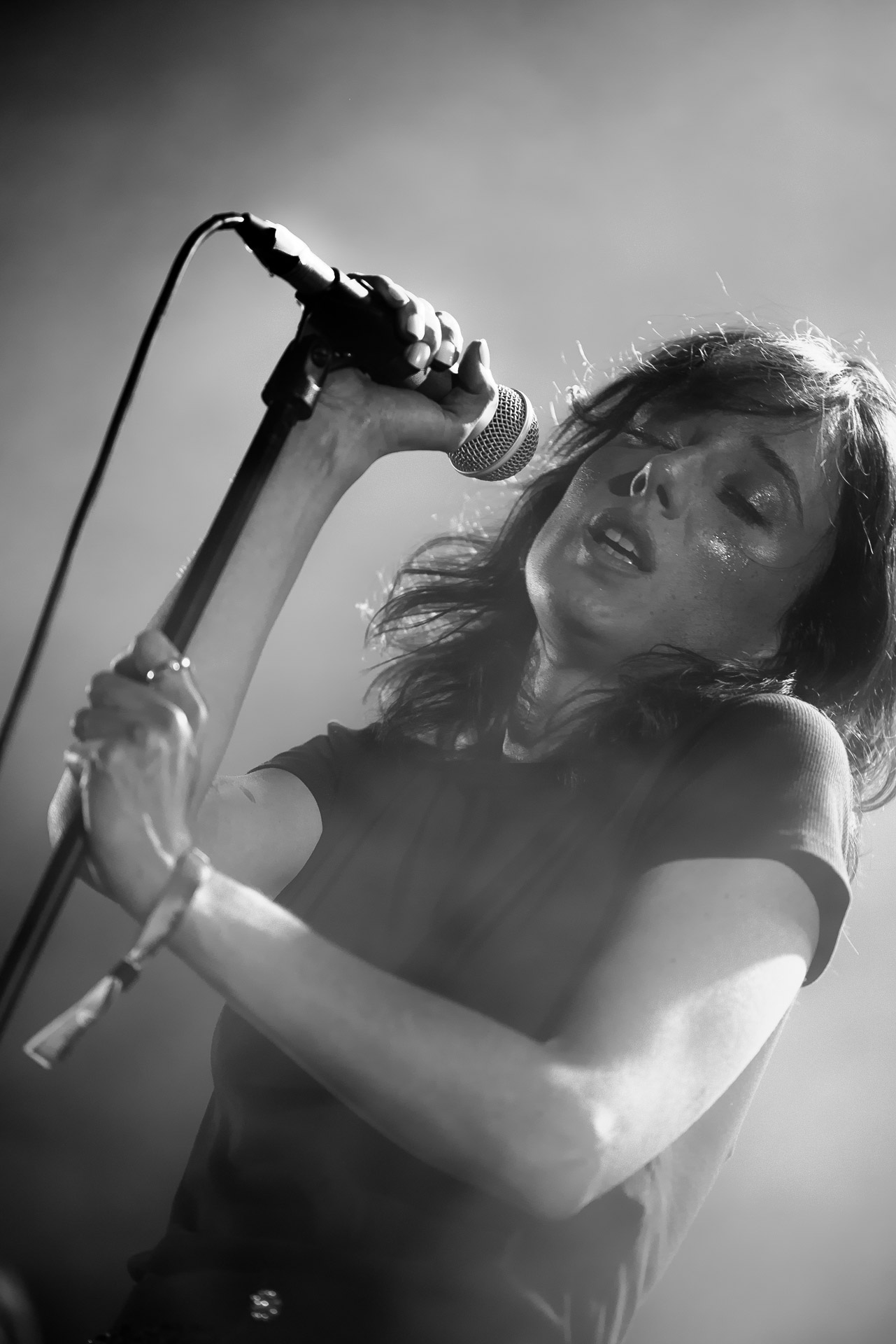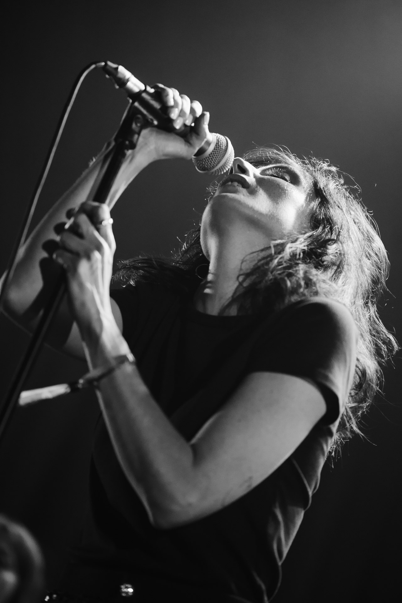 Tout comme Benni programmée juste avant, Savanah nous avait tapé dans l’œil avec un superbe EP, Céleste sorti cette année et on attendait donc avec impatience de confirmer tout le bien qu’on en pense en concert. Pour cette date au Mama, dans le cadre douillet des Trois Baudets, la chanteuse est accompagnée de deux musiciennes, Adeline Jasso à la guitariste et Camille aka Roma Luca à la basse tandis que la rythmique et les claviers sont des backing tracks, ce qui ne se remarque vraiment pas dans cette formule hybride surtout avec la présence scénique d’une Savanah sans contexte sur le devant de la scène, qui danse, sourit mais sait aussi garder ce côté langoureux, mystérieux voir "Lynchien" qu’on ressentait sur disque, les yeux souvent mi-clos, le visage encadré d’un casque de cheveux qui reflètent les éclairages focalisés sur elle. La prestation des trois musiciennes tout comme le son des trois baudets est impeccable, on retrouve sur scène les atmosphères vaporeuses, langoureuses de l’EP, à travers bien sûr la très jolie voix de Savannah qui a a vraiment quelque chose dans sa douceur, ses intonations qui la rendent irrésistibles mais aussi des arrangements guitare/basse qui se marient bien aux textures électro-pop de titres très atmosphériques comme "Villes Noires" ou "Fantôme" avec son superbe refrain qu’on pourrait écouter des dizaines de fois.