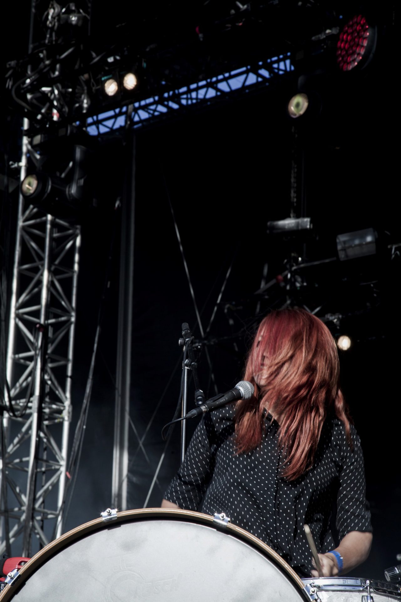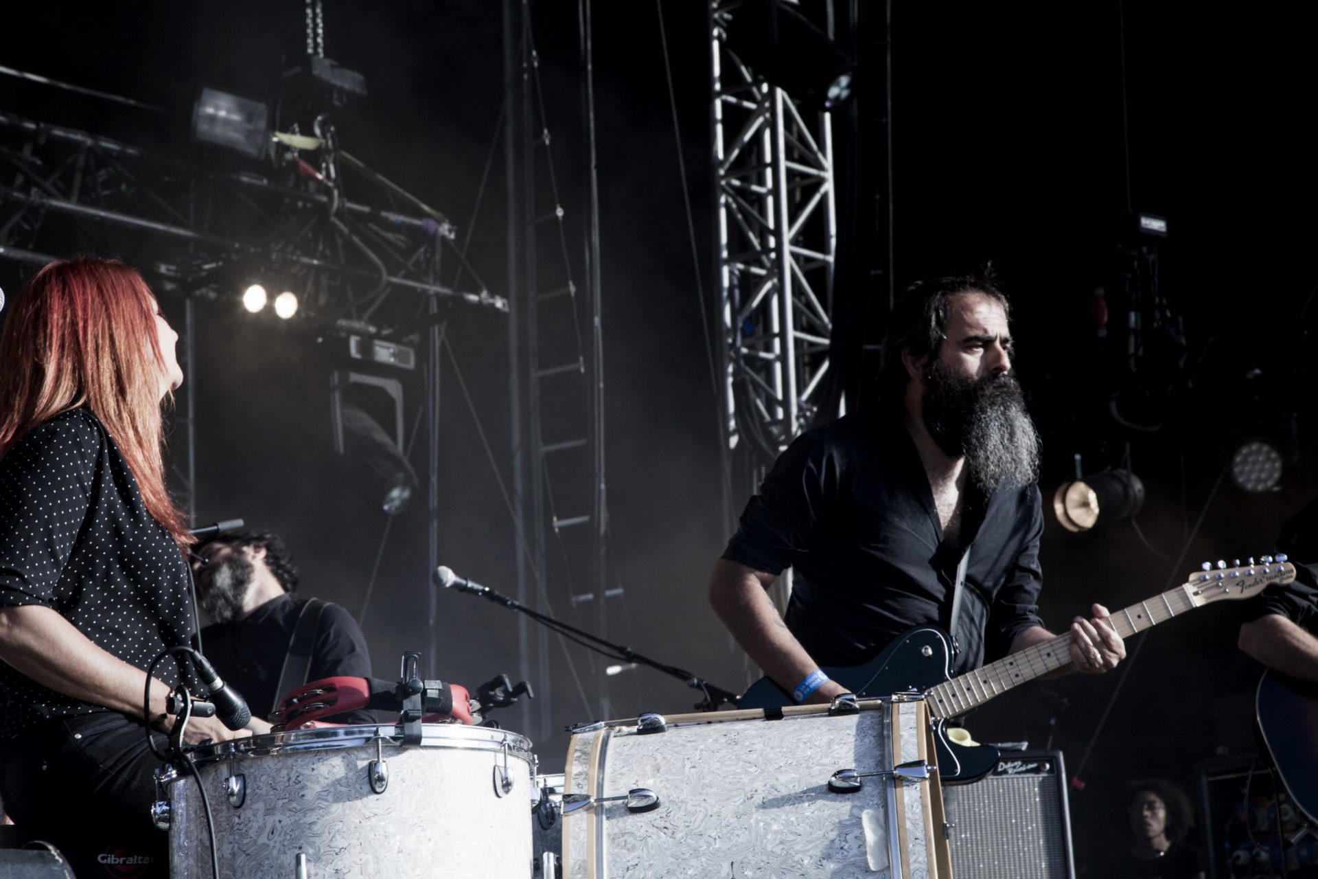 Après une Maroquinerie et surtout un énorme concert à la Cigale, cela fait bien plaisir de voir The Limiñanas sur la scène du Fort de St Père ! Ils sont sept à prendre possession du Fort, le soleil brille et le concert peut commencer sur les chapeaux de roue. On pu lire ou entendre ici et là des grincheux sur la musique ultra référencée de Lionel et Marie, rien n’y fait on adore The Limiñanas, leur énergie, l’efficacité redoutable de chaque morceau, leur univers et la complicité presque palpable entre Lionel et Marie. Un pur moment de bonheur, parfait pour commencer notre 17e Route du Rock !!