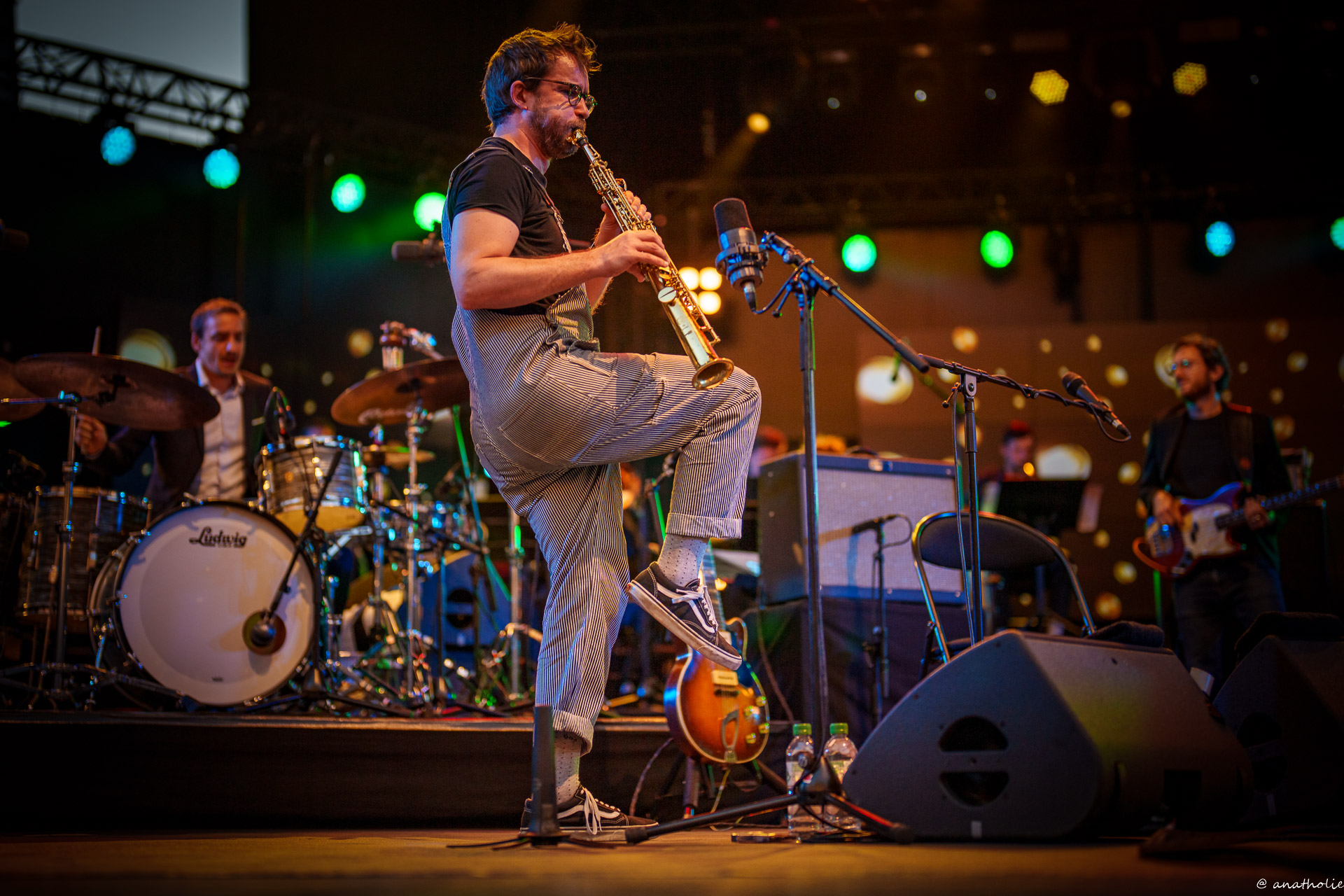 Sous le soleil couchant de Vienne, Vincent Peirani et son quintet Living Being, composé d’Emile Parisien, son fidèle acolyte au saxophone, Julien Herné à la basse, Tony Paeleman au Rhodes et Yoann Serra à la batterie, s’emparent de la scène.