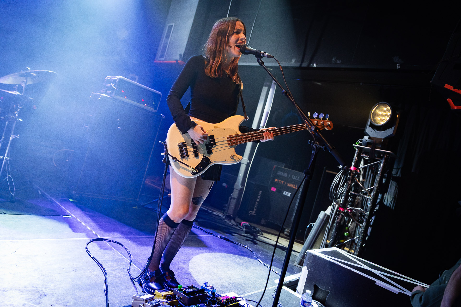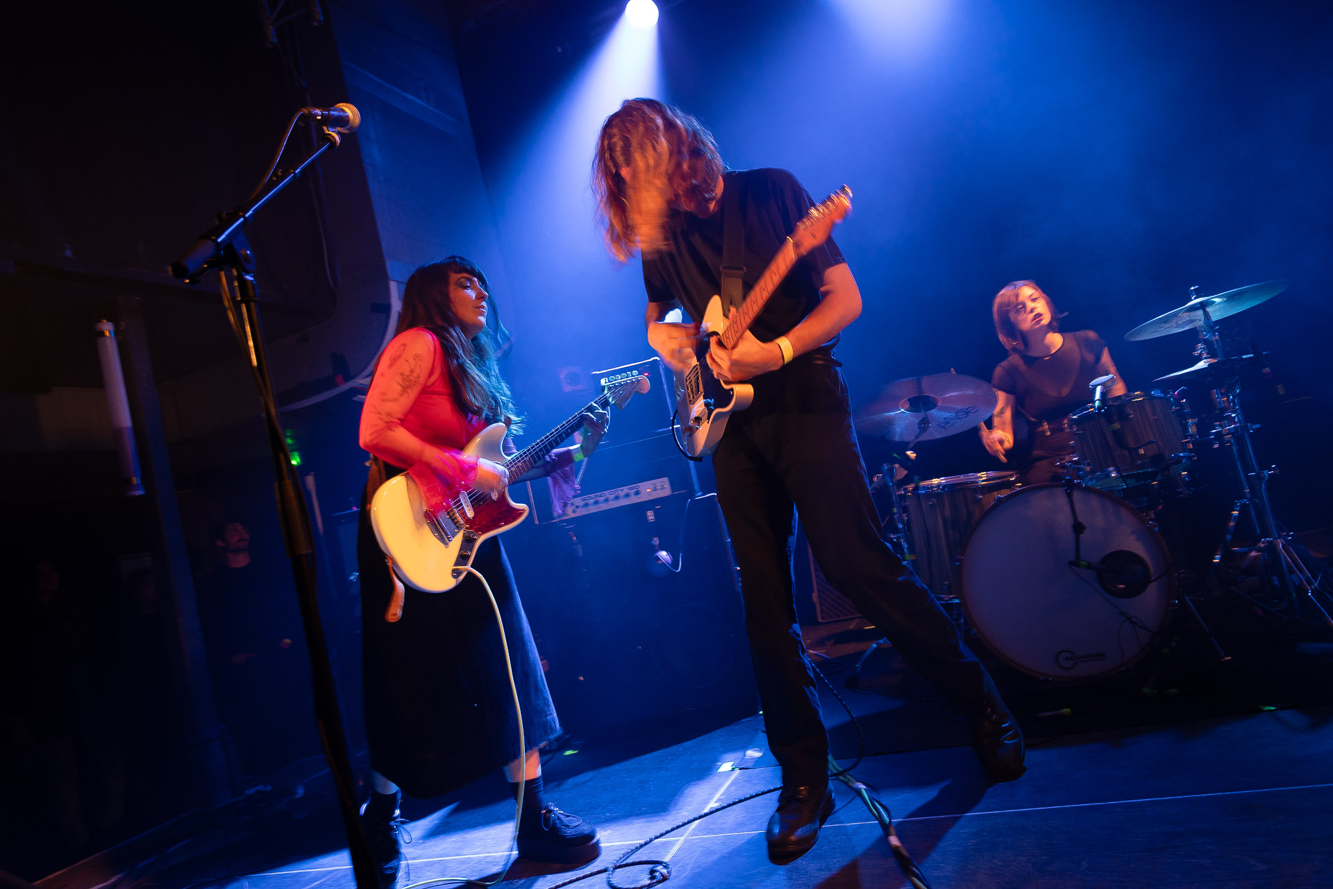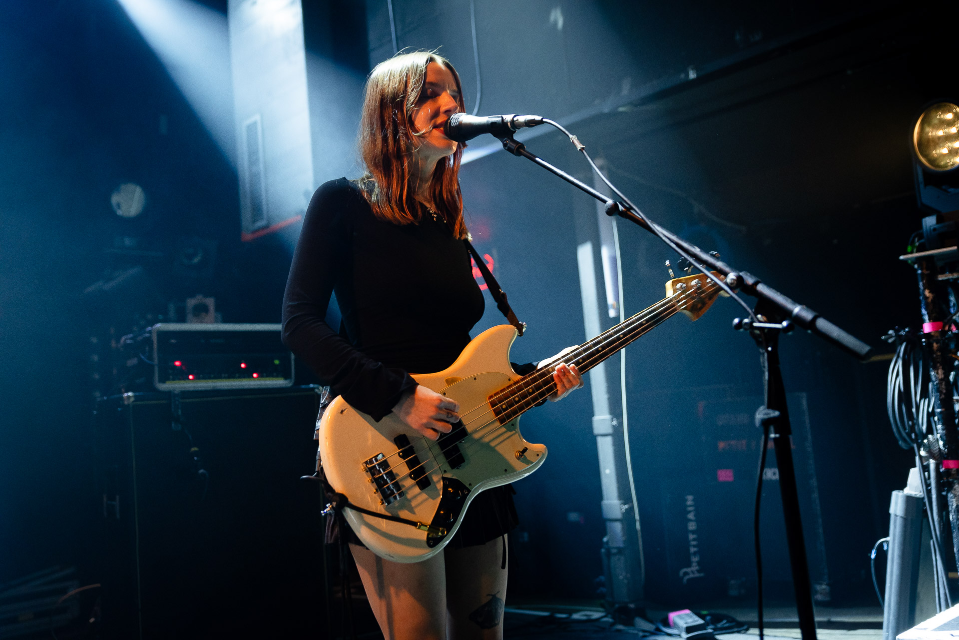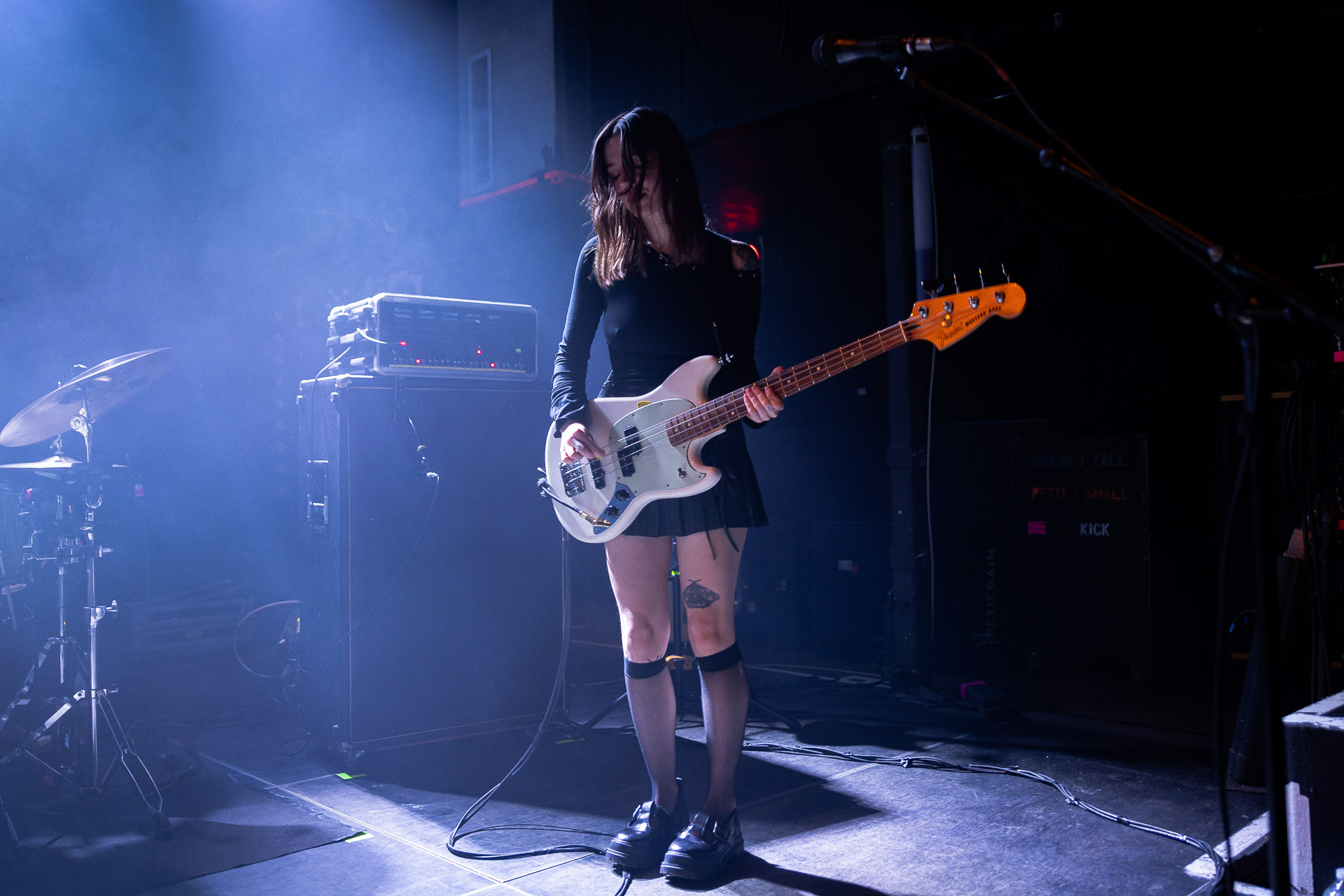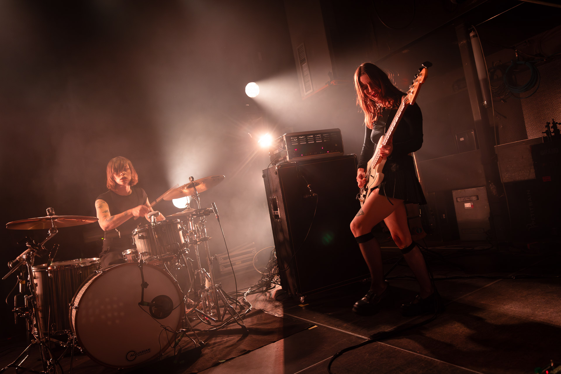 Quasiment un an jour pour jour après La Maroquinerie, on retrouve We Hate You Please Die sur la scène de Petit Bain pour la fin d’une tournée bien remplie autour de leur album Chamber Songs . Pas de suspens, dès le premier morceau, le groupe déploie toute l’énergie qu’on lui connait et le pogo s’enclenche très vite dans la fosse. Dans les tous premiers rangs, c’est une expérience chaotique et jubilatoire, furieuse mais pleine de bonne humeur, on se régale de la guitare de Joseph, qui assure à la fois une rythmique solide et hargneuse et en même temps varie les plaisirs avec plein de petites trouvailles, des petits riffs inattendus, des interventions mélodiques. Chez Chloé, on sent que cette année à tourner a amené un rab de confiance et d’assurance dans son rôle frontal de chanteuse de WHYPD, le chant a progressé et ce soir il est aidé par un mix beaucoup plus réussi qu’à la Maro, on a donc les conditions réunies pour conclure en beauté la tournée par une superbe soirée, au cours de laquelle Chloé se livrera même à un bain de "fosse" pendant le titre où un quatrième larron la remplace à la basse. Une configuration à quatre où elle n’est qu’au micro dont on se dit qu’elle pourrait durer un peu plus qu’un morceau. Pas de rappel mais fatigué qu’on ait après tout un concert dans une fosse bien agité, on ne leur en voudra pas, après tout c’est un peu comme s’ils repartaient d’un premier album et surtout ce soir tout était là : l’énergie, la présence scénique, servis par un son où on entend tout les instruments et la voix correctement, sans pour autant faire de concession sur la puissance, le côté rageur de la musique