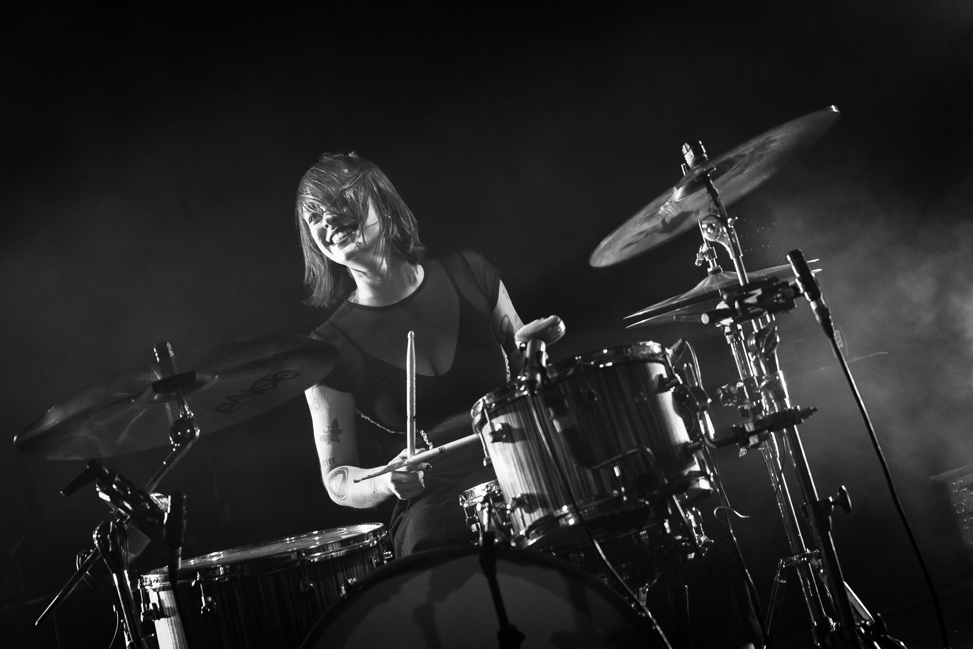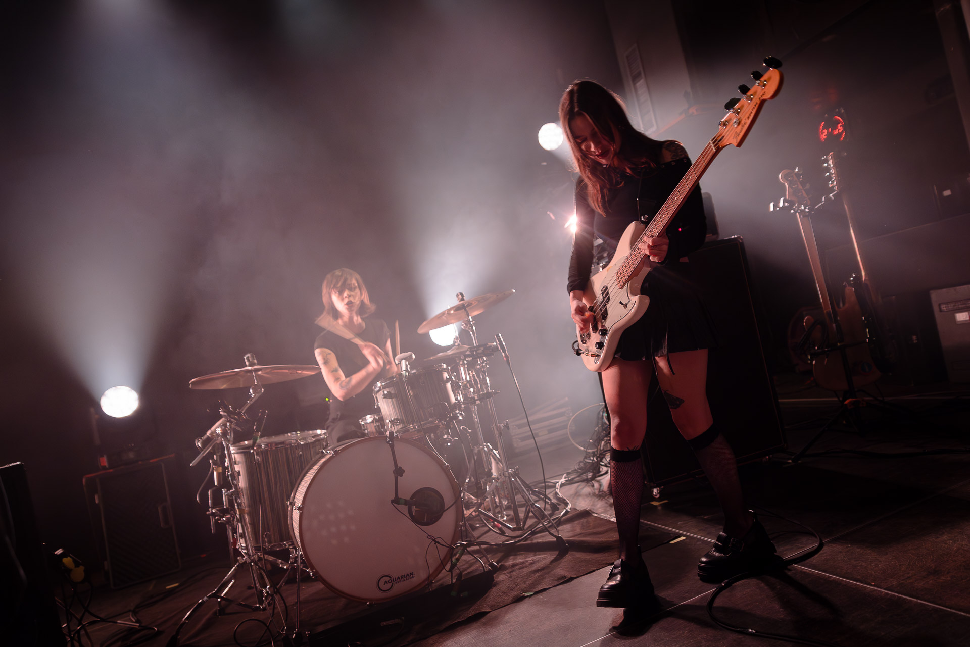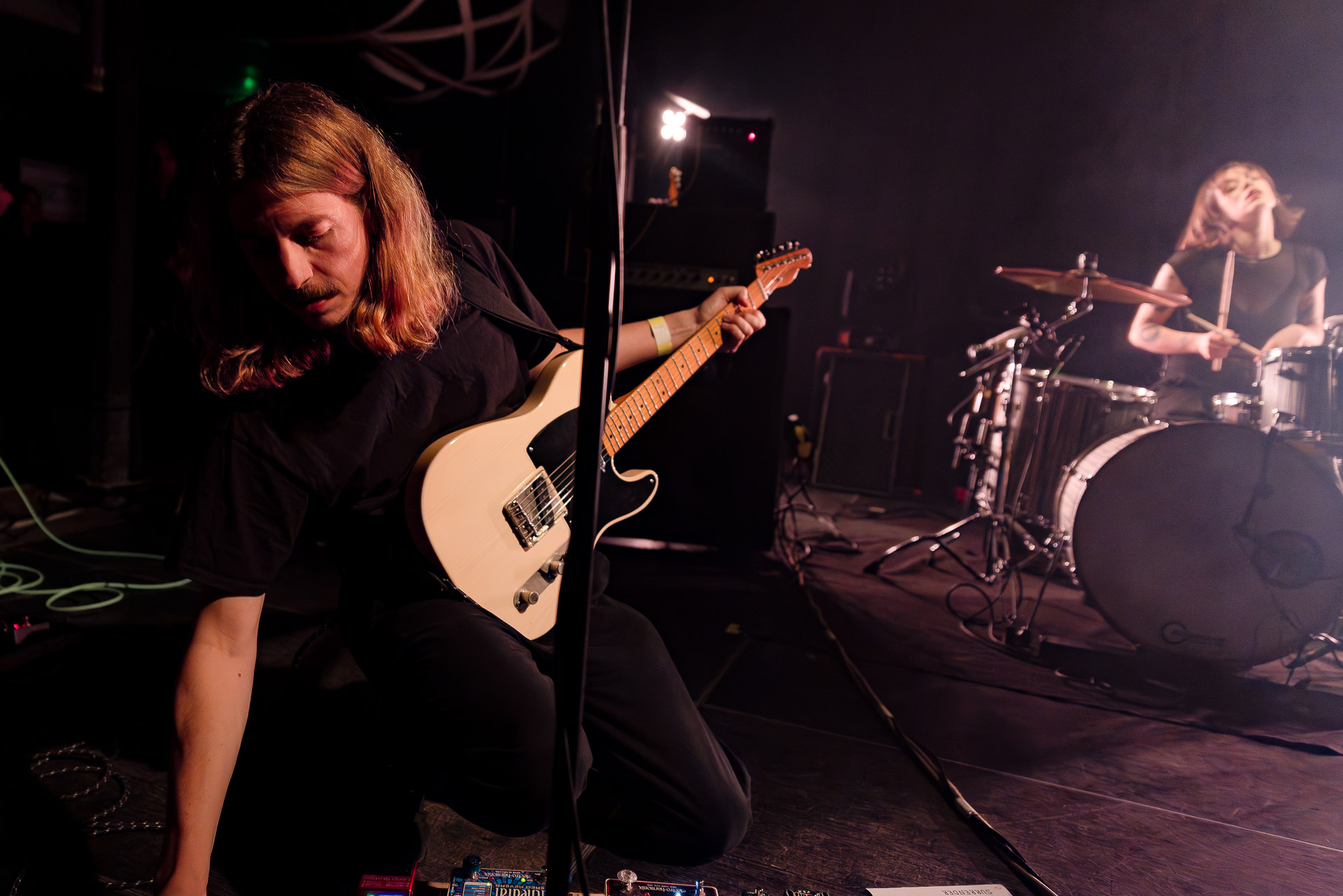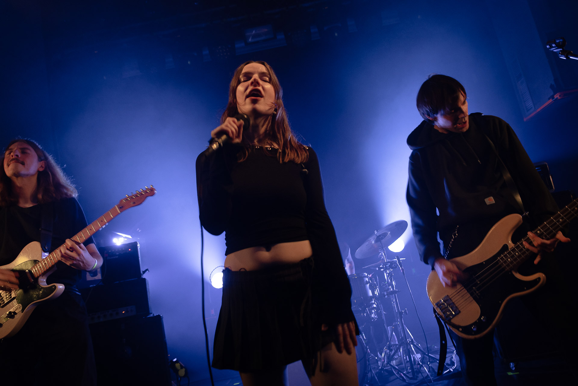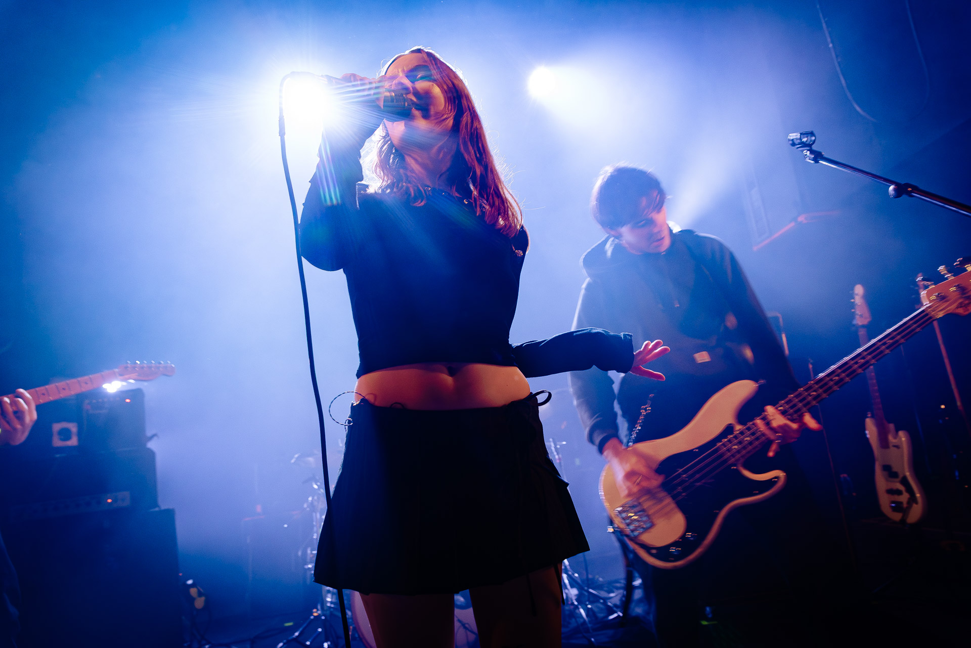 Quasiment un an jour pour jour après La Maroquinerie, on retrouve We Hate You Please Die sur la scène de Petit Bain pour la fin d’une tournée bien remplie autour de leur album Chamber Songs . Pas de suspens, dès le premier morceau, le groupe déploie toute l’énergie qu’on lui connait et le pogo s’enclenche très vite dans la fosse. Dans les tous premiers rangs, c’est une expérience chaotique et jubilatoire, furieuse mais pleine de bonne humeur, on se régale de la guitare de Joseph, qui assure à la fois une rythmique solide et hargneuse et en même temps varie les plaisirs avec plein de petites trouvailles, des petits riffs inattendus, des interventions mélodiques. Chez Chloé, on sent que cette année à tourner a amené un rab de confiance et d’assurance dans son rôle frontal de chanteuse de WHYPD, le chant a progressé et ce soir il est aidé par un mix beaucoup plus réussi qu’à la Maro, on a donc les conditions réunies pour conclure en beauté la tournée par une superbe soirée, au cours de laquelle Chloé se livrera même à un bain de "fosse" pendant le titre où un quatrième larron la remplace à la basse. Une configuration à quatre où elle n’est qu’au micro dont on se dit qu’elle pourrait durer un peu plus qu’un morceau. Pas de rappel mais fatigué qu’on ait après tout un concert dans une fosse bien agité, on ne leur en voudra pas, après tout c’est un peu comme s’ils repartaient d’un premier album et surtout ce soir tout était là : l’énergie, la présence scénique, servis par un son où on entend tout les instruments et la voix correctement, sans pour autant faire de concession sur la puissance, le côté rageur de la musique