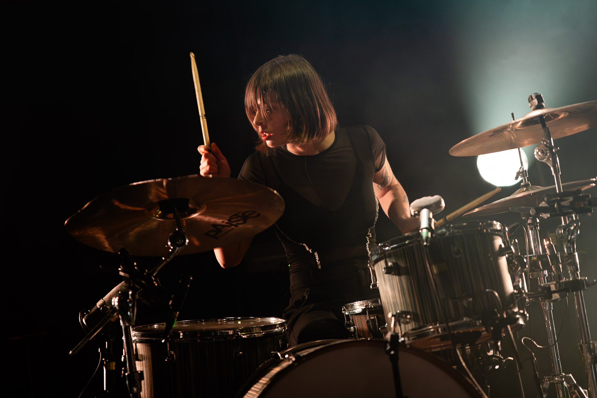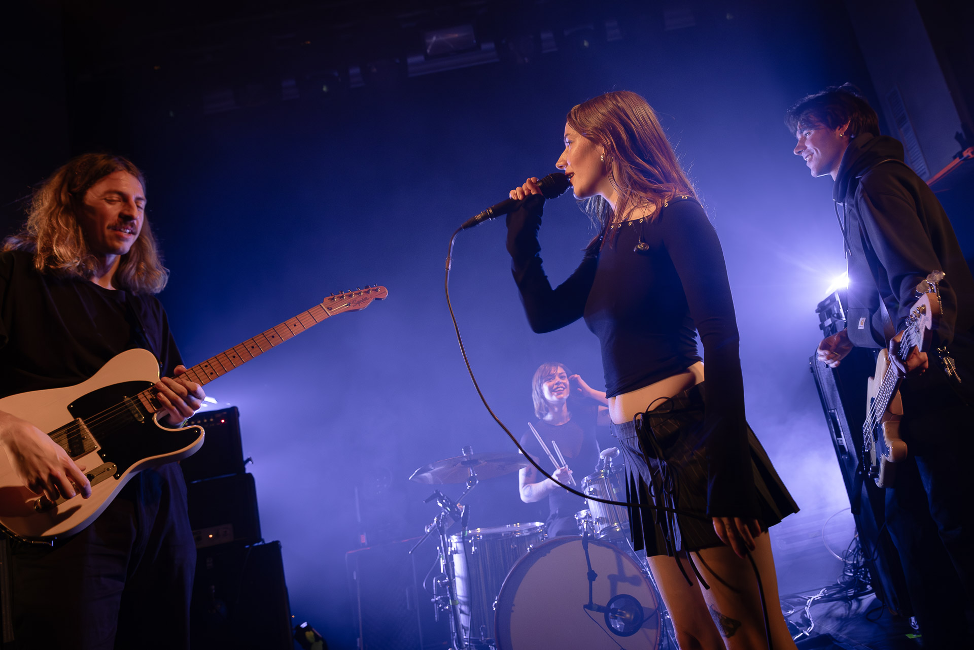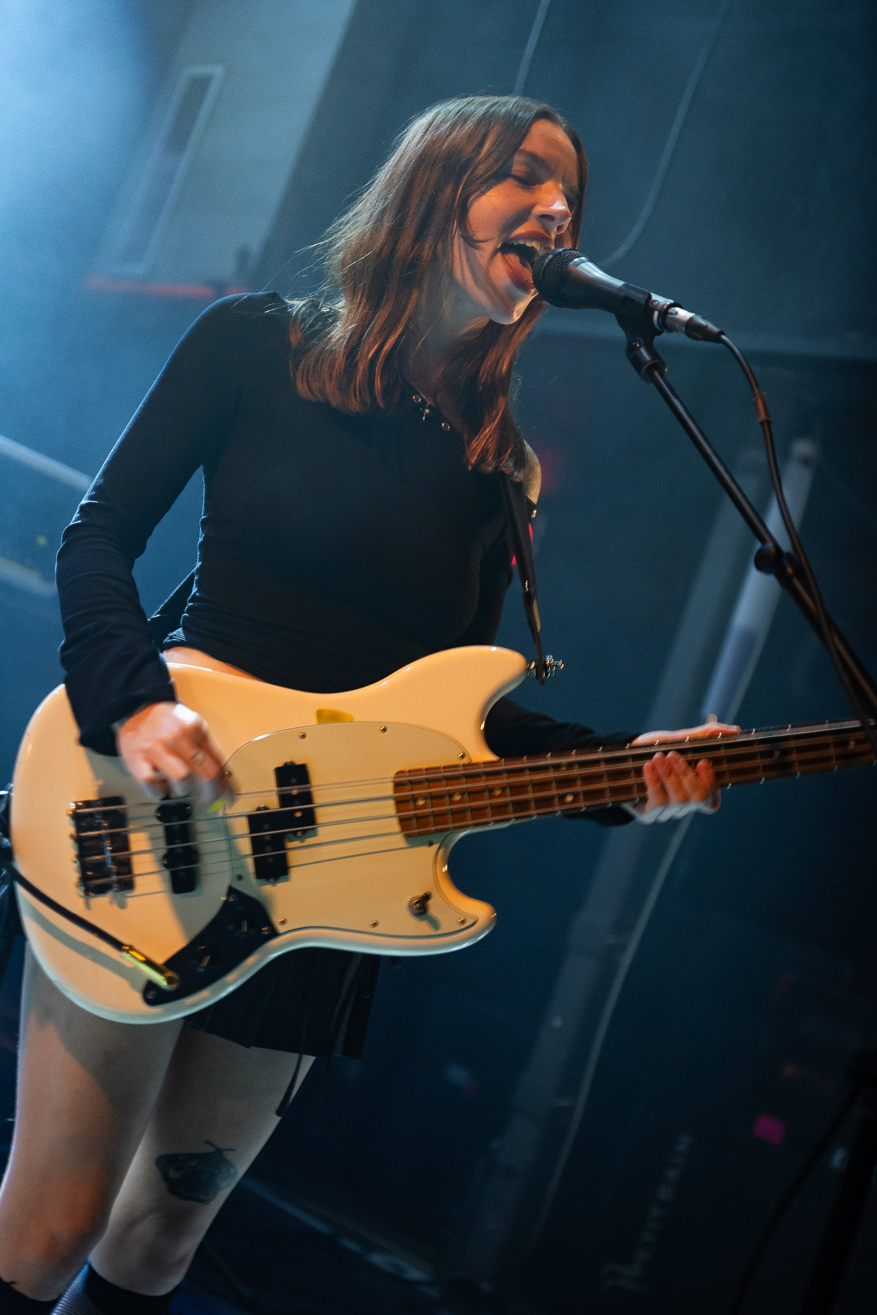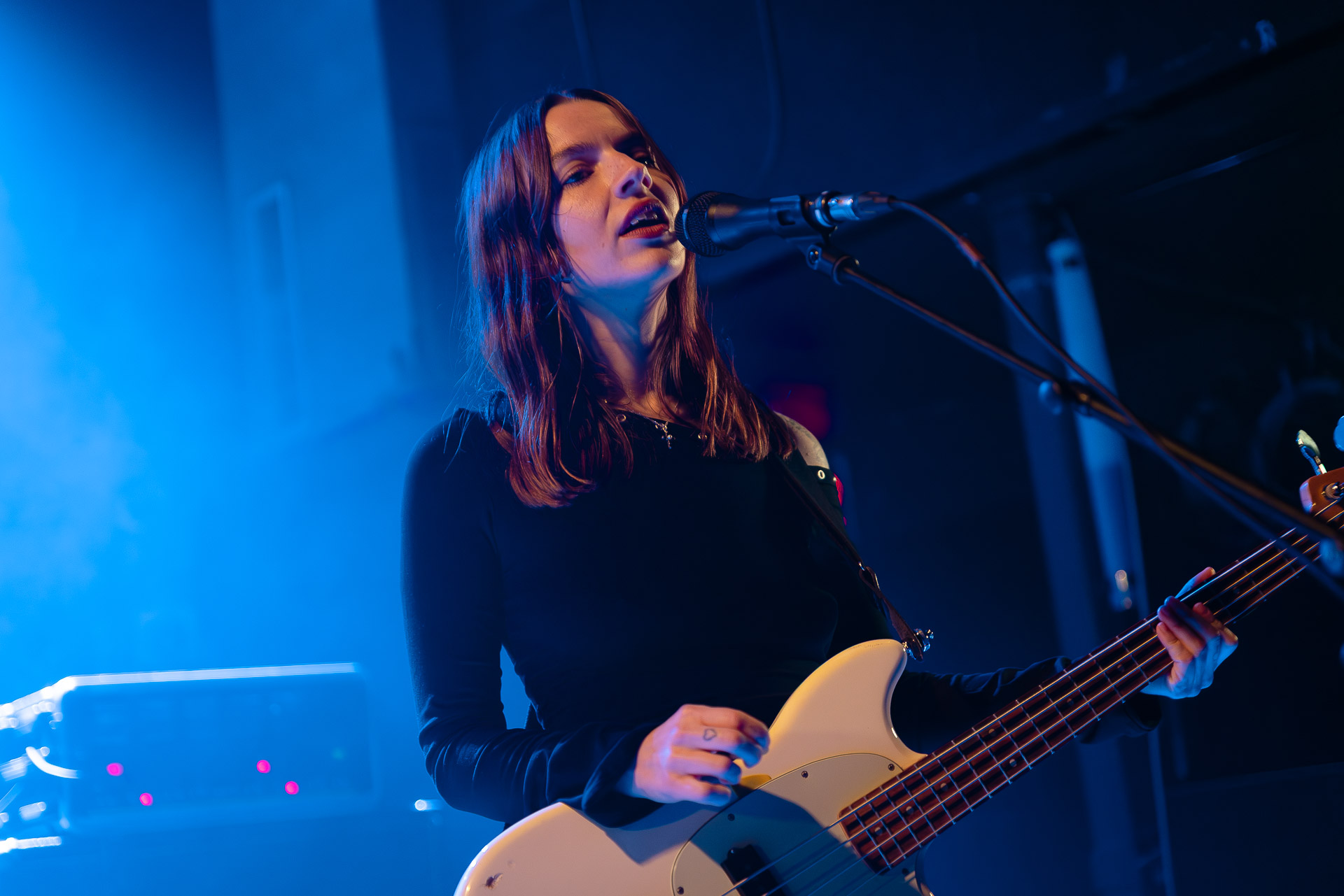 Quasiment un an jour pour jour après La Maroquinerie, on retrouve We Hate You Please Die sur la scène de Petit Bain pour la fin d’une tournée bien remplie autour de leur album Chamber Songs . Pas de suspens, dès le premier morceau, le groupe déploie toute l’énergie qu’on lui connait et le pogo s’enclenche très vite dans la fosse. Dans les tous premiers rangs, c’est une expérience chaotique et jubilatoire, furieuse mais pleine de bonne humeur, on se régale de la guitare de Joseph, qui assure à la fois une rythmique solide et hargneuse et en même temps varie les plaisirs avec plein de petites trouvailles, des petits riffs inattendus, des interventions mélodiques. Chez Chloé, on sent que cette année à tourner a amené un rab de confiance et d’assurance dans son rôle frontal de chanteuse de WHYPD, le chant a progressé et ce soir il est aidé par un mix beaucoup plus réussi qu’à la Maro, on a donc les conditions réunies pour conclure en beauté la tournée par une superbe soirée, au cours de laquelle Chloé se livrera même à un bain de "fosse" pendant le titre où un quatrième larron la remplace à la basse. Une configuration à quatre où elle n’est qu’au micro dont on se dit qu’elle pourrait durer un peu plus qu’un morceau. Pas de rappel mais fatigué qu’on ait après tout un concert dans une fosse bien agité, on ne leur en voudra pas, après tout c’est un peu comme s’ils repartaient d’un premier album et surtout ce soir tout était là : l’énergie, la présence scénique, servis par un son où on entend tout les instruments et la voix correctement, sans pour autant faire de concession sur la puissance, le côté rageur de la musique