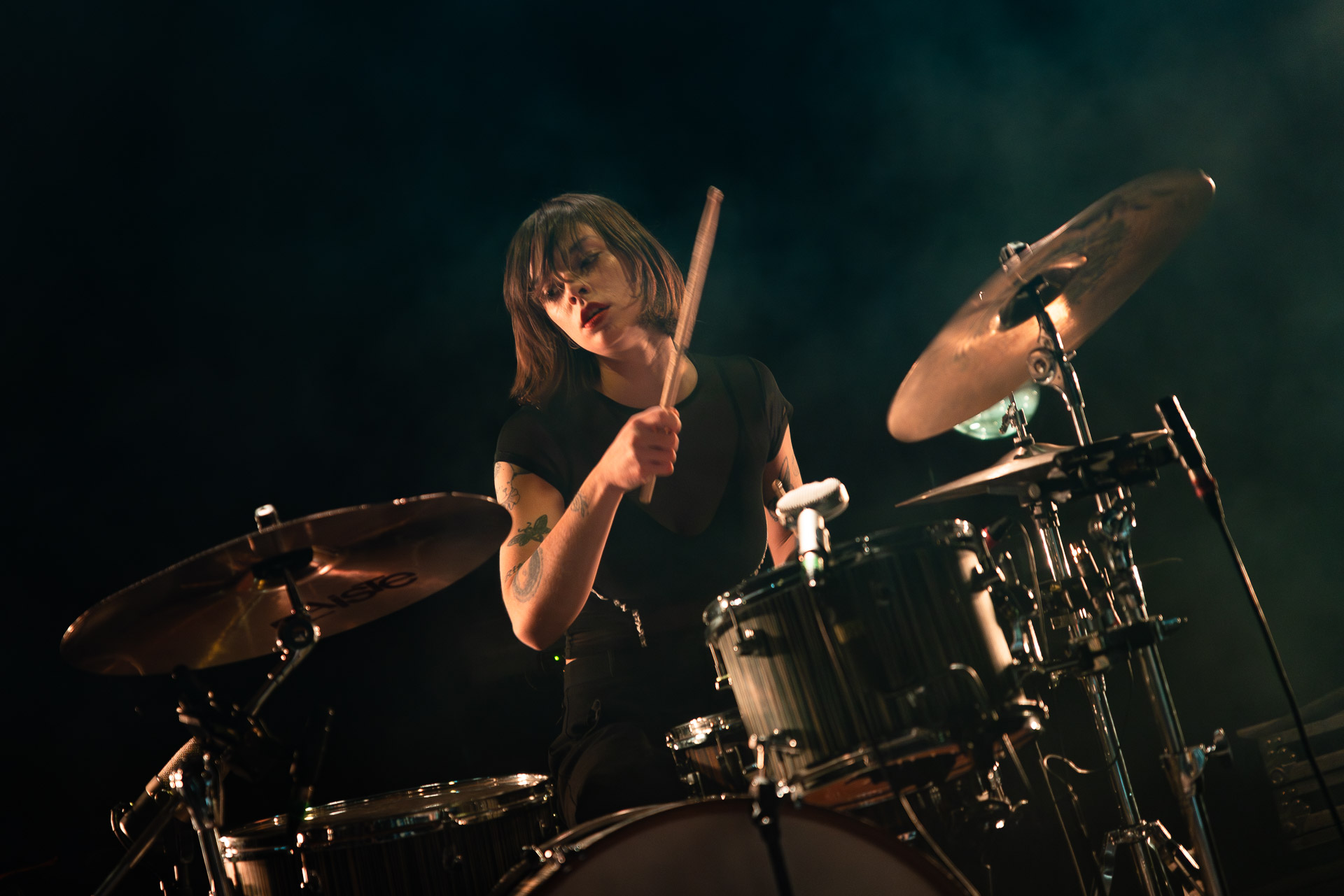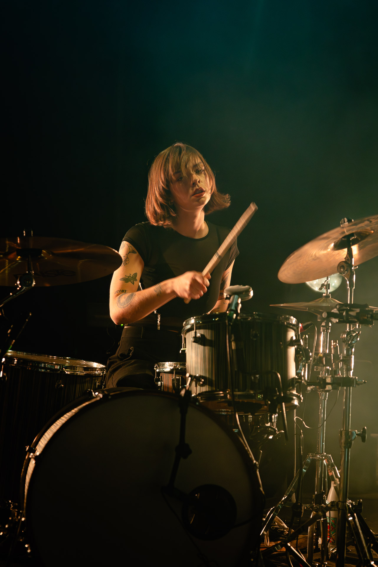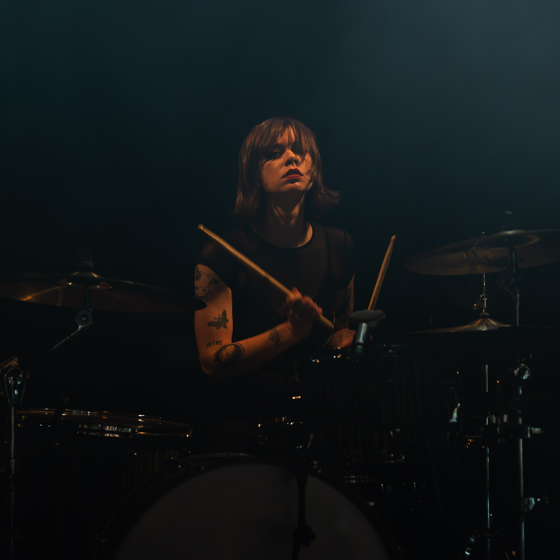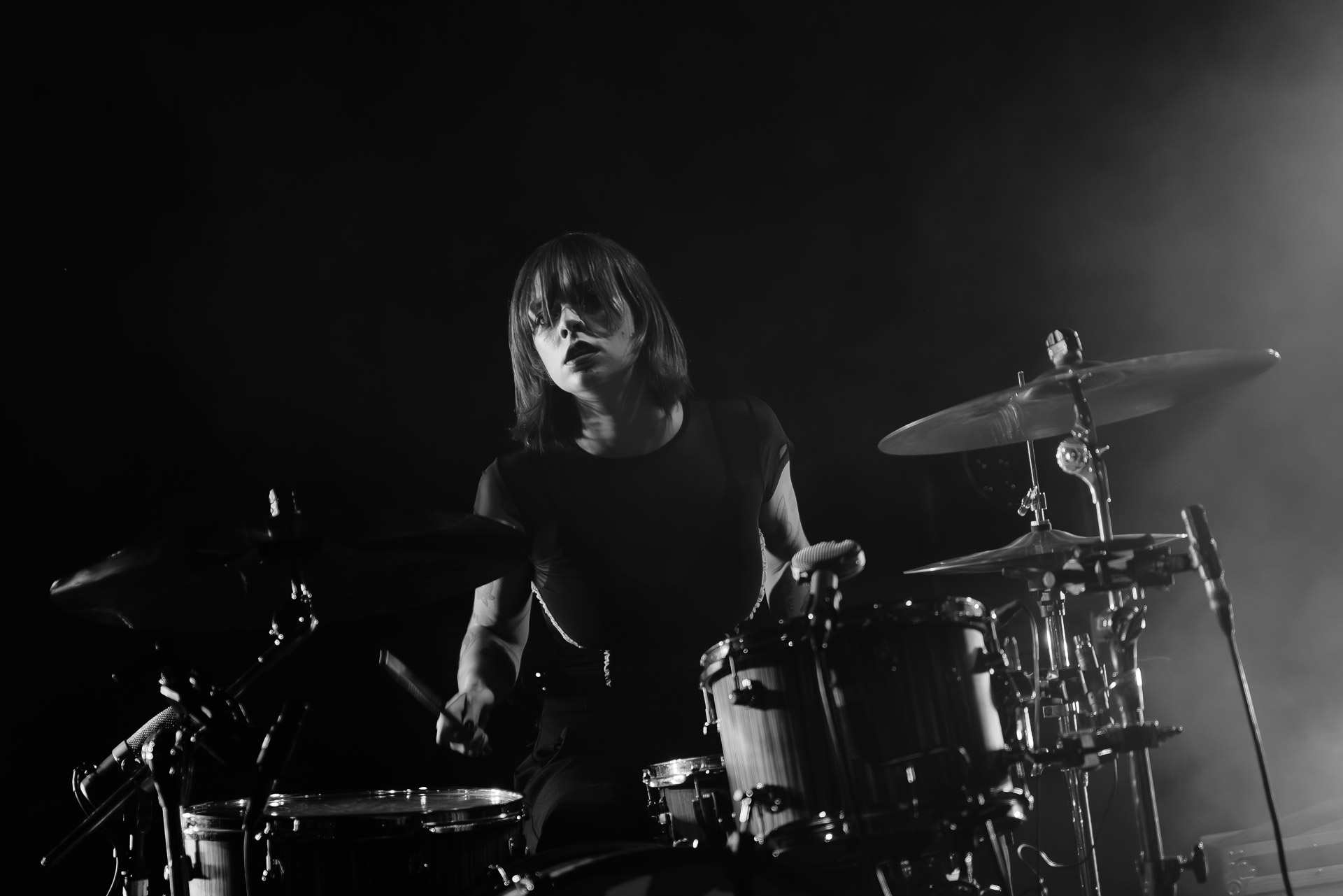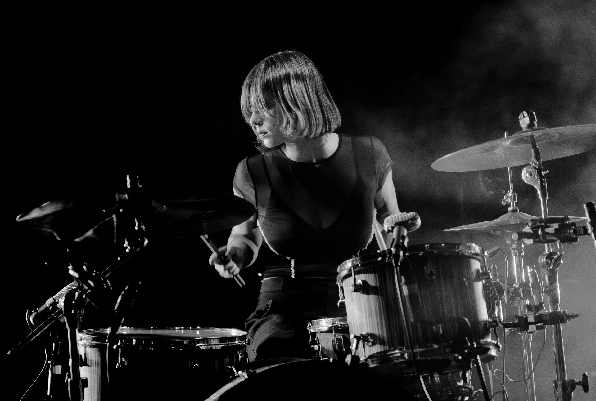 Quasiment un an jour pour jour après La Maroquinerie, on retrouve We Hate You Please Die sur la scène de Petit Bain pour la fin d’une tournée bien remplie autour de leur album Chamber Songs . Pas de suspens, dès le premier morceau, le groupe déploie toute l’énergie qu’on lui connait et le pogo s’enclenche très vite dans la fosse. Dans les tous premiers rangs, c’est une expérience chaotique et jubilatoire, furieuse mais pleine de bonne humeur, on se régale de la guitare de Joseph, qui assure à la fois une rythmique solide et hargneuse et en même temps varie les plaisirs avec plein de petites trouvailles, des petits riffs inattendus, des interventions mélodiques. Chez Chloé, on sent que cette année à tourner a amené un rab de confiance et d’assurance dans son rôle frontal de chanteuse de WHYPD, le chant a progressé et ce soir il est aidé par un mix beaucoup plus réussi qu’à la Maro, on a donc les conditions réunies pour conclure en beauté la tournée par une superbe soirée, au cours de laquelle Chloé se livrera même à un bain de "fosse" pendant le titre où un quatrième larron la remplace à la basse. Une configuration à quatre où elle n’est qu’au micro dont on se dit qu’elle pourrait durer un peu plus qu’un morceau. Pas de rappel mais fatigué qu’on ait après tout un concert dans une fosse bien agité, on ne leur en voudra pas, après tout c’est un peu comme s’ils repartaient d’un premier album et surtout ce soir tout était là : l’énergie, la présence scénique, servis par un son où on entend tout les instruments et la voix correctement, sans pour autant faire de concession sur la puissance, le côté rageur de la musique