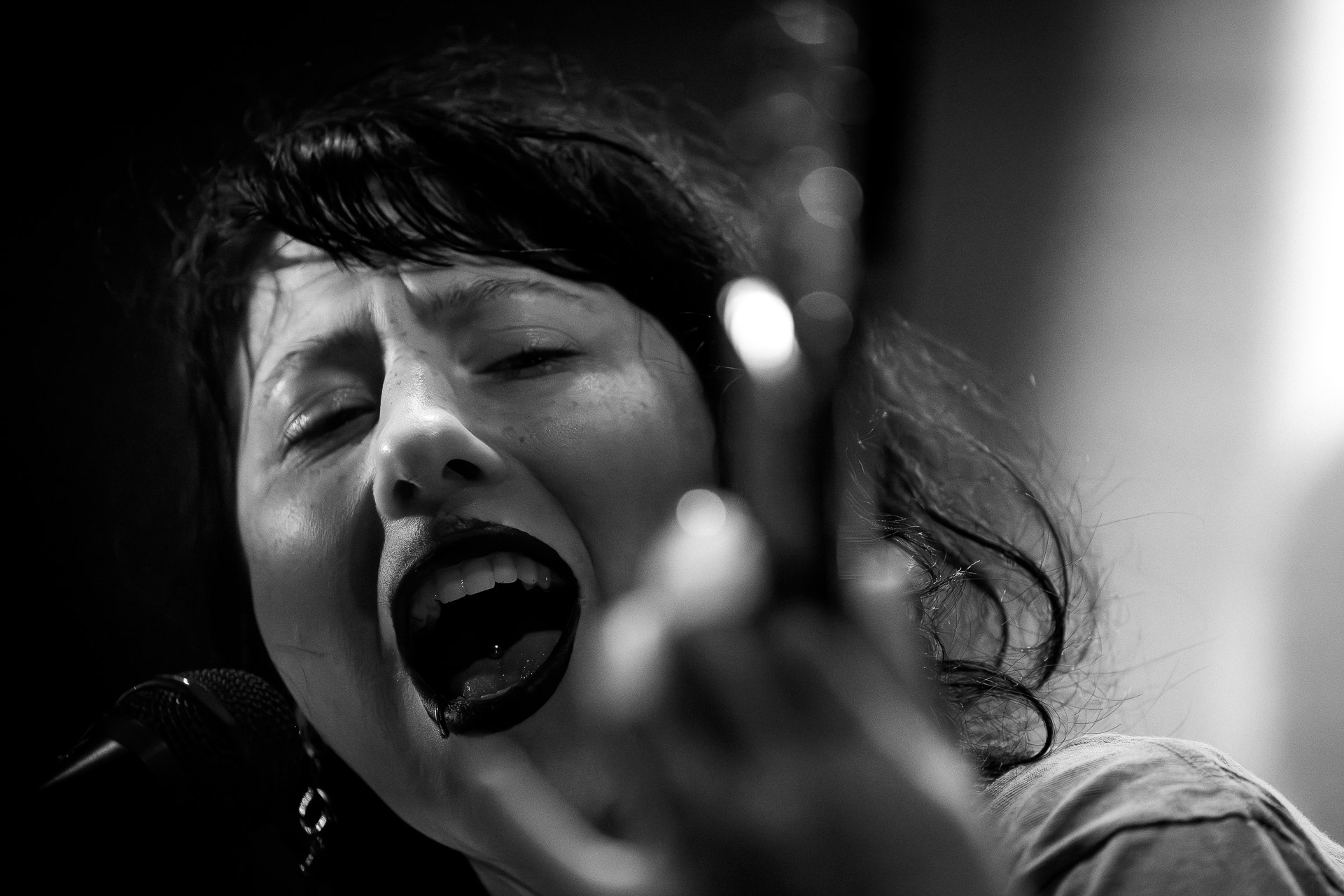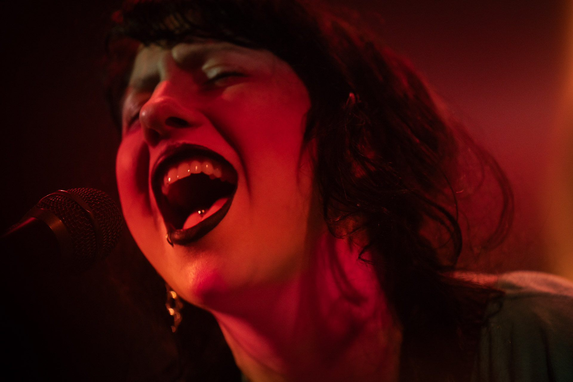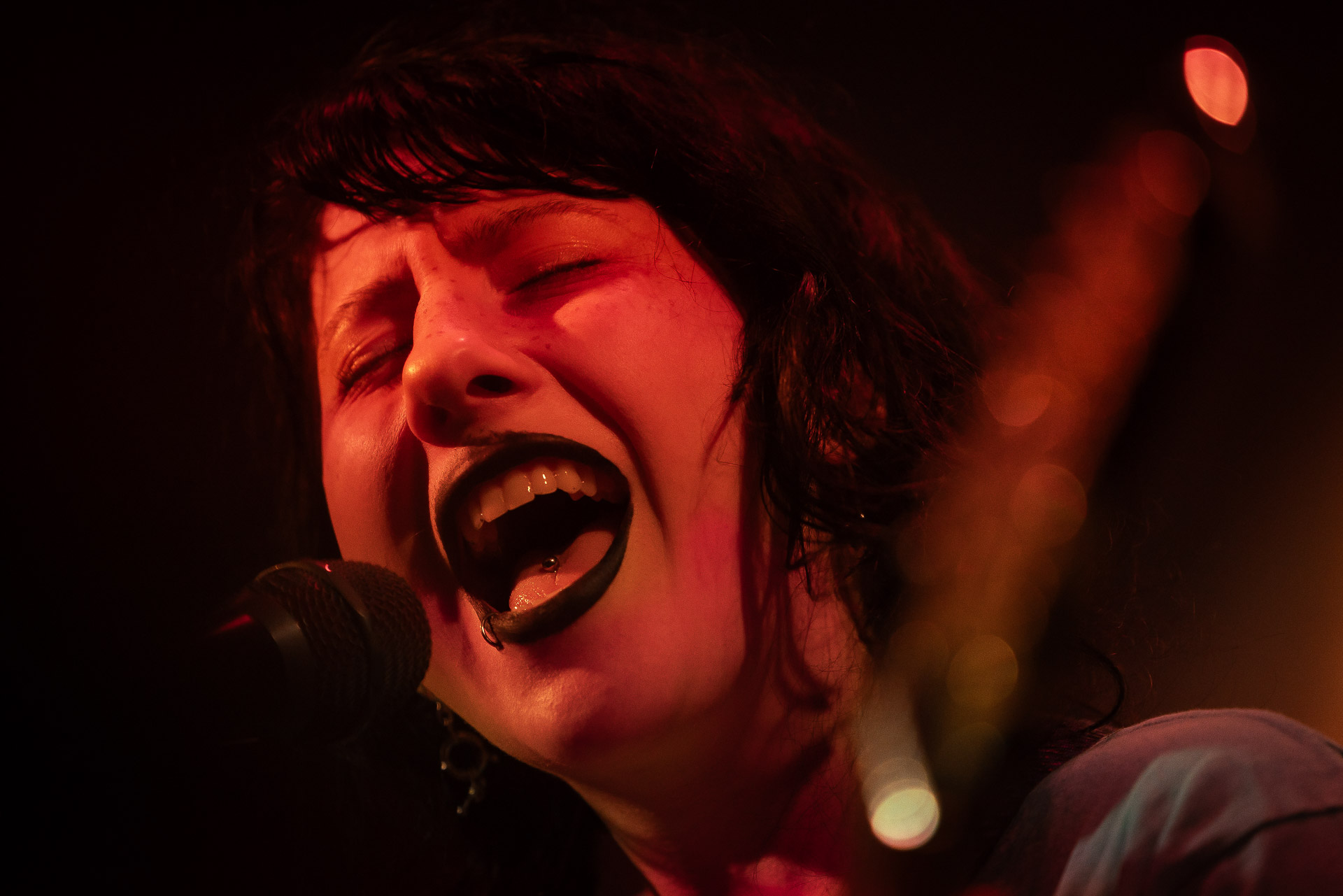 Karly intense mais pas intimidante donc , une boule d’énergie et une frontwoman qui sait capter l’intention et emmener son public avec elle, un public qui sera très bien briefé, passé quelques titres pour chauffer tout le monde, la chanteuse explique qu’ils vont jouer quelques titres de country mais qu’après il ne va quasiment plus rester que des "bangers", des titres qui font se bouger. Et c’est globalement ce qui va se passer, même si une fois la partie "bourrine" entamée, le groupe nous laisse récupérer avec quelques "respirations" comme "The Way Love Goes" ou "Elberry wine". Et ces titres country, ou juste plus calmes sont plutôt bien accueillis aussi par un public qui n’est donc pas venu là que pour les fameux bangers. Autour de nous dans les premiers rangs il est assez jeune, avec un nombre apparemment conséquent d’anglophones et il connait une bonne partie des chansons par cœur.