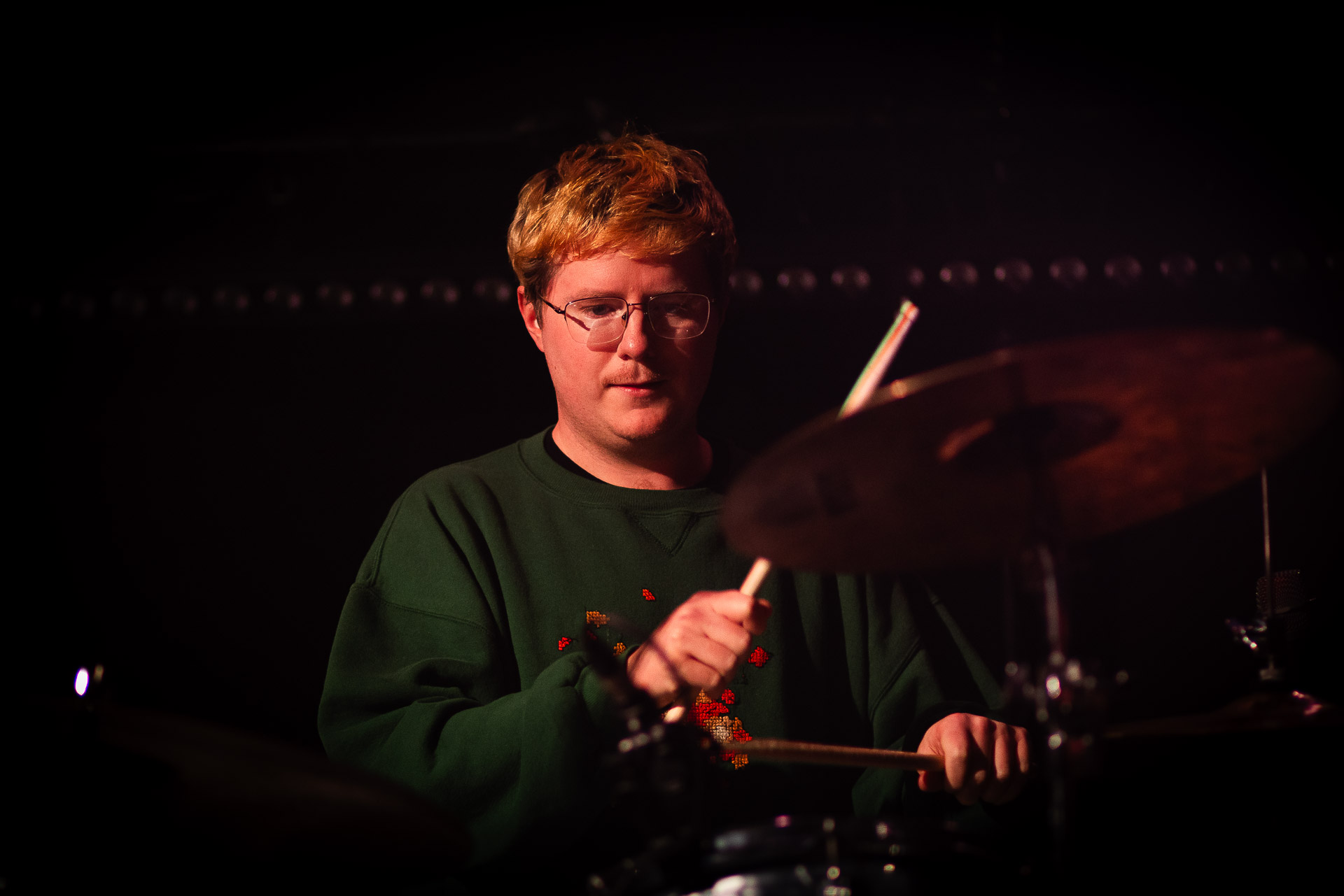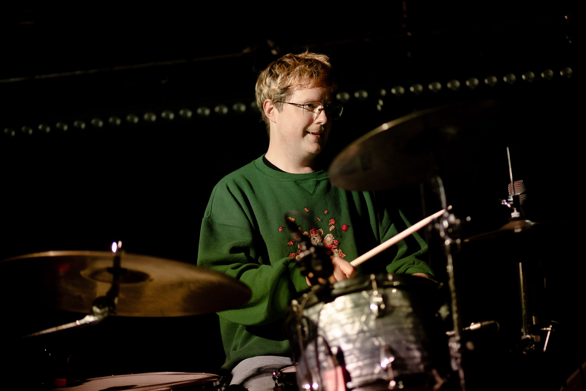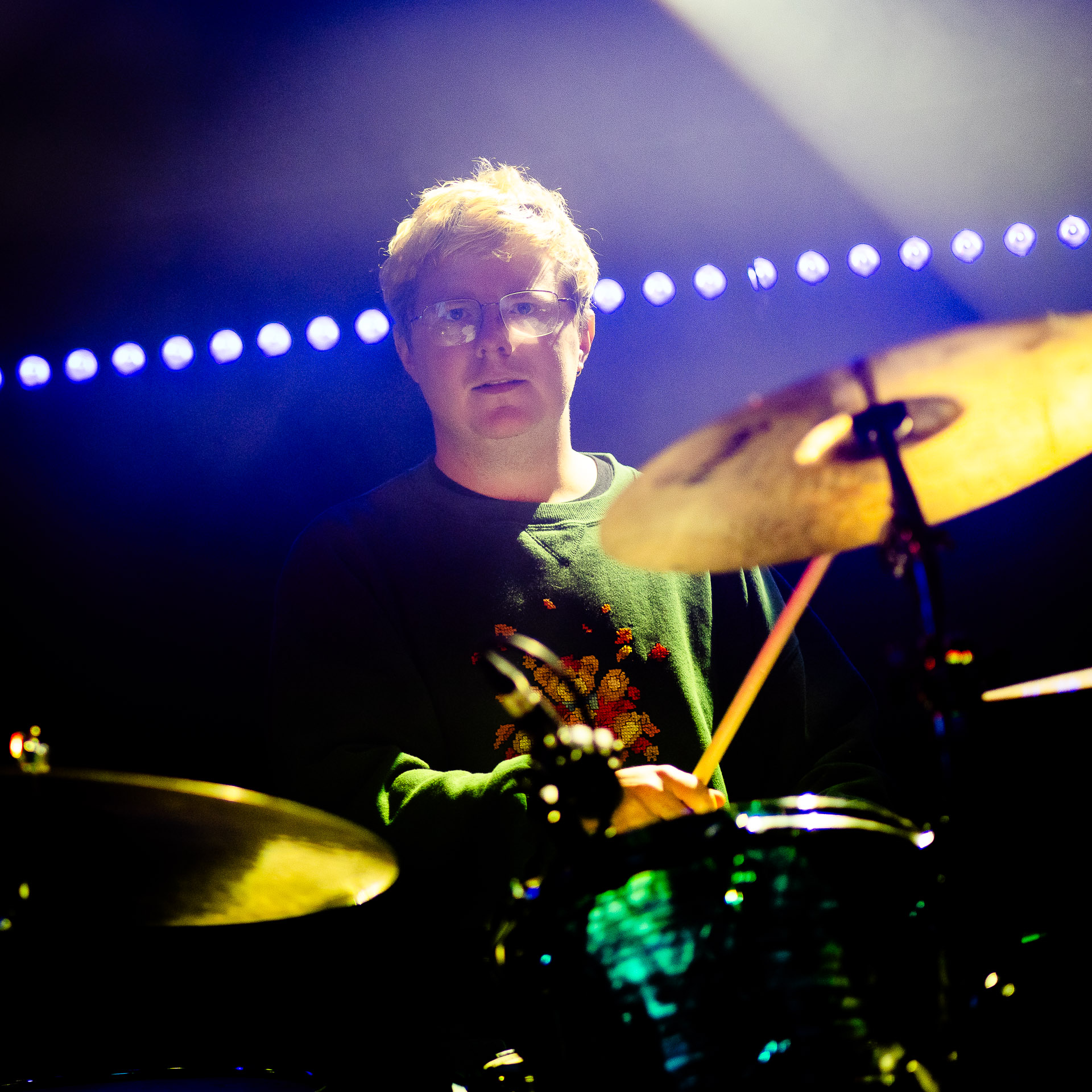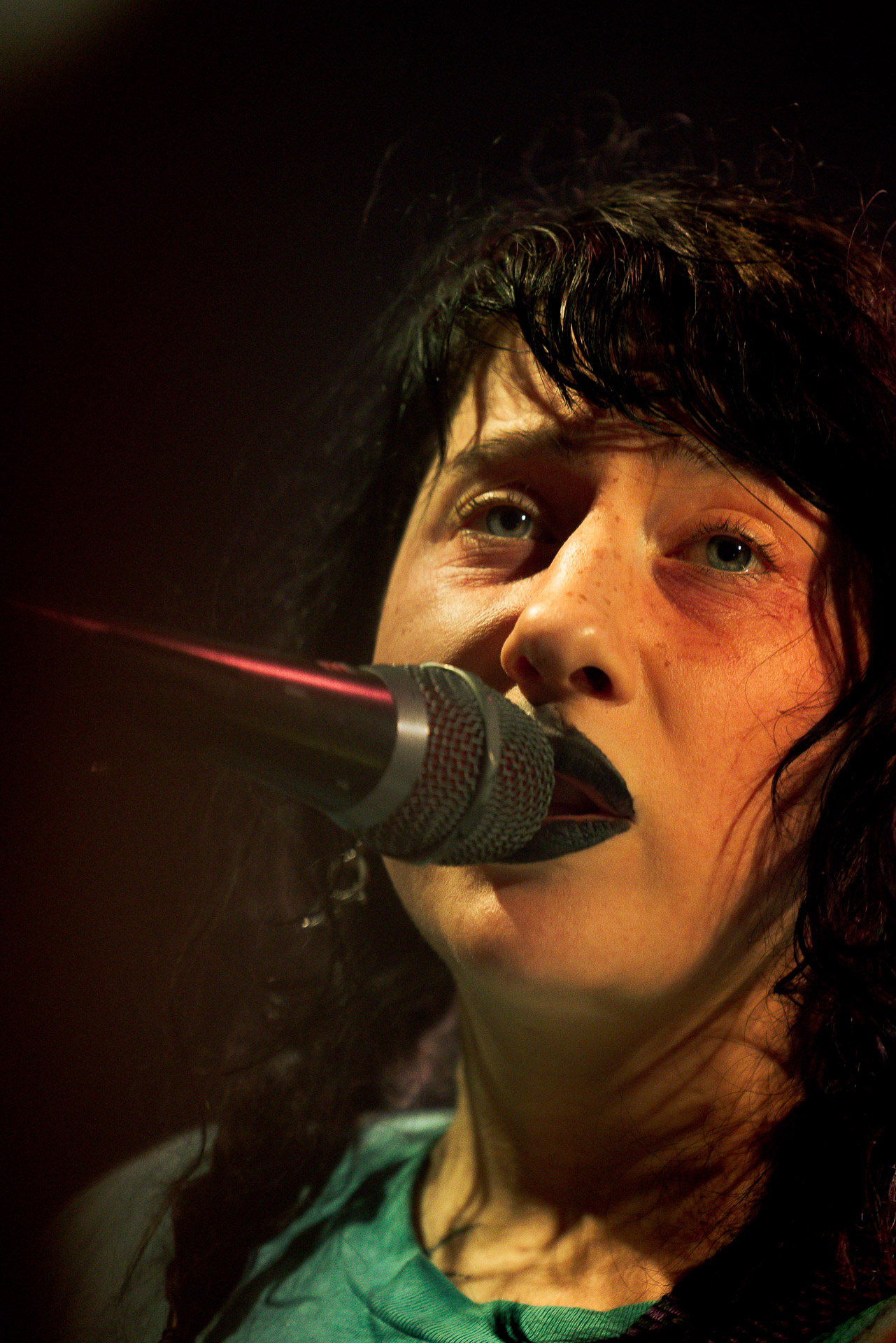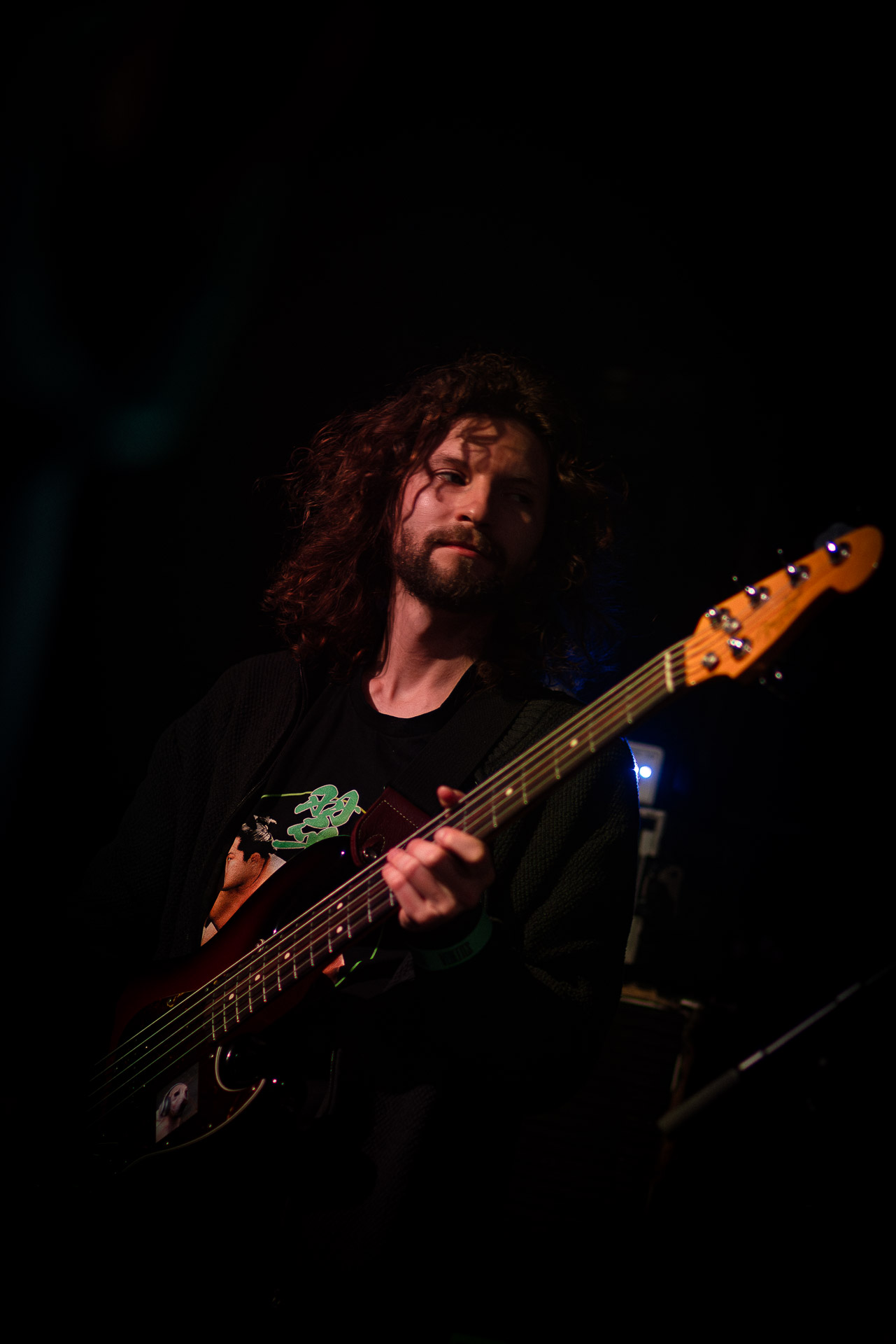 On se rend compte rapidement que tout comme la musique du groupe, un mélange détonnant de folk-country mélodique joliment parsemé de pedal steel et de riffs brutaux au son cradingue, Karly a plusieurs facettes : il y a la fille qui commence le concert avec cette mine fatiguée mais qui impressionne sur "Pick Up That Knife", la tête renversée, la bouche ouvert le plus grand possible, à hurlant tout ce qu’elle peut, encore ou encore dans un "Wasp" en final monstrueux et chaotique où elle laisse la guitare et donne tout ce qu’elle peut, à genoux par terre ou pliée en deux.. Celle qui écrit les textes plutôt sombres du groupe dont certains sur le dernier album évoquent sa rupture avec le guitariste MJ Lenderman, toujours membre du groupe mais qui ne tourne plus avec eux... Mais il y a aussi celle qui rigole en observant une fille qui fait "le slam le plus long qu’elle ait jamais vu" ou qui entre deux chansons fait un sondage pour savoir s’il y a des américains dans la salle, découvre qu’une autre fille est du même bled de Caroline du Nord qu’elle. Et elles commencent un peu à se raconter leur vie, leur lycée commun etc et qui alterne entre une danelectro à paillettes et une stratocaster avec un million de bidules colorés collés dessus et ce fameux t-shirt de vieux métalleux donc.