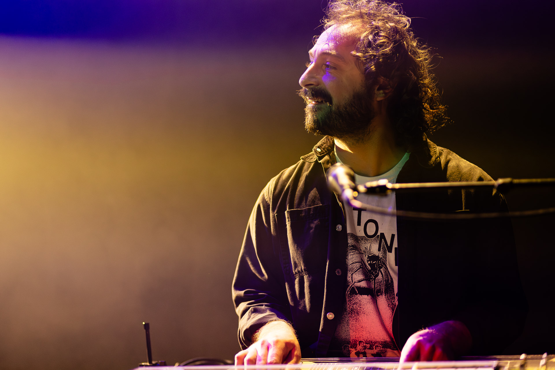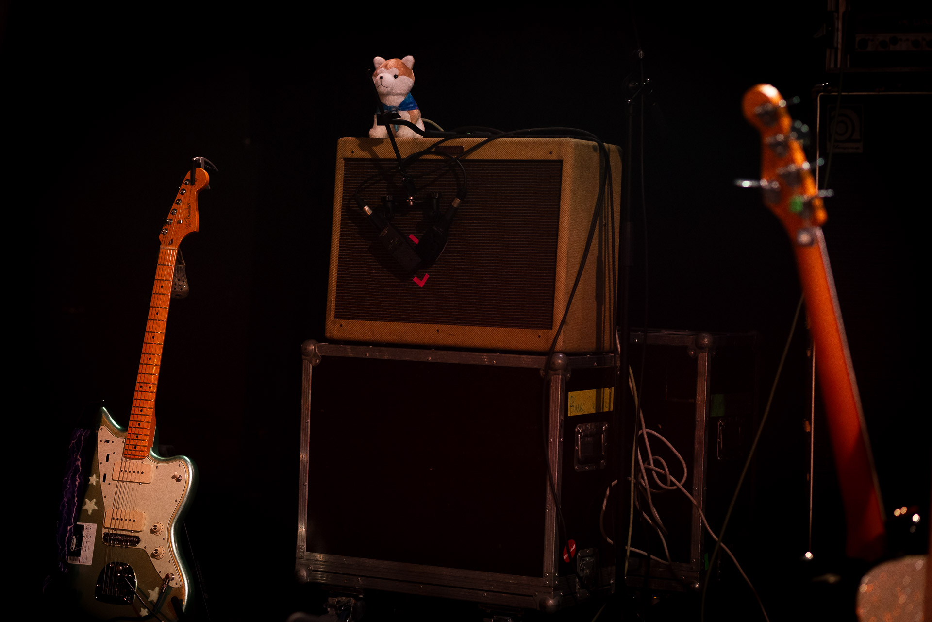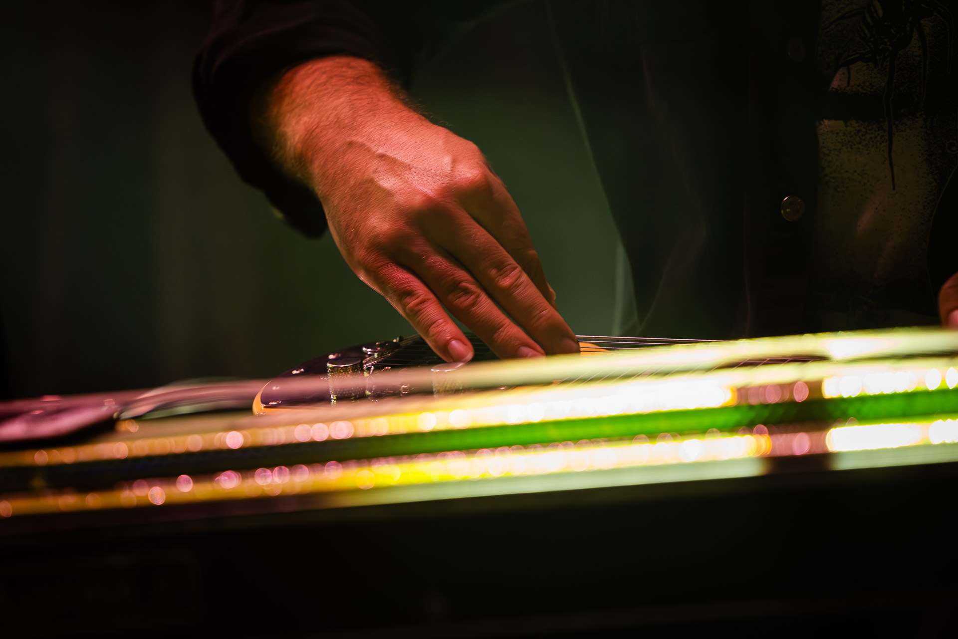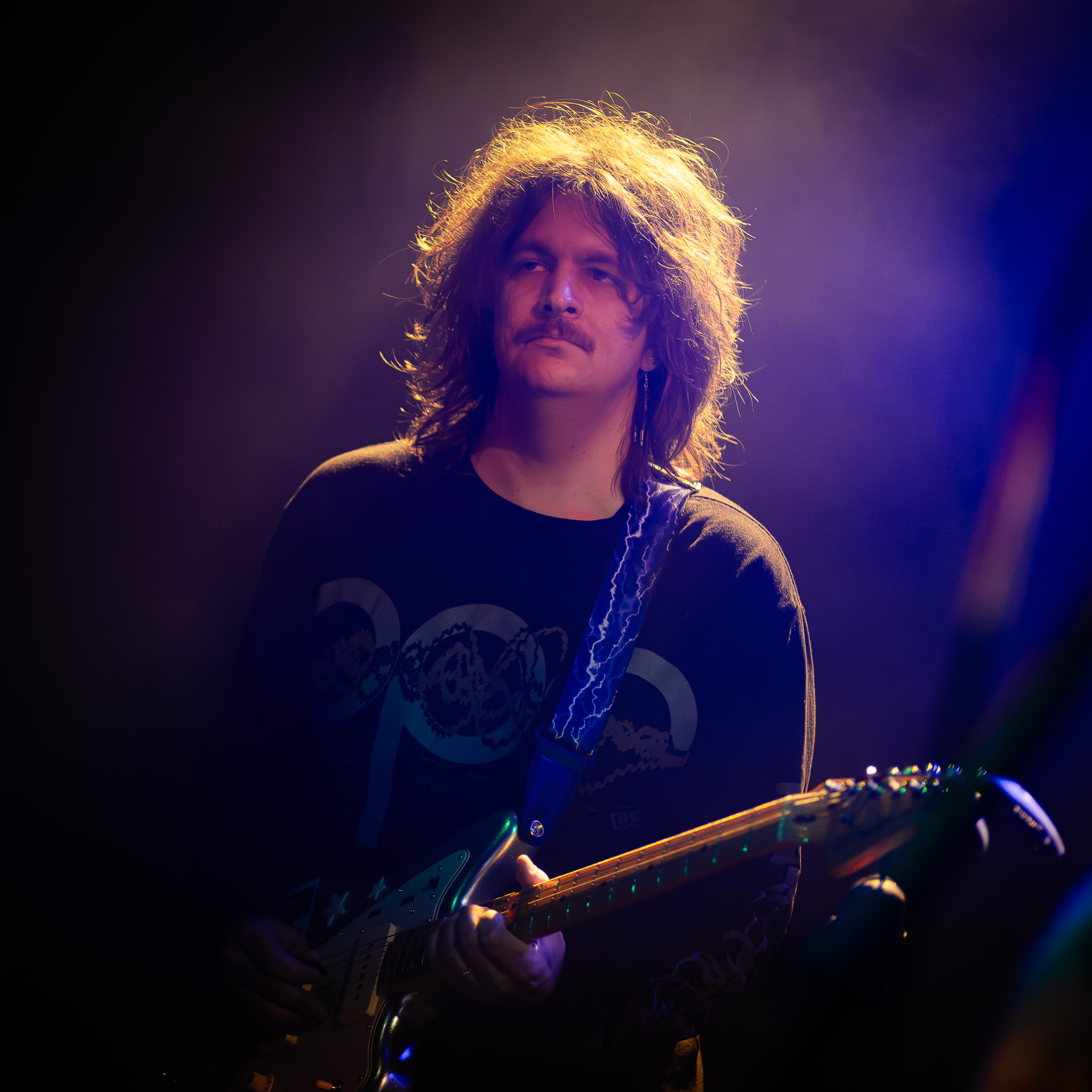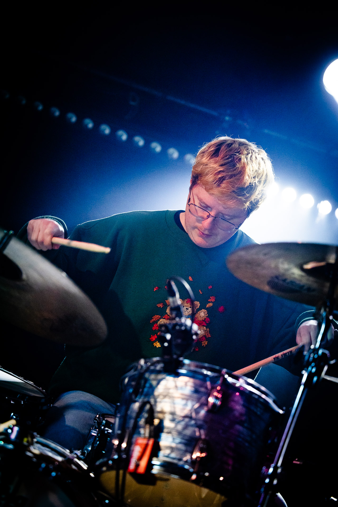 Mais évidemment l’ambiance monte tout de suite d’un can quand on passe au "dur" et on est ravis de se prendre dans les oreilles une bonne dose de distorsion délivrés par trois guitares (dont un "Twin Plagues" aussi monumental et étrange et chaotique et beau en live qu’on l’imaginait en écoutant le disque du même nom), dont le fameux pedalsteel qu’en écoutant l’album on avait surtout associé aux morceaux country et en fait Xandy Chelmis est aussi responsable d’une grande partie des son saturés qui font le son énorme et délicieux du groupe sur Bleeds, et si le lapsteel country c’est sublime quand c’est bien fait (prenons au hasard Paul Niehaus avec Calexico et Lambchop), on découvre le lapsteel noisy et en terme de graou ça n’a rien à envier à une les paul entrain de larsener dans un stack de marshalls.